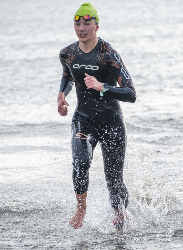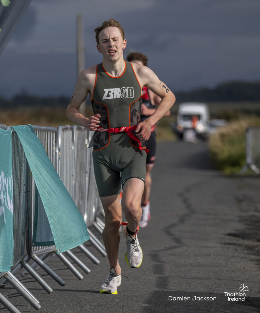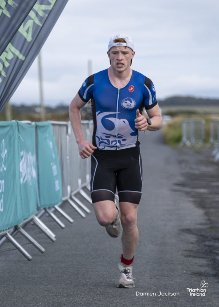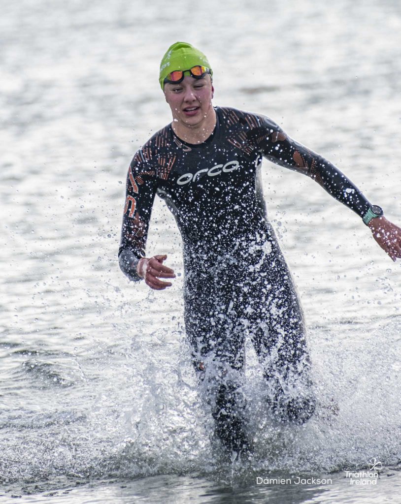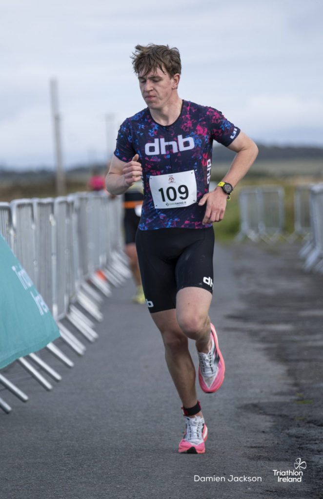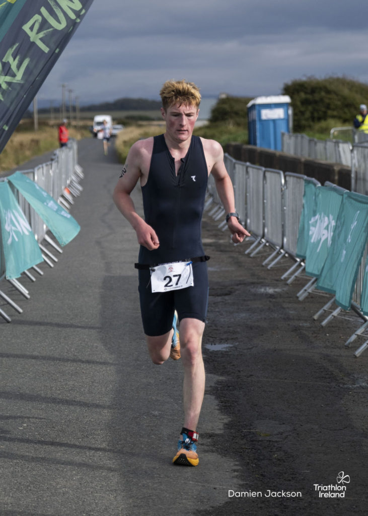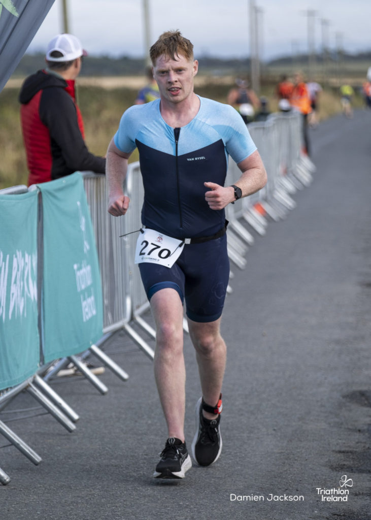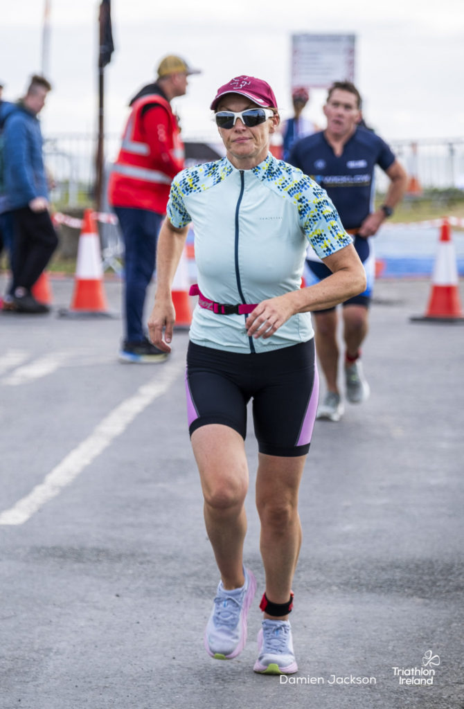 Áine Kinsella of Waterford dominated the women’s race, finishing first with a time of 01:14:16. Kinsella put in a solid swim, completing the 750-metre lap in 00:15:53, and continued her strong performance on the bike, clocking 00:35:59. Her consistent pace across all three legs, coupled with a 00:19:36 run split, secured her the victory.