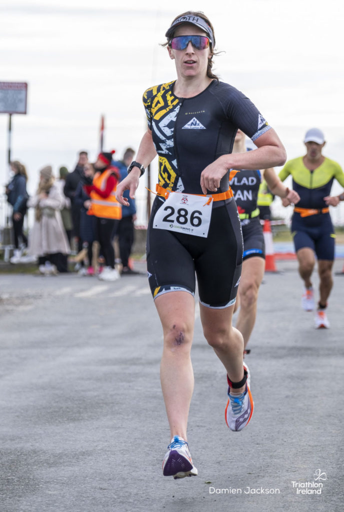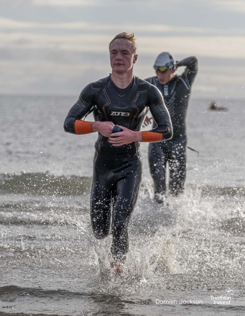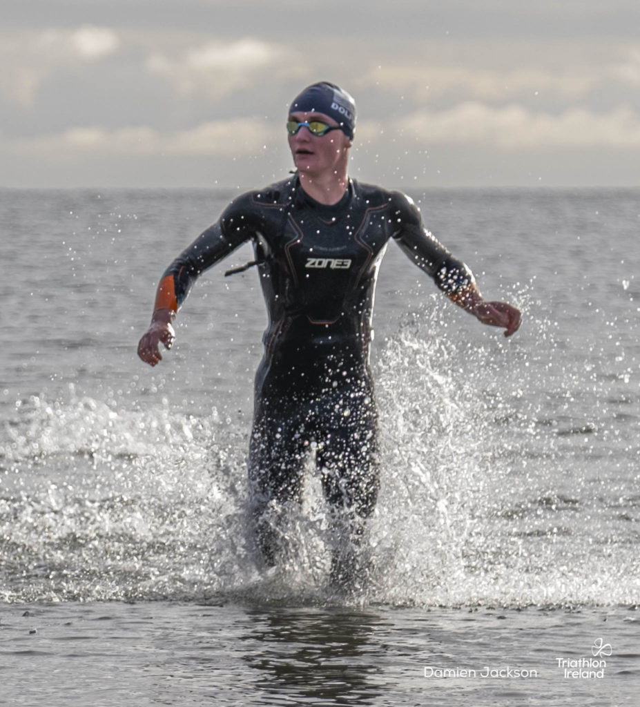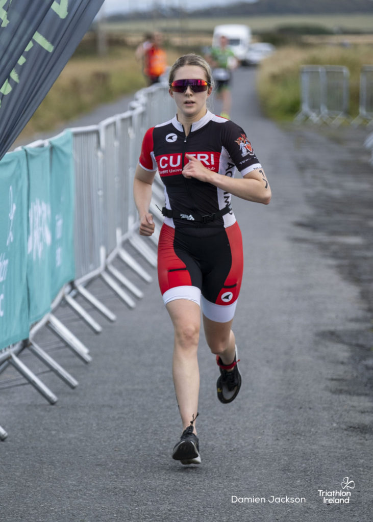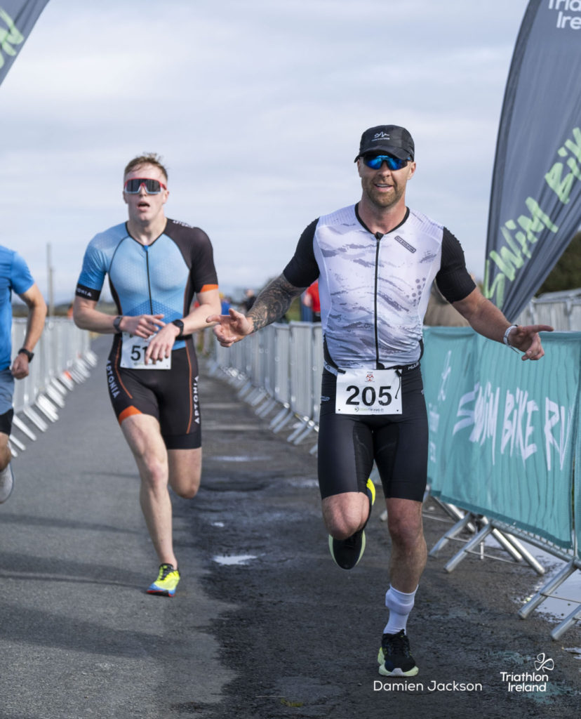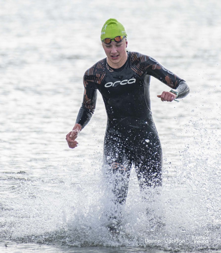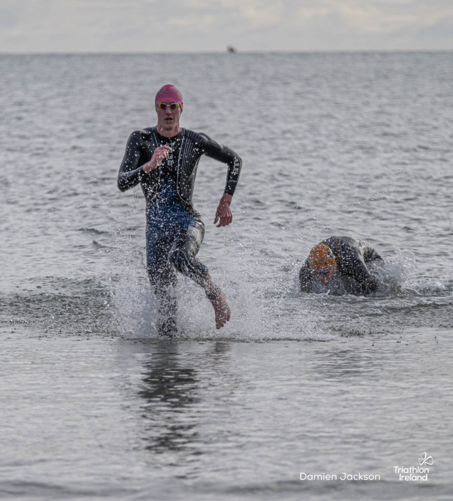 Áine Kinsella of Waterford dominated the women’s race, finishing first with a time of 01:14:16. Kinsella put in a solid swim, completing the 750-metre lap in 00:15:53, and continued her strong performance on the bike, clocking 00:35:59. Her consistent pace across all three legs, coupled with a 00:19:36 run split, secured her the victory.