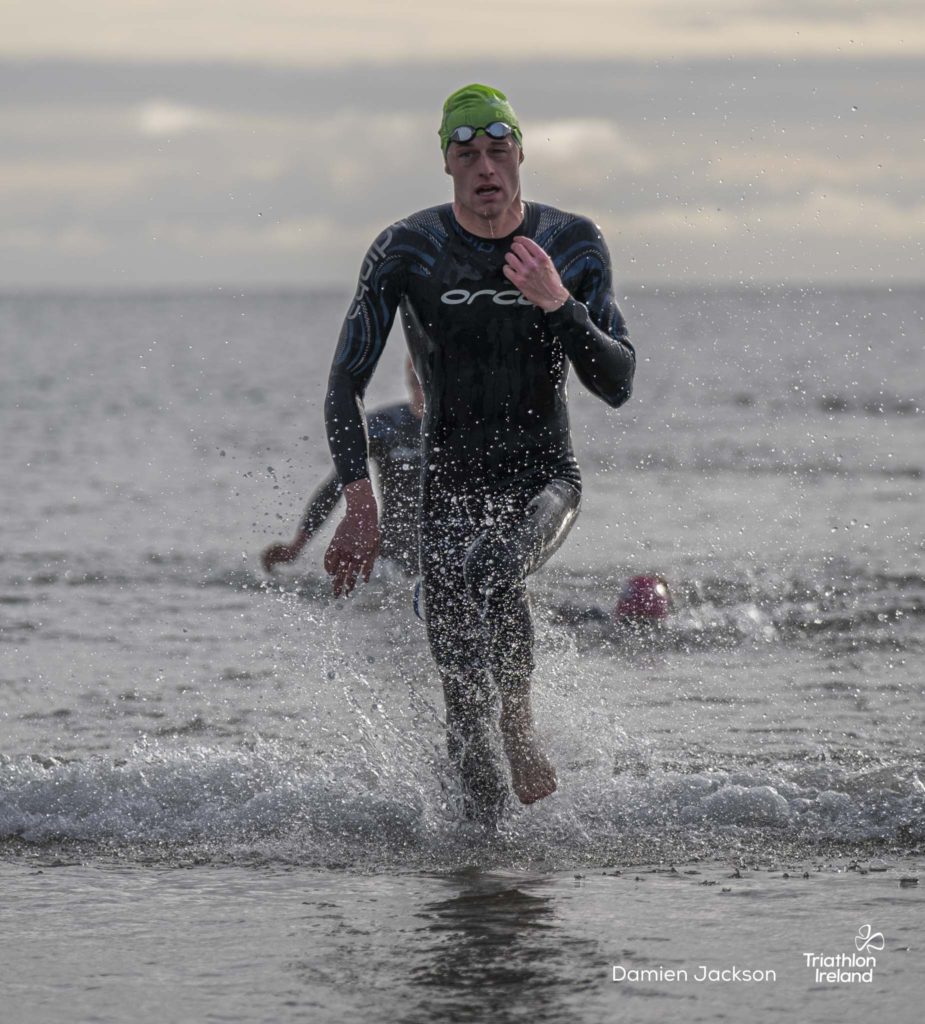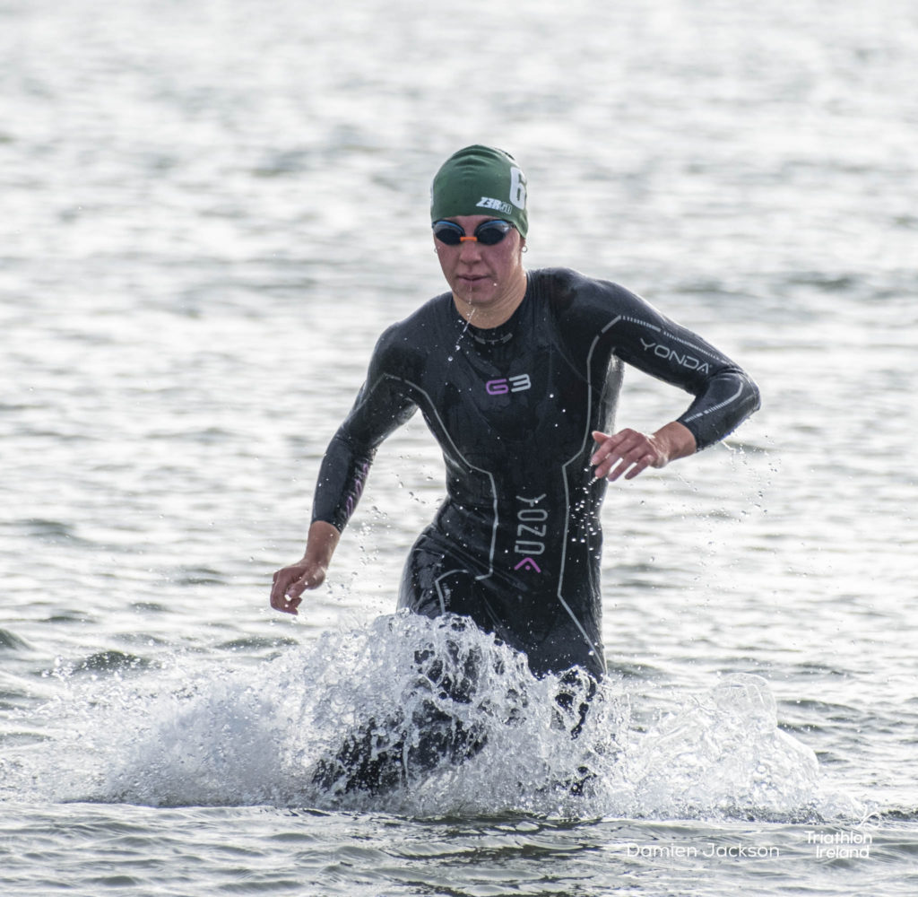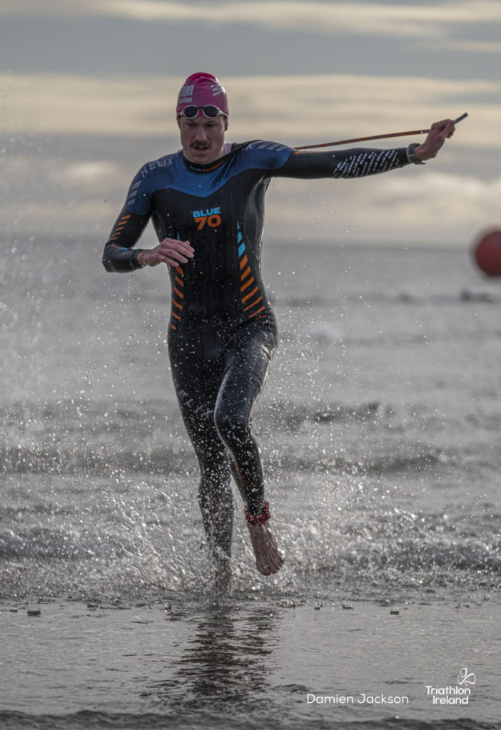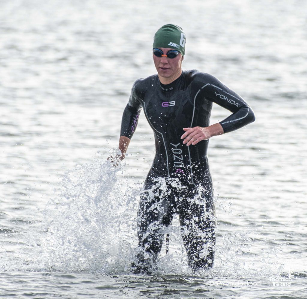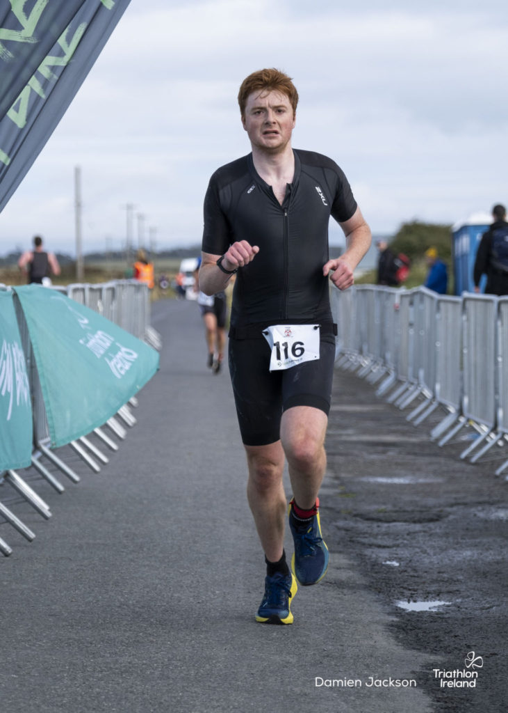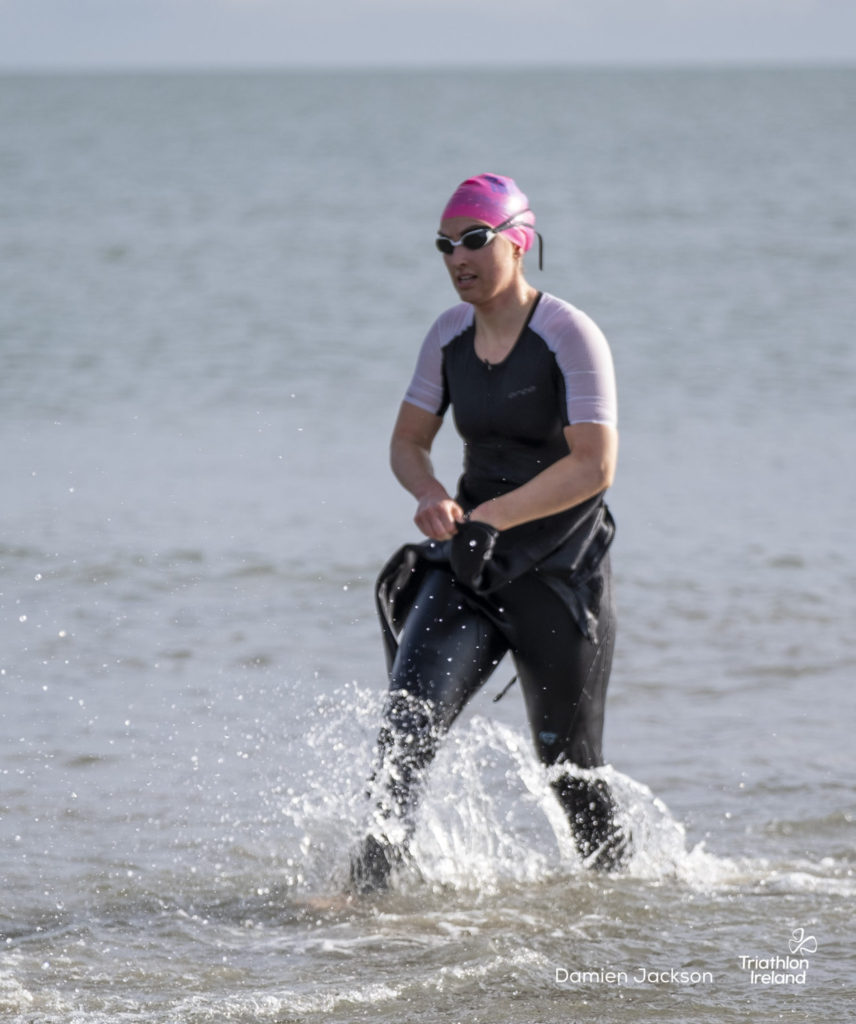 Áine Kinsella of Waterford dominated the women’s race, finishing first with a time of 01:14:16. Kinsella put in a solid swim, completing the 750-metre lap in 00:15:53, and continued her strong performance on the bike, clocking 00:35:59. Her consistent pace across all three legs, coupled with a 00:19:36 run split, secured her the victory.