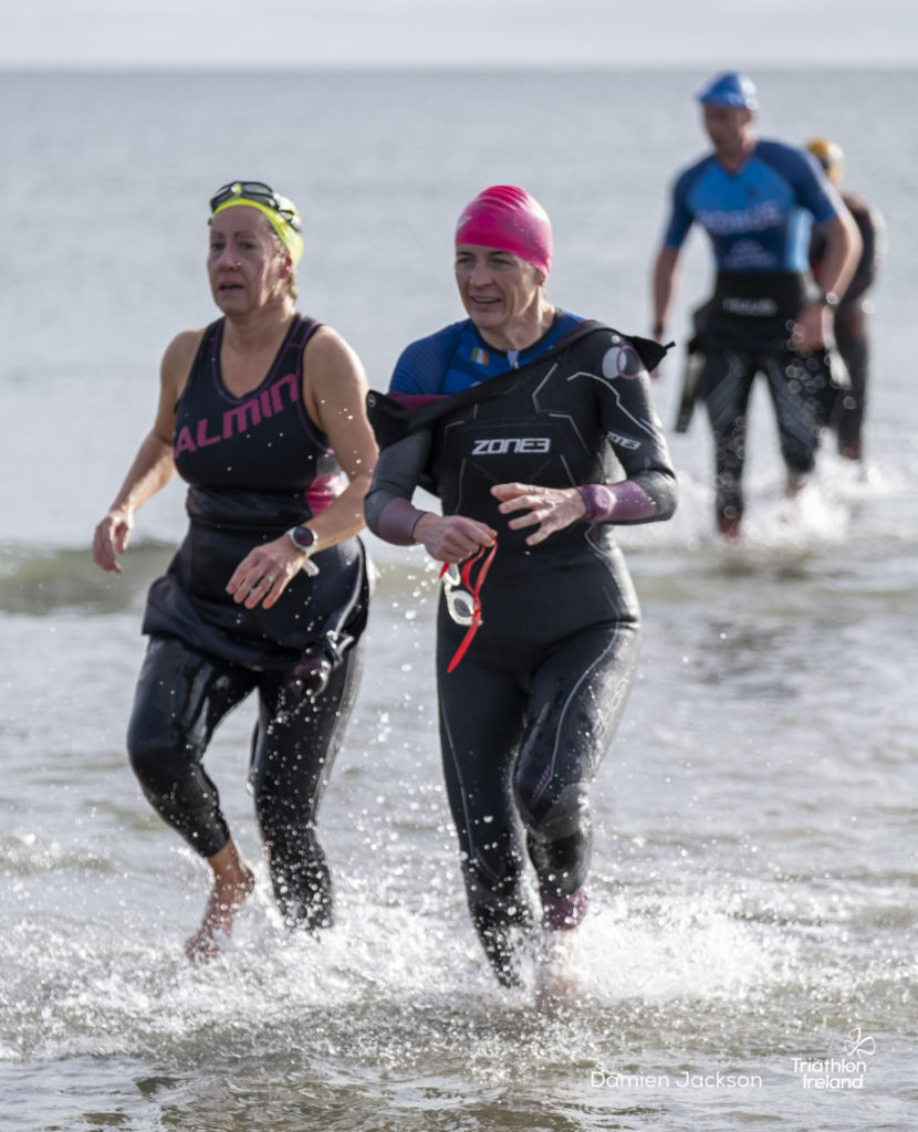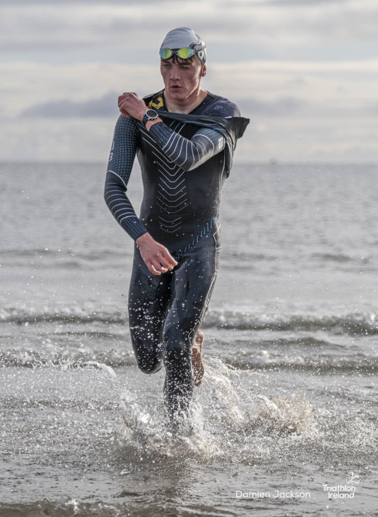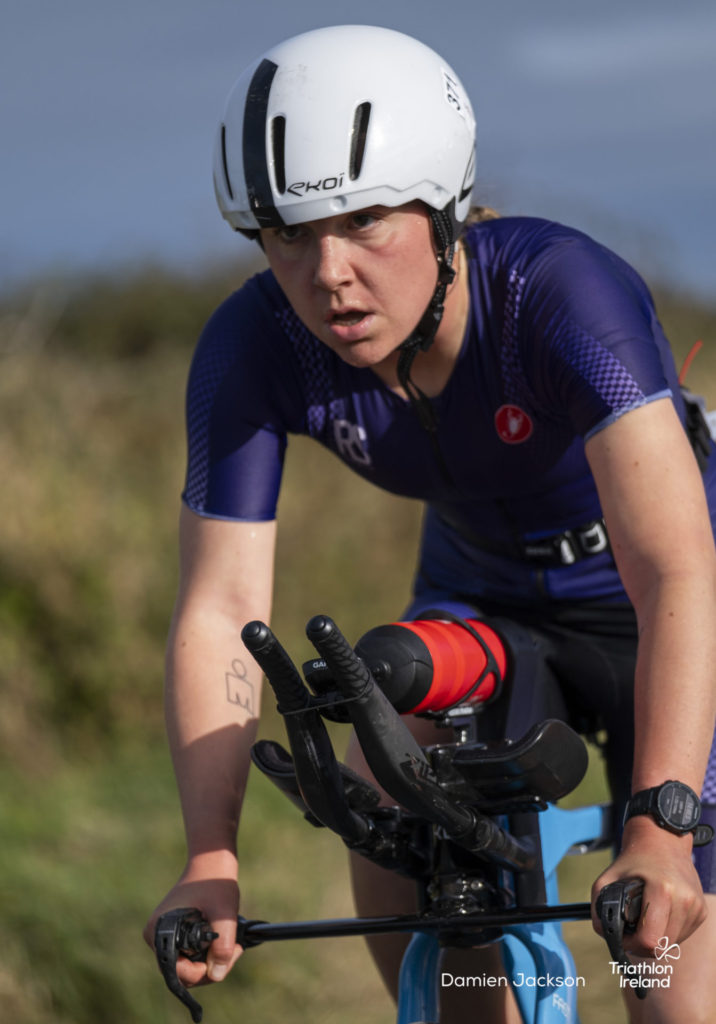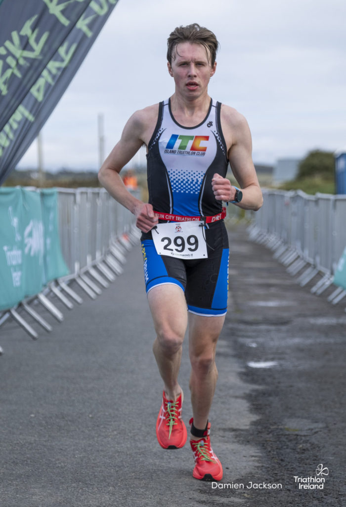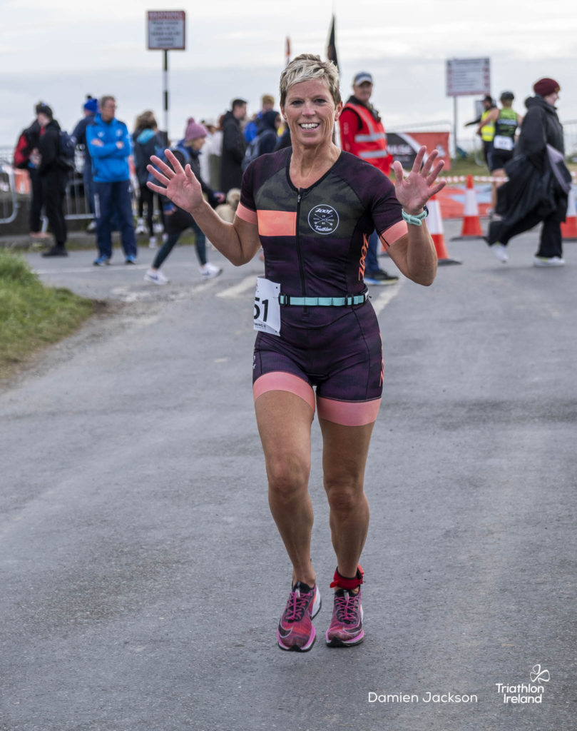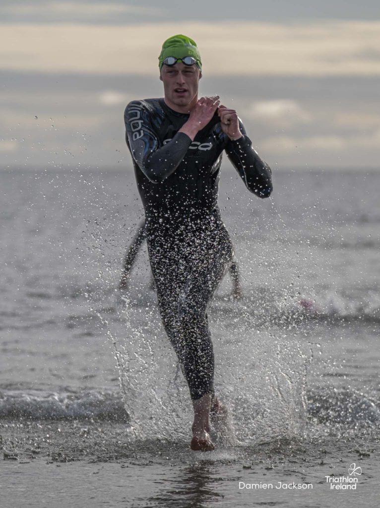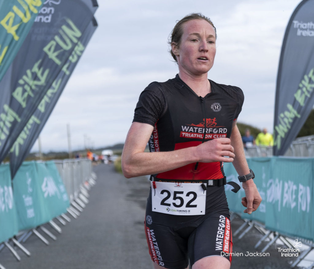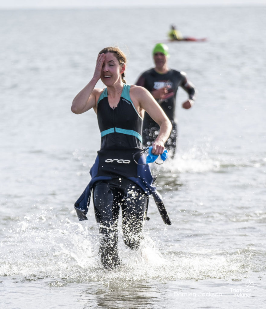 Áine Kinsella of Waterford dominated the women’s race, finishing first with a time of 01:14:16. Kinsella put in a solid swim, completing the 750-metre lap in 00:15:53, and continued her strong performance on the bike, clocking 00:35:59. Her consistent pace across all three legs, coupled with a 00:19:36 run split, secured her the victory.