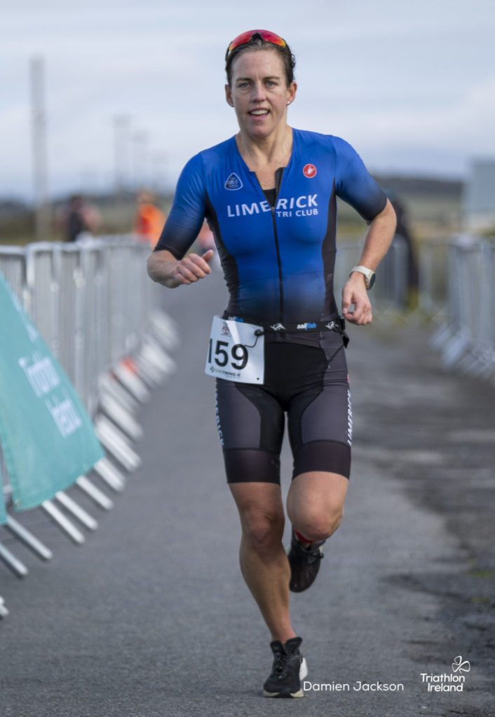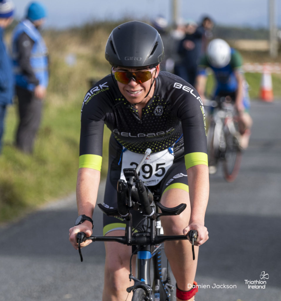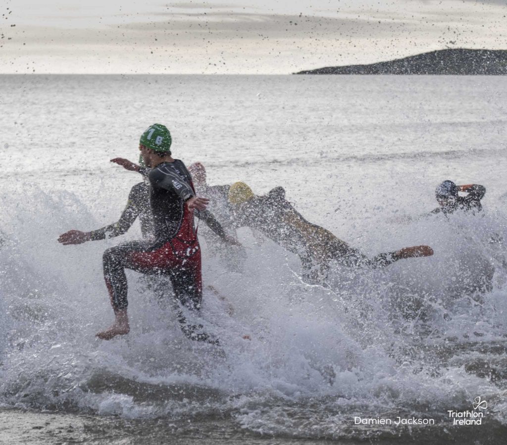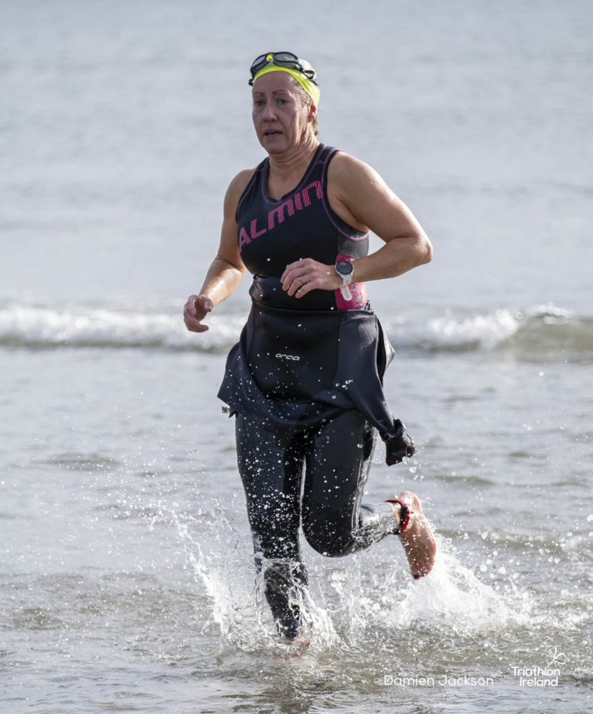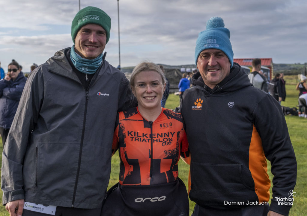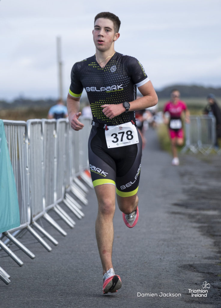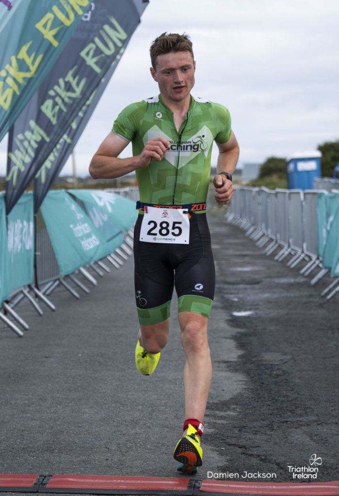 Áine Kinsella of Waterford dominated the women’s race, finishing first with a time of 01:14:16. Kinsella put in a solid swim, completing the 750-metre lap in 00:15:53, and continued her strong performance on the bike, clocking 00:35:59. Her consistent pace across all three legs, coupled with a 00:19:36 run split, secured her the victory.