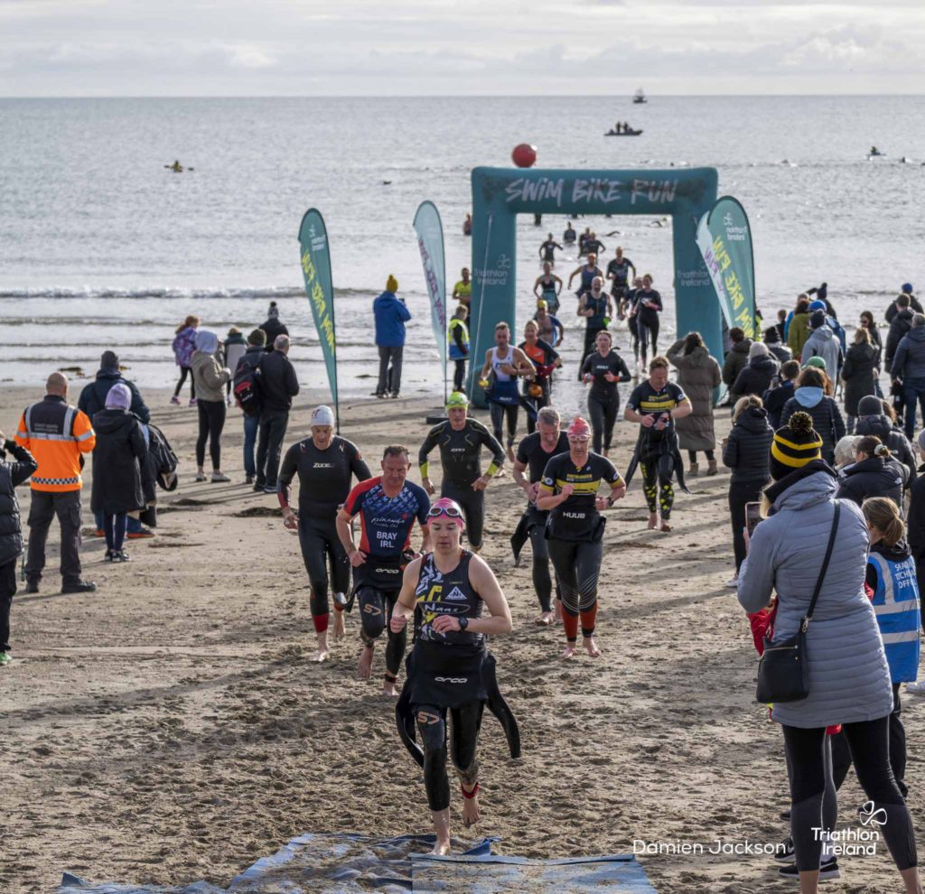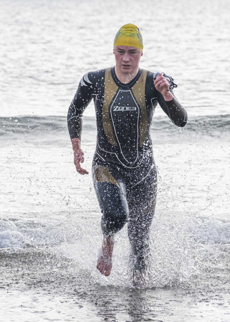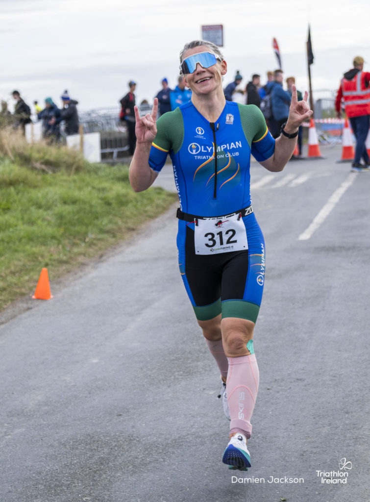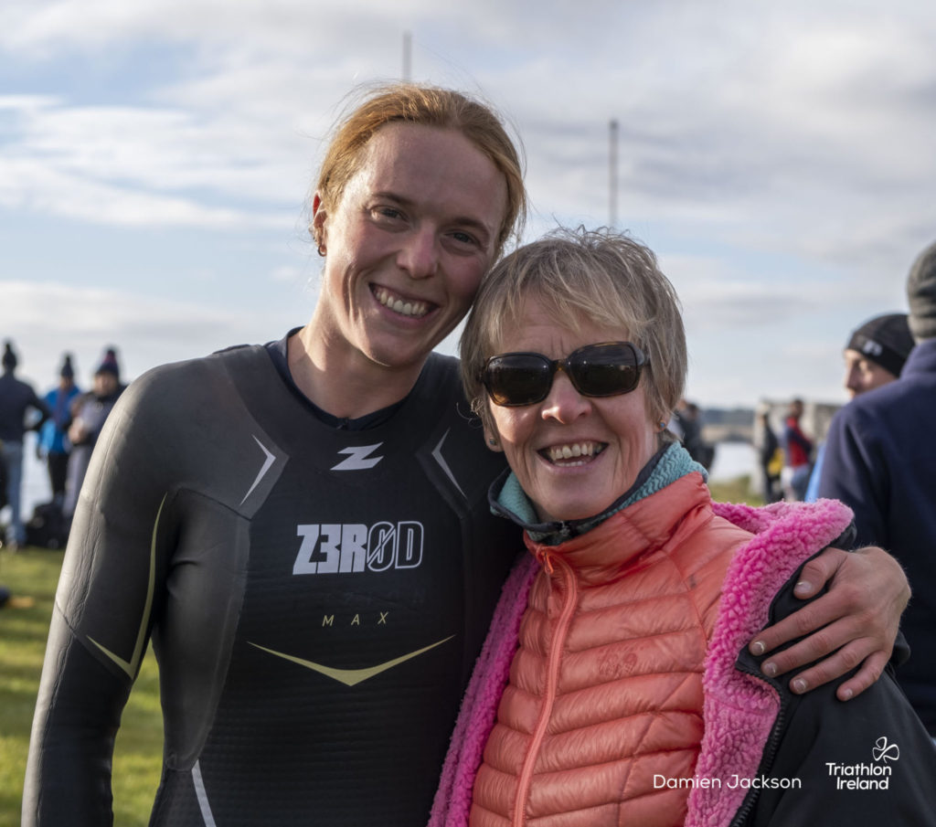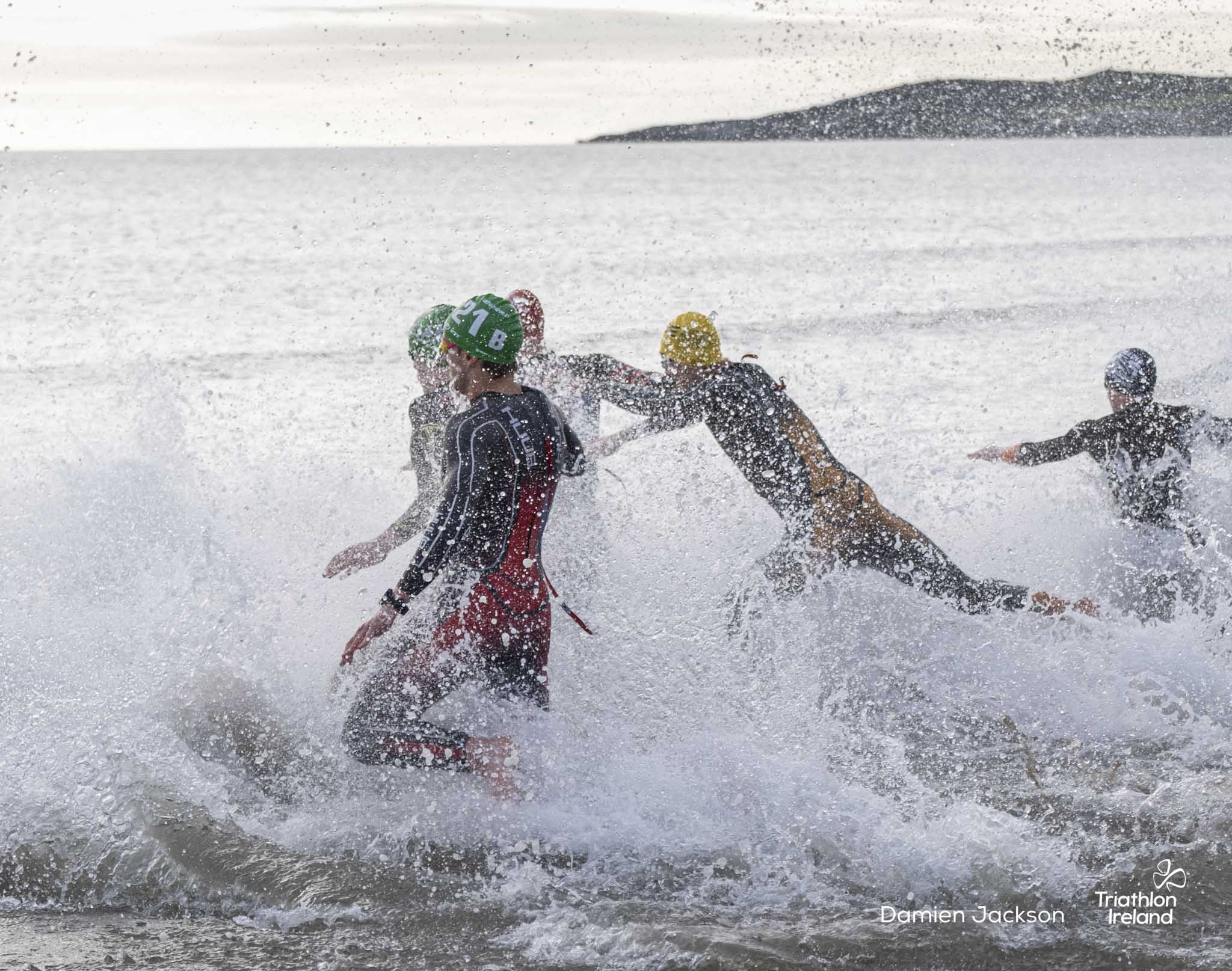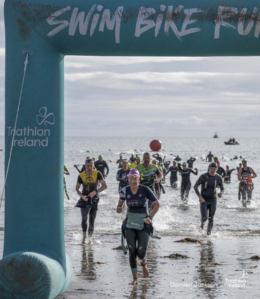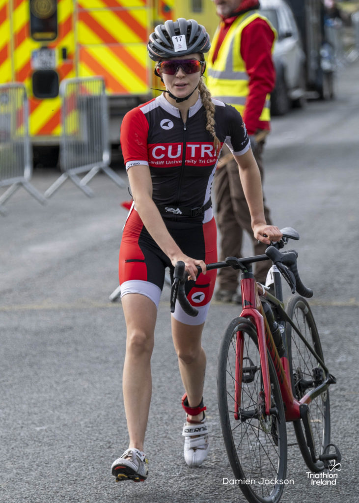 Áine Kinsella of Waterford dominated the women’s race, finishing first with a time of 01:14:16. Kinsella put in a solid swim, completing the 750-metre lap in 00:15:53, and continued her strong performance on the bike, clocking 00:35:59. Her consistent pace across all three legs, coupled with a 00:19:36 run split, secured her the victory.