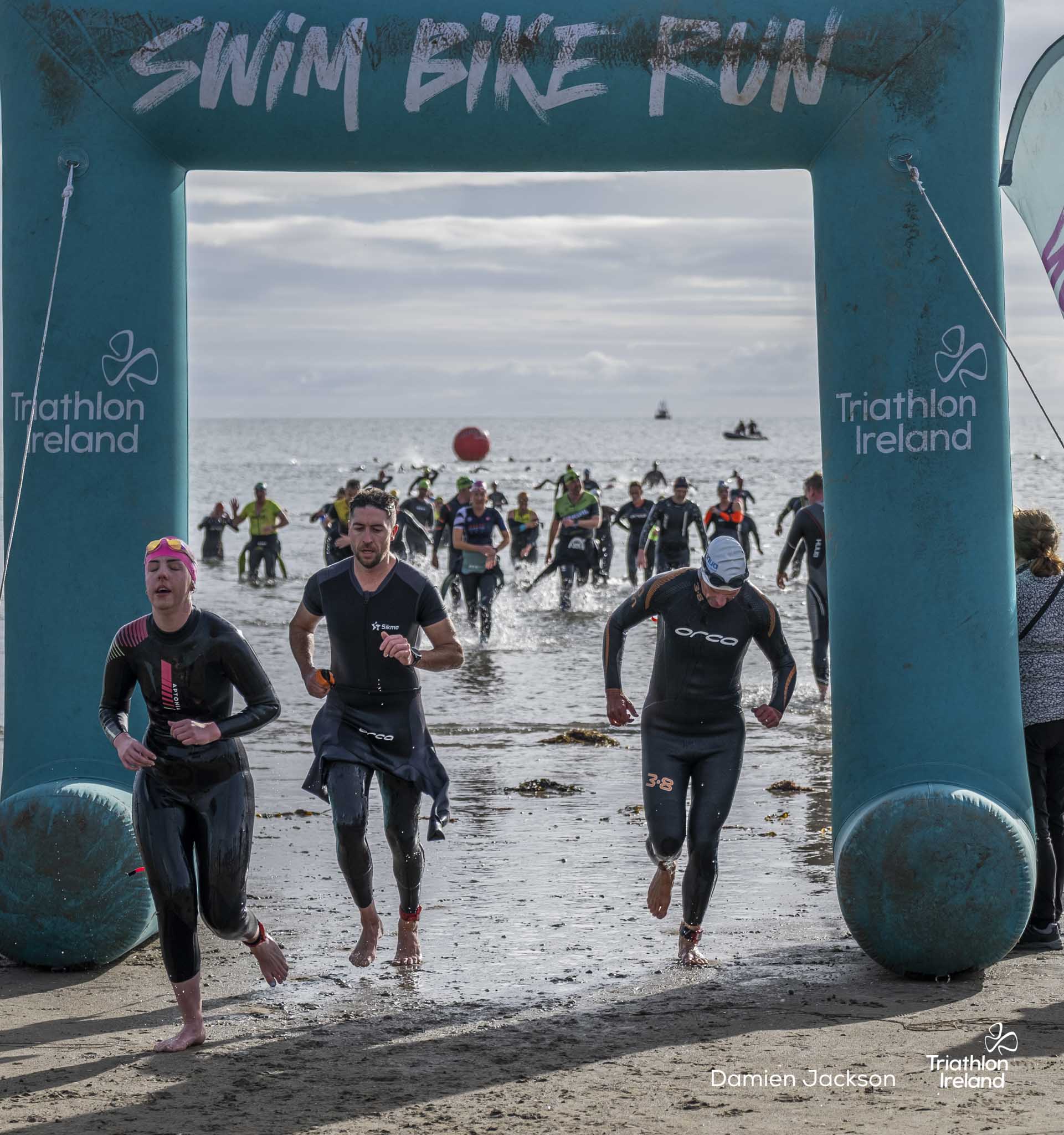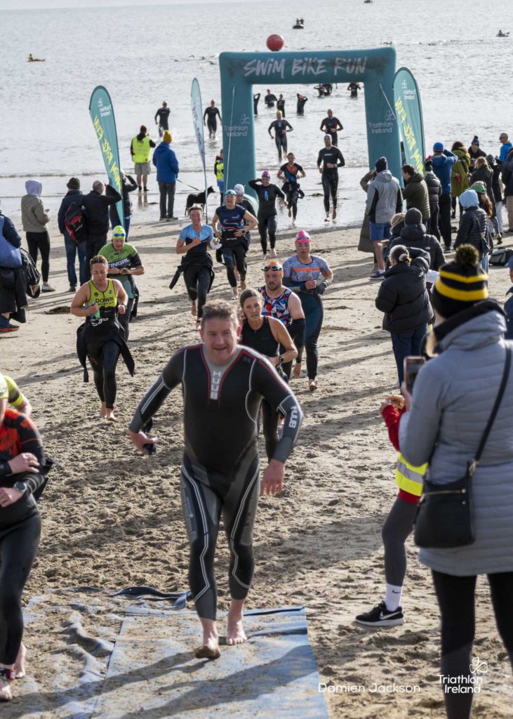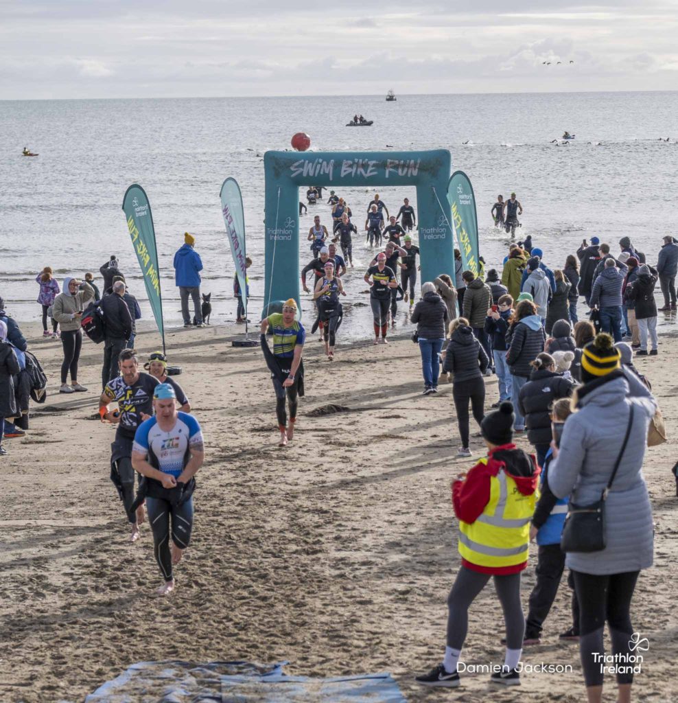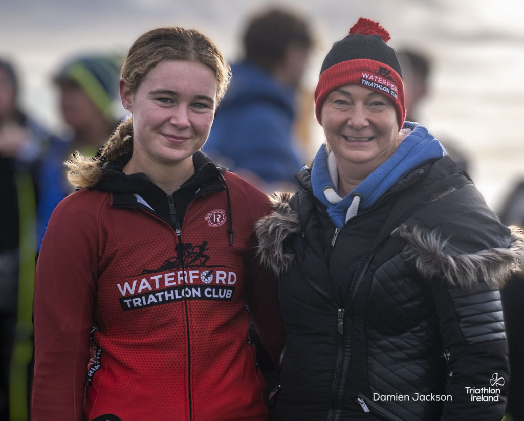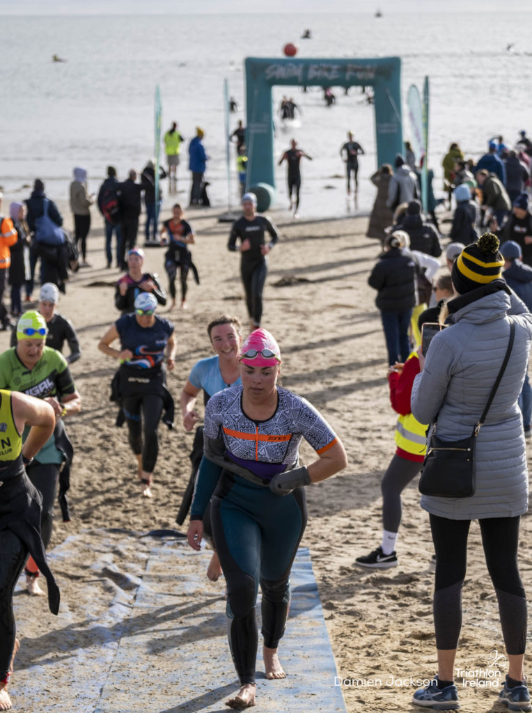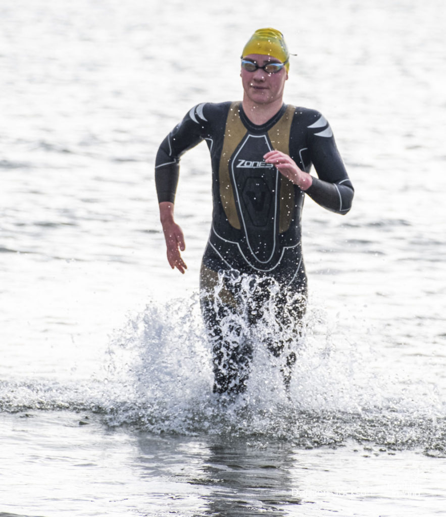 Áine Kinsella of Waterford dominated the women’s race, finishing first with a time of 01:14:16. Kinsella put in a solid swim, completing the 750-metre lap in 00:15:53, and continued her strong performance on the bike, clocking 00:35:59. Her consistent pace across all three legs, coupled with a 00:19:36 run split, secured her the victory.