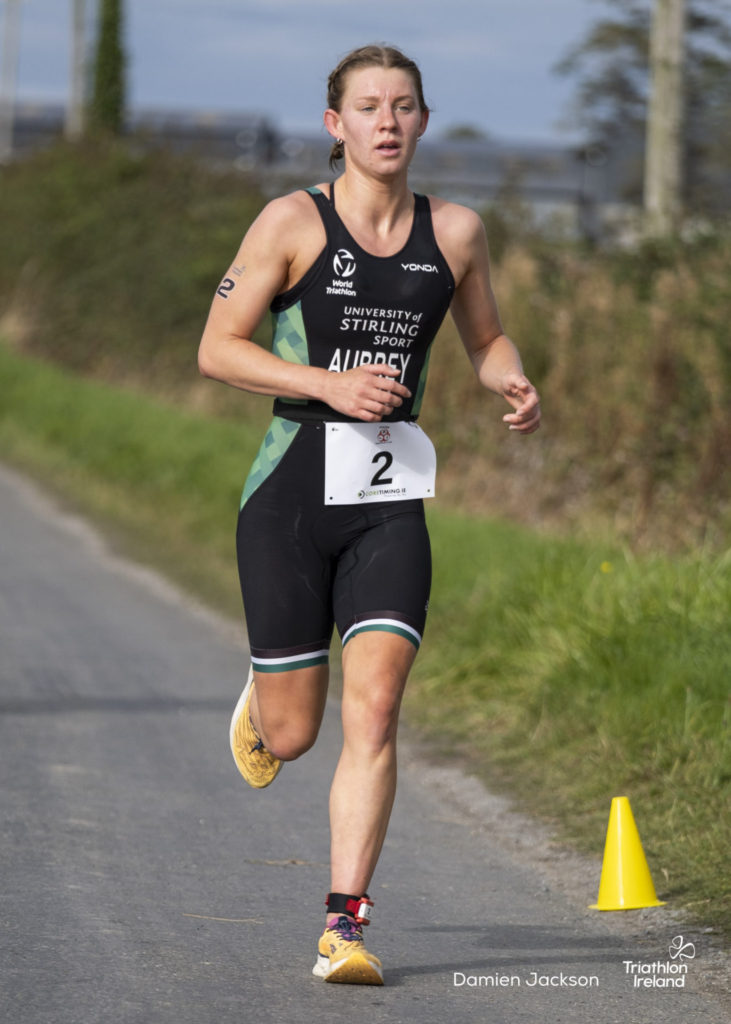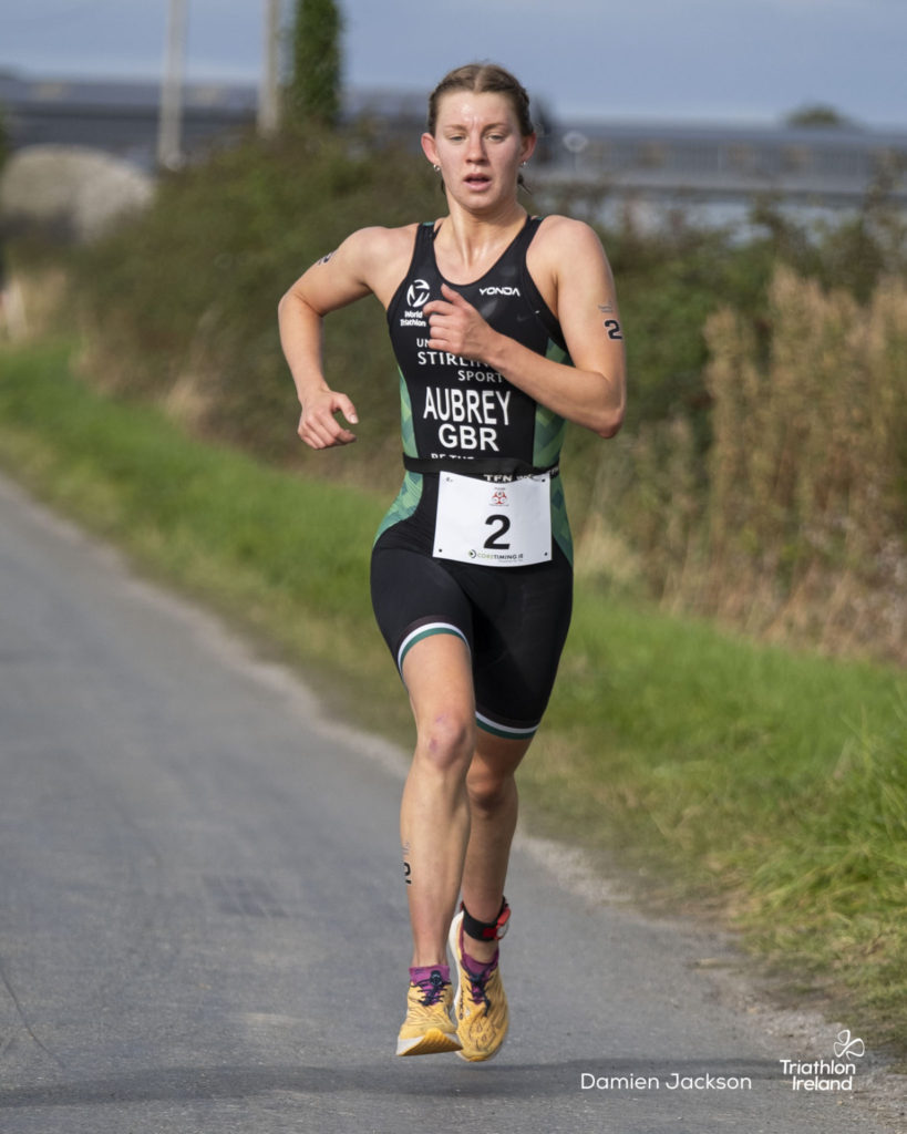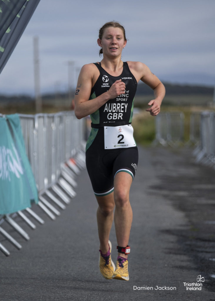 Aubrey was first out of the water, completing the swim in 00:12:43, with Saoirse O’Brien trailing by 19 seconds. However, O’Brien took control on the bike, posting the fastest split of 00:34:30, and sealed her win with a 5 km run time of 00:19:16.