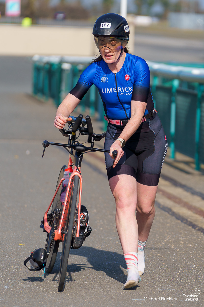 The women’s race lived up to expectations with a competitive field. Geraldine Leete was first into T1 with a time of 00:12:38 but was quickly followed by Róisín Kelleher. Behind them, Andrea Brennan and Sharon Cahill were in close pursuit.
