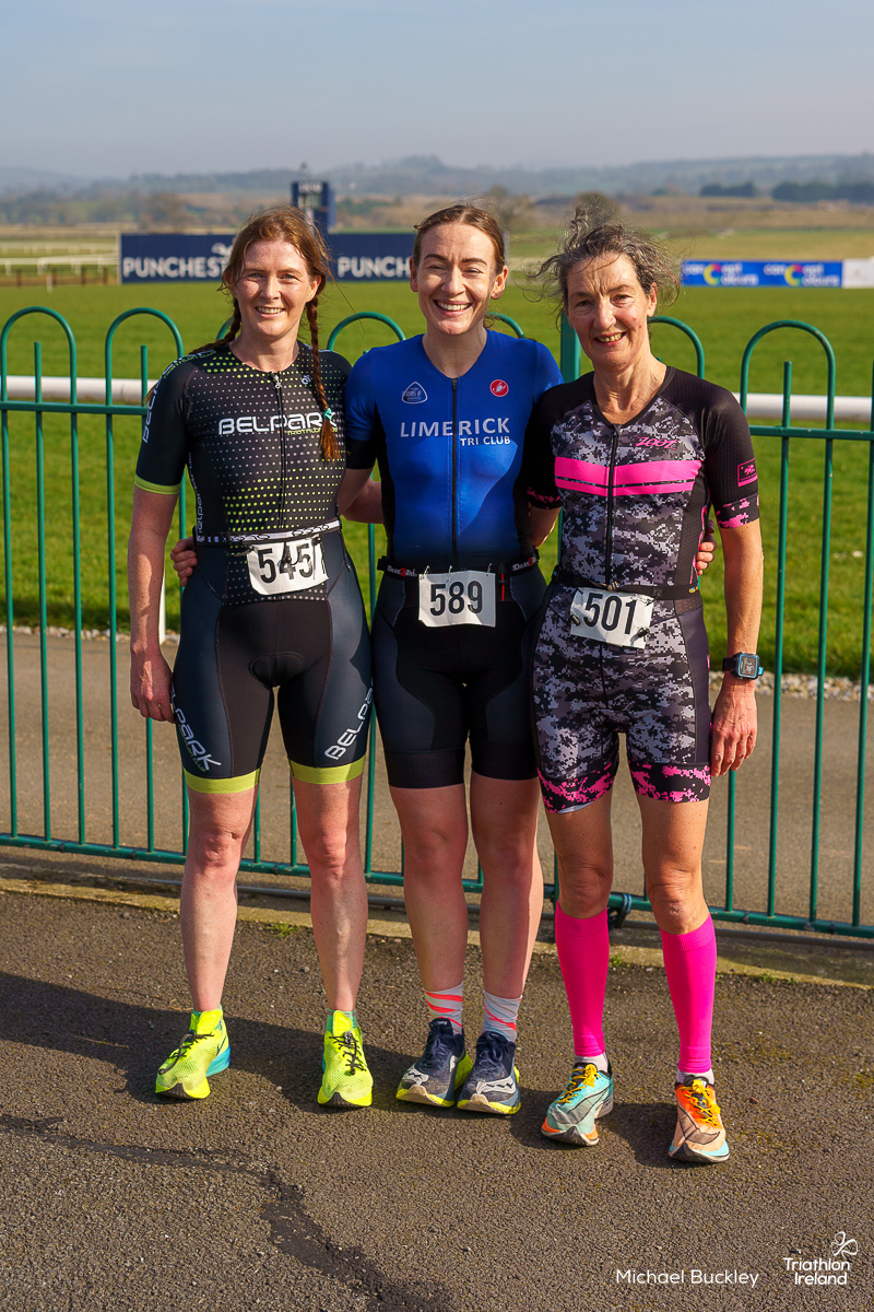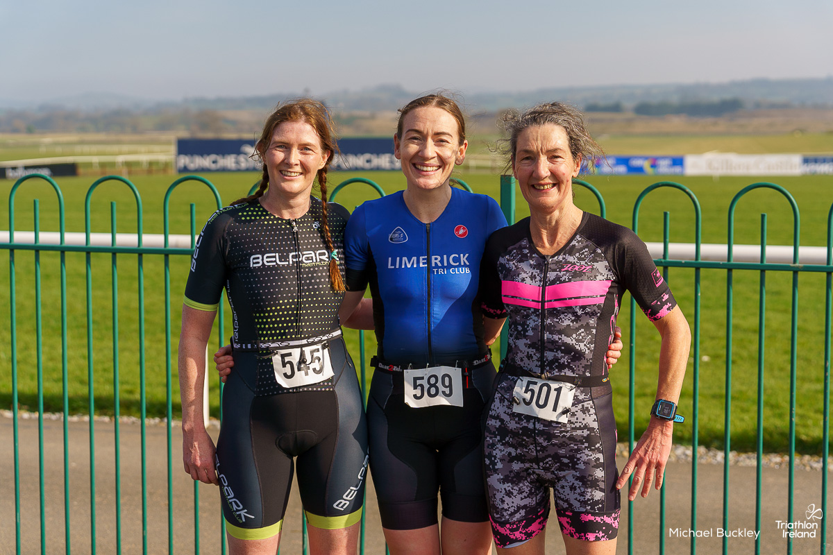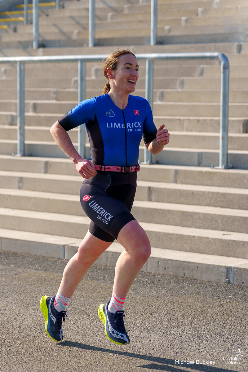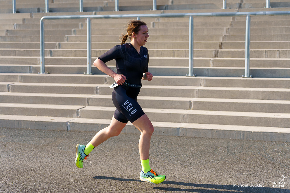 On the bike leg, Kelleher took the lead with a powerful ride finishing in 00:34:40, setting up a thrilling final run. Despite the strong start from Leete, Kelleher held on to take the win. It was neck and neck between Brennan and Cahill coming up to the finish, with Andrea Brennan crossing the line just six seconds ahead of Sharon Cahill to take the second step on the podium.