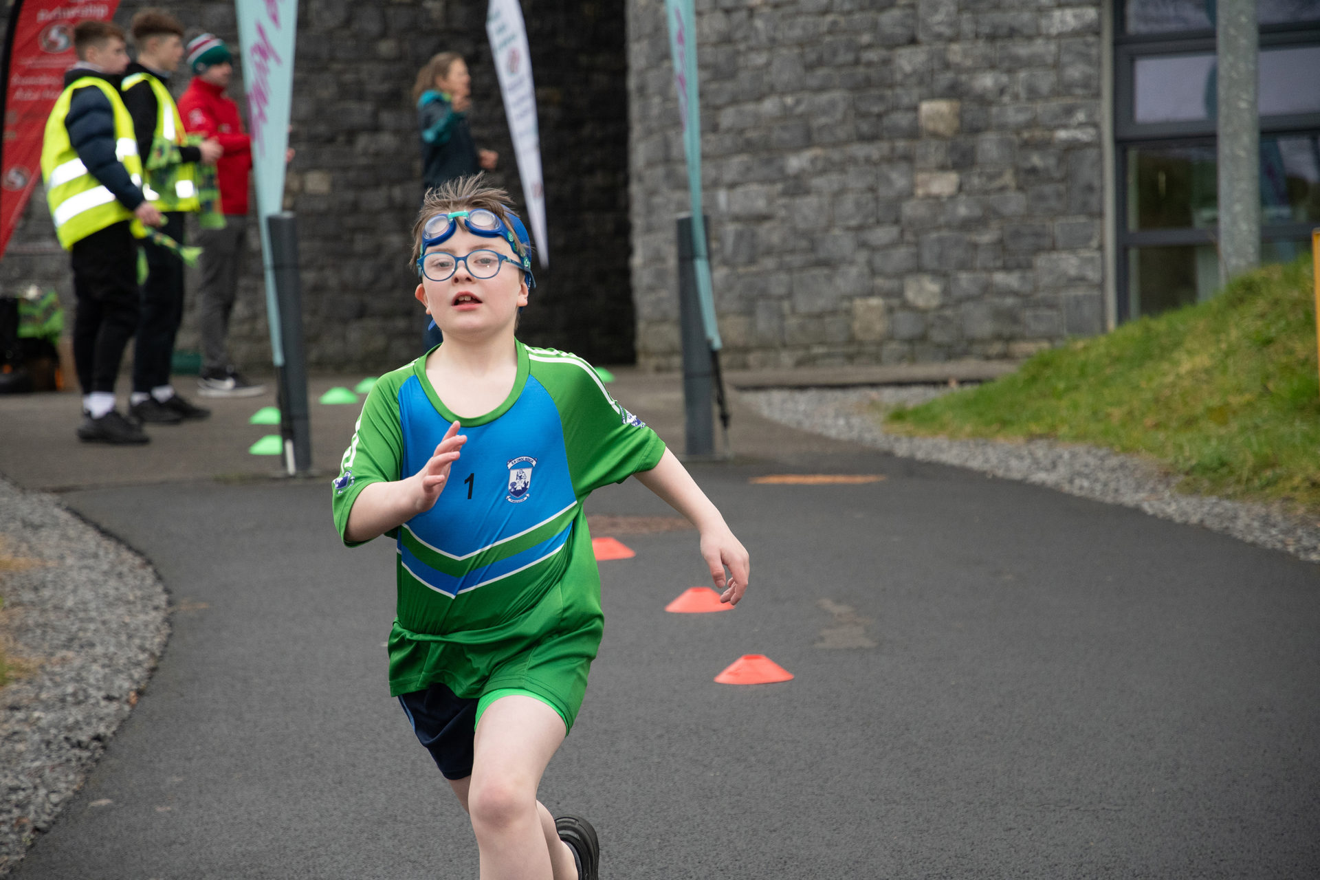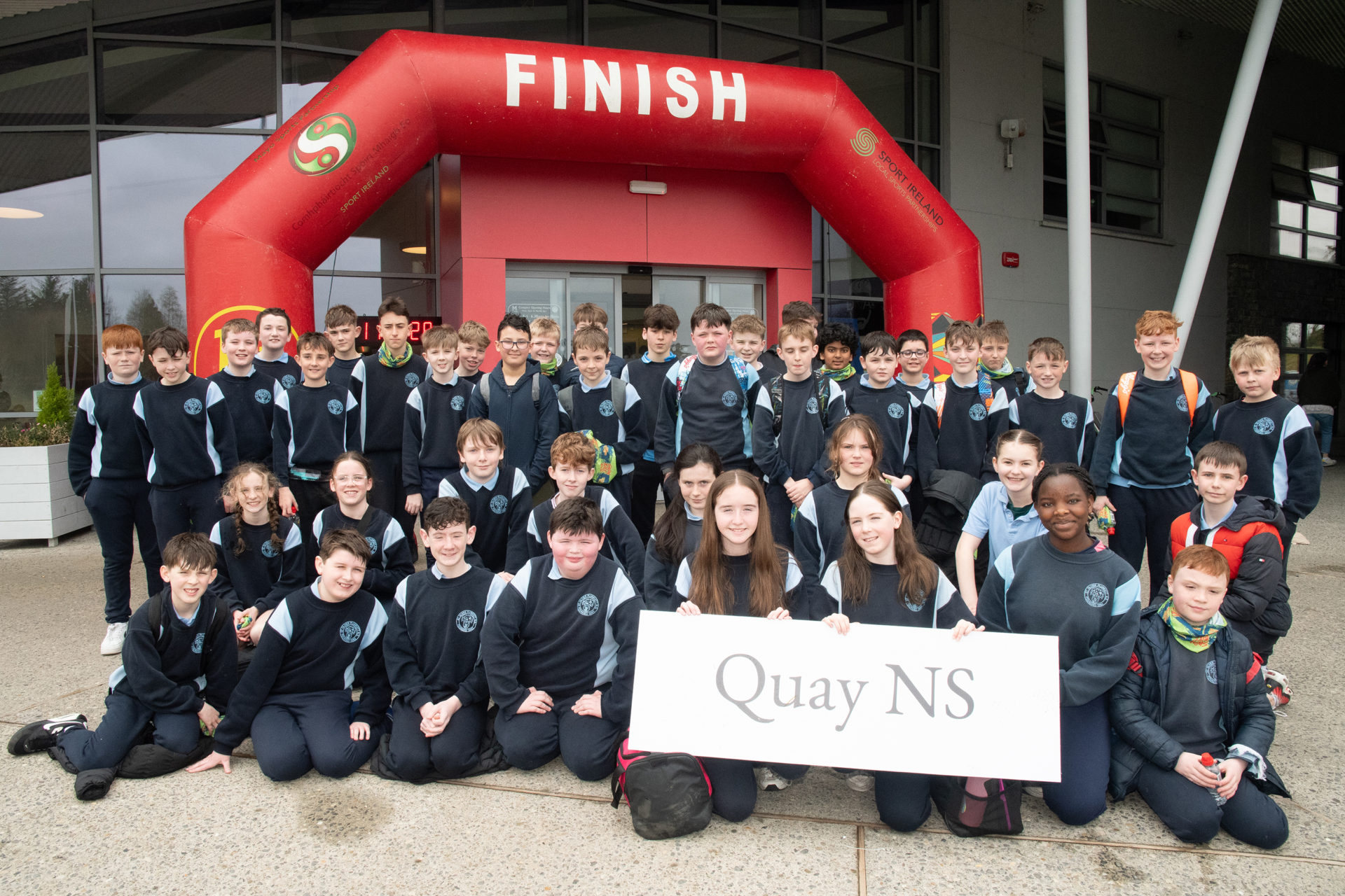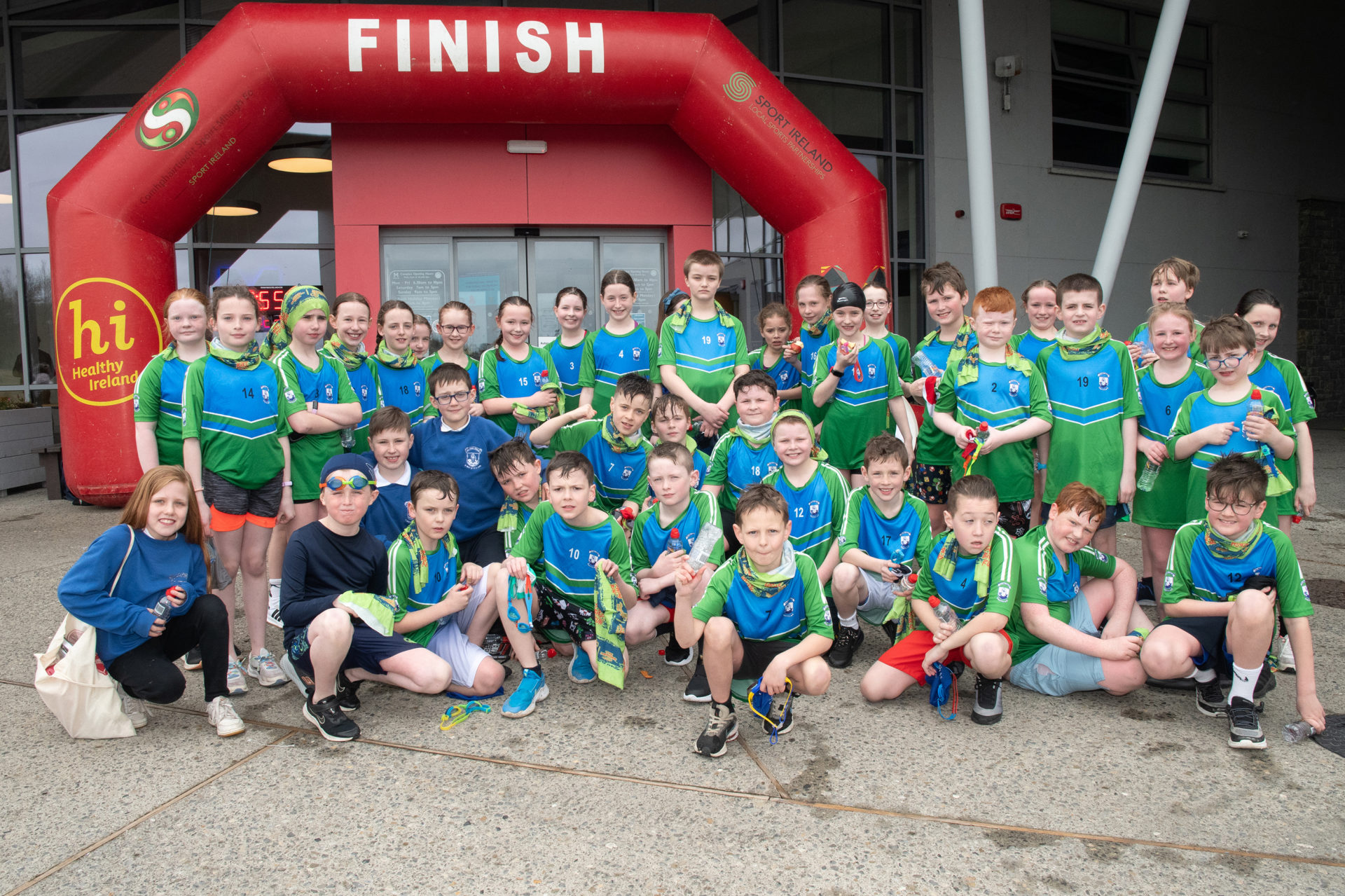 Triathlon Ireland in collaboration with Mayo Sports Partnership held our annual Splash and Dash in Lough Lannagh on the 25th of March 2025. This is the fourth year of the event and each year it goes from strength to strength. There were 16 schools represented with over 450 primary school students taking part. The students come from schools all over the county and are from 3rd – 6th class. The event consists of a 150m pool swim, a quick transition from swim to run and a run around the Lough Lannagh Leisure centre and park crossing the lake bridge of the Lough Lannagh to a turn around point, covering a distance of approximately 1.5km. There were 3 waves with approximately 150 students per wave. Each school completed their event together, and wore their school jersey. There was a steady flow of swimmers and runners throughout each wave.