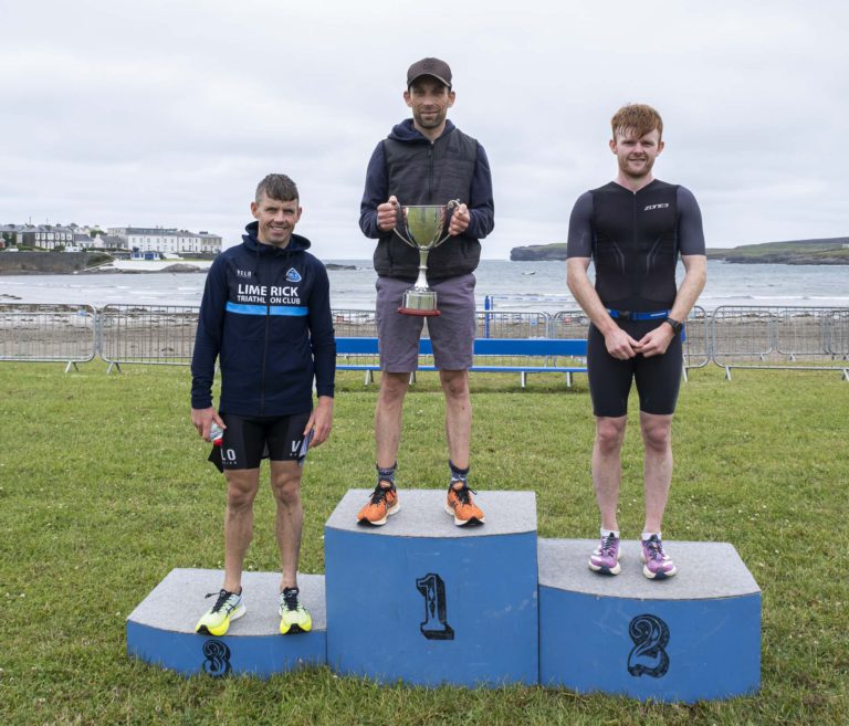 In the female race, Limerick Triathlon Club dominated the podium with Kathryn Fahy crossing the finish line first, in a time of 02:31:41, followed by fellow club member Roisin Kelleher who held the fastest run (00:43:26). Cork Tri Club’s Maura Barry rounded out the podium, claiming 3rd place. Piranha’s Claire Diffley was the first female out of the water with a time of 00:22:42. Kathryn Fahy completed the fastest cycle which secured her 1st place on the podium (01:22:18).