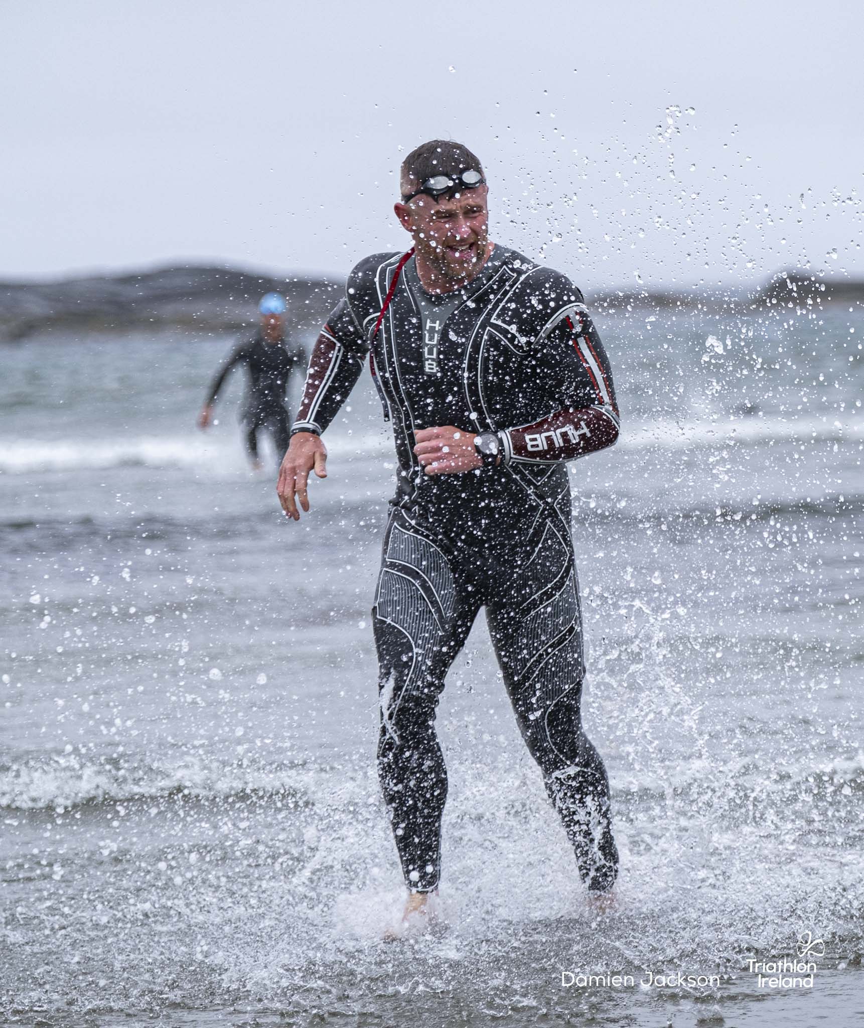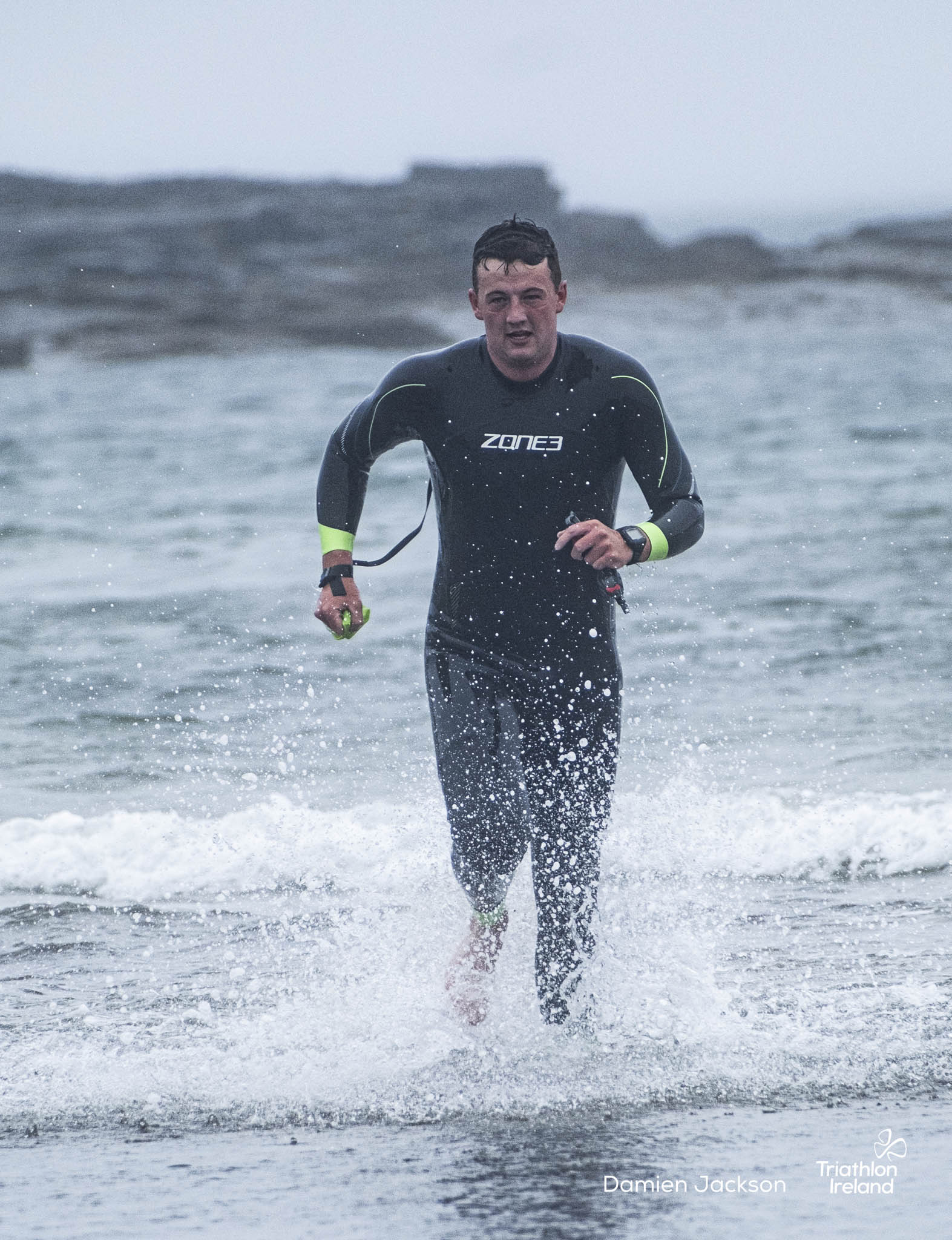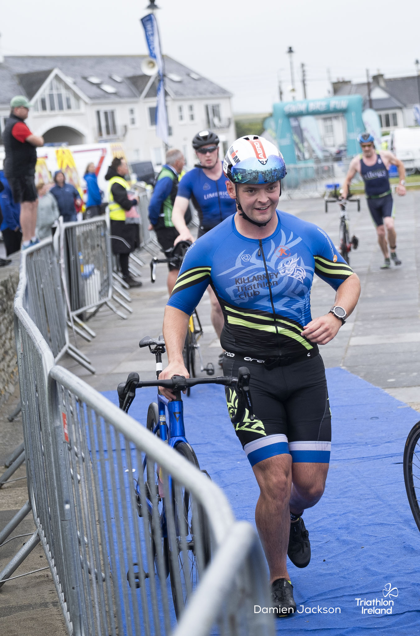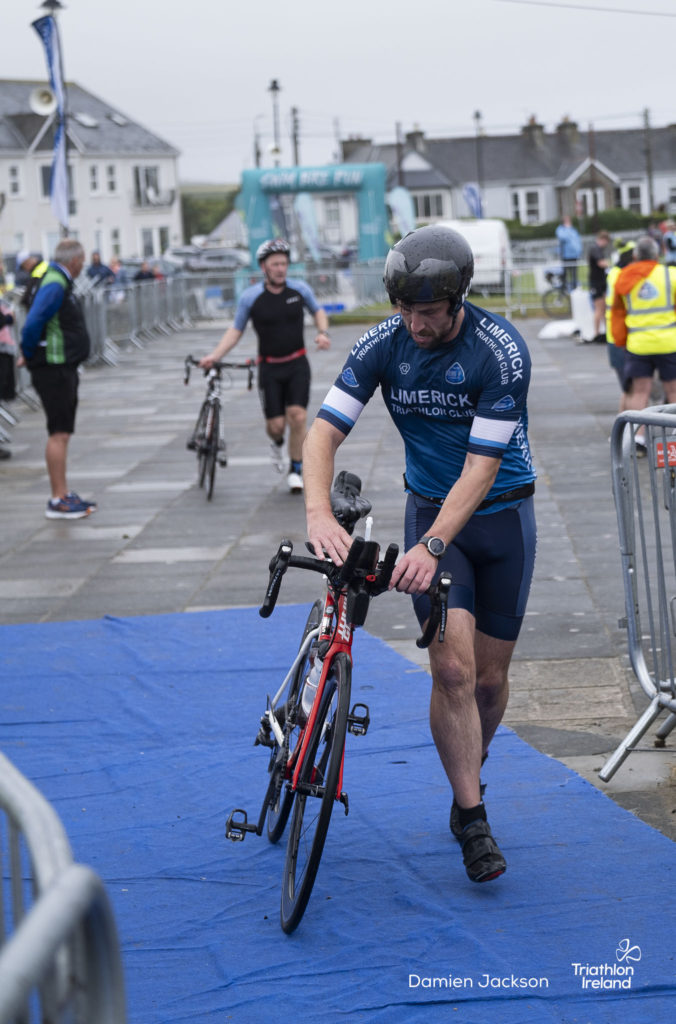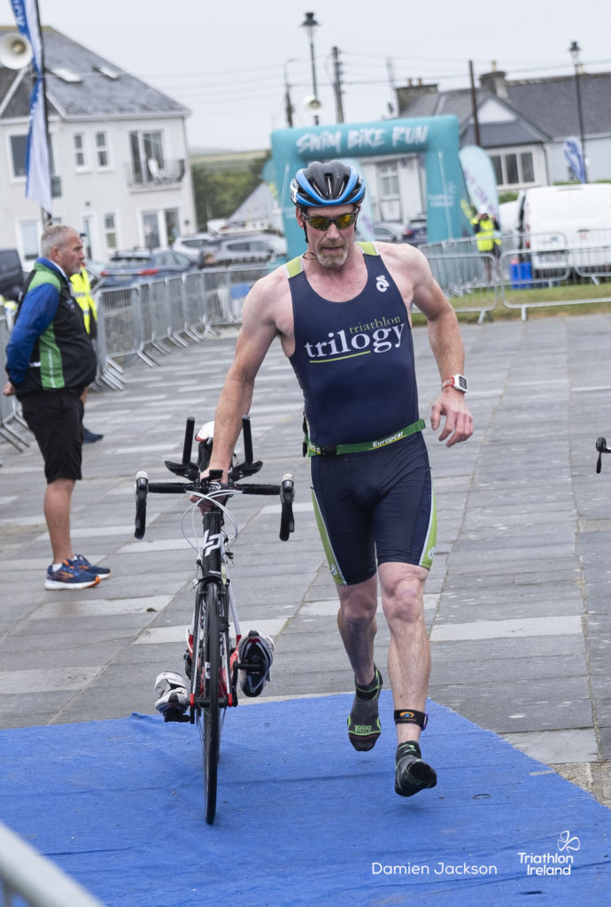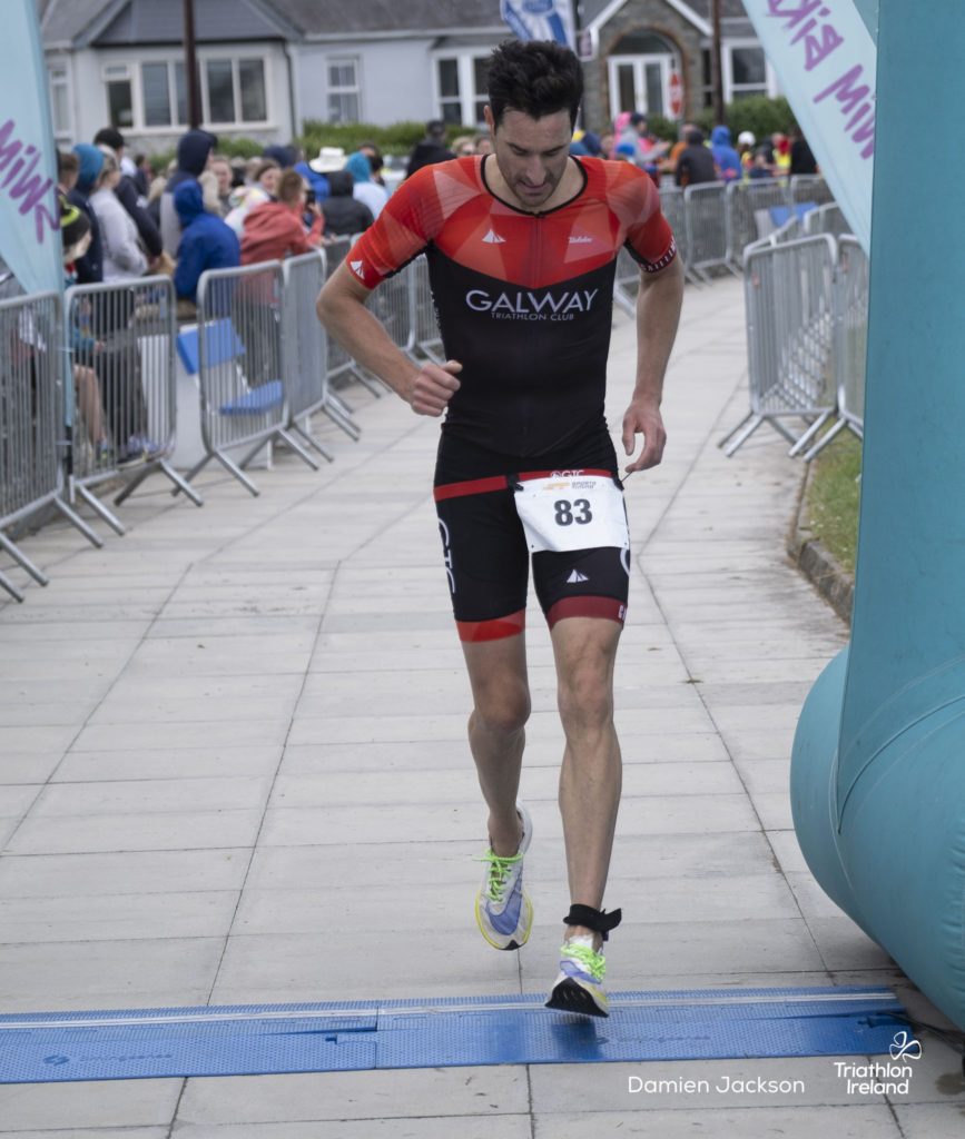 The race kicked off on the beach & the athletes tackled the incoming tide with confidence as they completed the 1.5km single lap swim route. Ryan Ates from South Coast Tri Club led the pack, emerging from the water first with a time of 00:21:27. Overall winner Donncha Kiely finished the 46km bike course in a time of 01:11:46 alongside Martin Divilly from Galway Tri Club. Donal Mongey completed the fastest run, which was a scenic 10km route overlooking the cliffs & the Atlantic ocean.