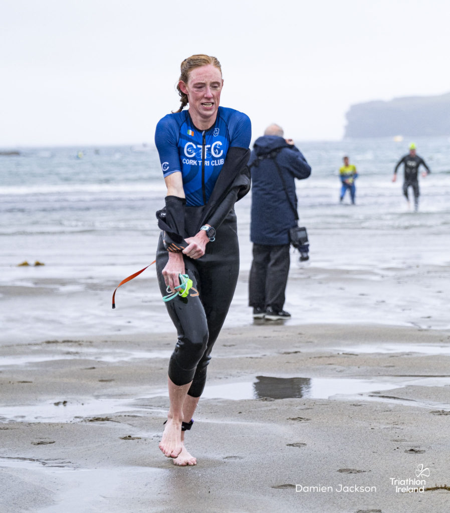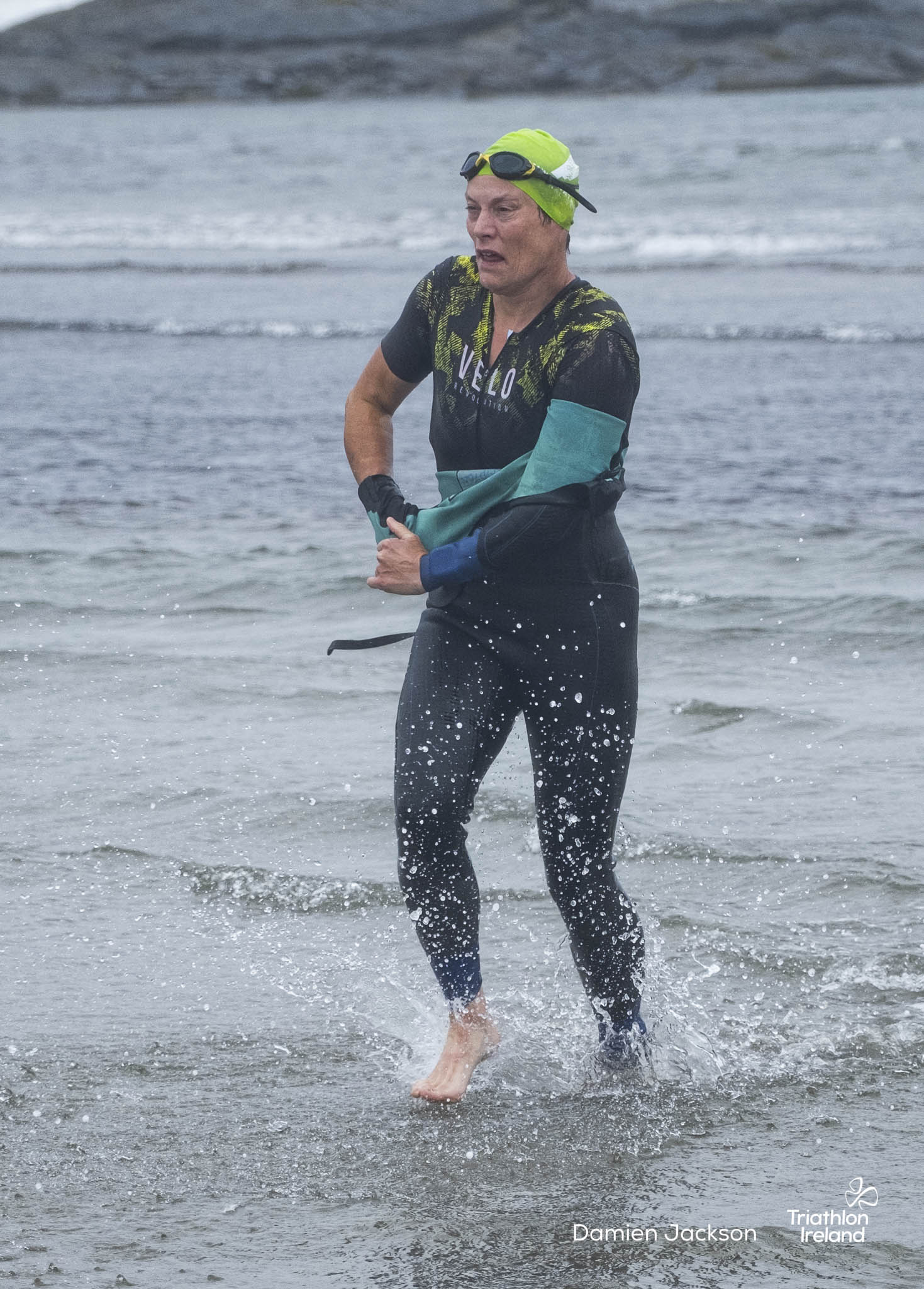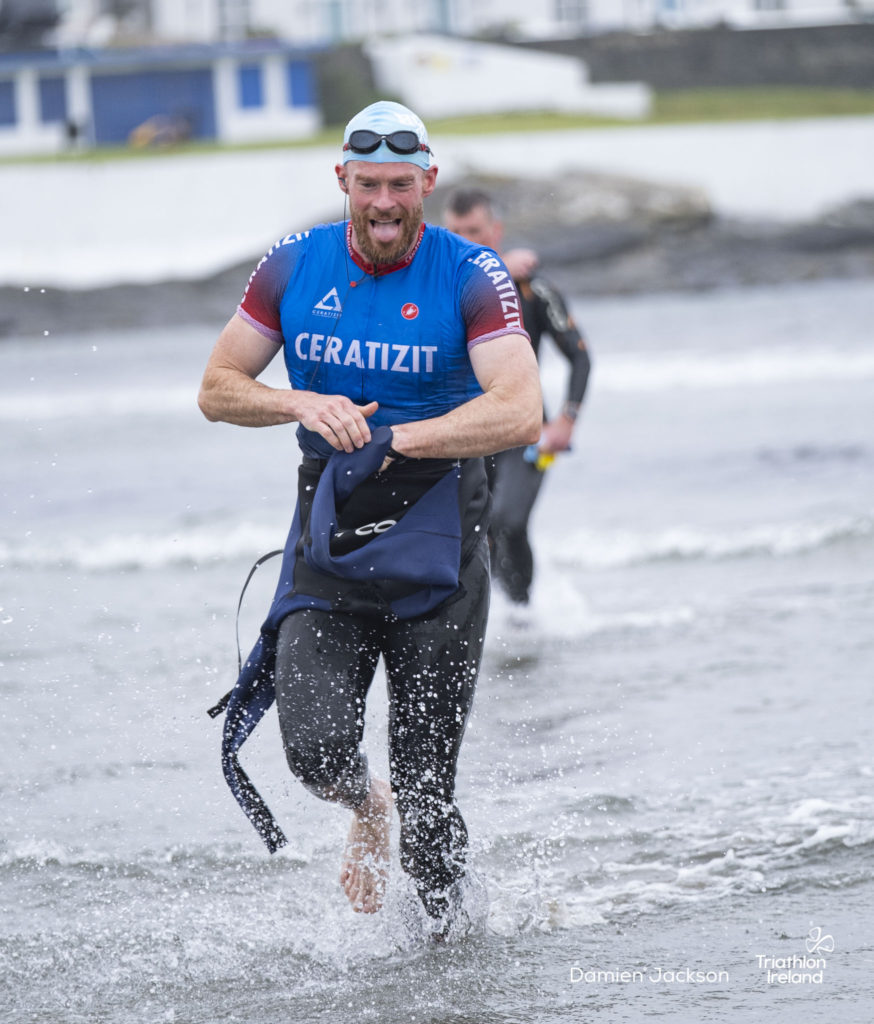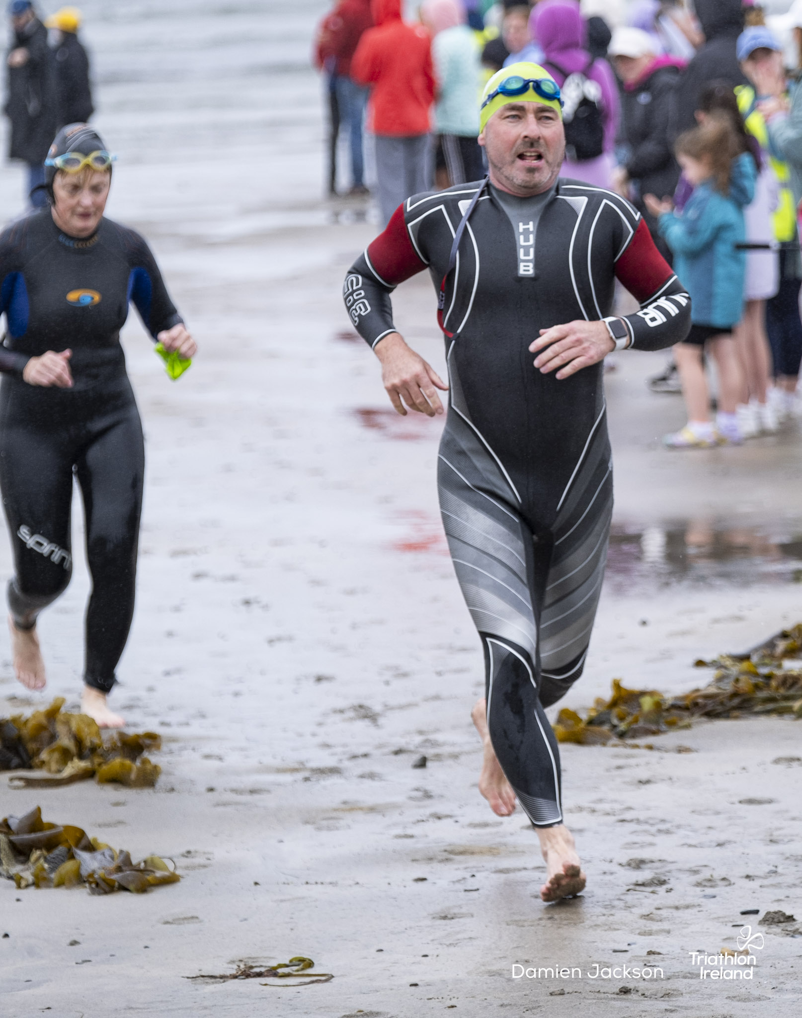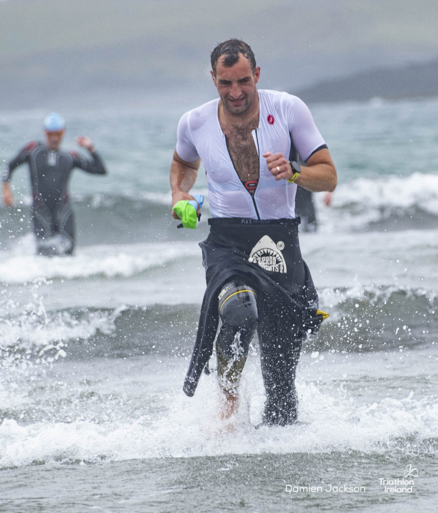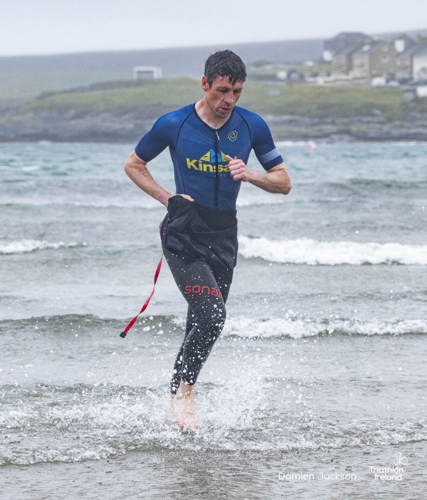 The race kicked off on the beach & the athletes tackled the incoming tide with confidence as they completed the 1.5km single lap swim route. Ryan Ates from South Coast Tri Club led the pack, emerging from the water first with a time of 00:21:27. Overall winner Donncha Kiely finished the 46km bike course in a time of 01:11:46 alongside Martin Divilly from Galway Tri Club. Donal Mongey completed the fastest run, which was a scenic 10km route overlooking the cliffs & the Atlantic ocean.