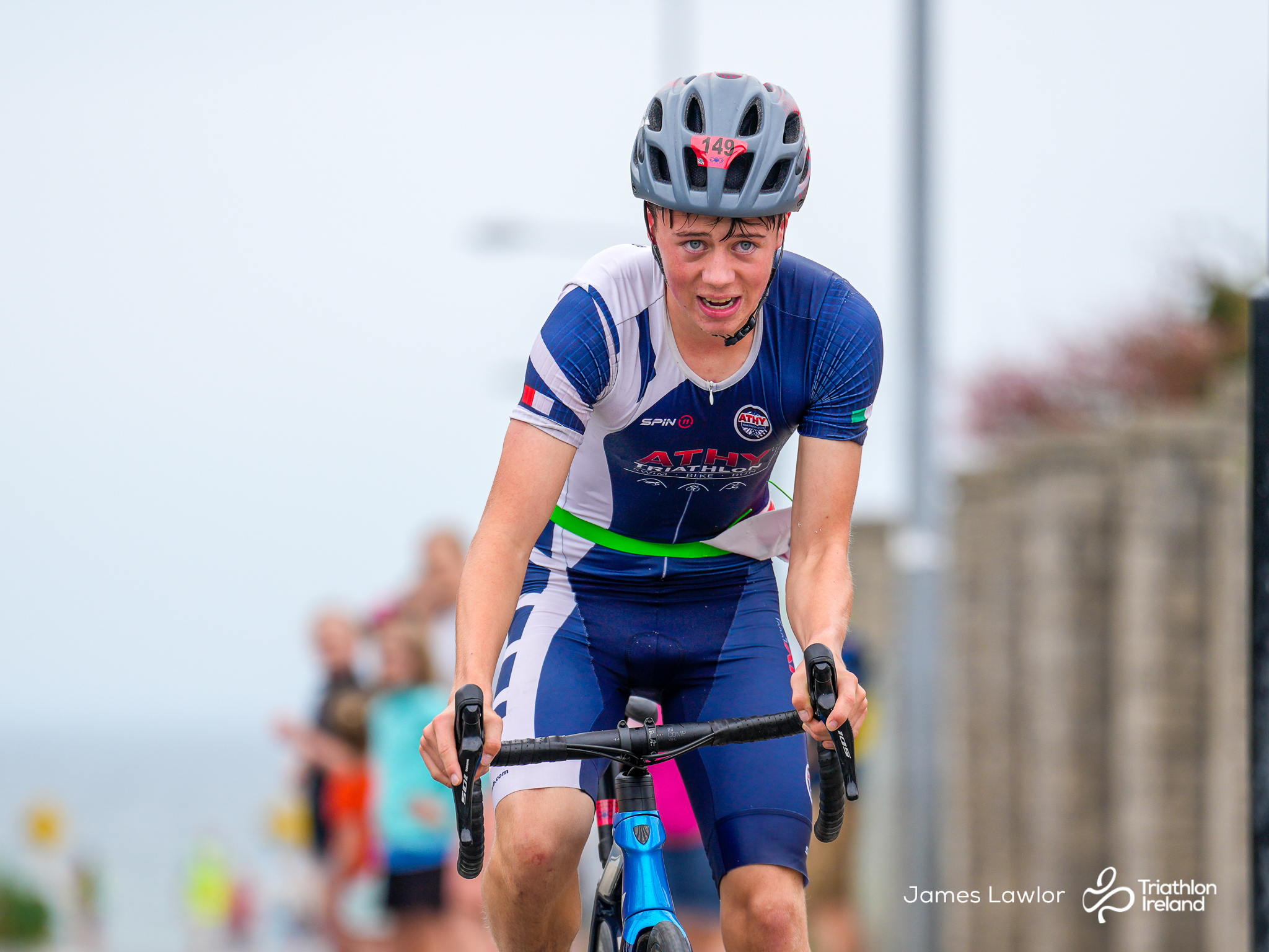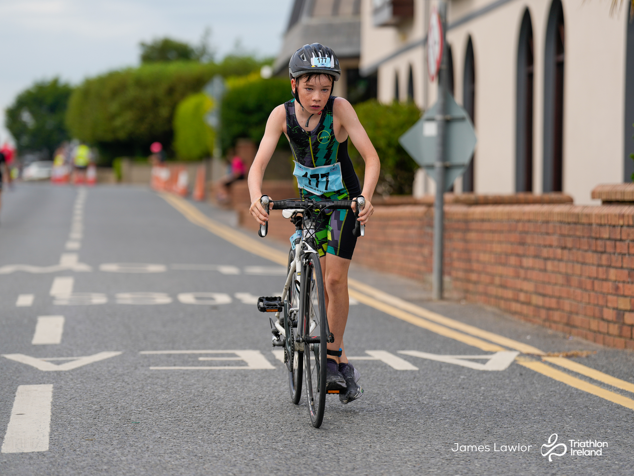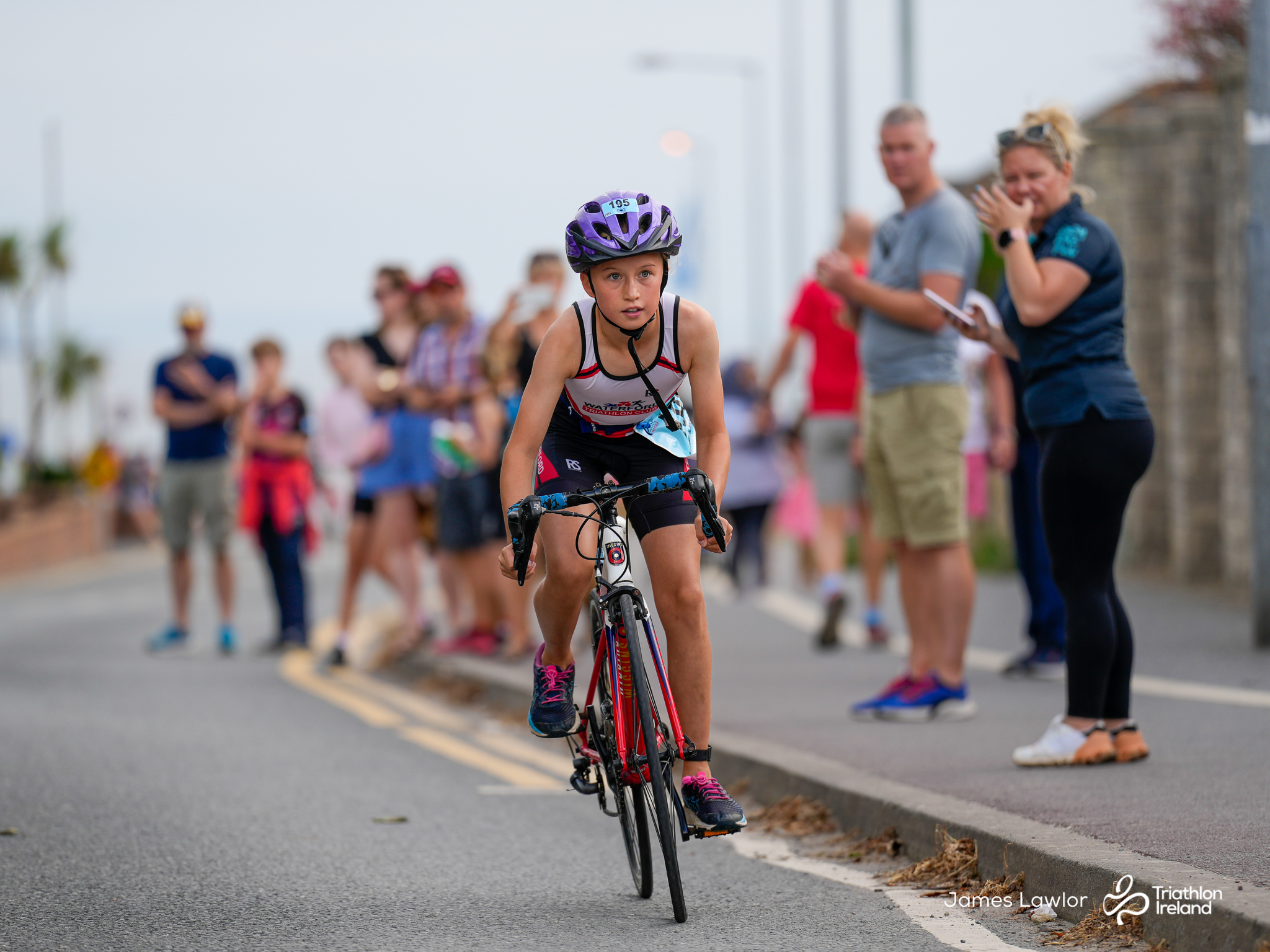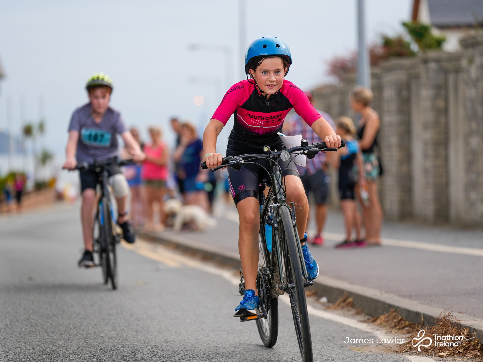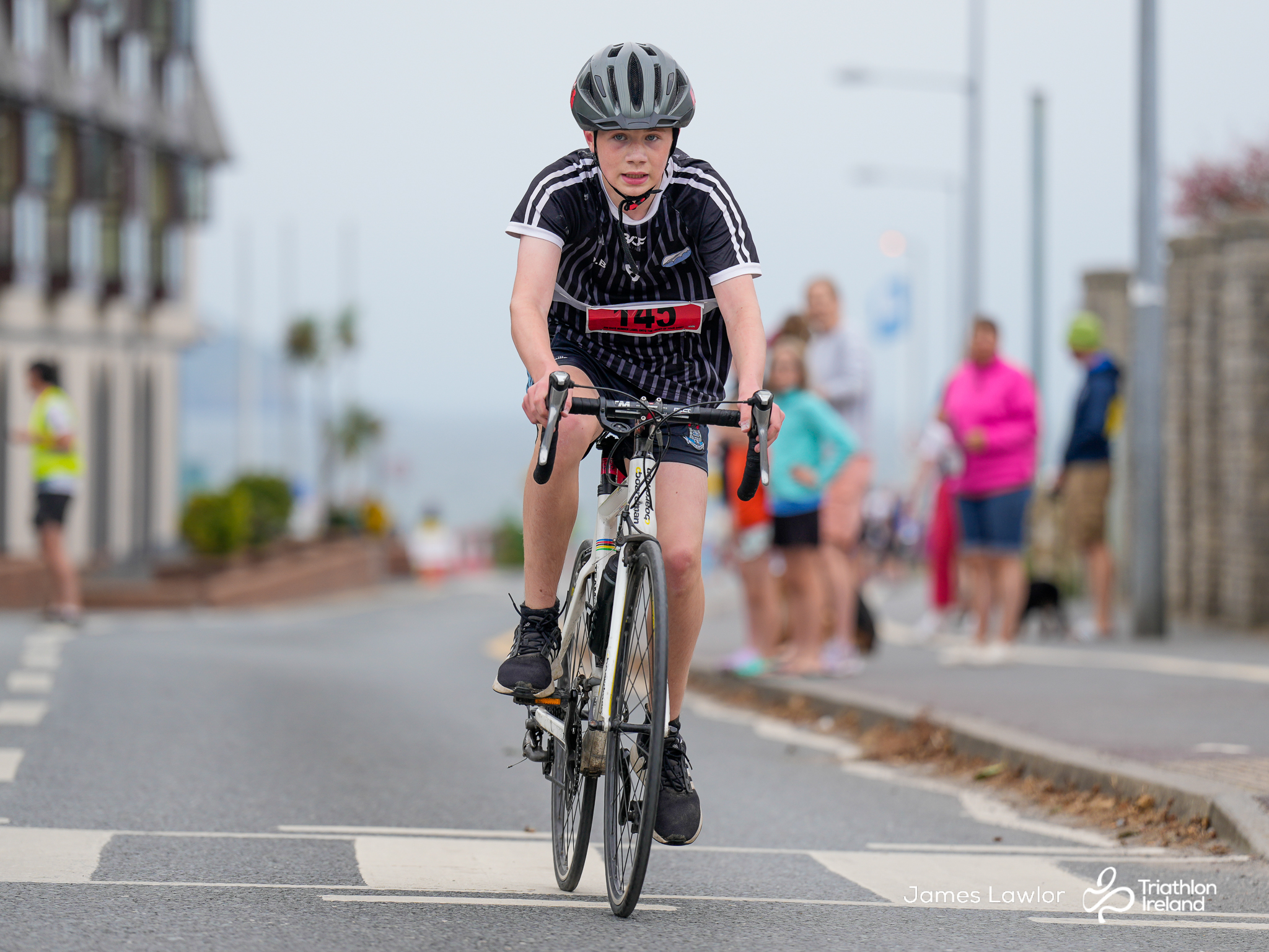 Starting with the 12 to 13 age group who had a 300 metre swim, 6.76 kilometre bike, and 1500 metre run to take on. All athletes entered the calm water together, but it was Ryan Byrne Nolan who exited first with the fastest swim split of the day, 5 minutes 22 seconds, followed by Eoghan Looney and Sam Sanders. In the female race, Anna Brett was the first to complete the swim distance in a time of 5 minutes and 48 seconds, just over a minute later Orna Ni Mhuiri followed out in second place and Lucy Cunningham exited in third place.