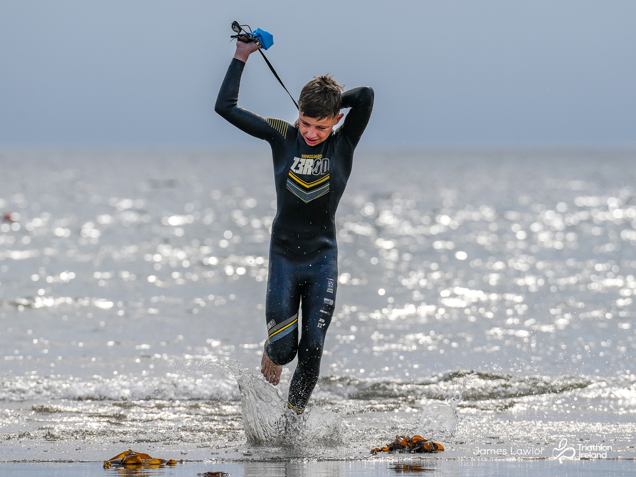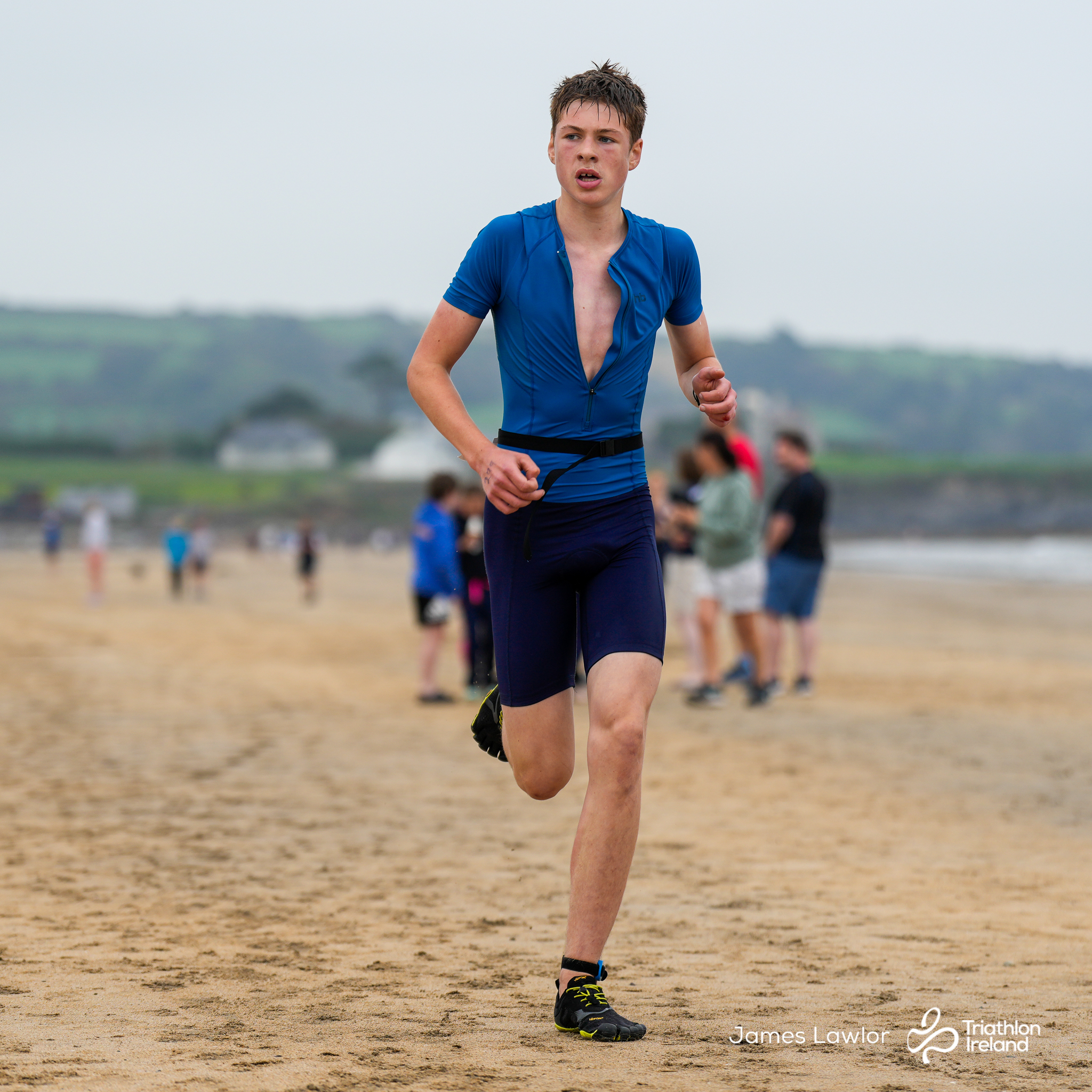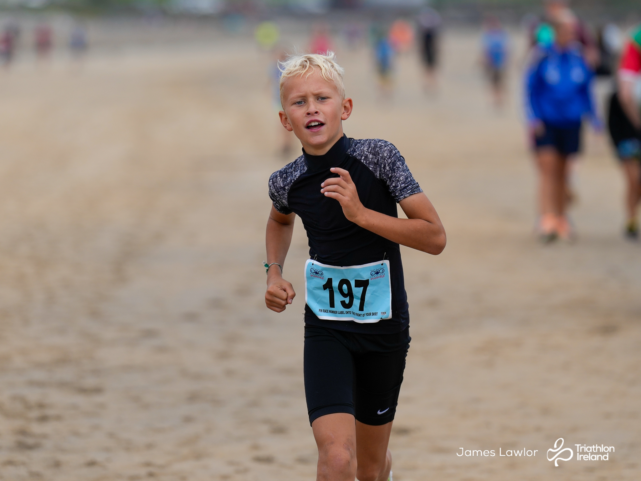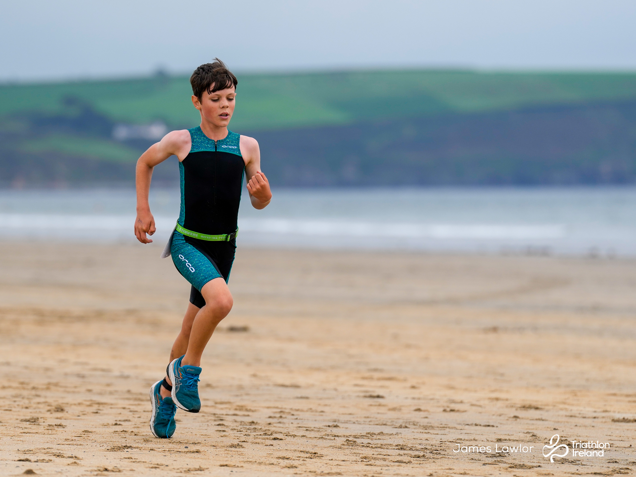 The bikes were rapidly racked, helmets hung up, and shoes swapped – these amazing athletes were ready to run. 2500 metres up the stunning Clonea Strand was an amazing sight to watch. Matthew Mahony was the fastest over the run leg in a time of 8 minutes 30 seconds, Peter Woods was the second fastest on the run, and Finaly Carry the third fastest. Maintaining her lead, Lara Buck was the quickest female runner with a time of 10 minutes 6 seconds, followed by Amy O’Rourke, and Sophie Currie.