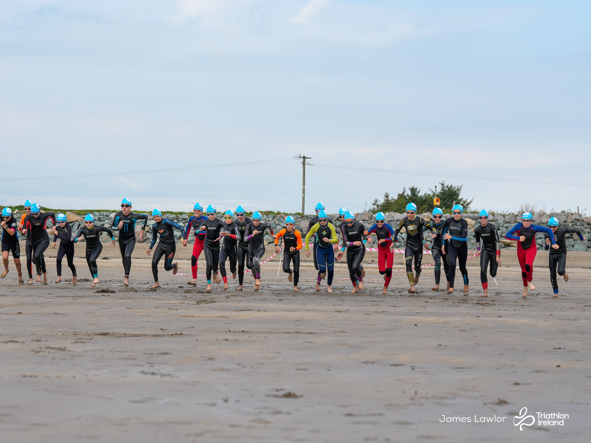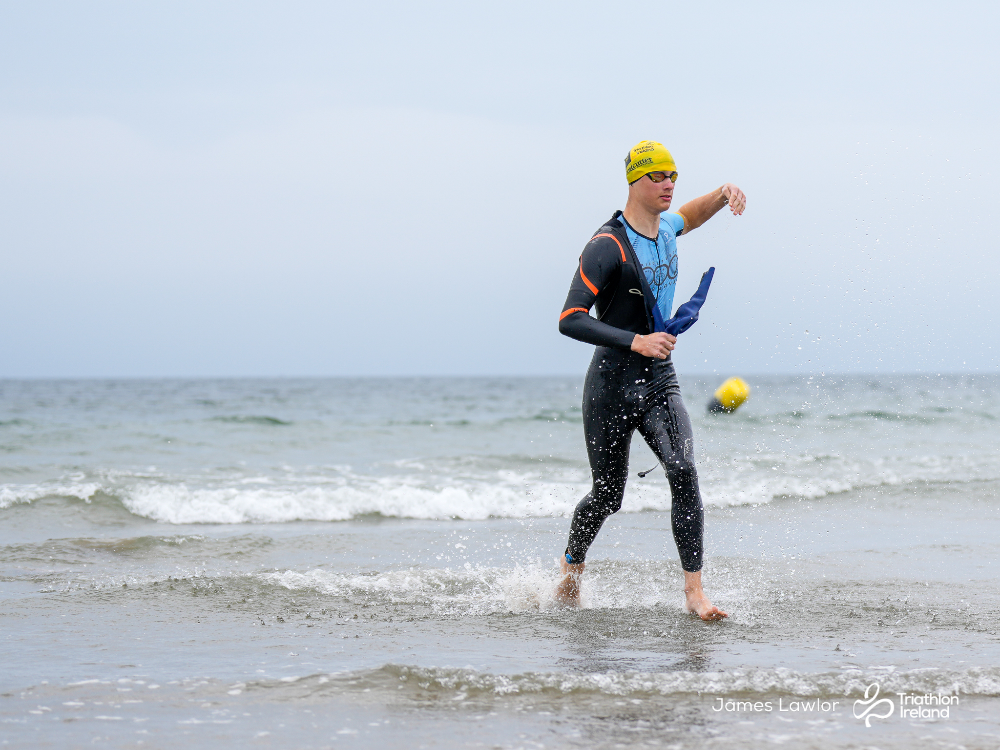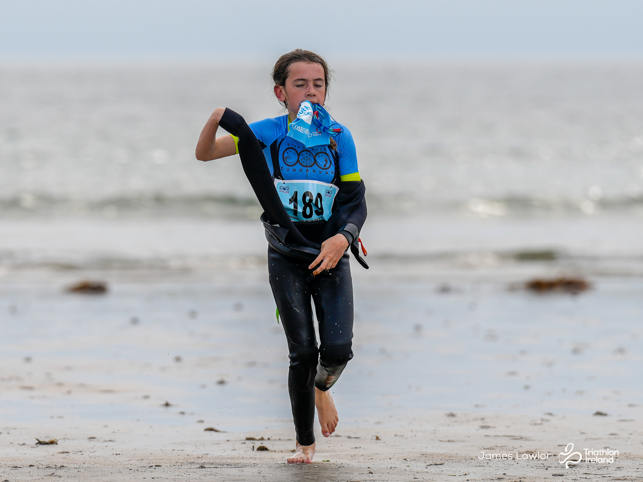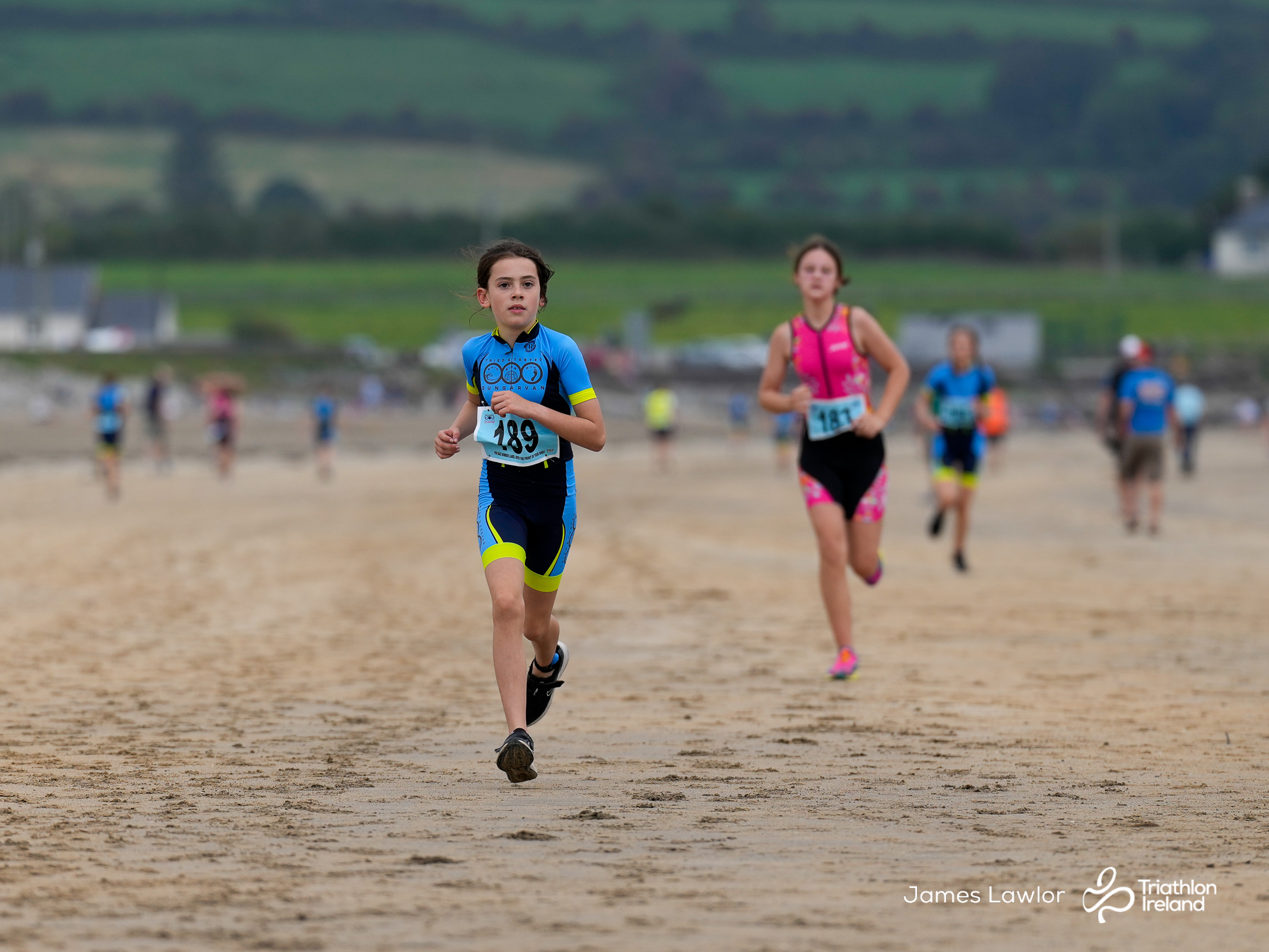 The bikes were rapidly racked, helmets hung up, and shoes swapped – these amazing athletes were ready to run. 2500 metres up the stunning Clonea Strand was an amazing sight to watch. Matthew Mahony was the fastest over the run leg in a time of 8 minutes 30 seconds, Peter Woods was the second fastest on the run, and Finaly Carry the third fastest. Maintaining her lead, Lara Buck was the quickest female runner with a time of 10 minutes 6 seconds, followed by Amy O’Rourke, and Sophie Currie.