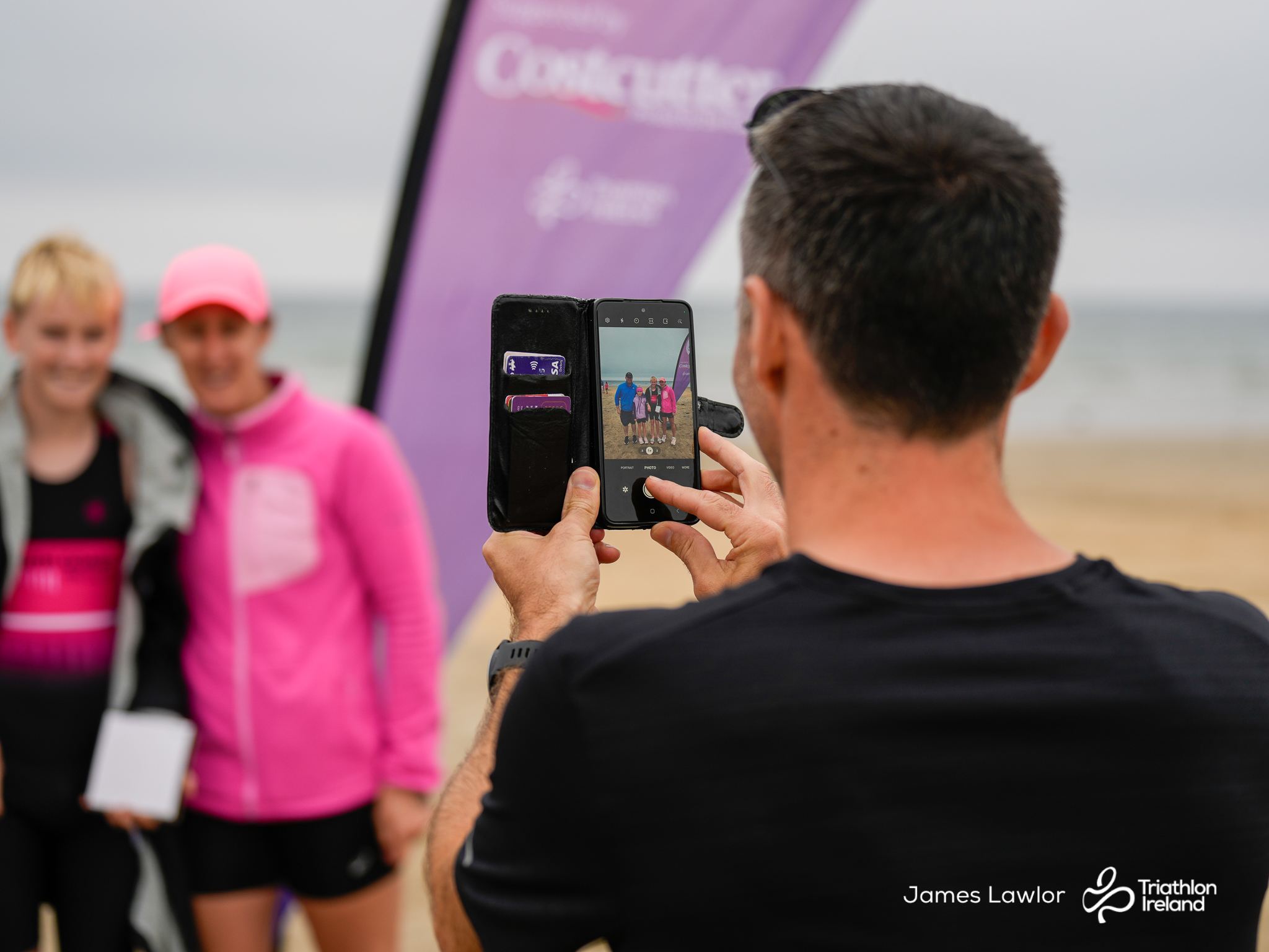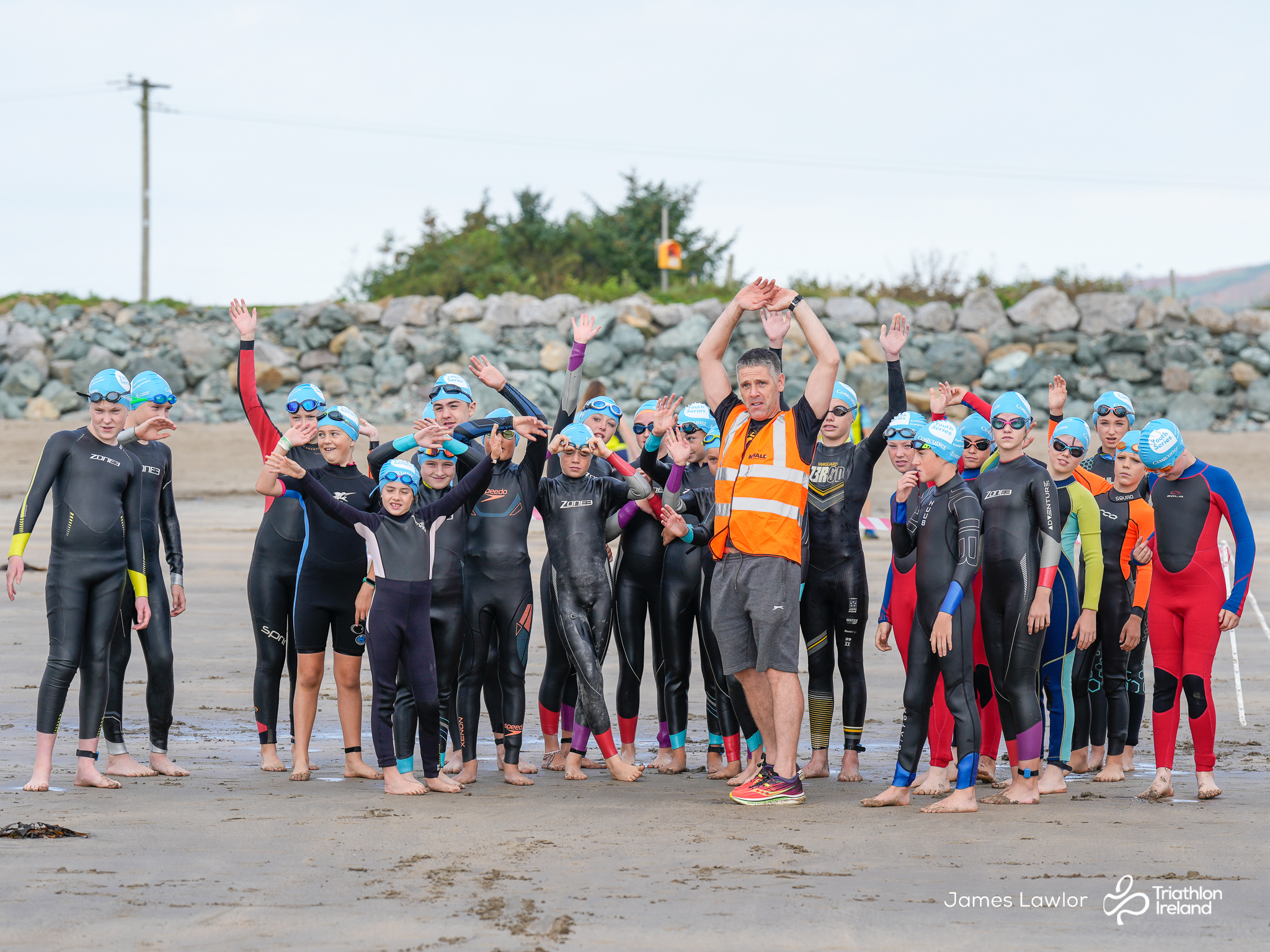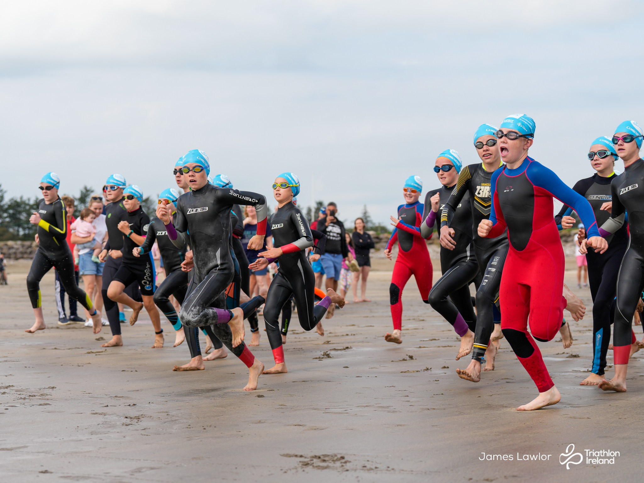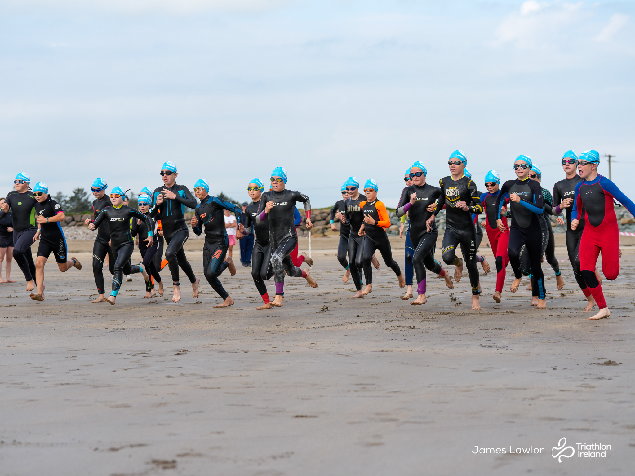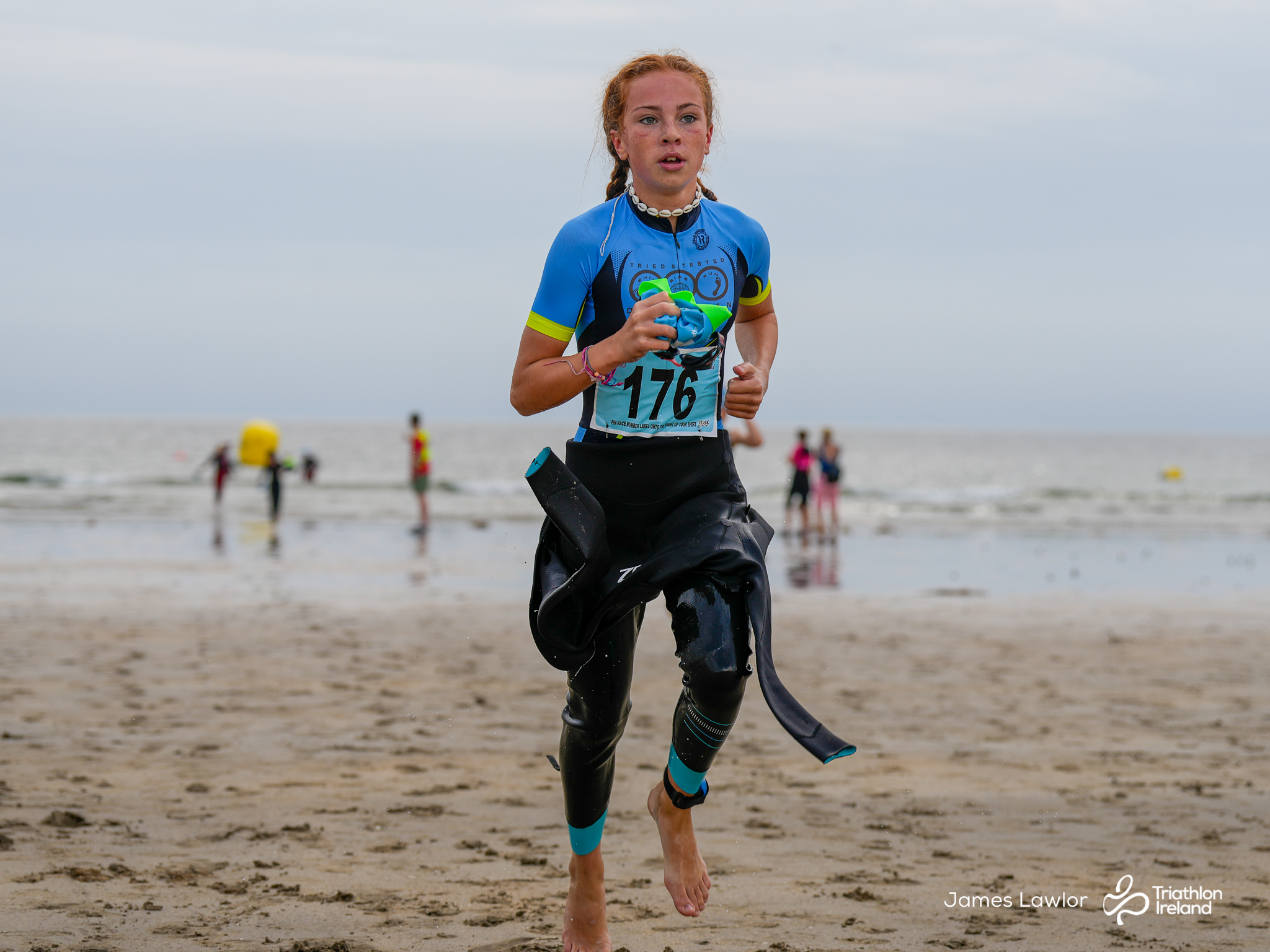 The bikes were rapidly racked, helmets hung up, and shoes swapped – these amazing athletes were ready to run. 2500 metres up the stunning Clonea Strand was an amazing sight to watch. Matthew Mahony was the fastest over the run leg in a time of 8 minutes 30 seconds, Peter Woods was the second fastest on the run, and Finaly Carry the third fastest. Maintaining her lead, Lara Buck was the quickest female runner with a time of 10 minutes 6 seconds, followed by Amy O’Rourke, and Sophie Currie.