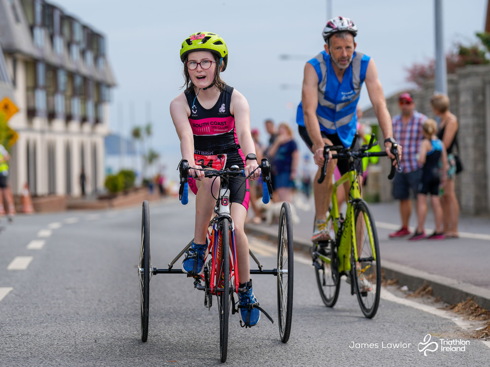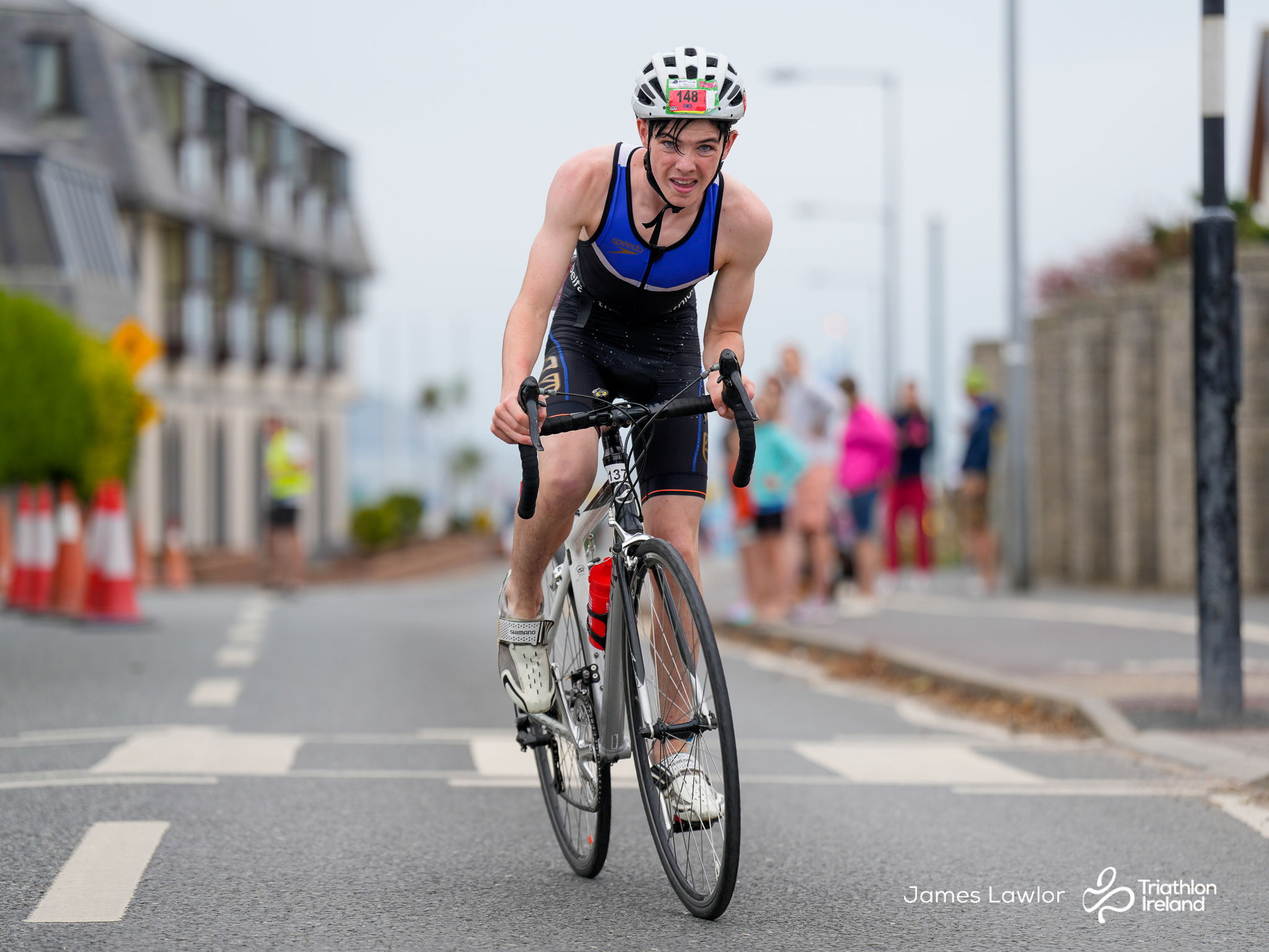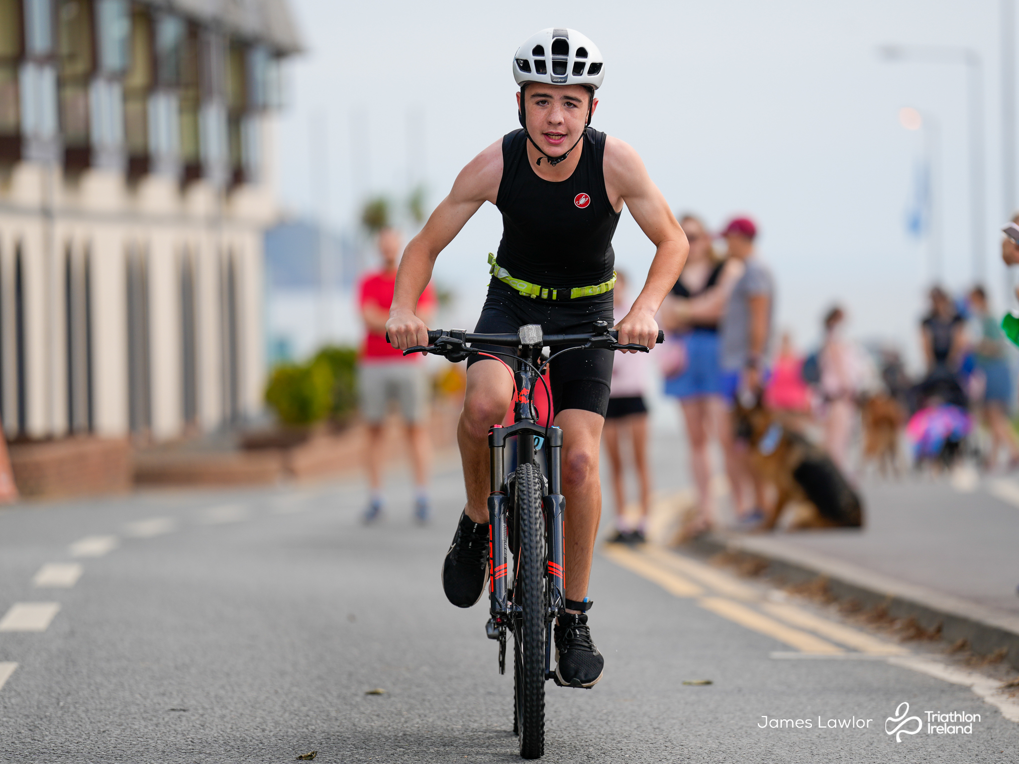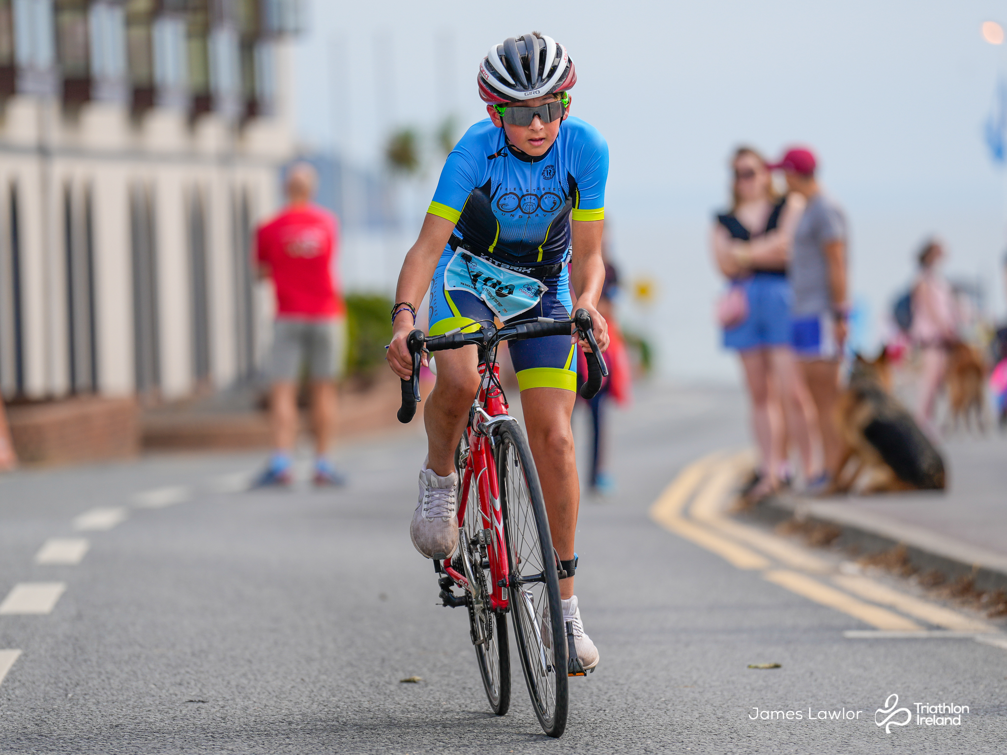 After T1, all athletes had the fast and flat bike course to take on. MJ Walsh had the fastest bike split taking him 12 minutes and 28 seconds to complete the distance followed by Ryan Byrne Nolan, and Eoghan Looney with Ben Storey shortly after. For the females, Lucy Cunnighman covered the bike course in 14 minutes 11 seconds, closely followed by Luisne DePaor, Anna Brett and Ciara O’Donovan. Huge kudos to all the athletes who navigated their way around the tight turnaround points impeccably, for spectators, it was fantastic to see such amazing skill on display!