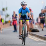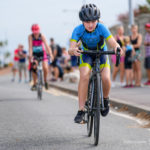In the 14 to 15 age group, they were ready for the race which consisted of a 400 metre swim, a 10.14 kilometre bike, and a 2500 metre run. Similar to the previous 16 to 17 and 12 to 13 age group race, these athletes had a mass start from the shore. Plenty of high knees and porpoise dives through the water and they were into their stride. Kevin McNally was the fastest swimmer on