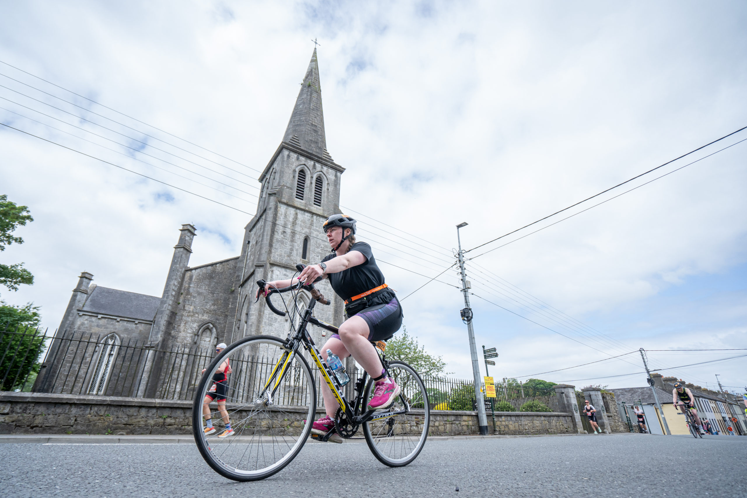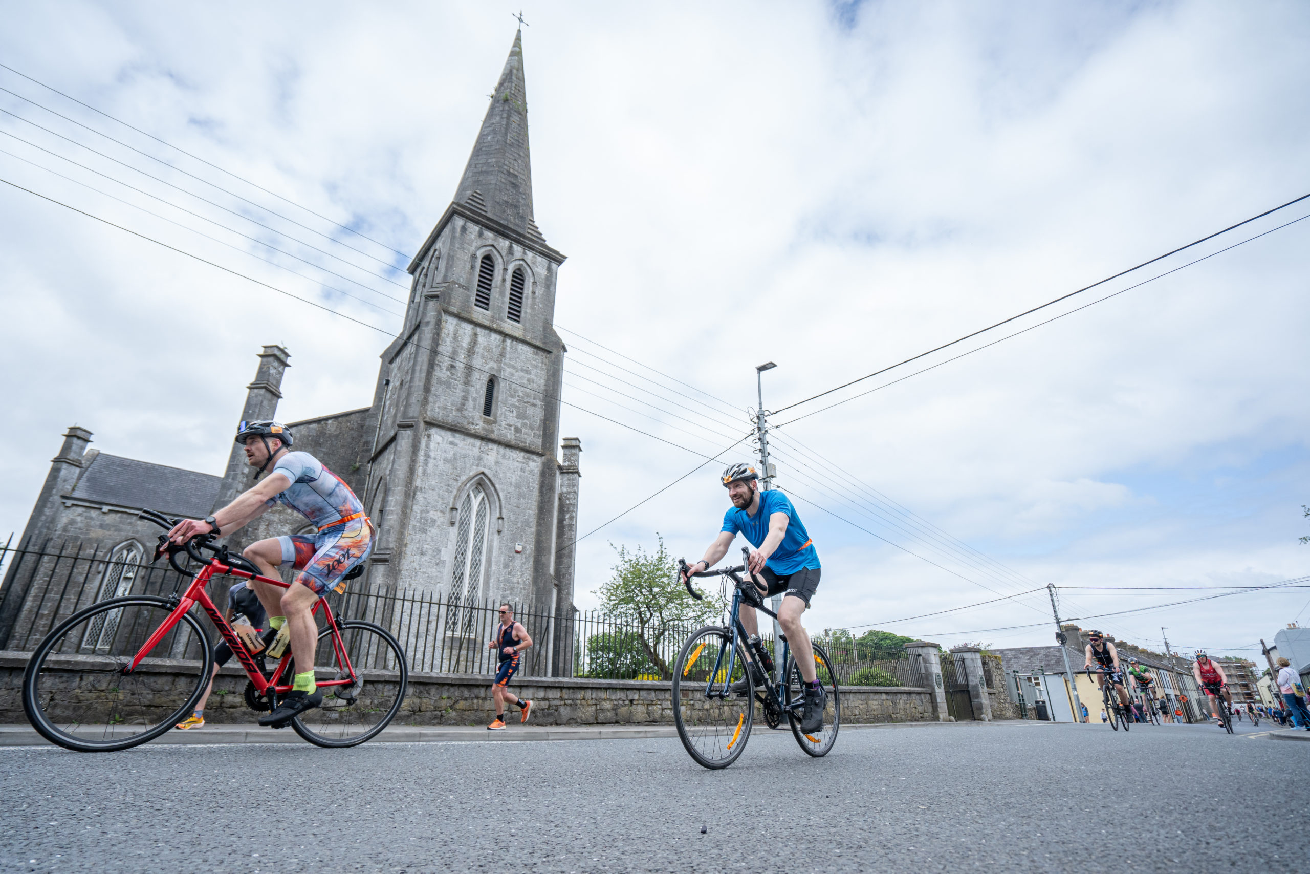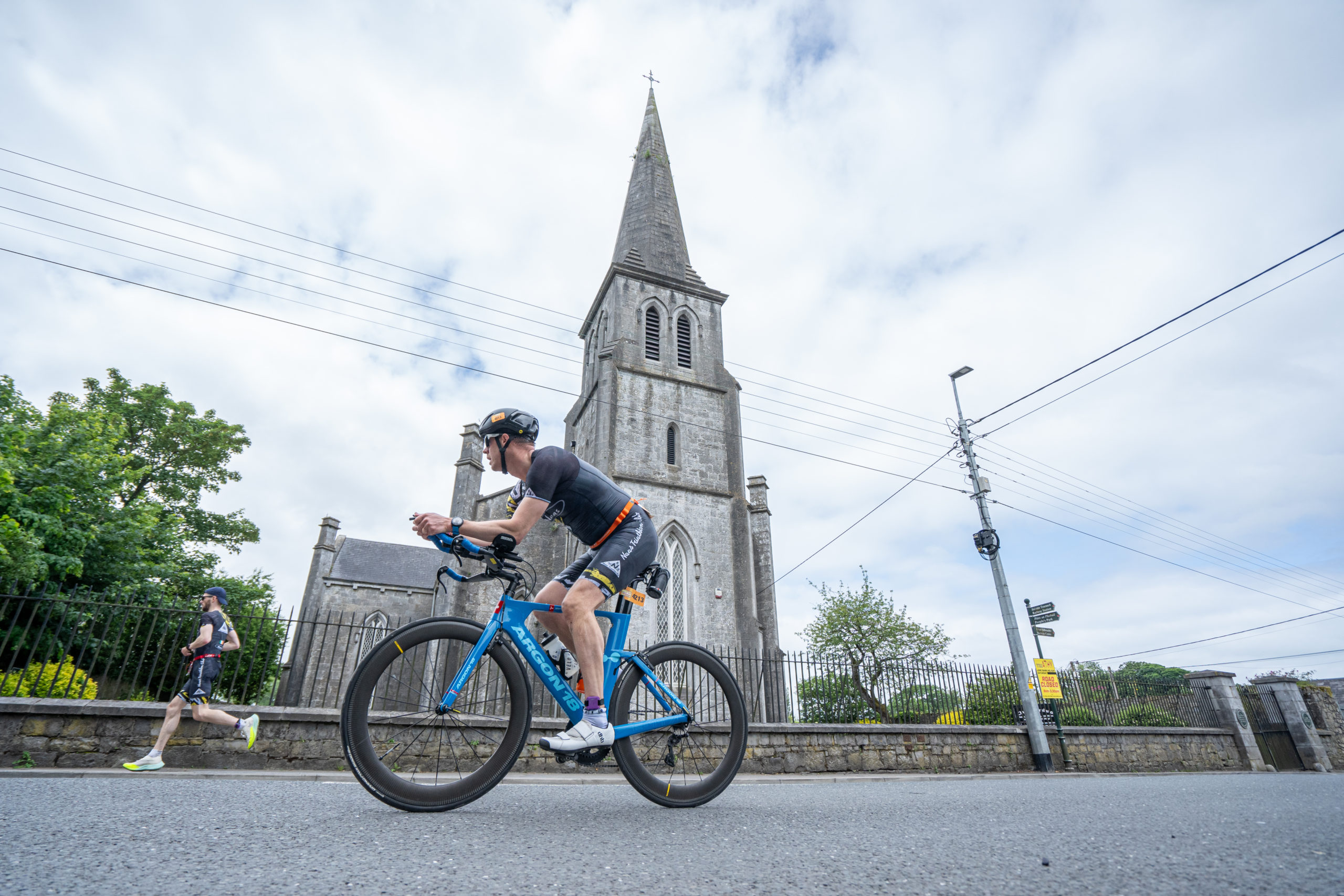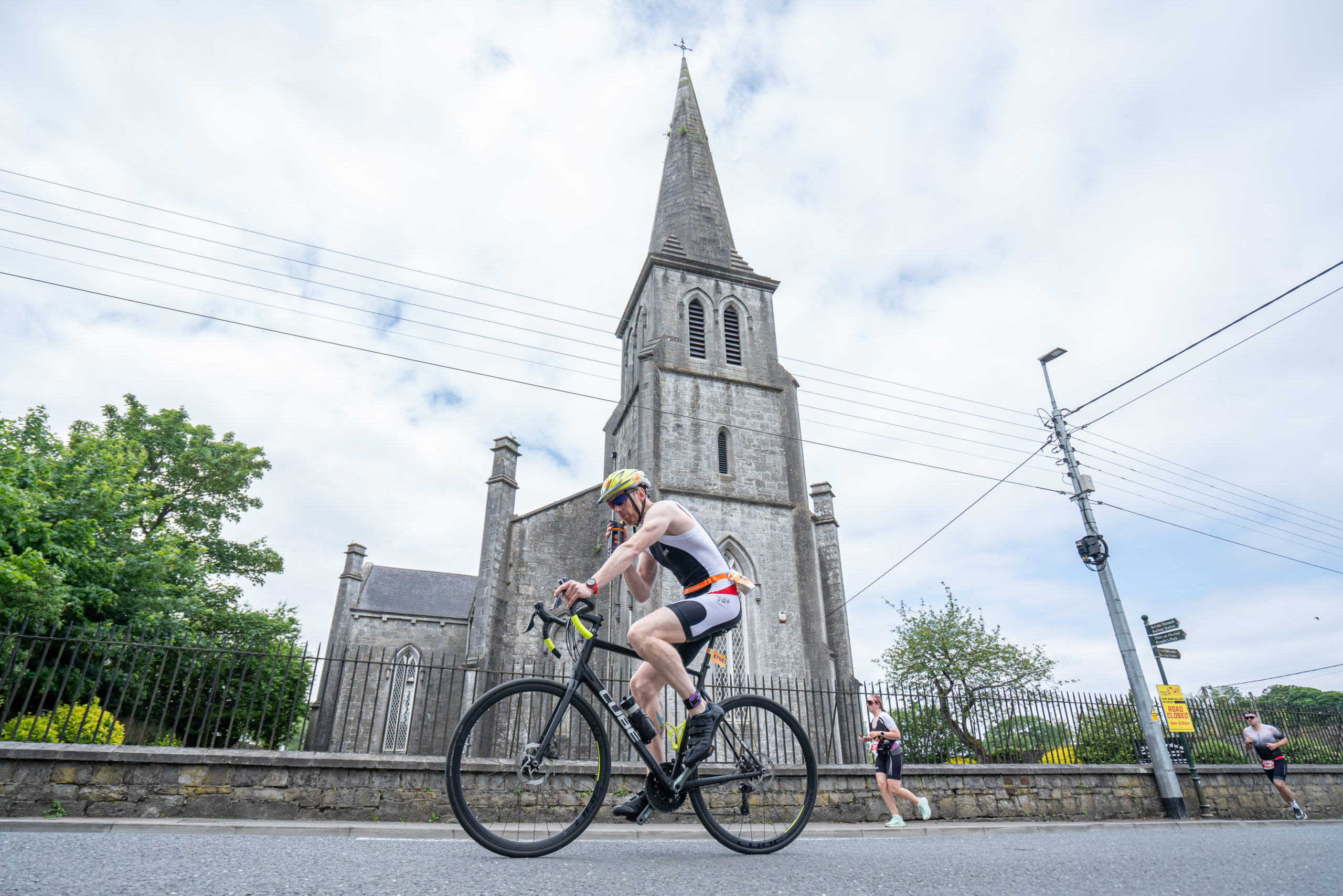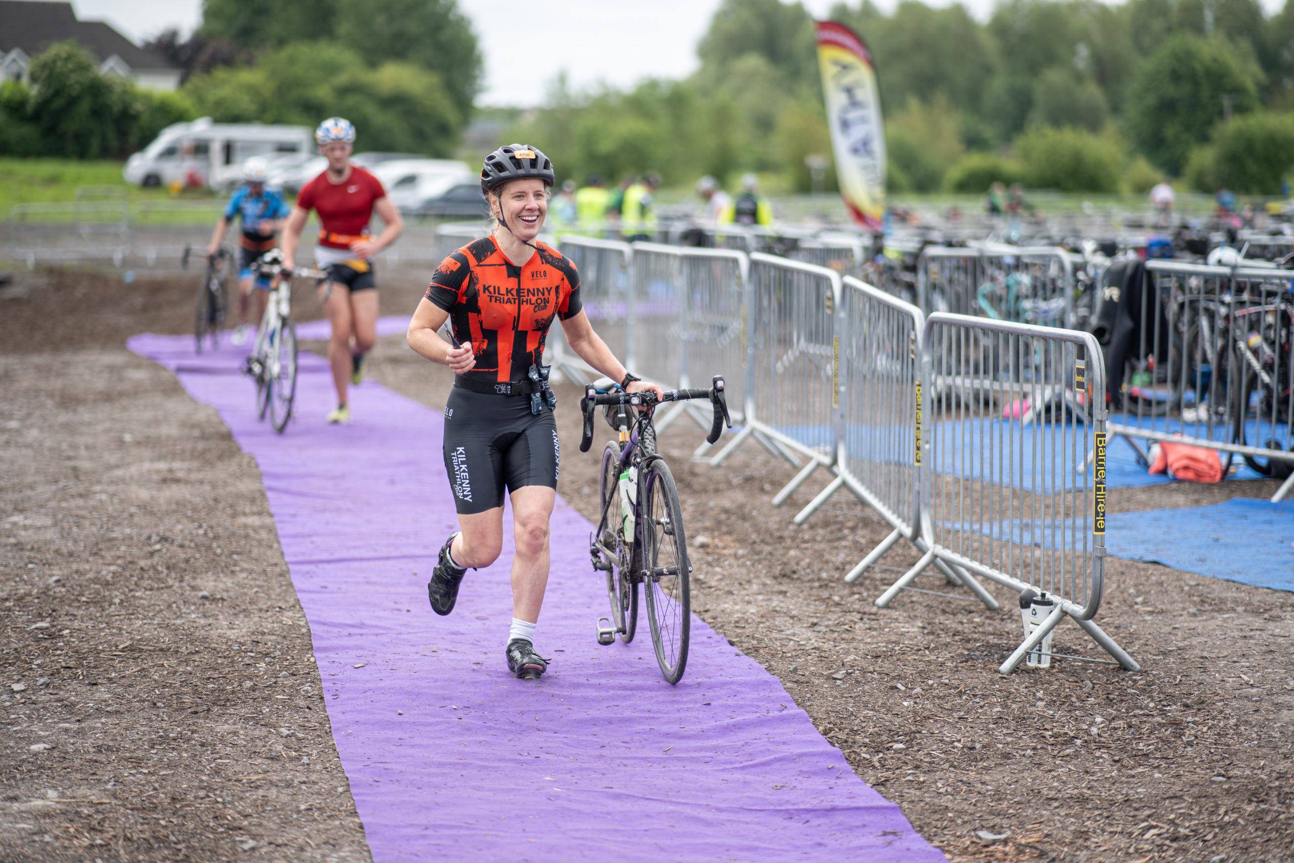 The cycle consisted of a 40 km lap through the south of Athy. The majority of the course was on wide, closed roads, with the remaining sections covering a more technical area close to Kilkea Castle and Castledermot. Paul Carroll took the lead in the Men’s race, with a bike time of 00:56:16. In the Women’s race, Becky Woods from Piranha took the lead and completed the bike in 01:03:27.