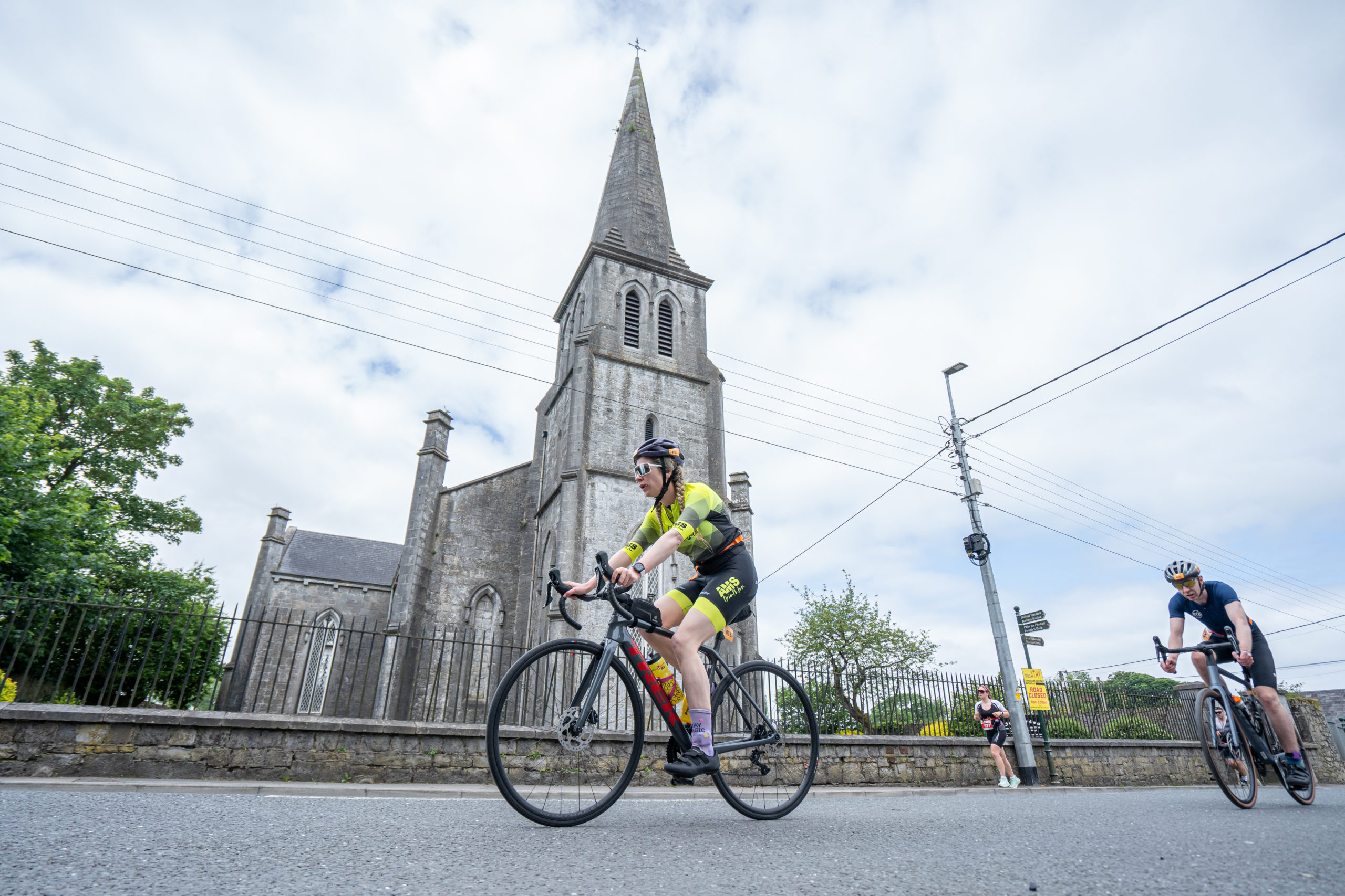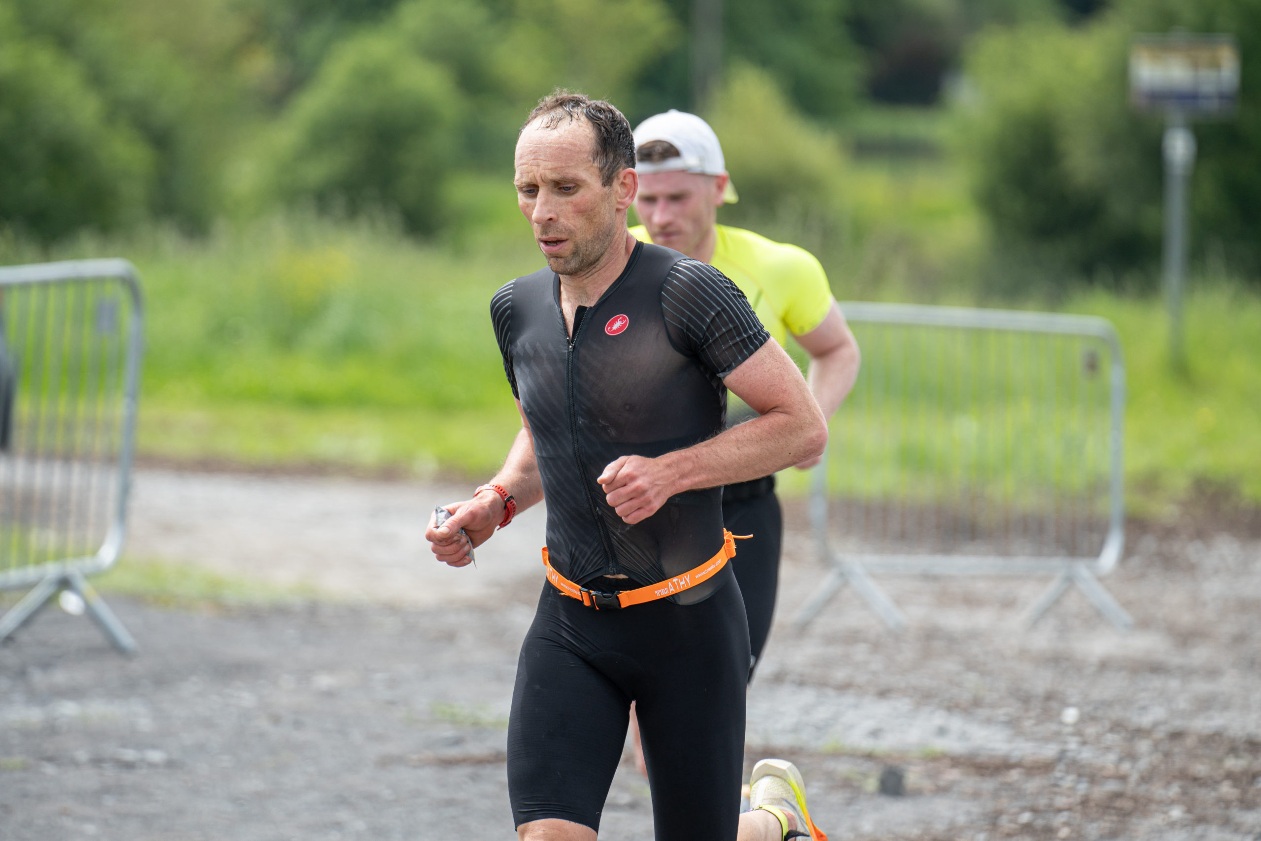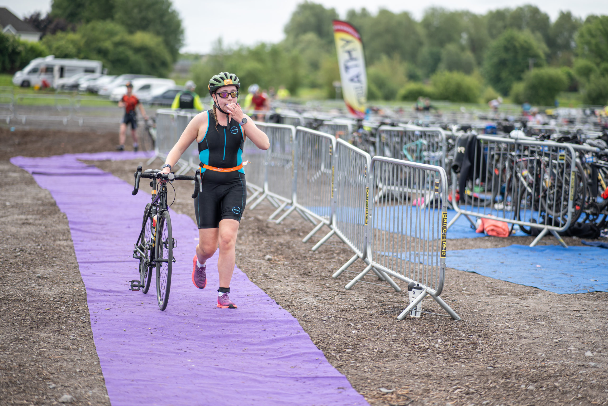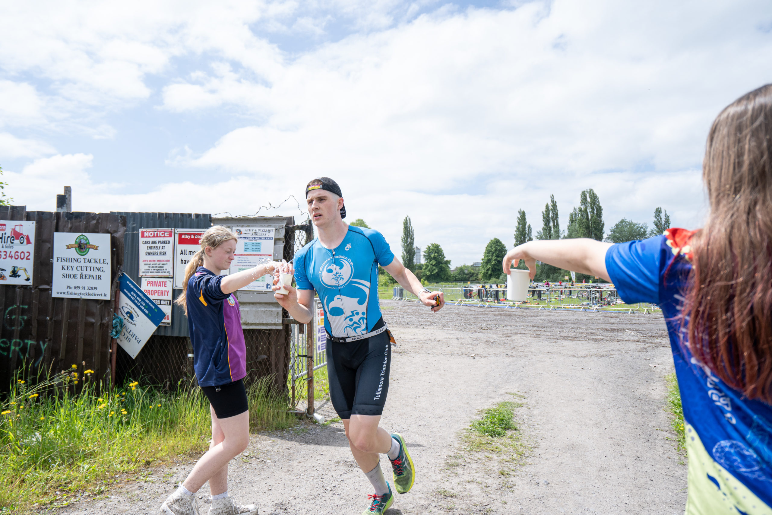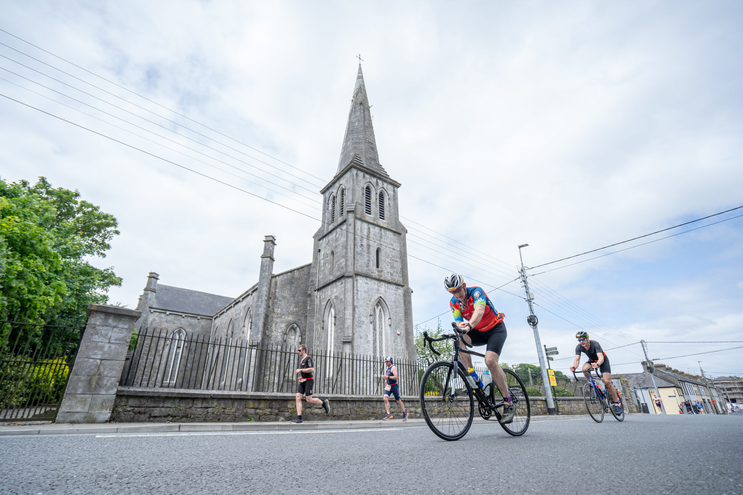 The cycle consisted of a 40 km lap through the south of Athy. The majority of the course was on wide, closed roads, with the remaining sections covering a more technical area close to Kilkea Castle and Castledermot. Paul Carroll took the lead in the Men’s race, with a bike time of 00:56:16. In the Women’s race, Becky Woods from Piranha took the lead and completed the bike in 01:03:27.