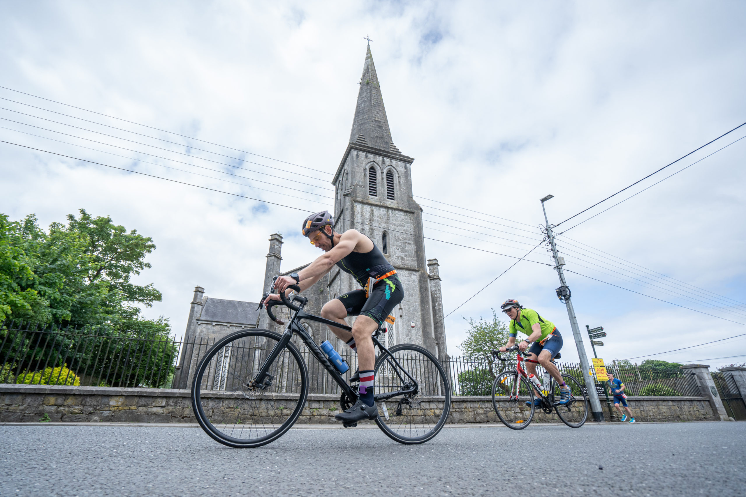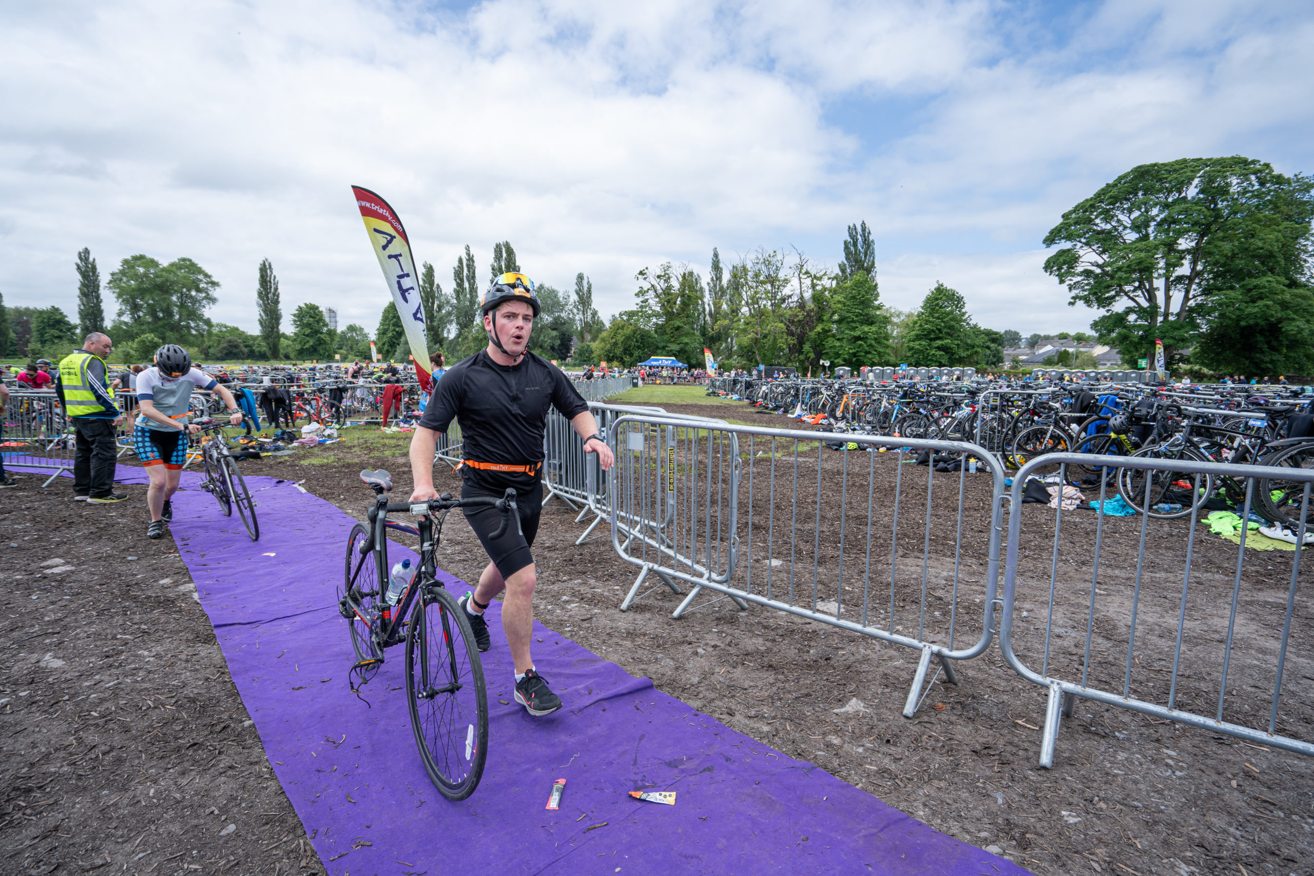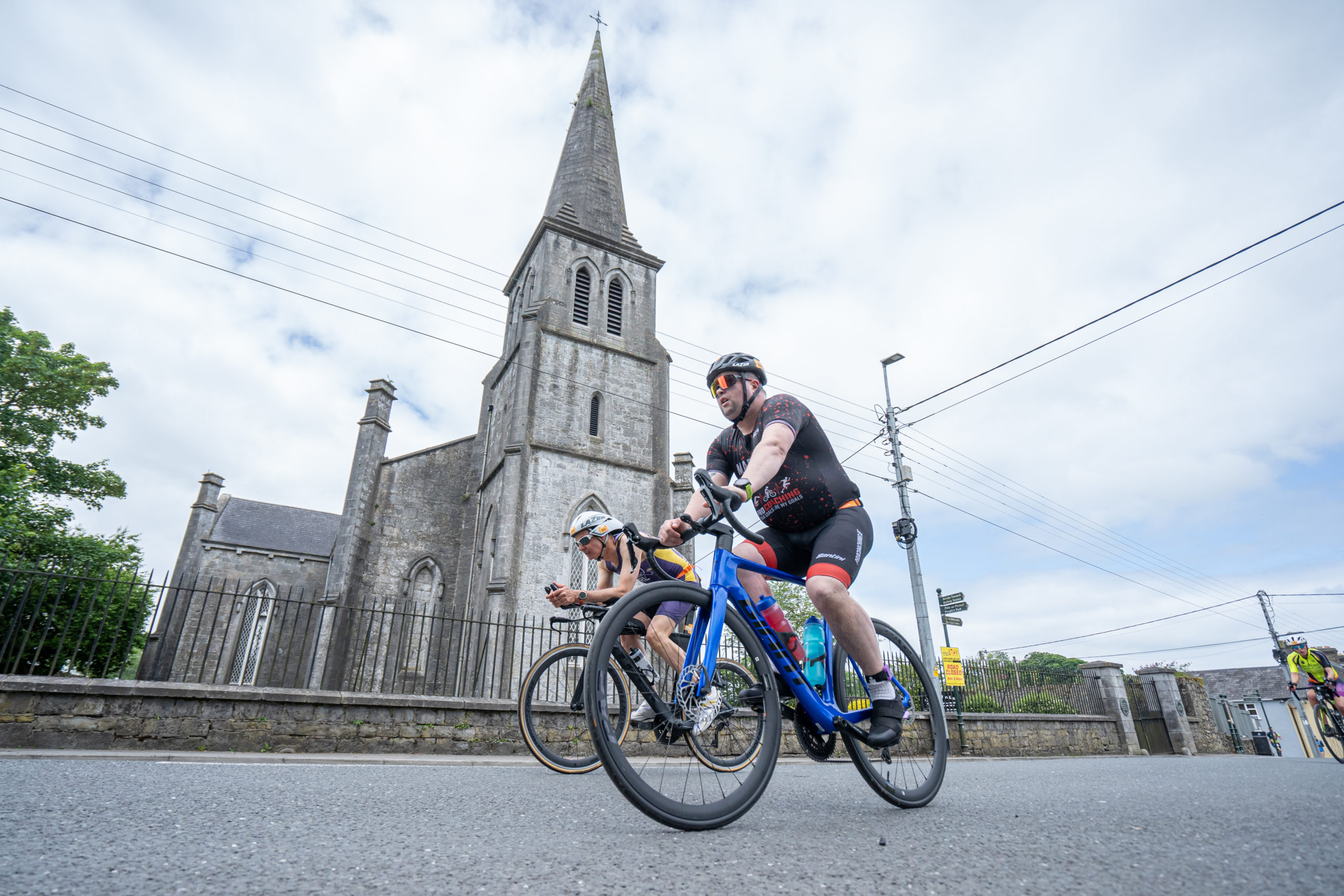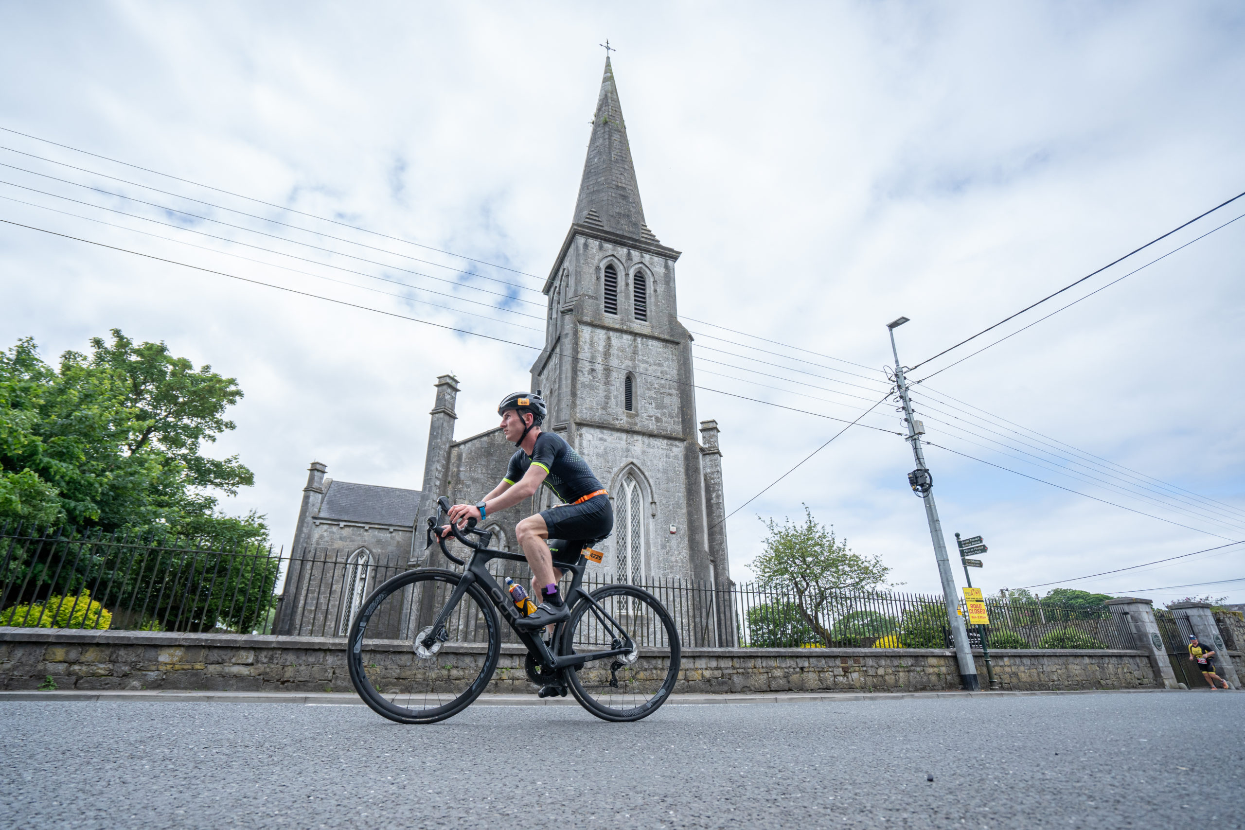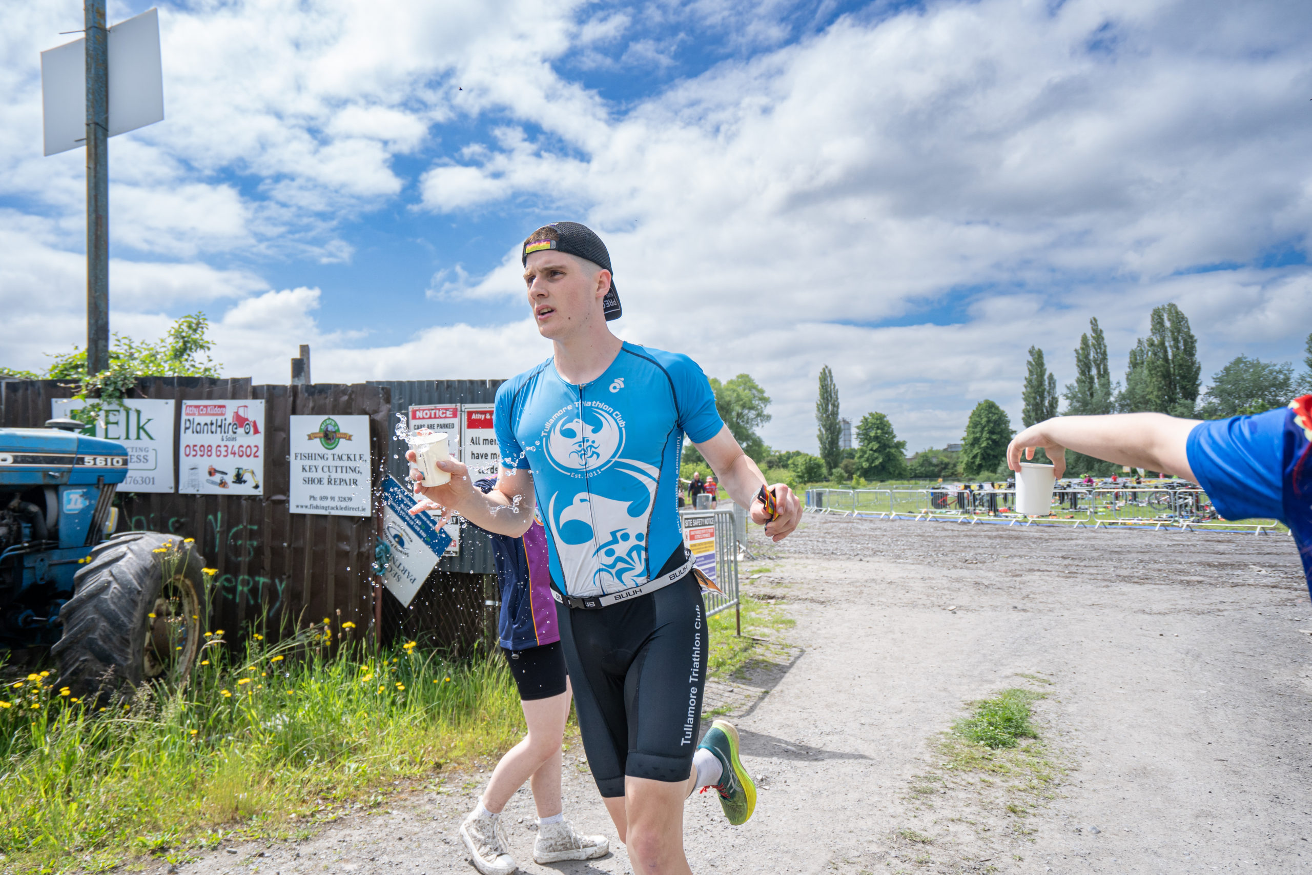 The cycle consisted of a 40 km lap through the south of Athy. The majority of the course was on wide, closed roads, with the remaining sections covering a more technical area close to Kilkea Castle and Castledermot. Paul Carroll took the lead in the Men’s race, with a bike time of 00:56:16. In the Women’s race, Becky Woods from Piranha took the lead and completed the bike in 01:03:27.