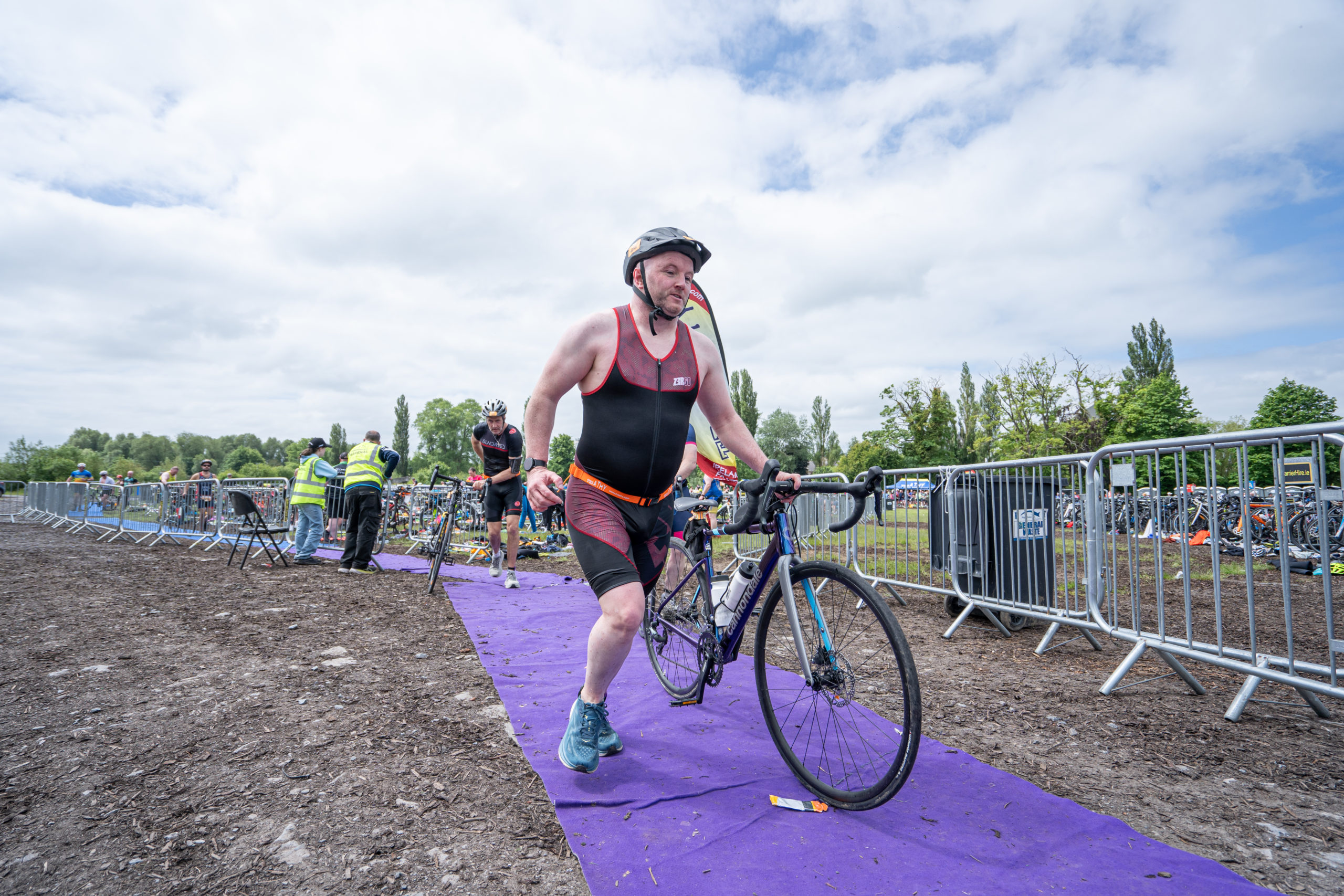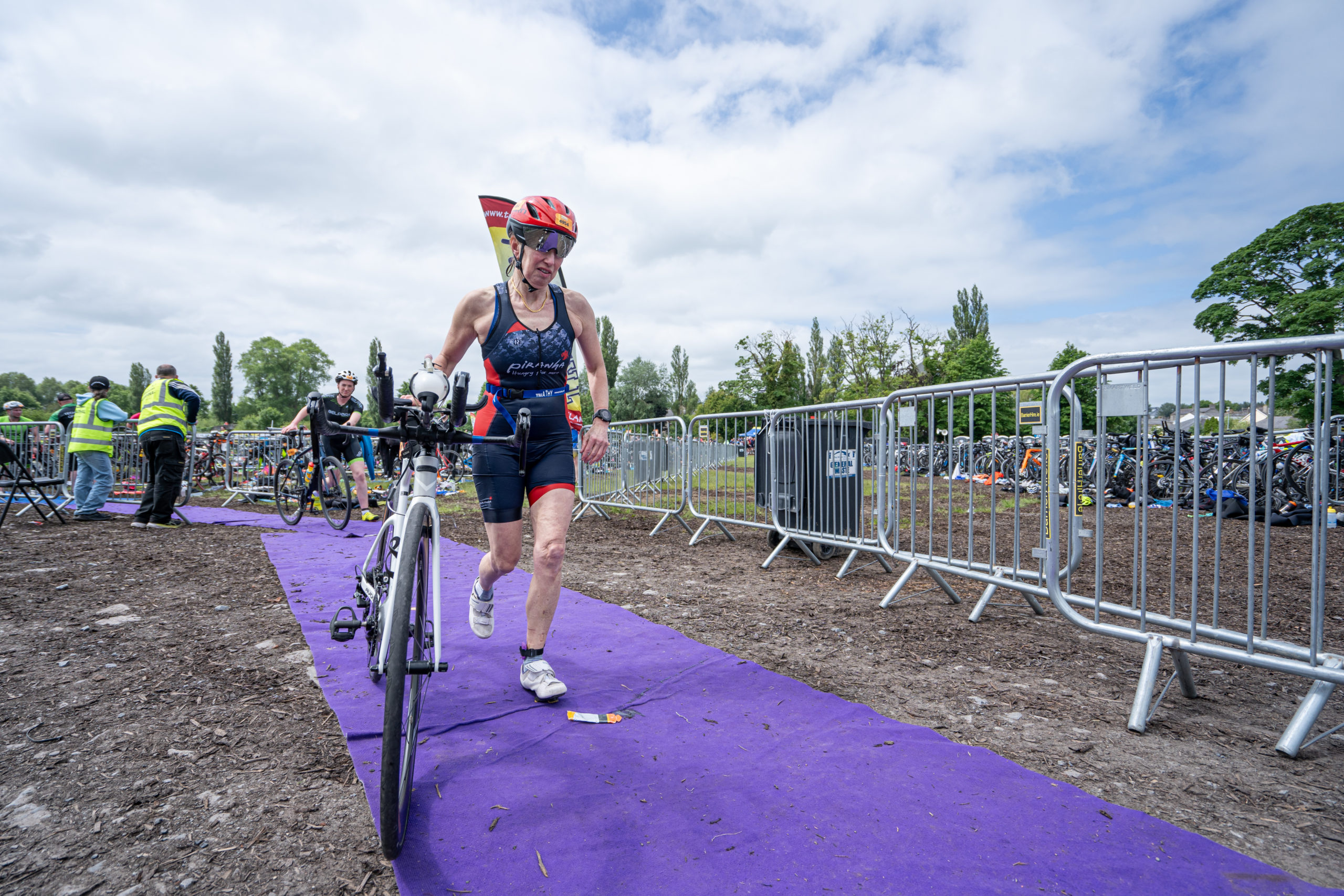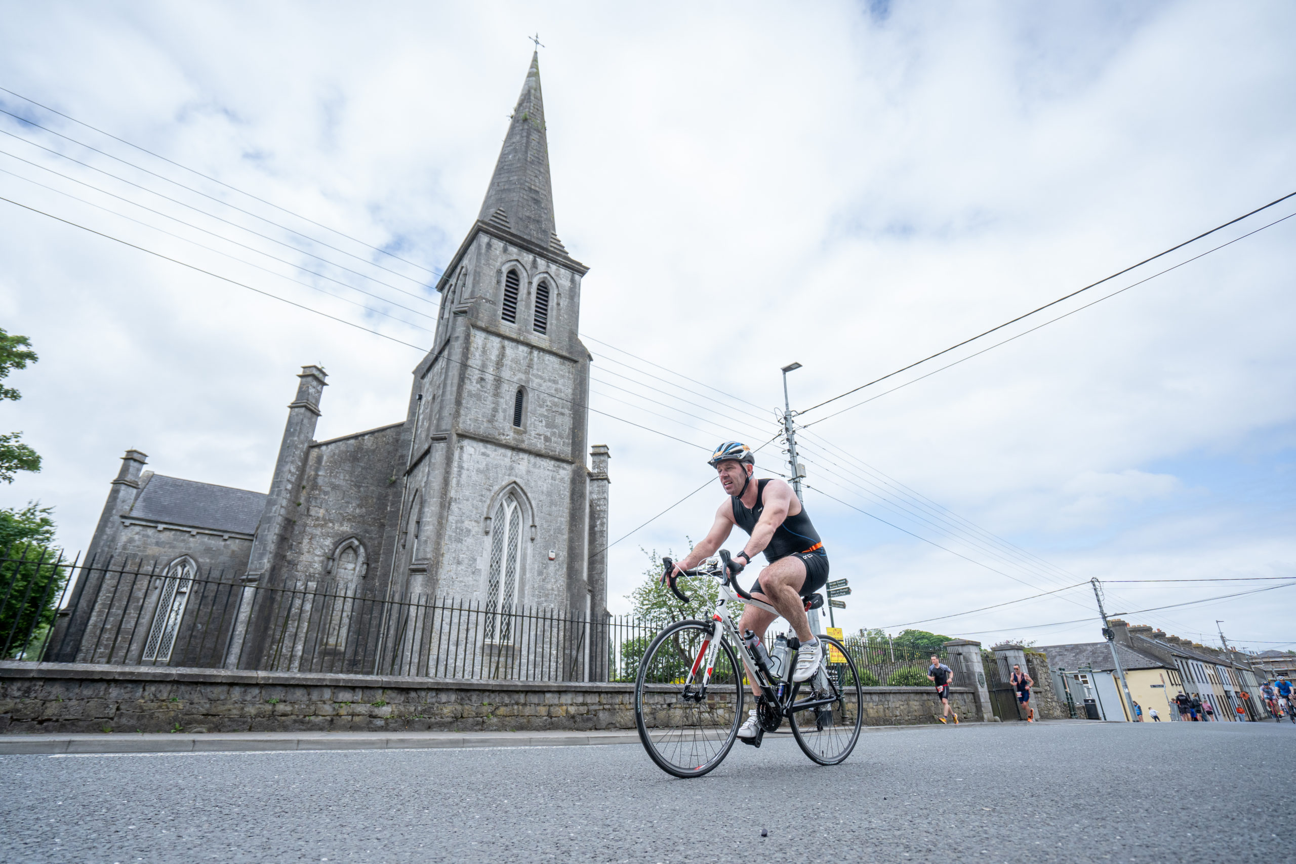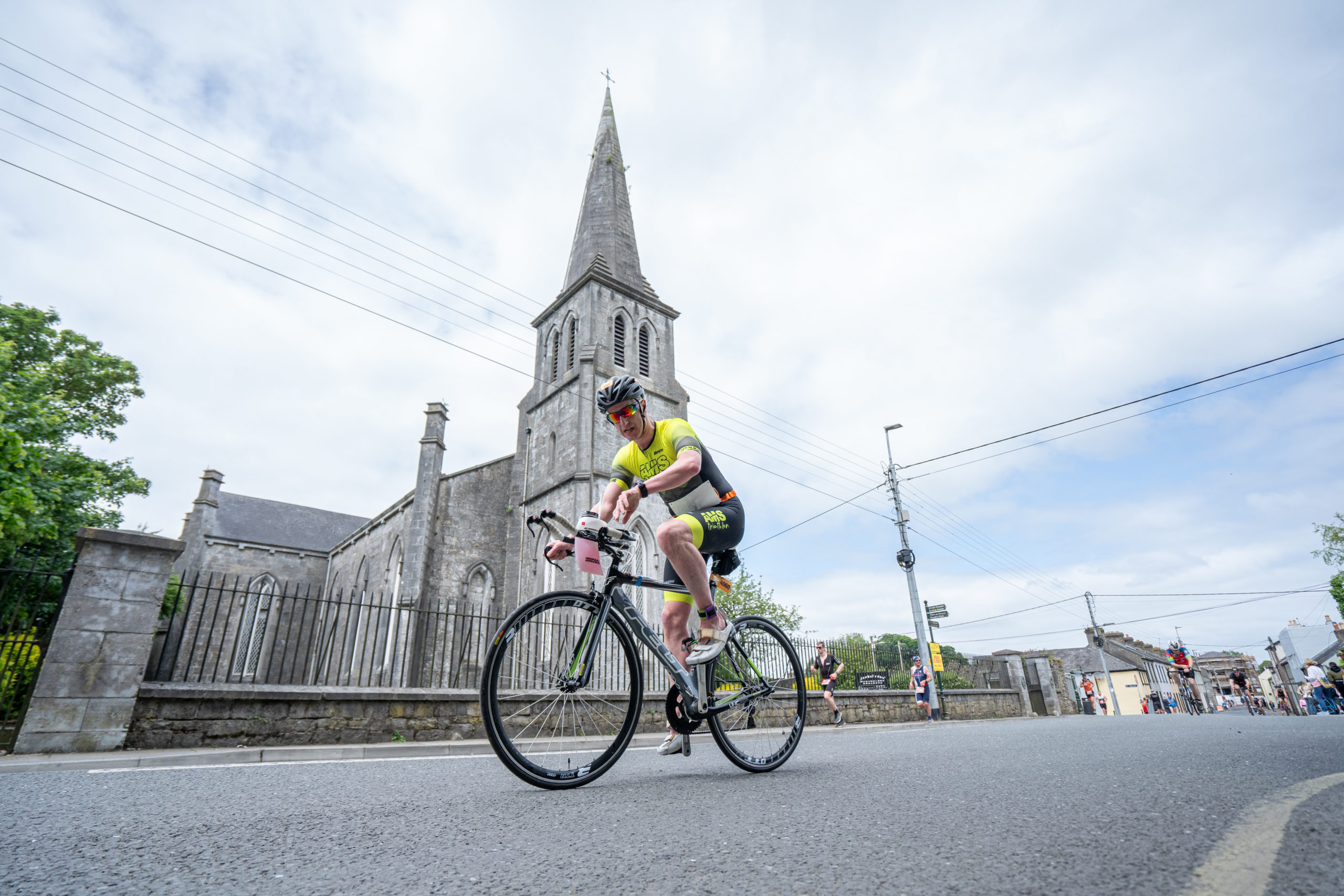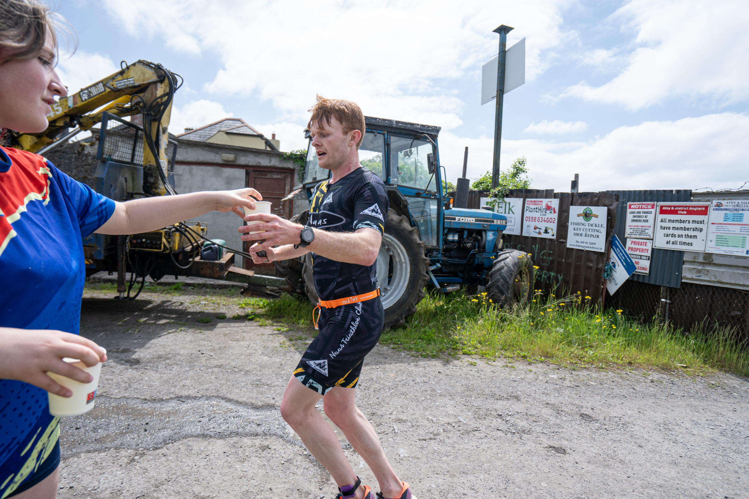 The cycle consisted of a 40 km lap through the south of Athy. The majority of the course was on wide, closed roads, with the remaining sections covering a more technical area close to Kilkea Castle and Castledermot. Paul Carroll took the lead in the Men’s race, with a bike time of 00:56:16. In the Women’s race, Becky Woods from Piranha took the lead and completed the bike in 01:03:27.