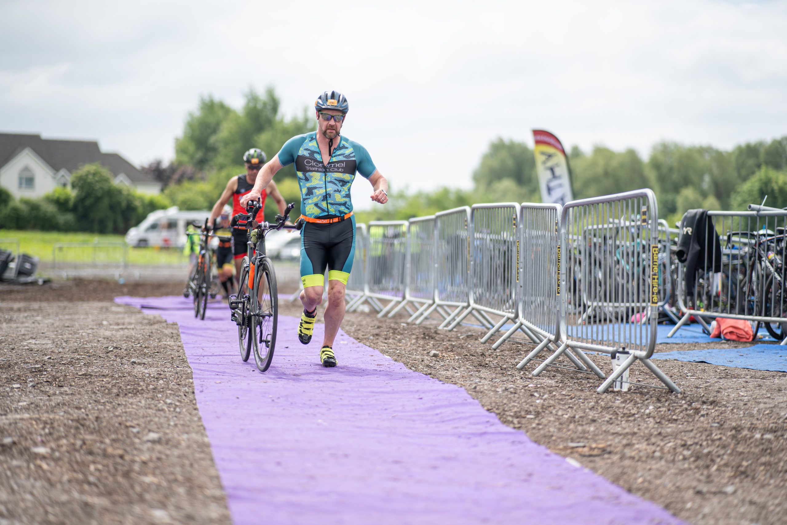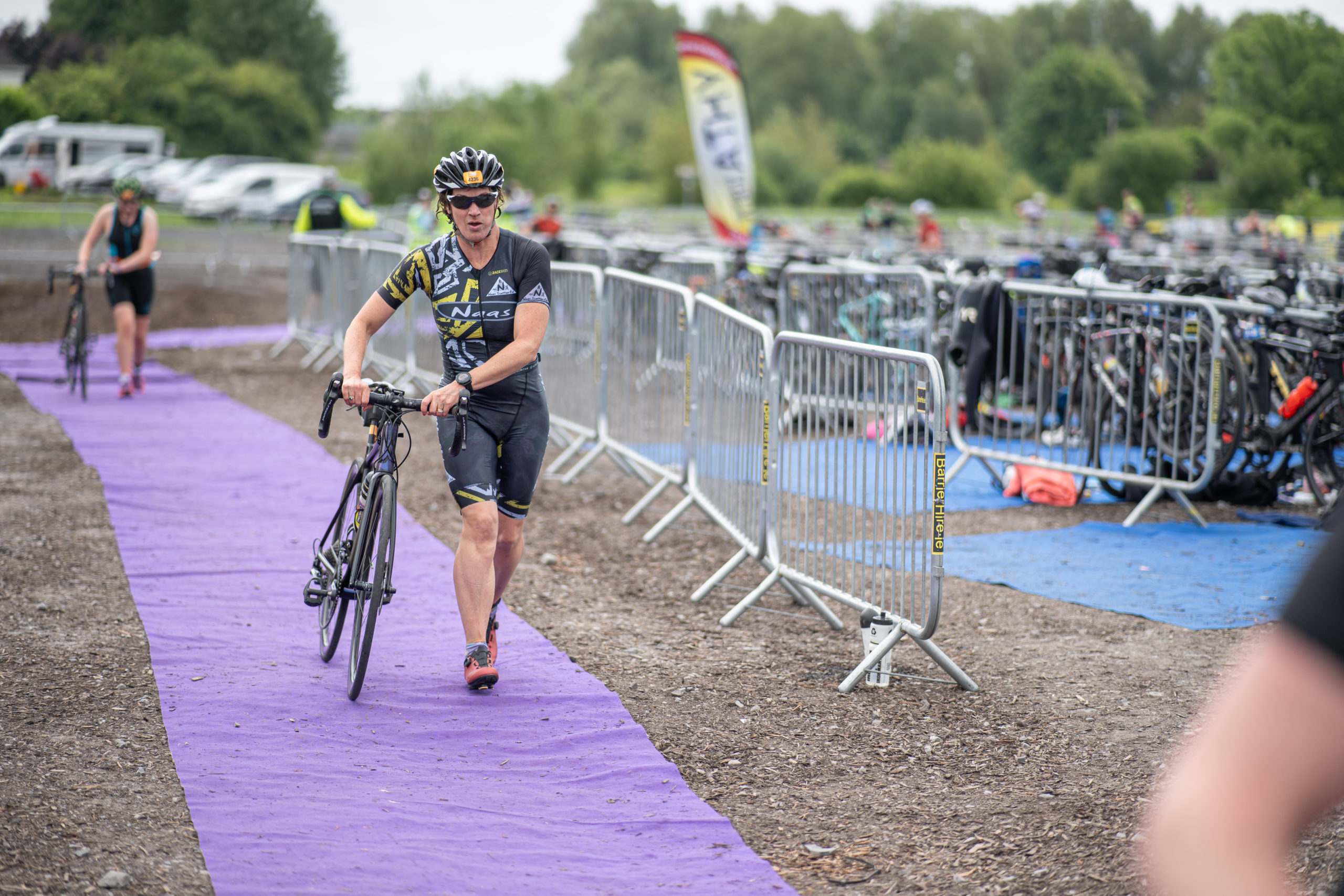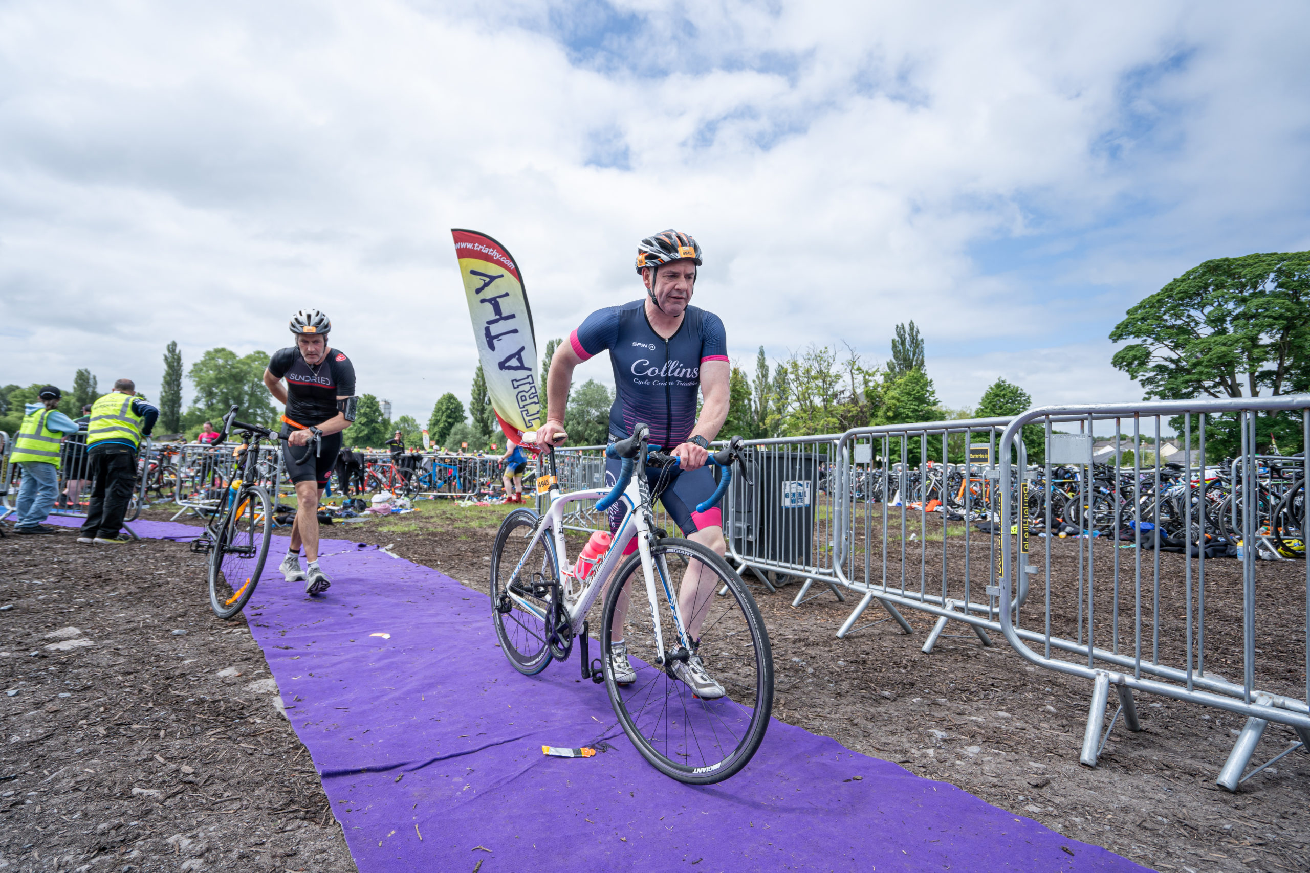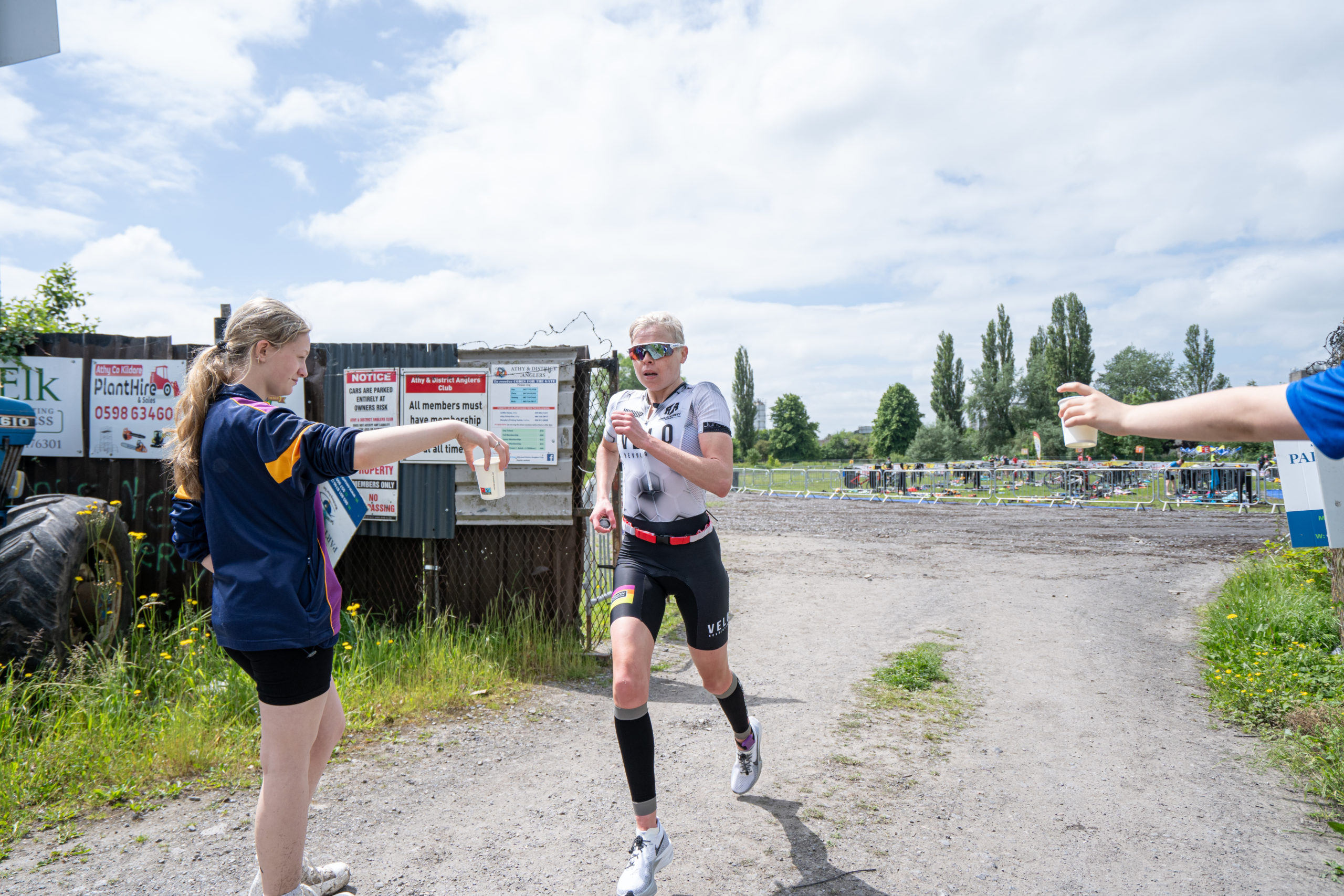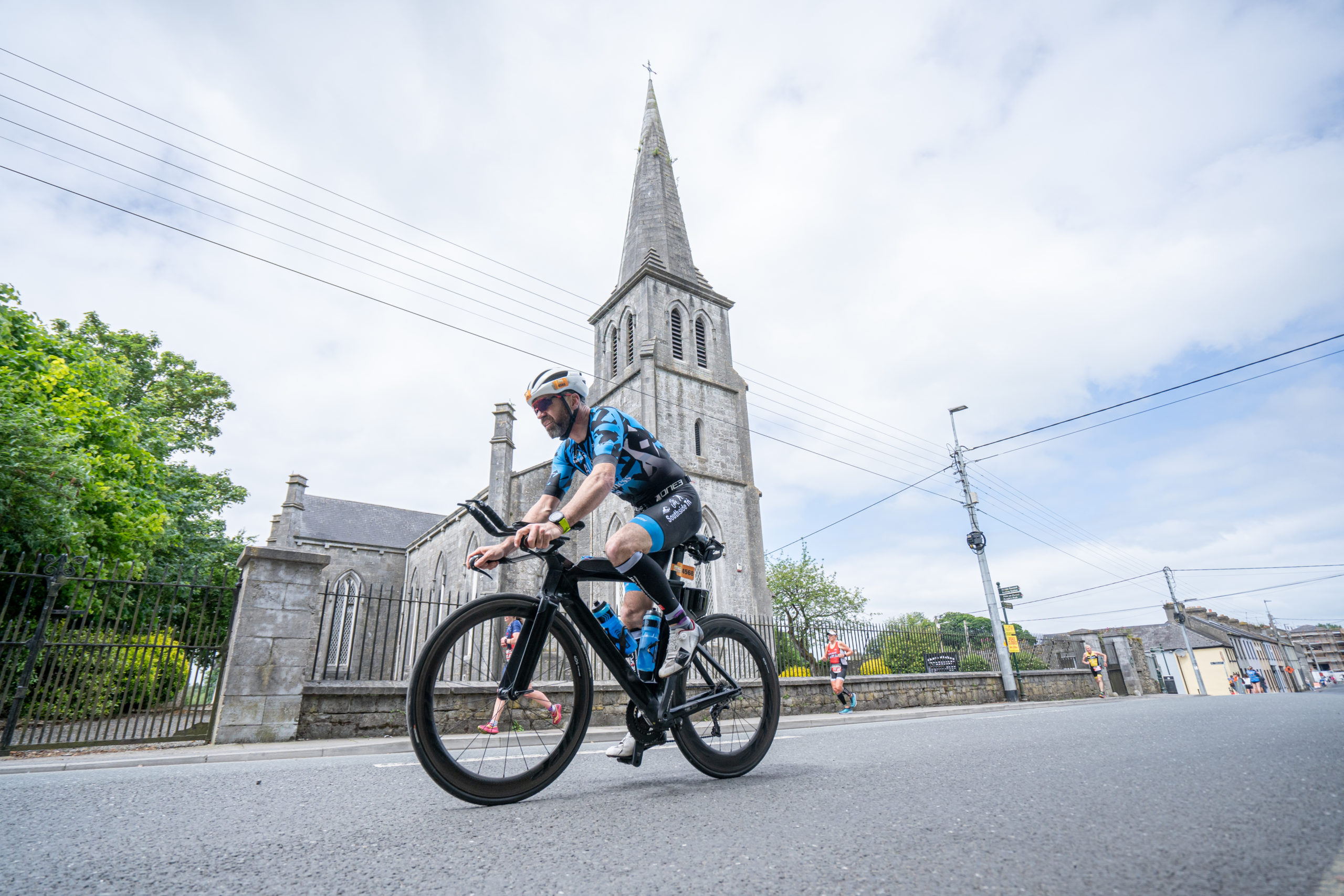 The cycle consisted of a 40 km lap through the south of Athy. The majority of the course was on wide, closed roads, with the remaining sections covering a more technical area close to Kilkea Castle and Castledermot. Paul Carroll took the lead in the Men’s race, with a bike time of 00:56:16. In the Women’s race, Becky Woods from Piranha took the lead and completed the bike in 01:03:27.
