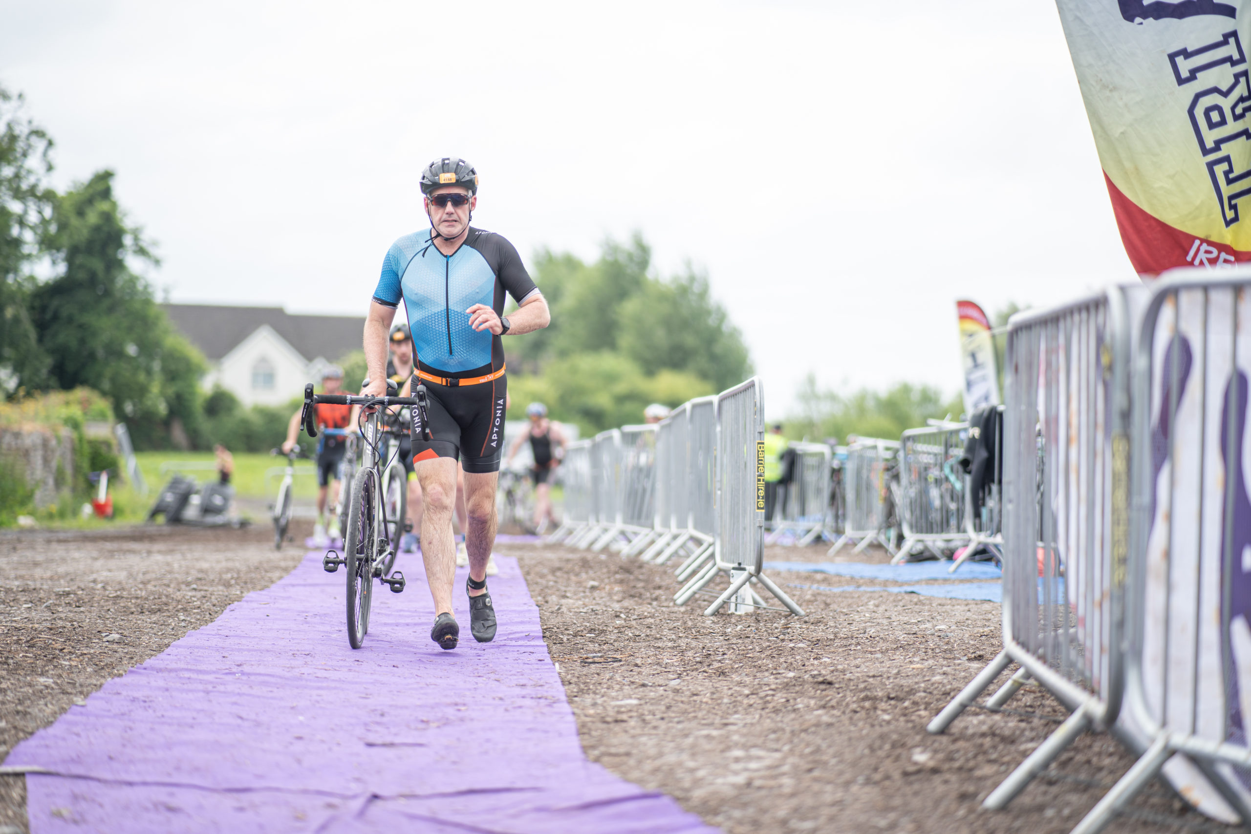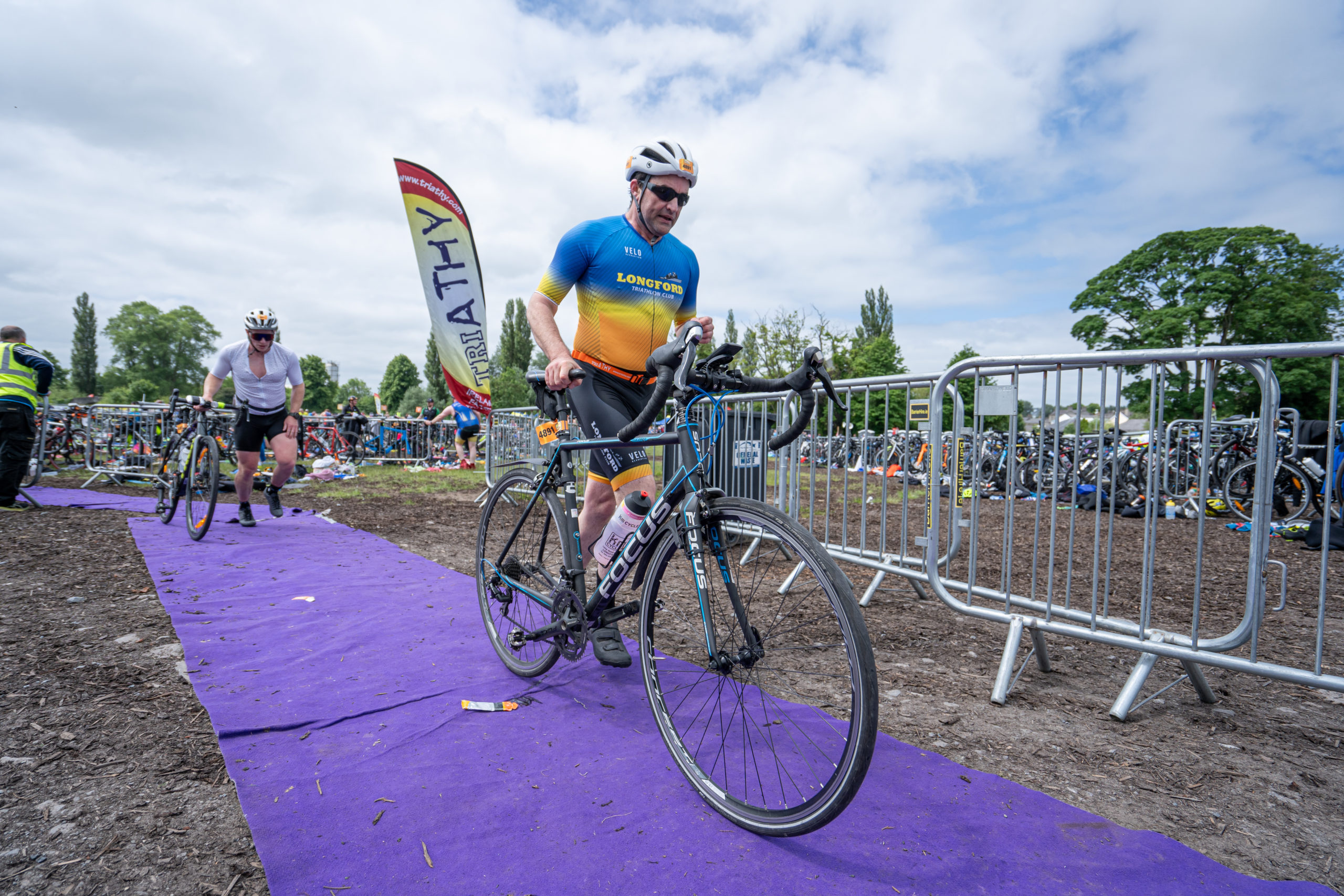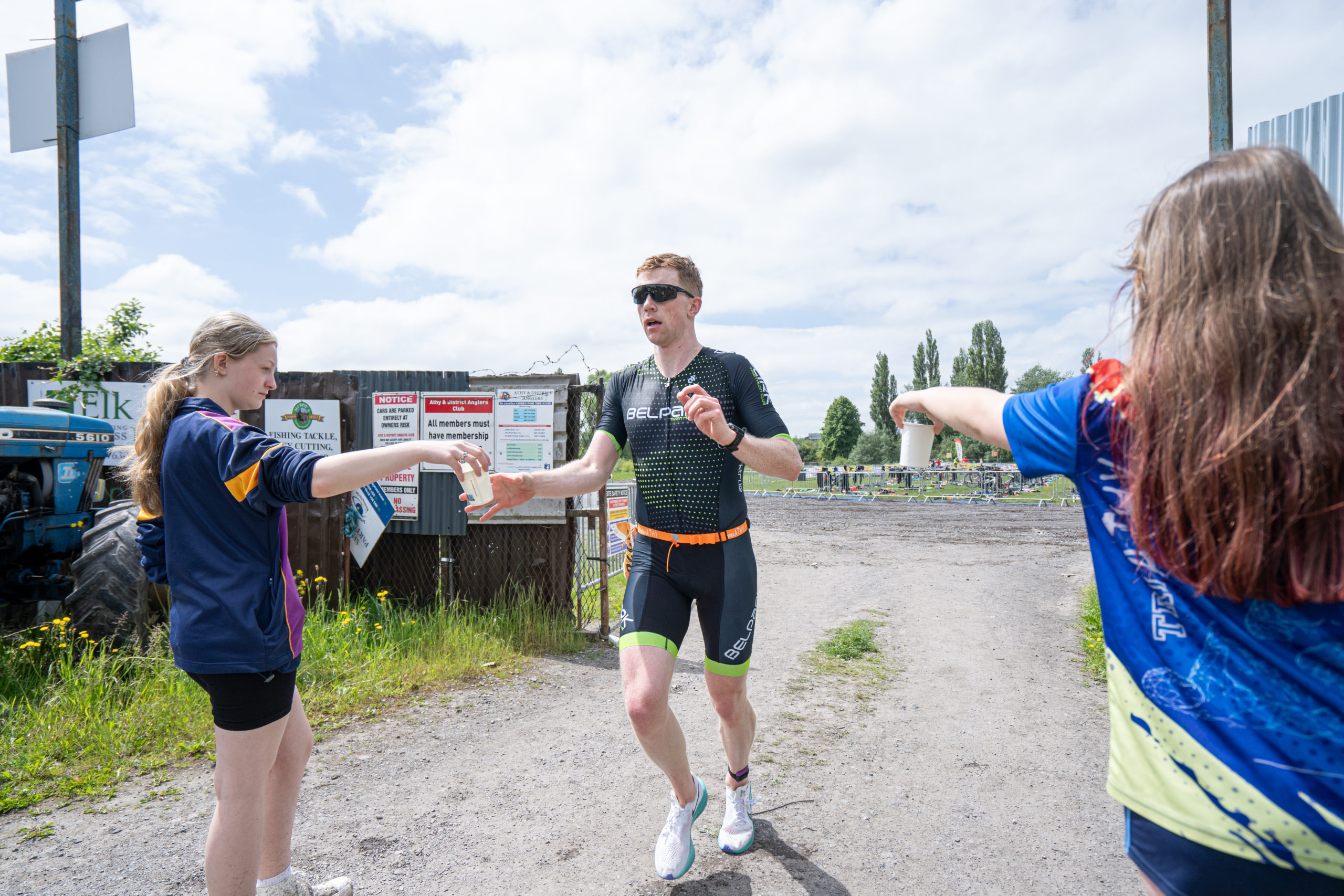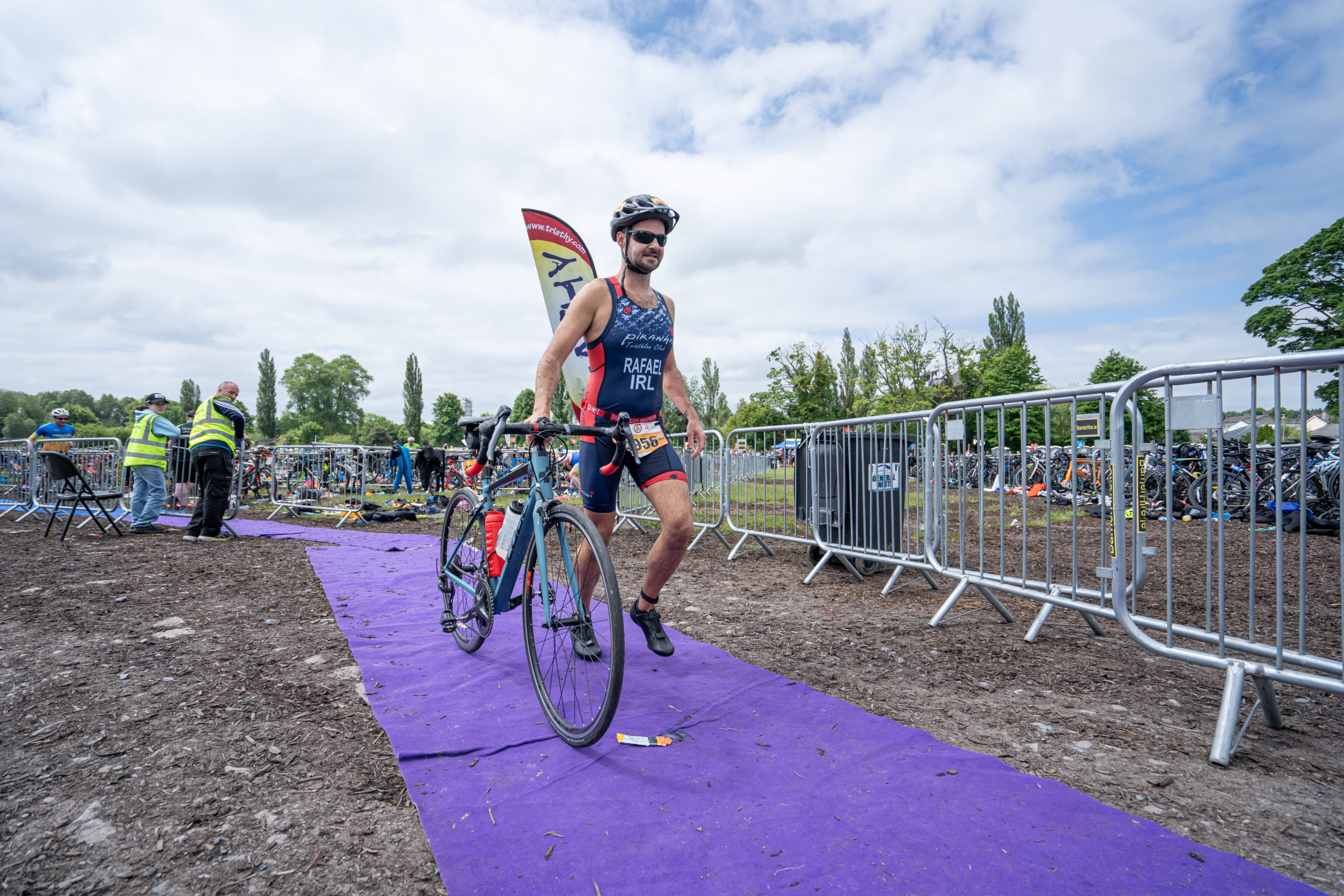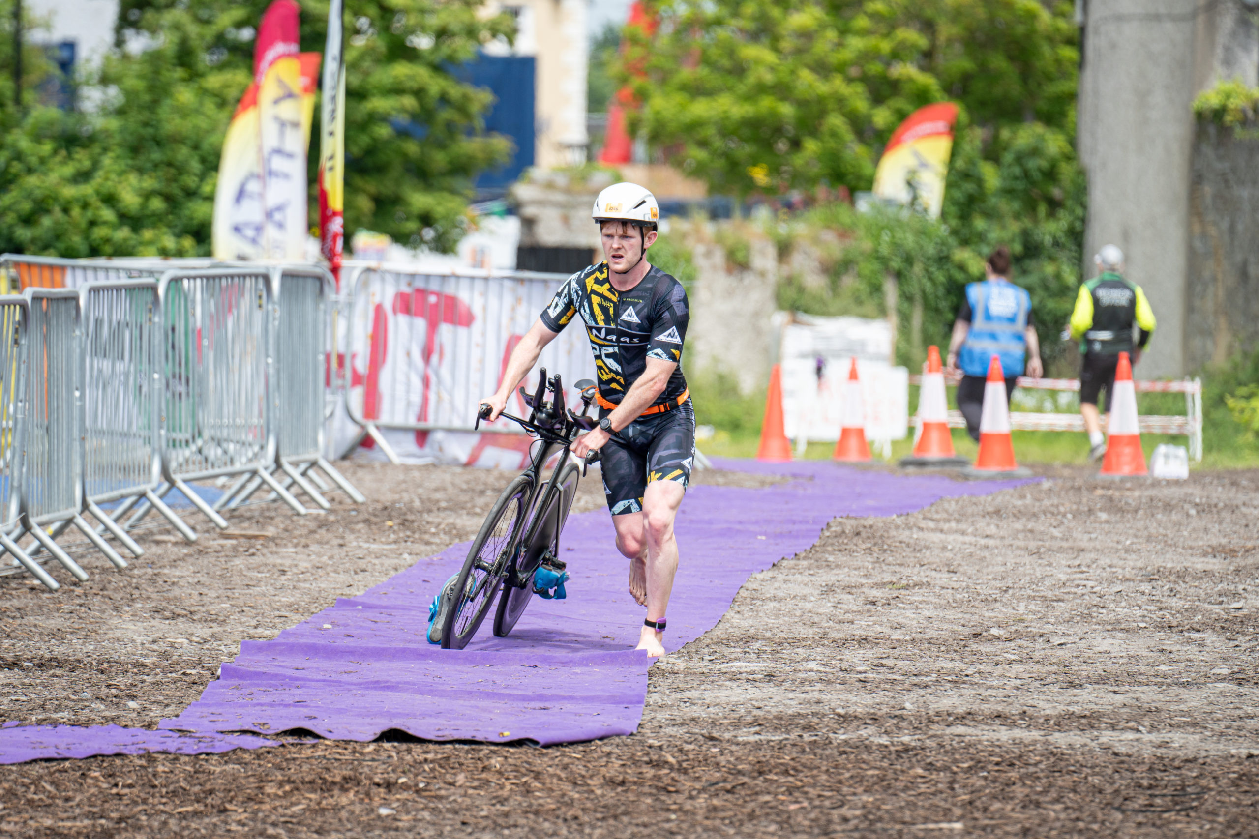 The cycle consisted of a 40 km lap through the south of Athy. The majority of the course was on wide, closed roads, with the remaining sections covering a more technical area close to Kilkea Castle and Castledermot. Paul Carroll took the lead in the Men’s race, with a bike time of 00:56:16. In the Women’s race, Becky Woods from Piranha took the lead and completed the bike in 01:03:27.