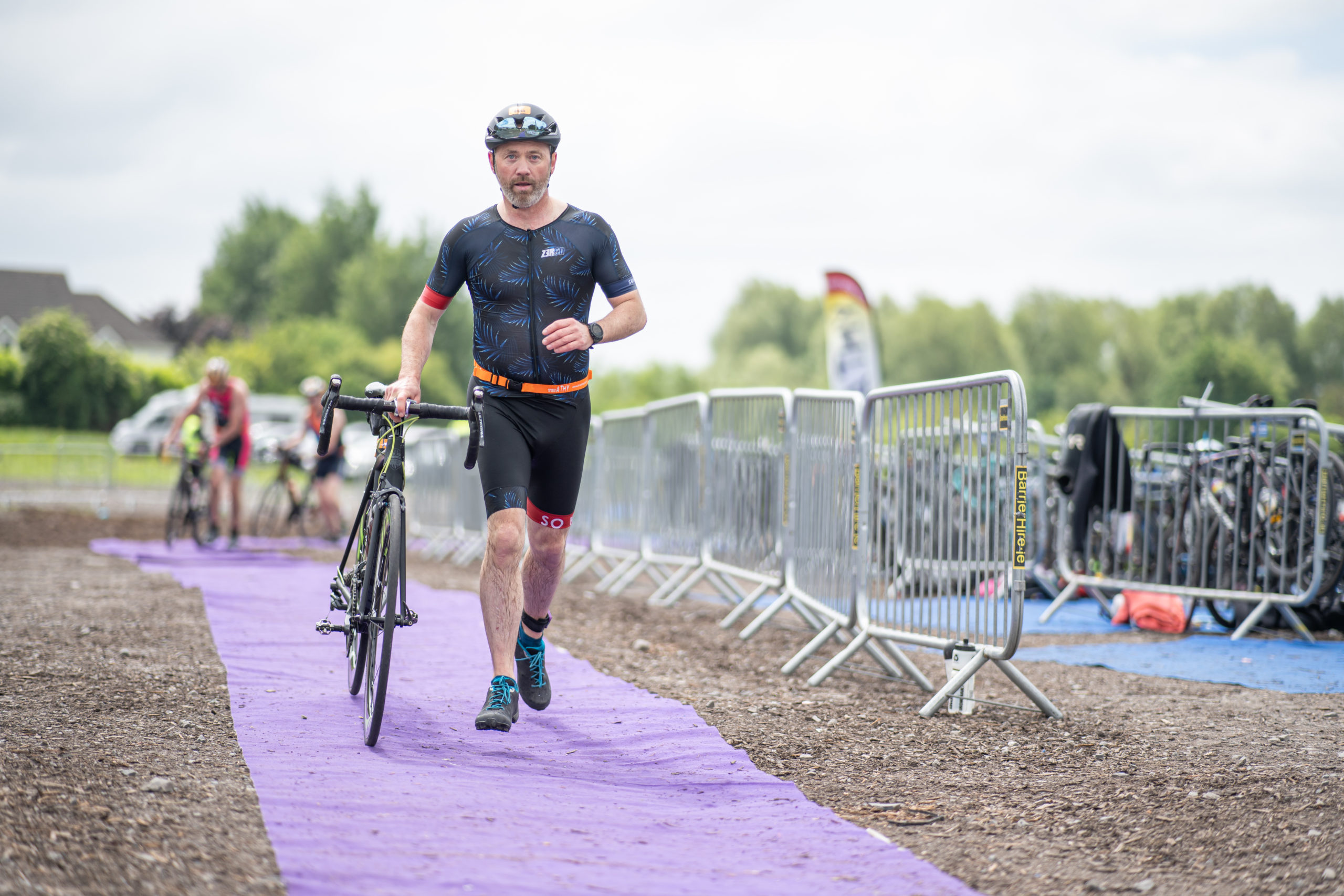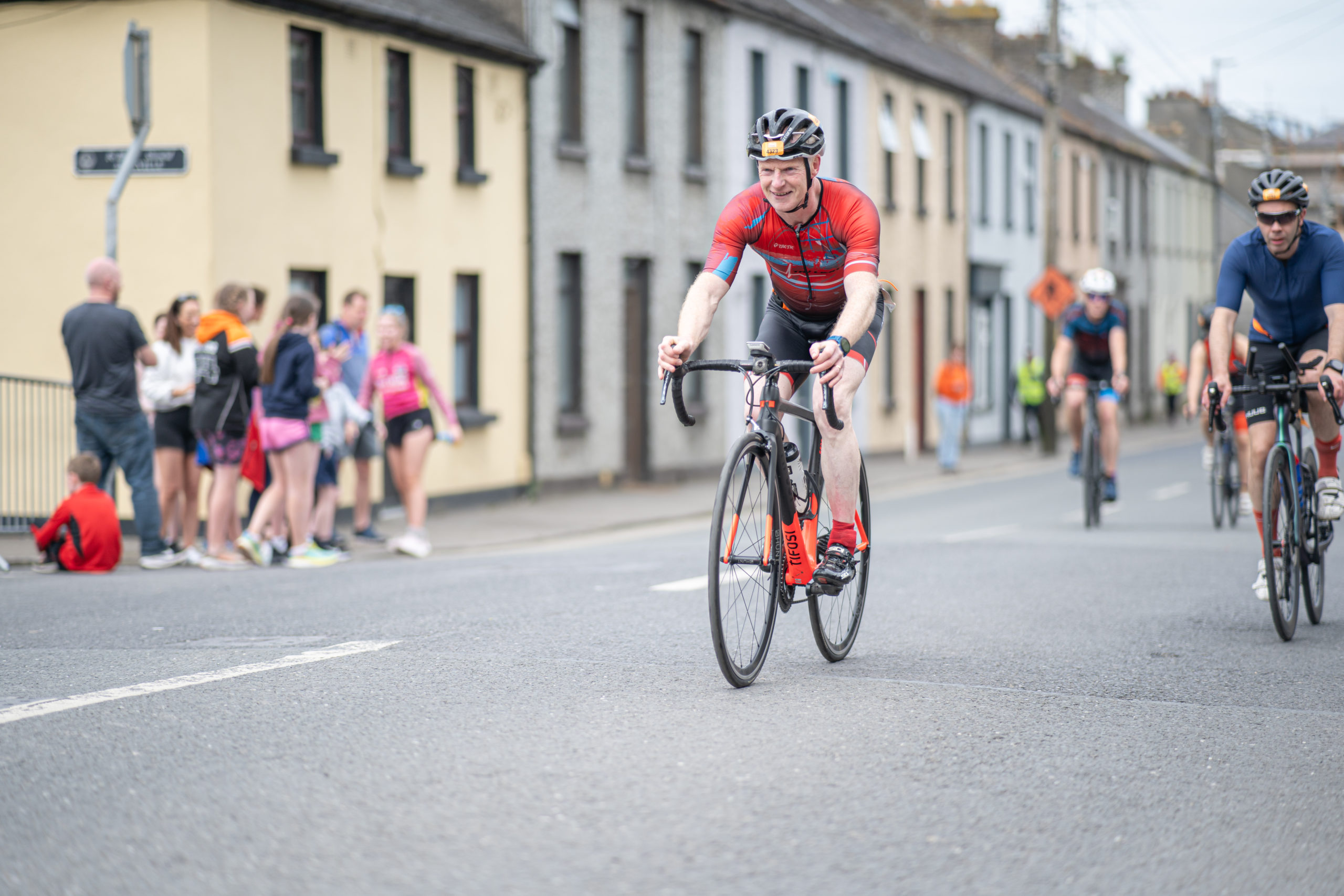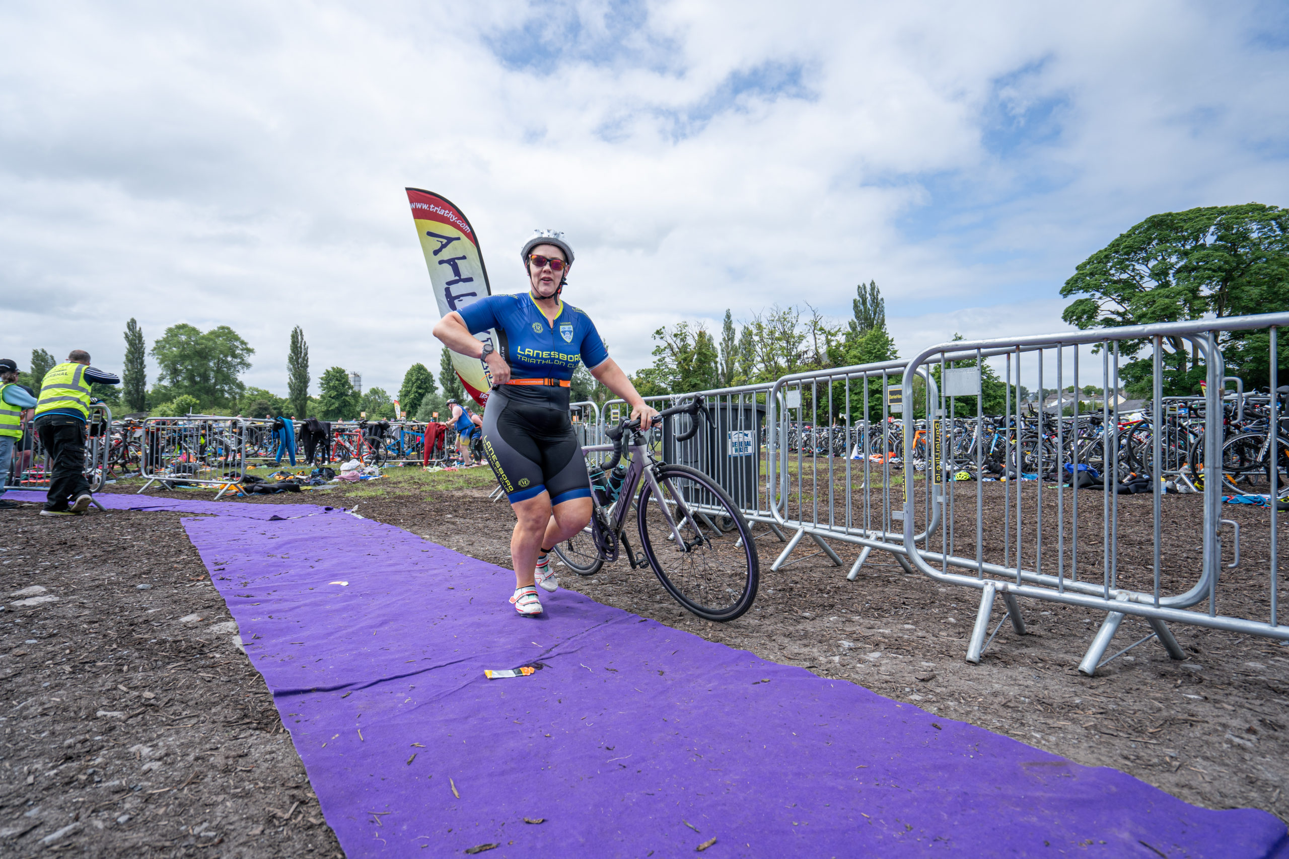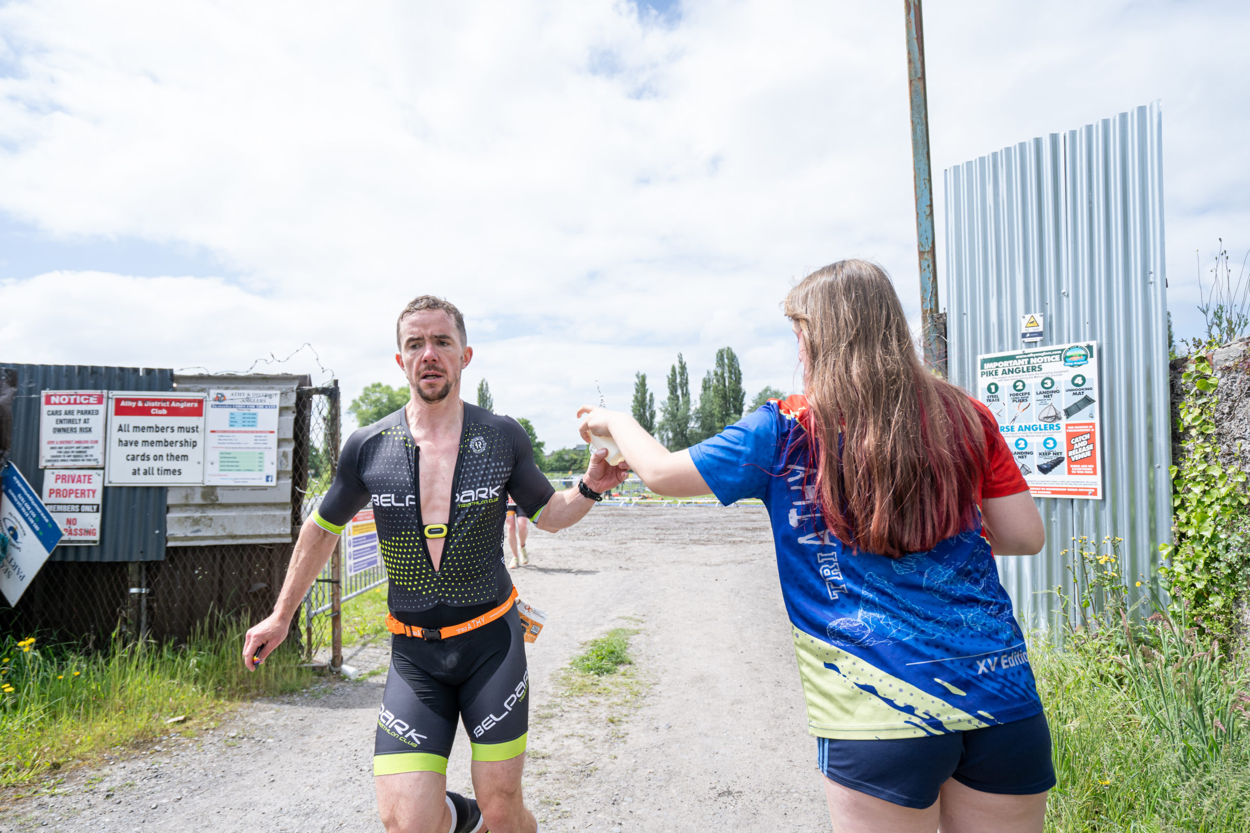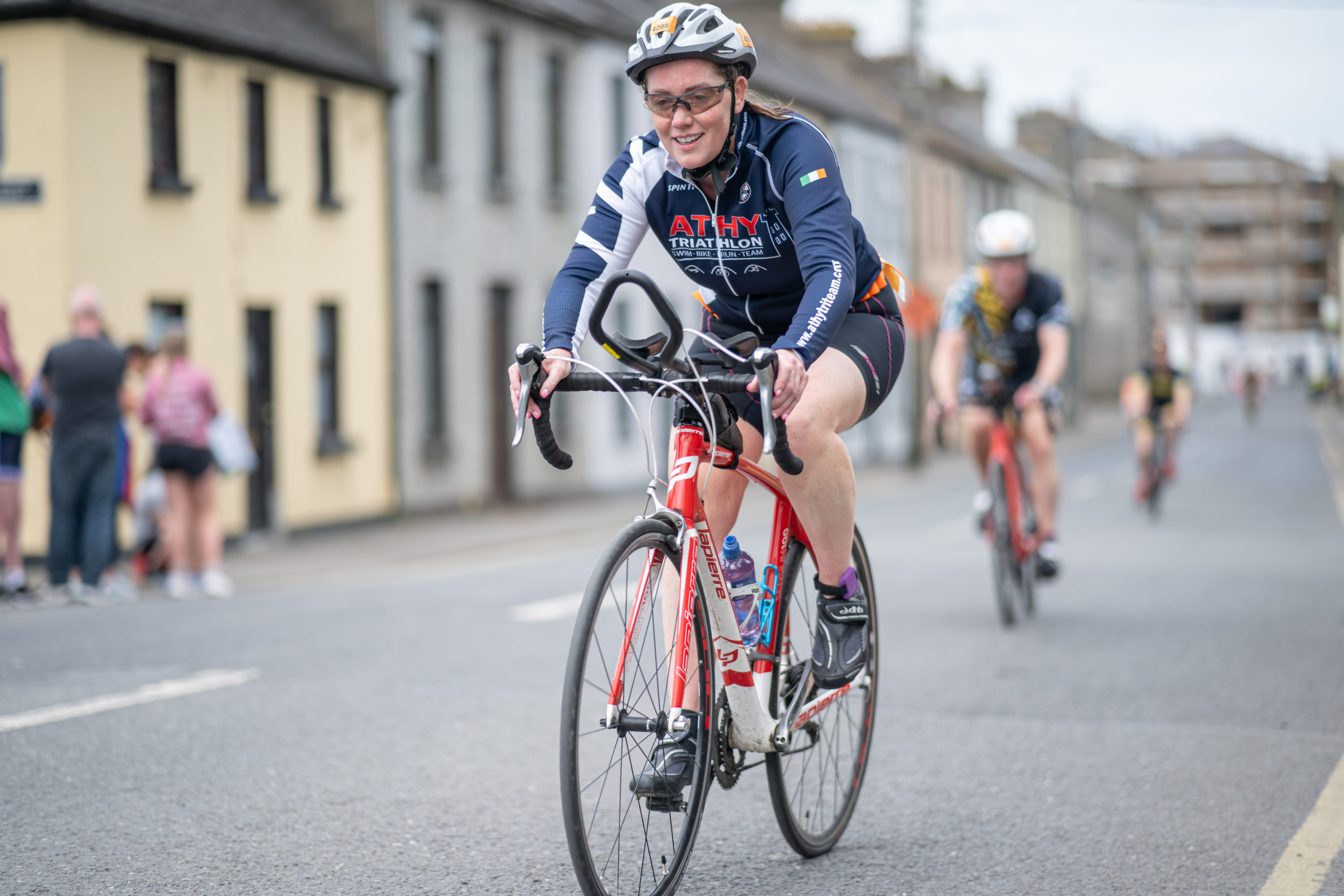 The cycle consisted of a 40 km lap through the south of Athy. The majority of the course was on wide, closed roads, with the remaining sections covering a more technical area close to Kilkea Castle and Castledermot. Paul Carroll took the lead in the Men’s race, with a bike time of 00:56:16. In the Women’s race, Becky Woods from Piranha took the lead and completed the bike in 01:03:27.