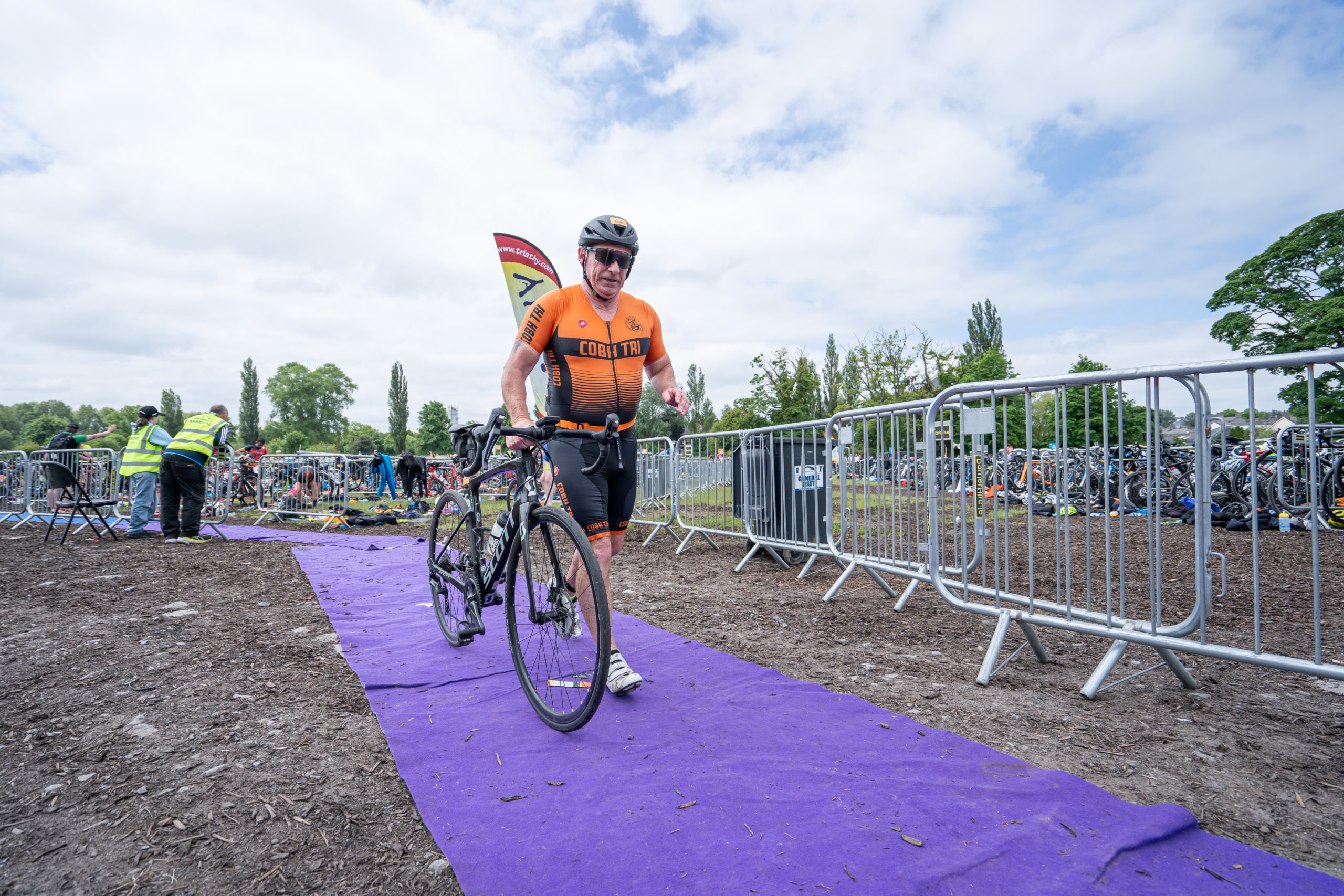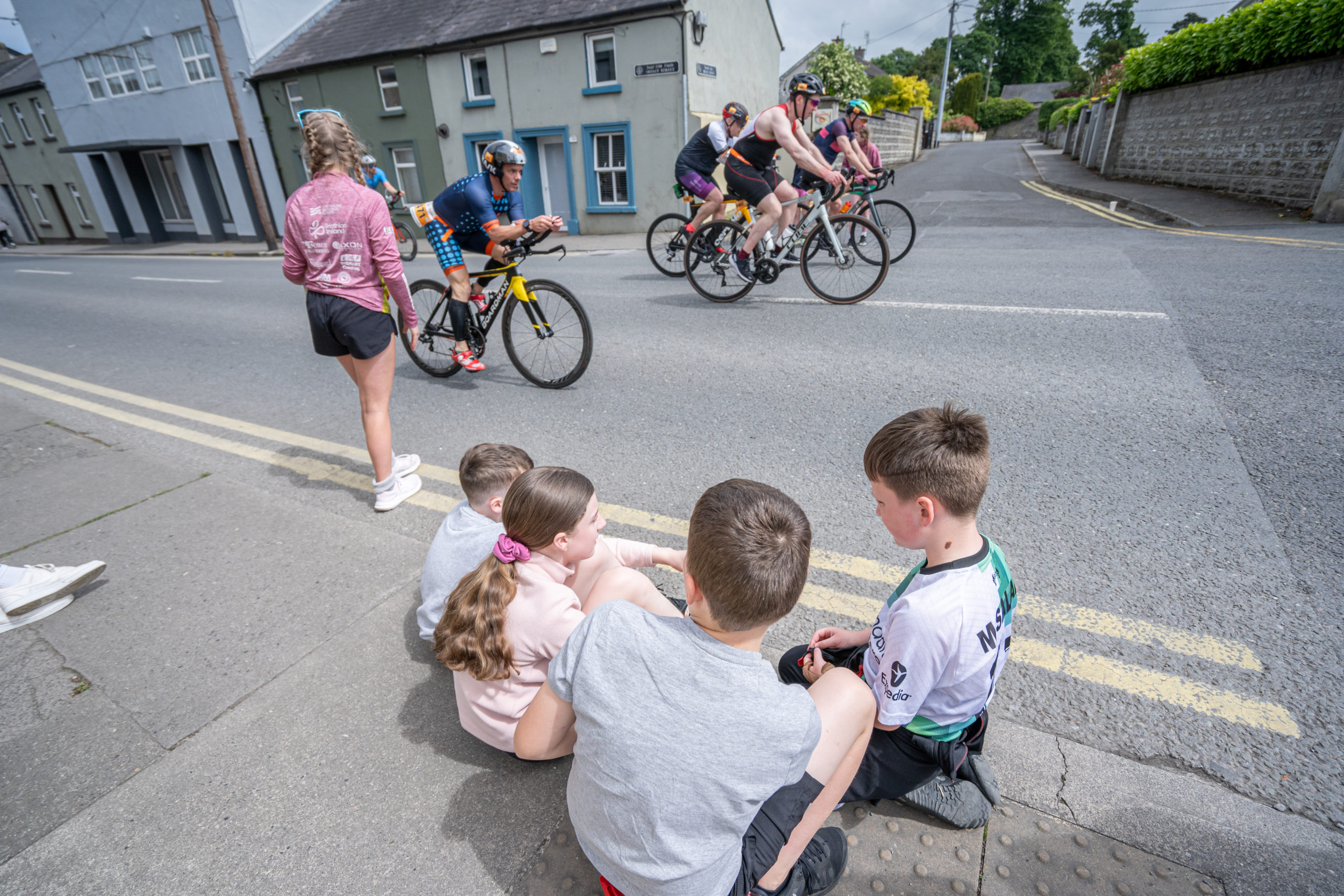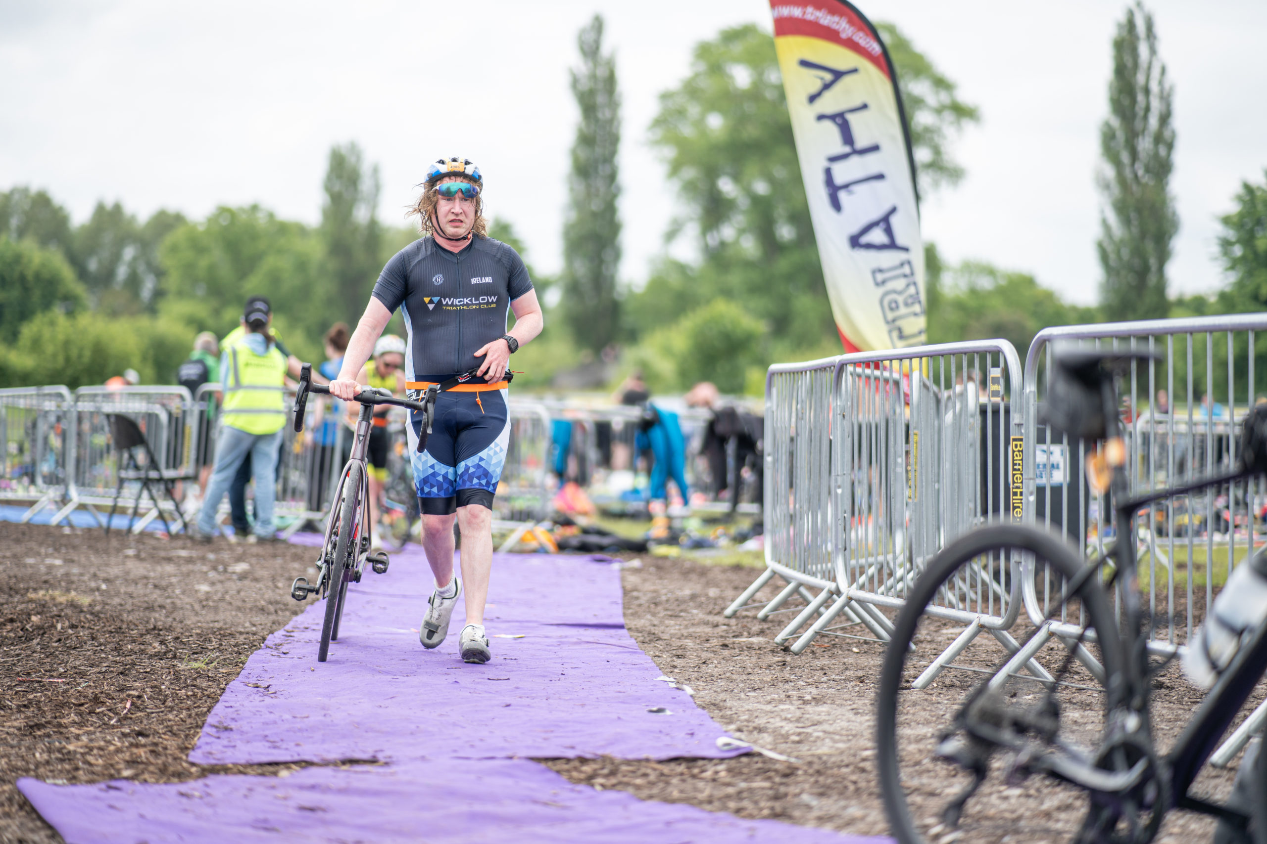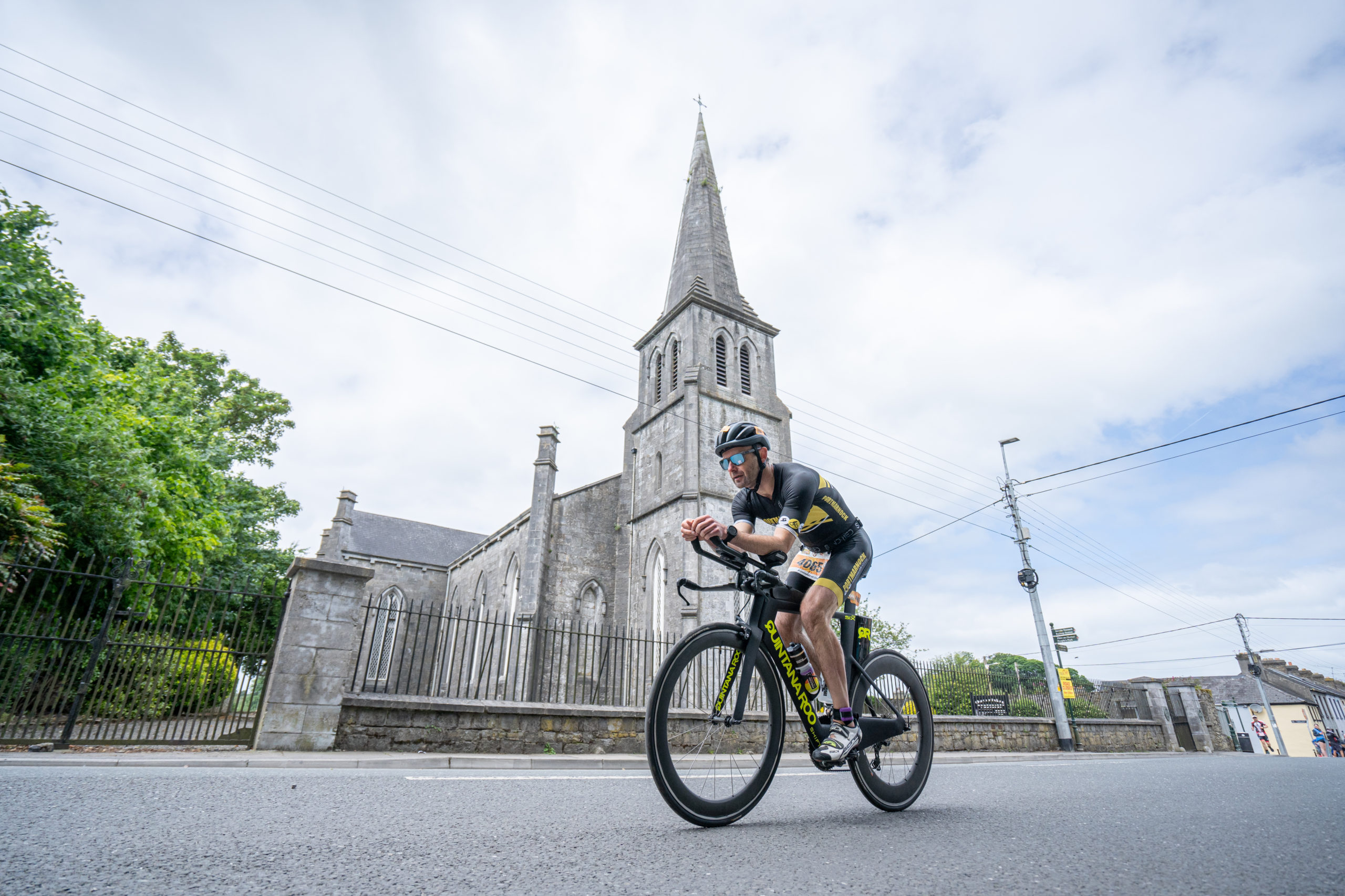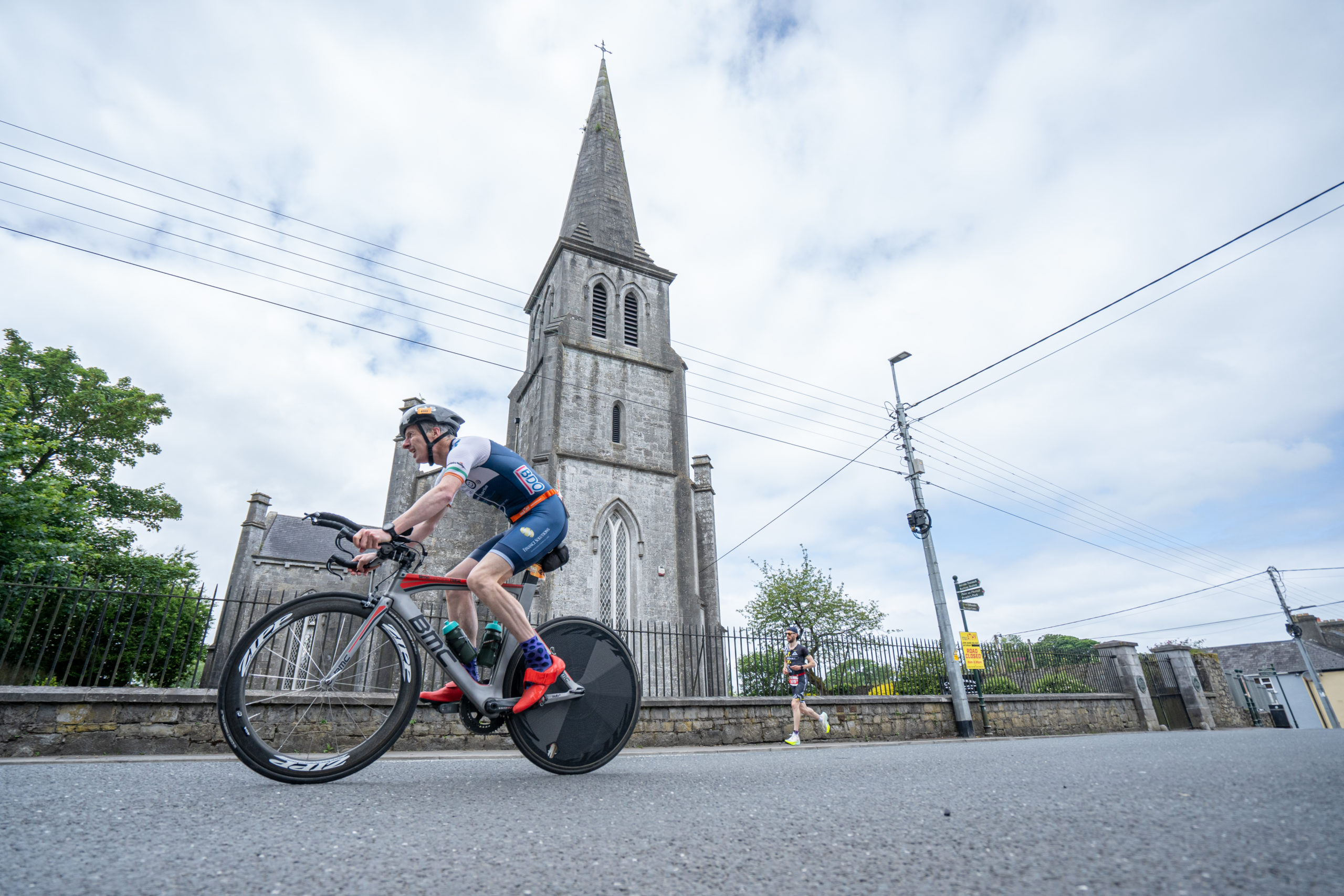 The cycle consisted of a 40 km lap through the south of Athy. The majority of the course was on wide, closed roads, with the remaining sections covering a more technical area close to Kilkea Castle and Castledermot. Paul Carroll took the lead in the Men’s race, with a bike time of 00:56:16. In the Women’s race, Becky Woods from Piranha took the lead and completed the bike in 01:03:27.