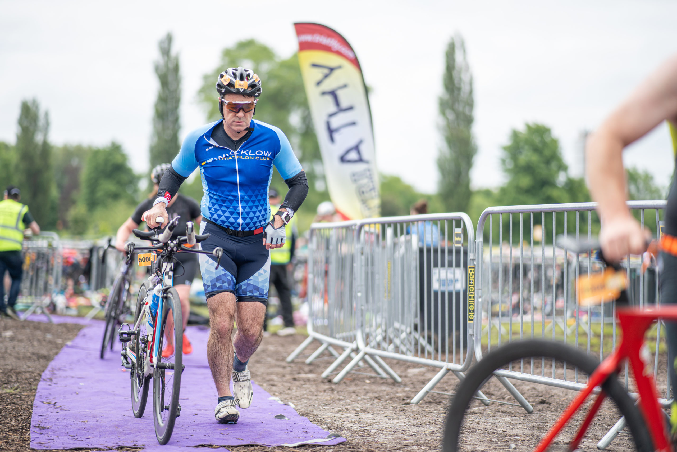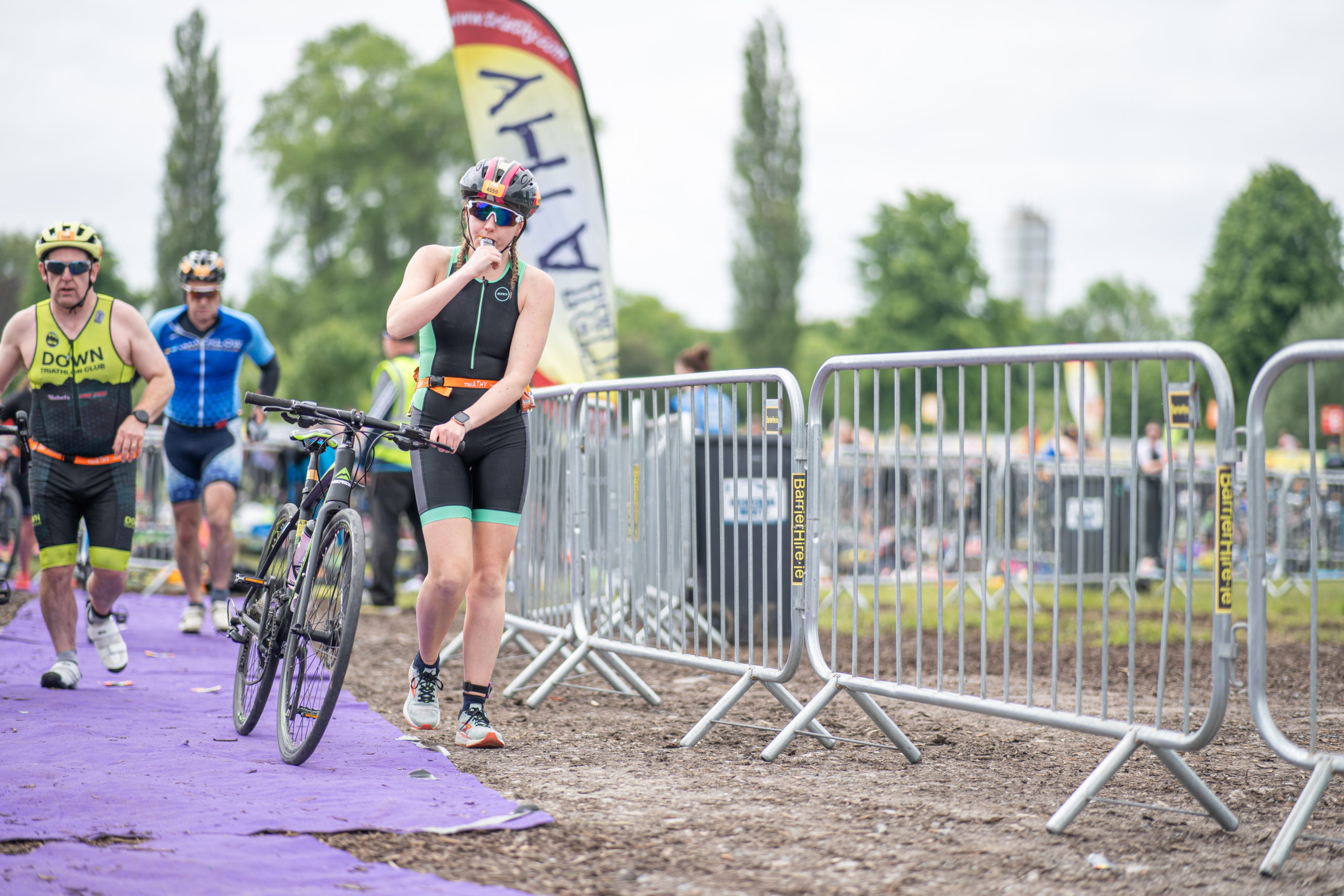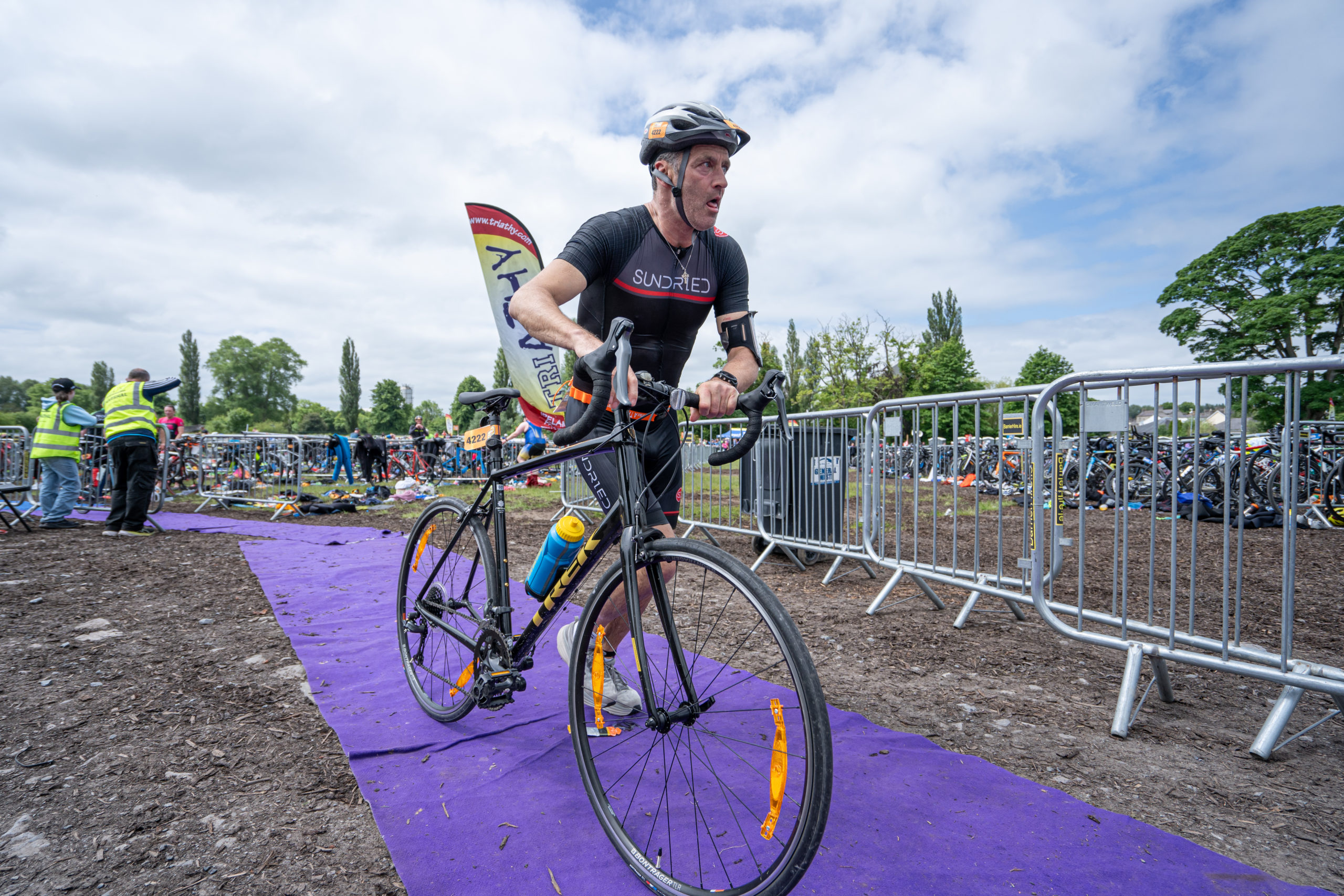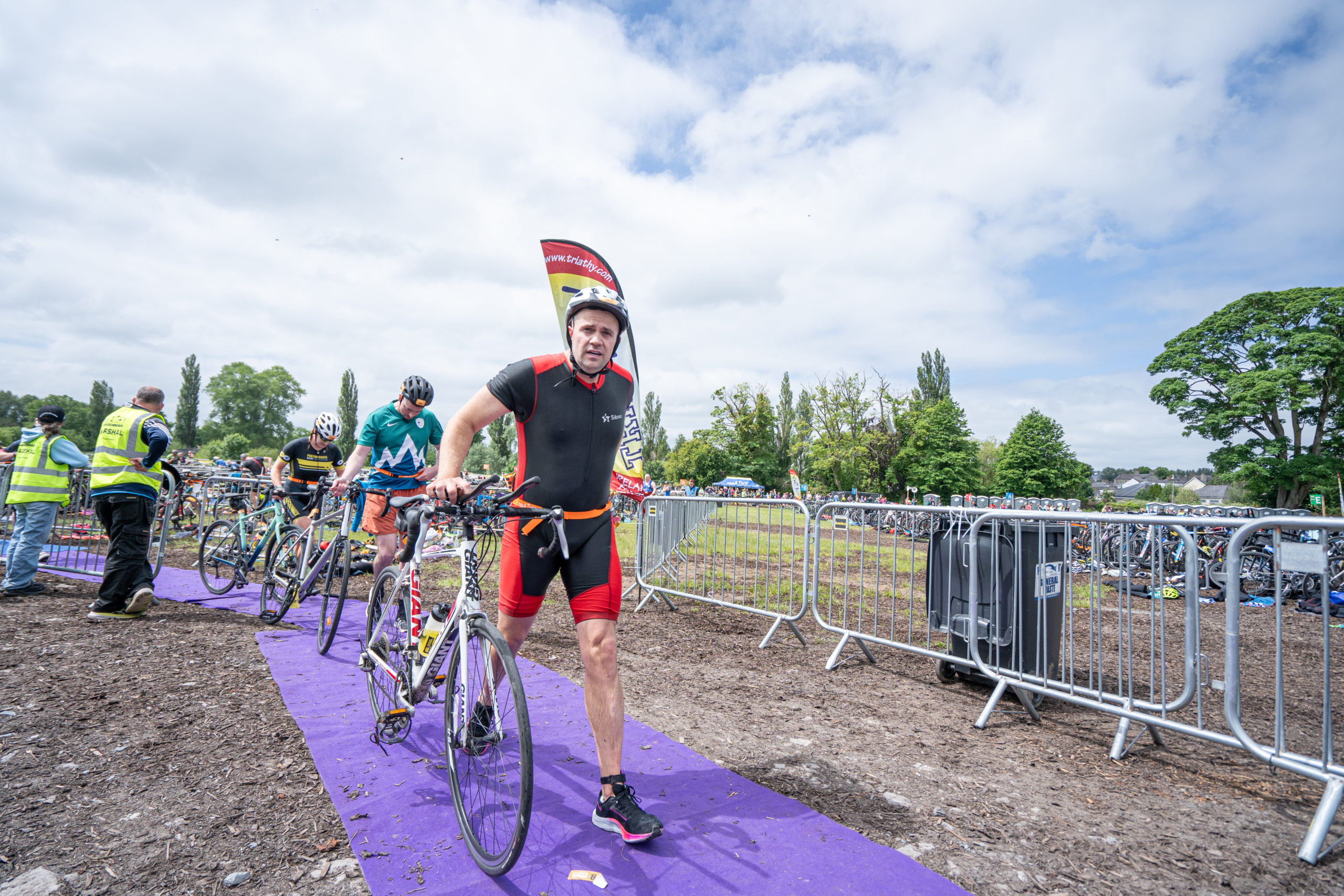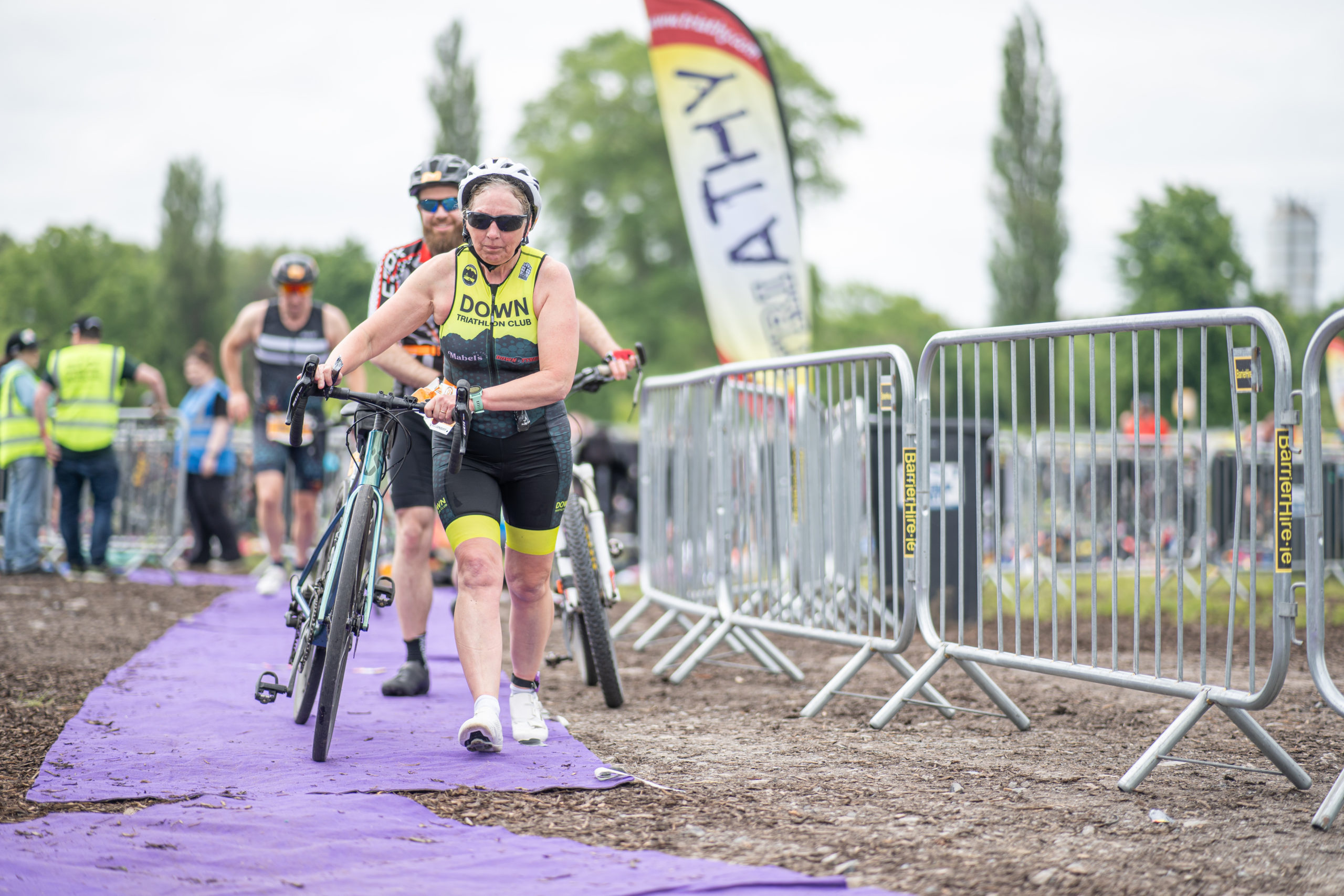 The cycle consisted of a 40 km lap through the south of Athy. The majority of the course was on wide, closed roads, with the remaining sections covering a more technical area close to Kilkea Castle and Castledermot. Paul Carroll took the lead in the Men’s race, with a bike time of 00:56:16. In the Women’s race, Becky Woods from Piranha took the lead and completed the bike in 01:03:27.
