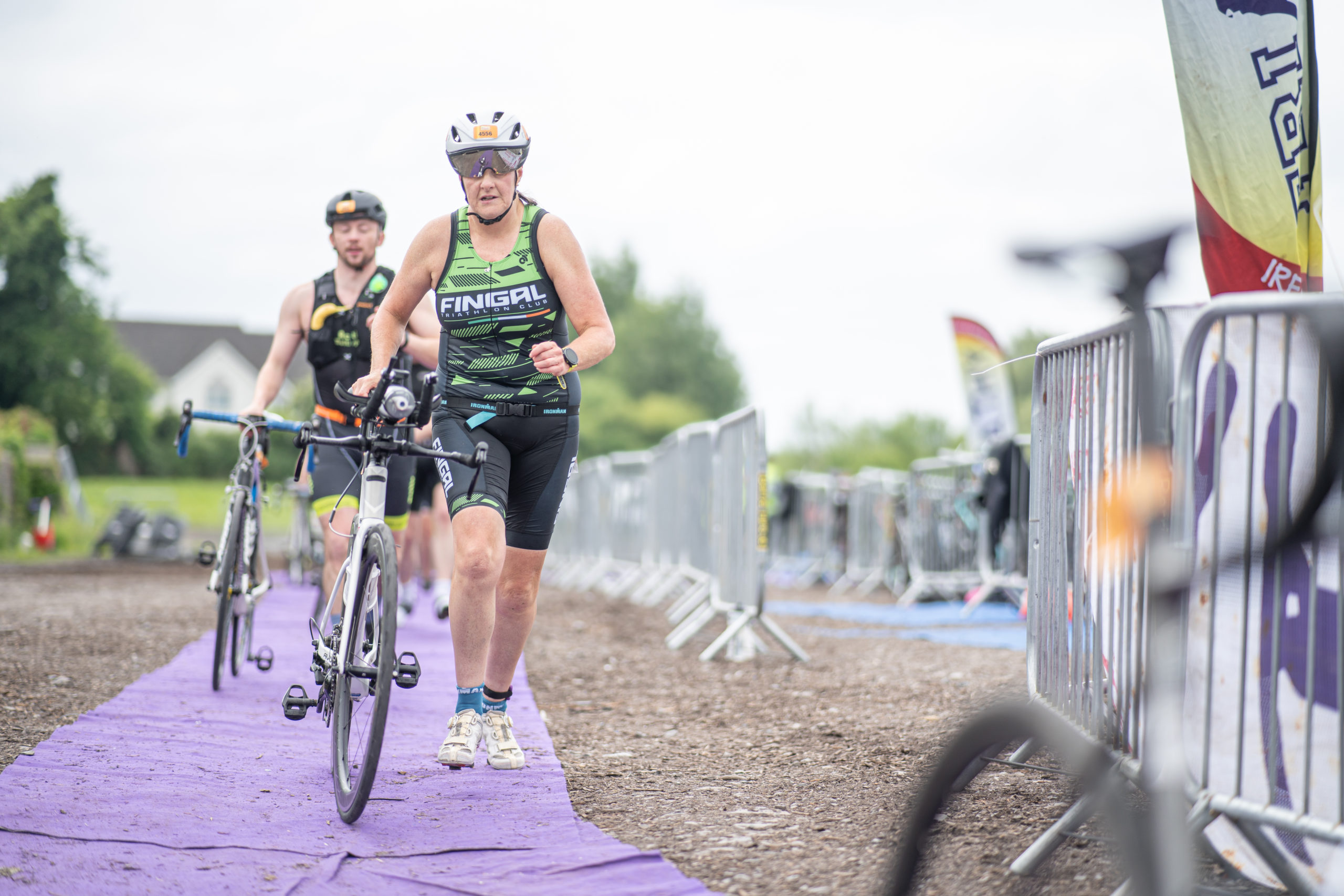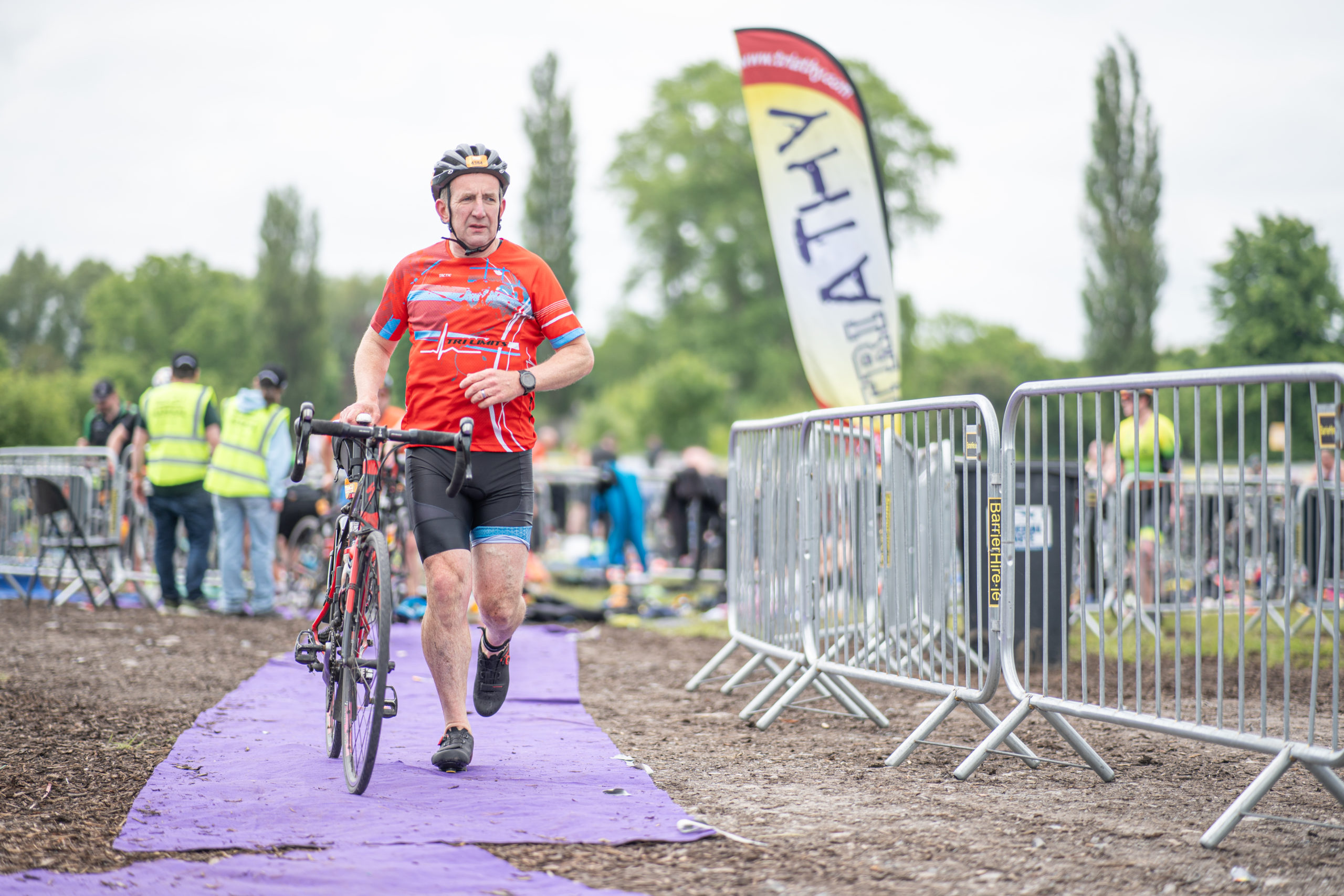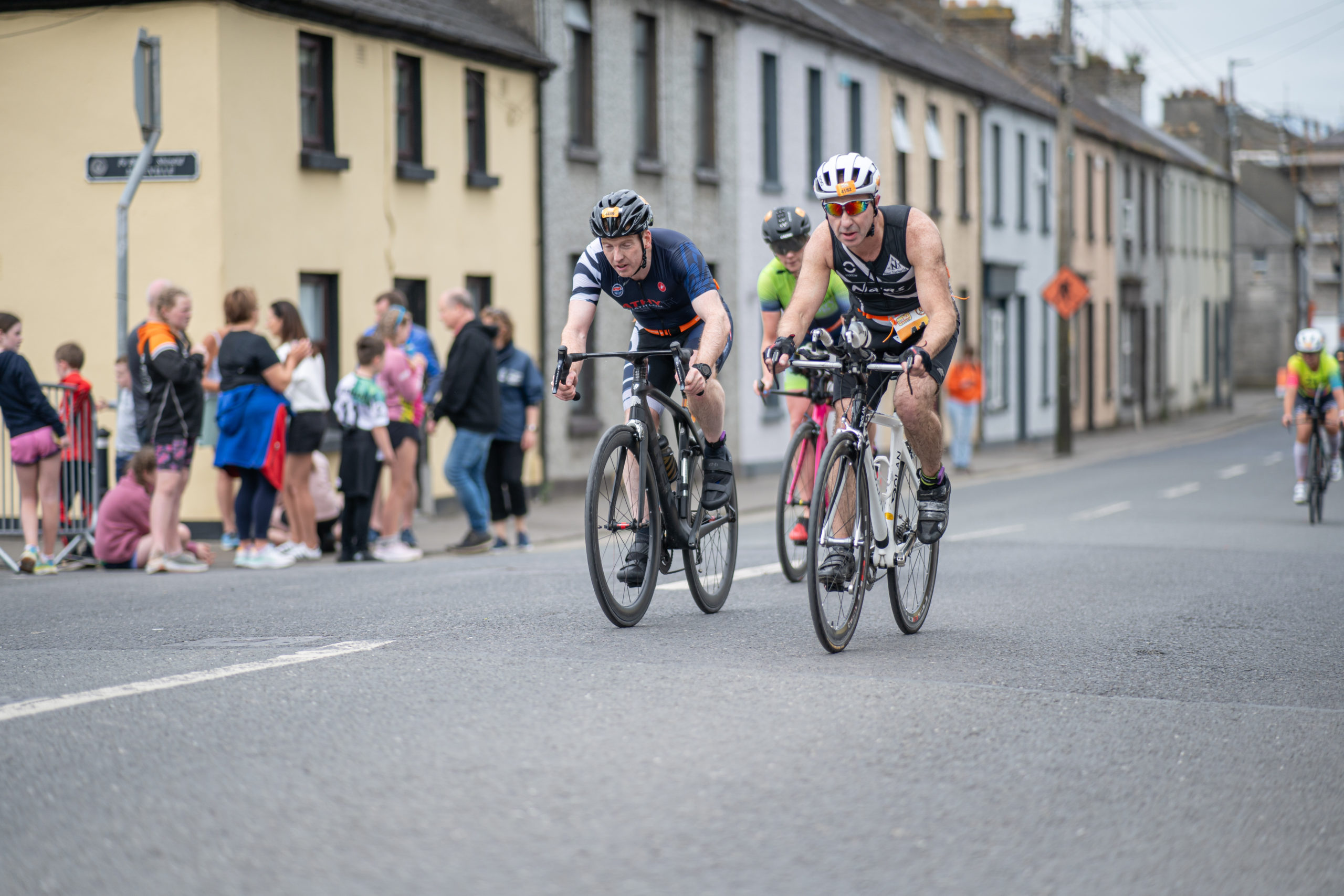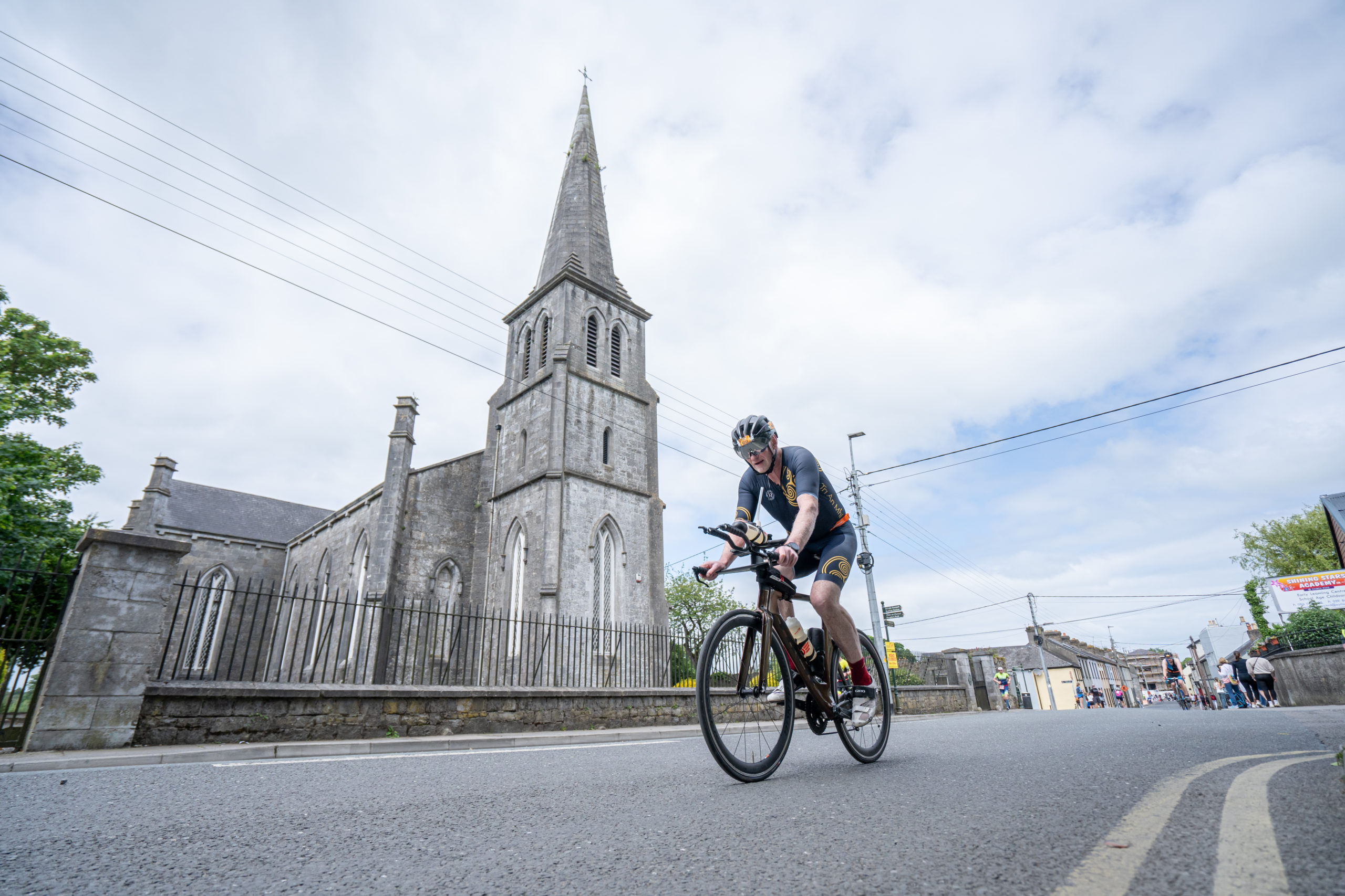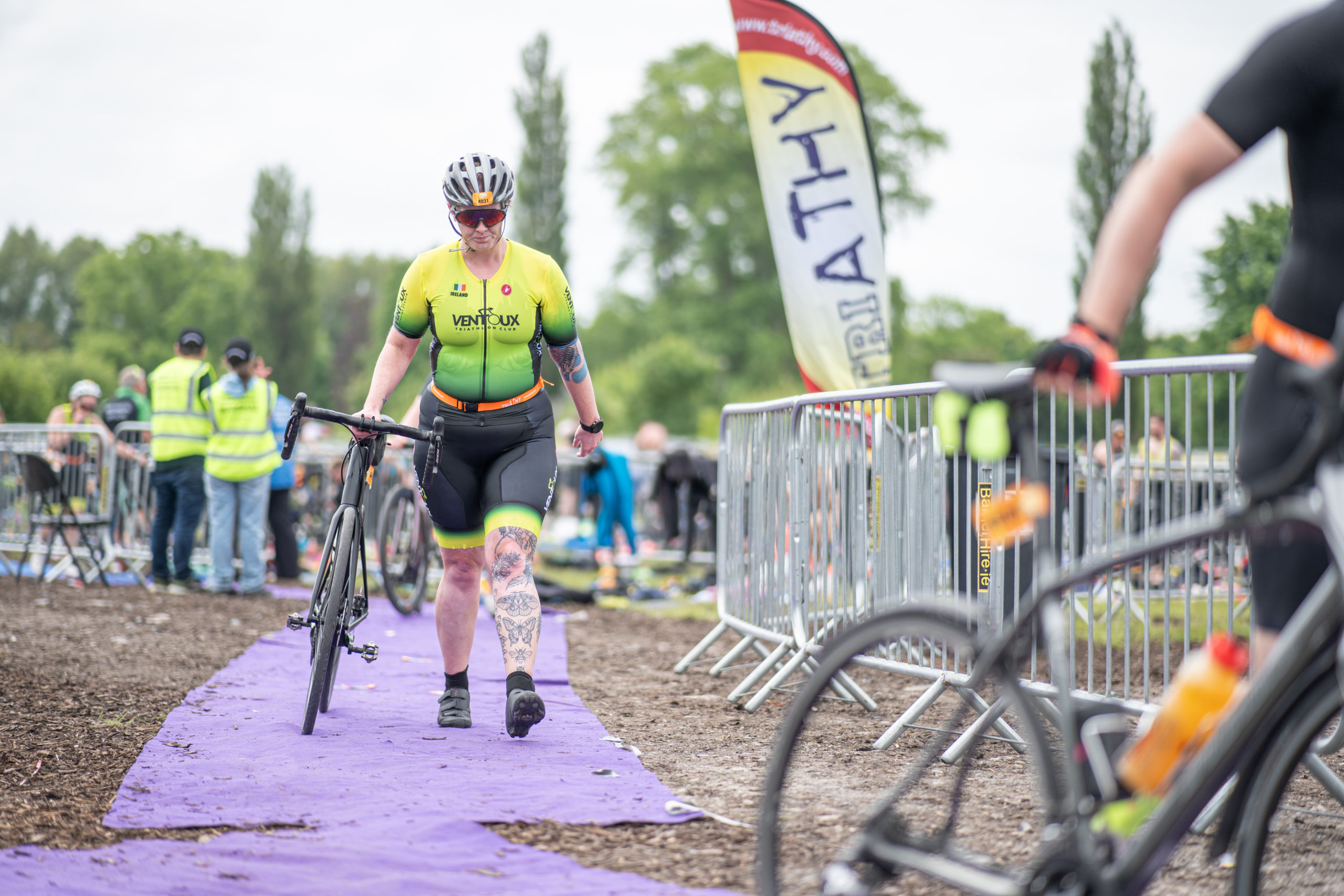 The cycle consisted of a 40 km lap through the south of Athy. The majority of the course was on wide, closed roads, with the remaining sections covering a more technical area close to Kilkea Castle and Castledermot. Paul Carroll took the lead in the Men’s race, with a bike time of 00:56:16. In the Women’s race, Becky Woods from Piranha took the lead and completed the bike in 01:03:27.