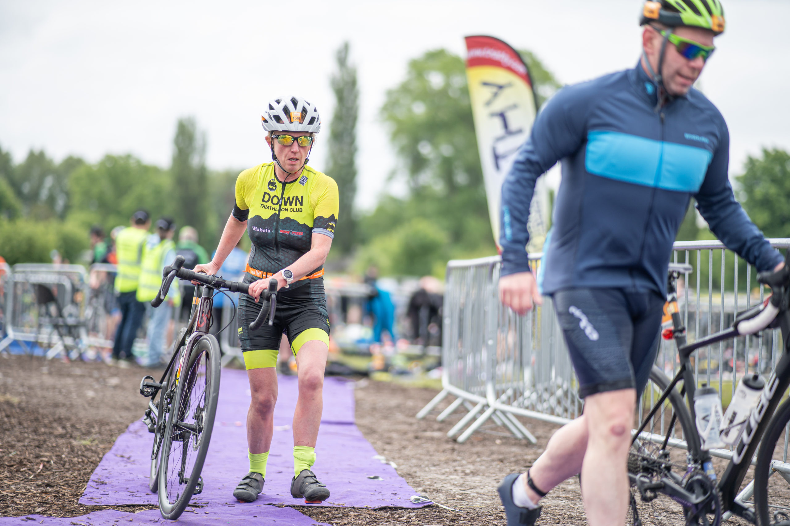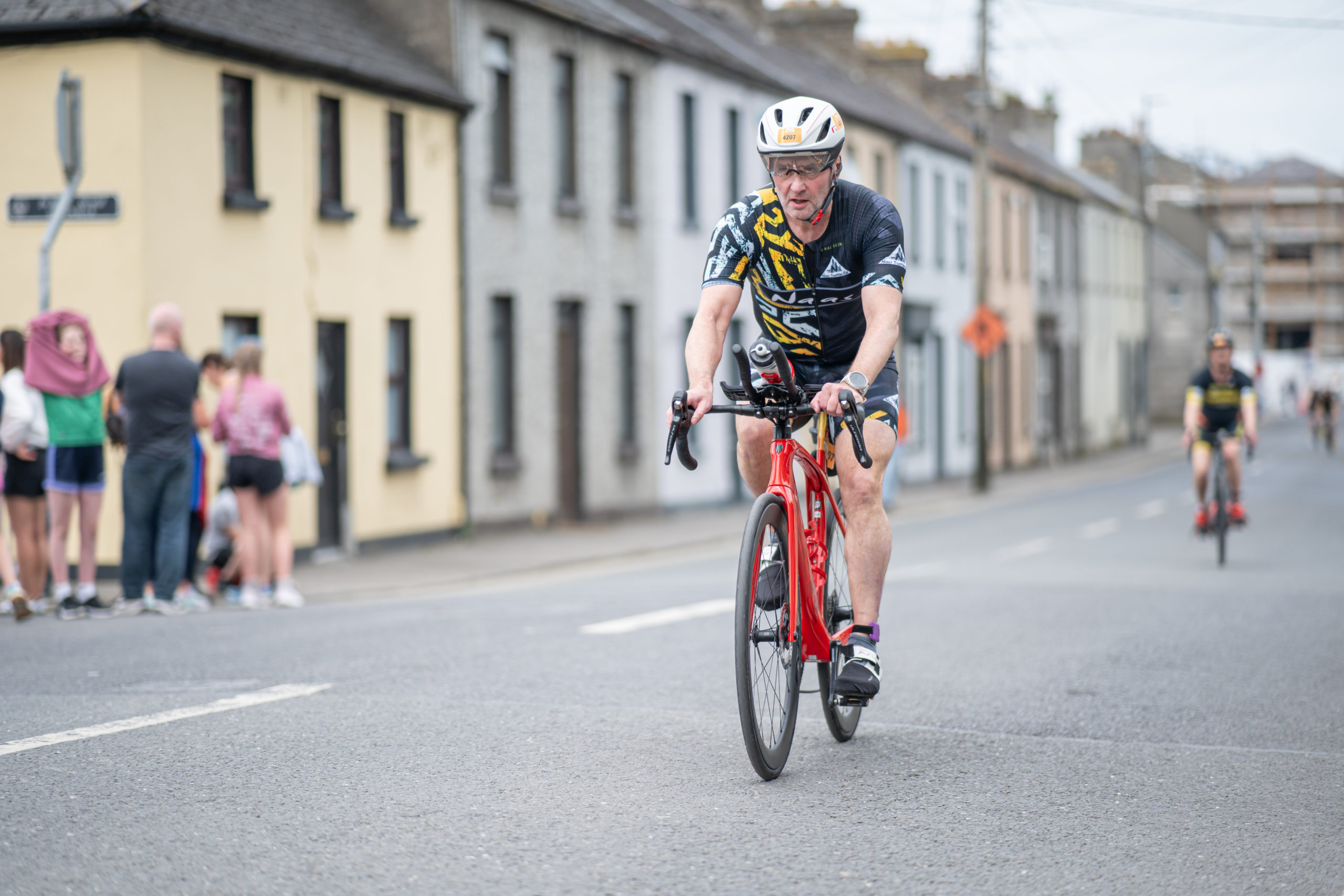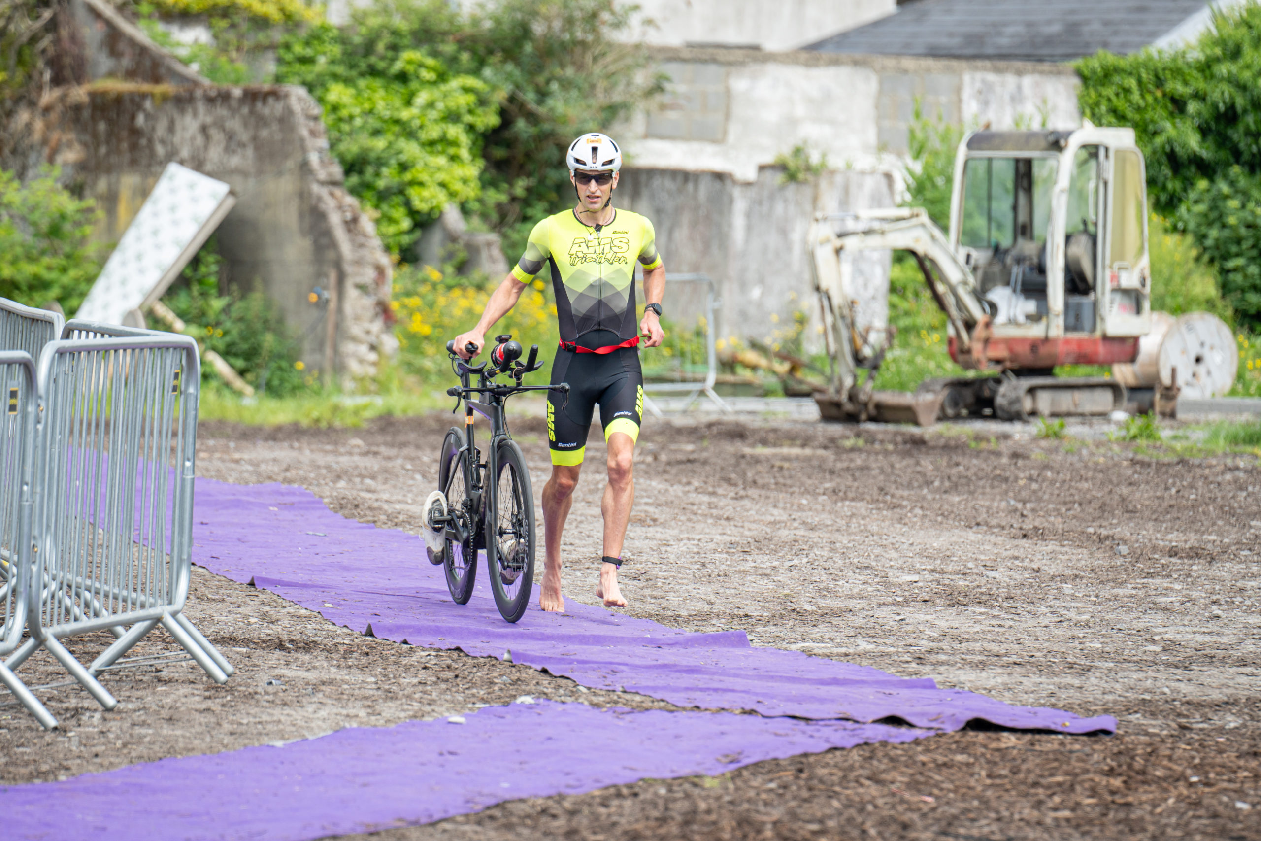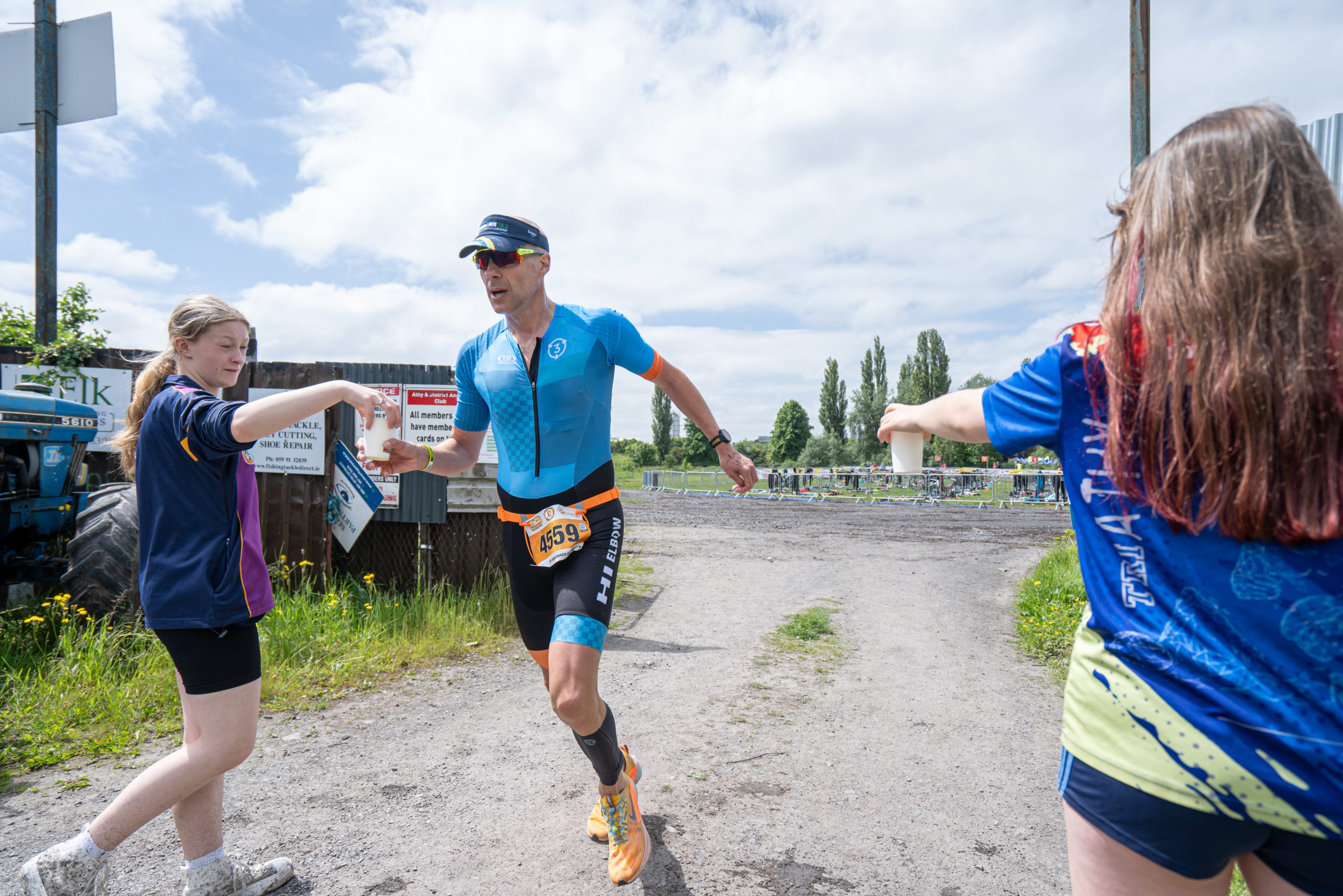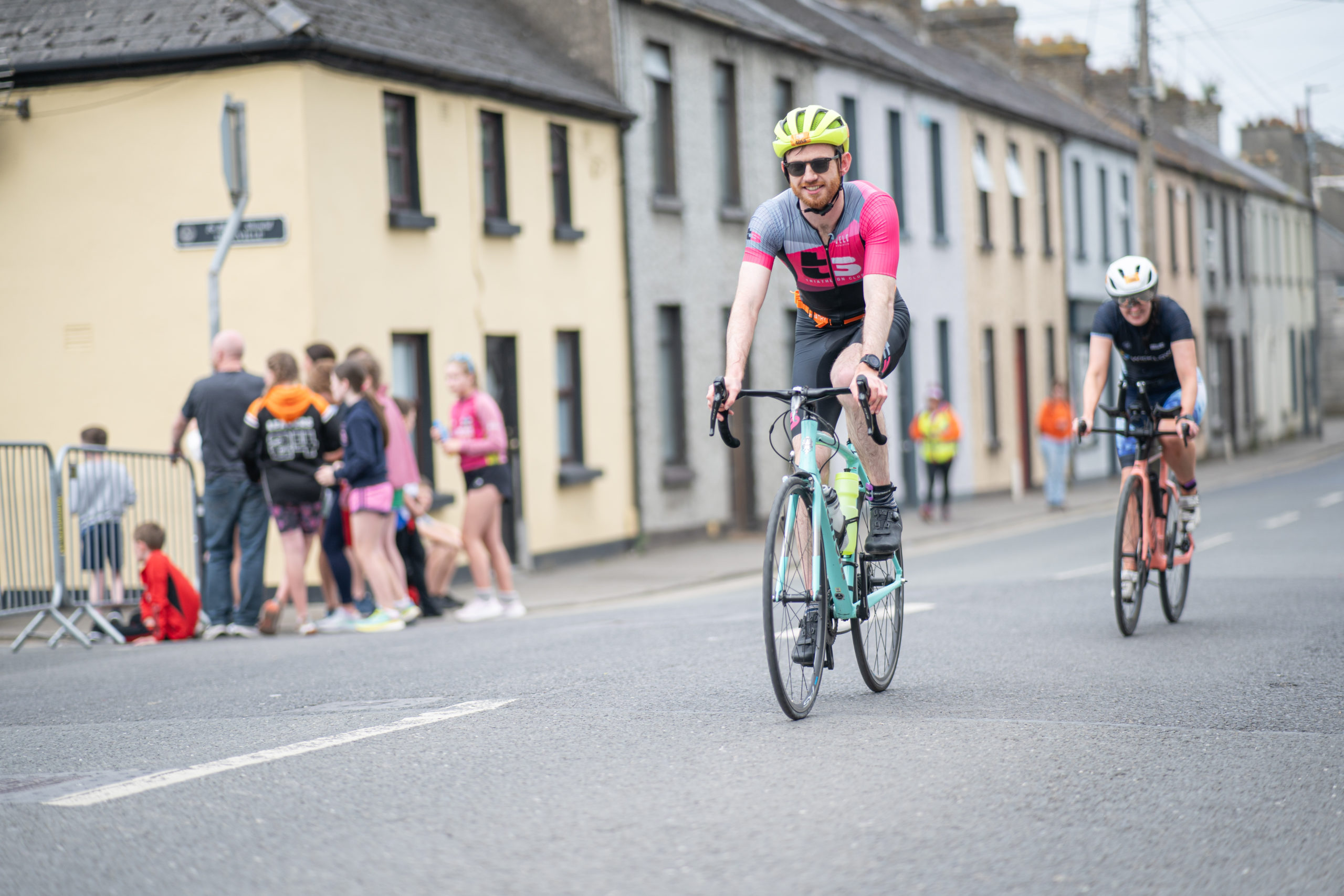 The cycle consisted of a 40 km lap through the south of Athy. The majority of the course was on wide, closed roads, with the remaining sections covering a more technical area close to Kilkea Castle and Castledermot. Paul Carroll took the lead in the Men’s race, with a bike time of 00:56:16. In the Women’s race, Becky Woods from Piranha took the lead and completed the bike in 01:03:27.