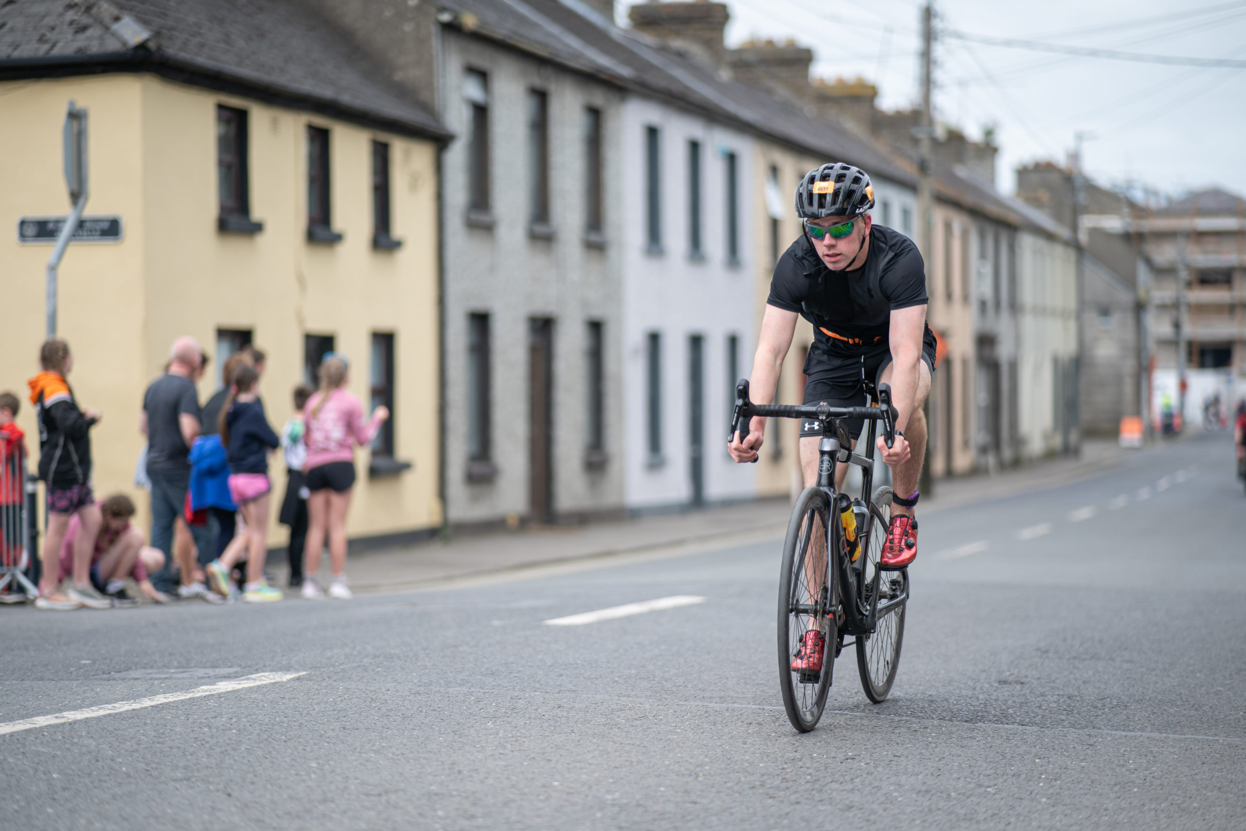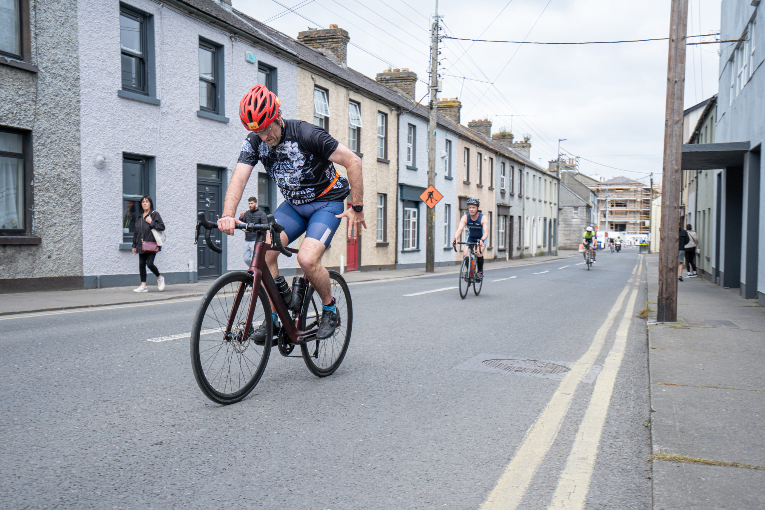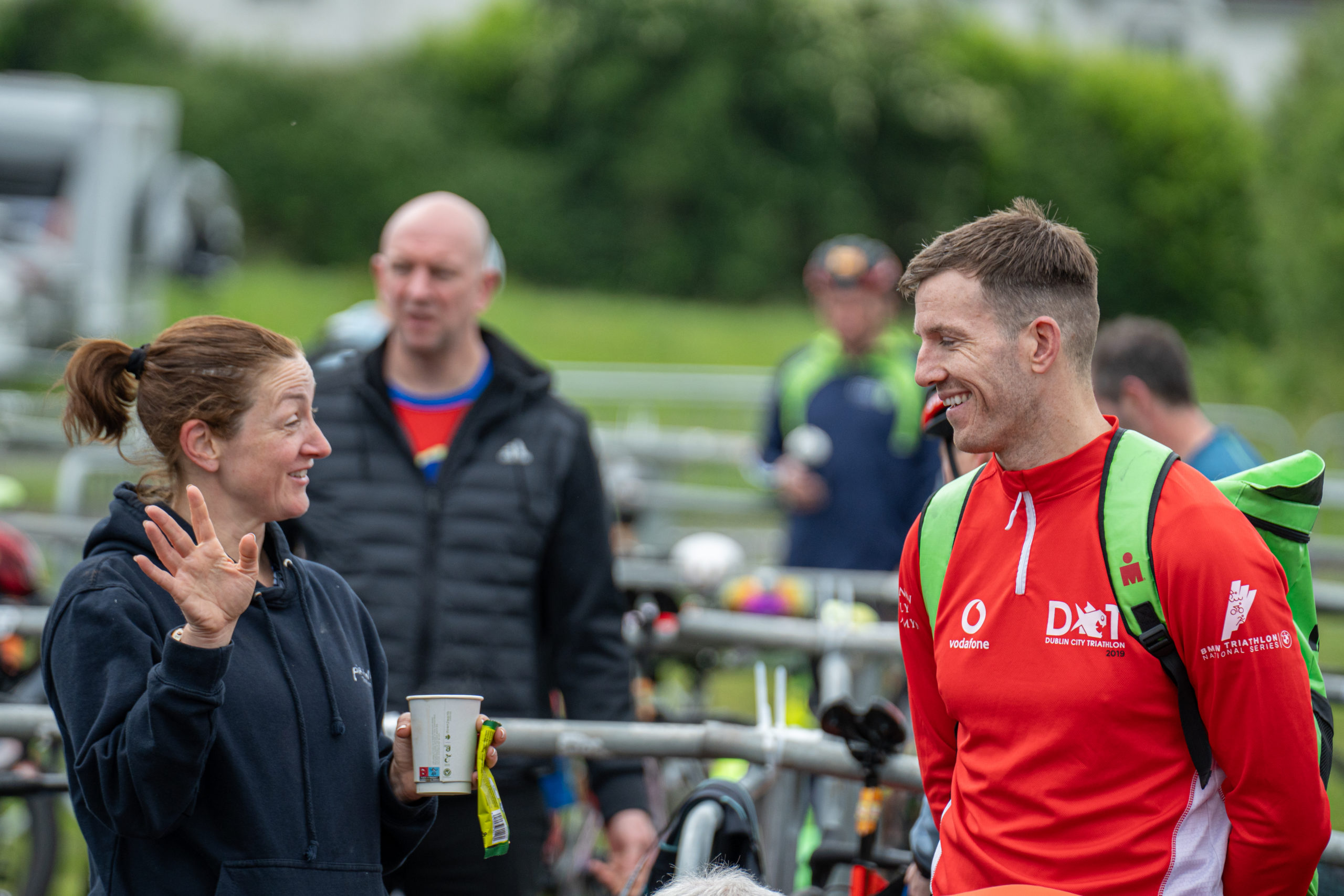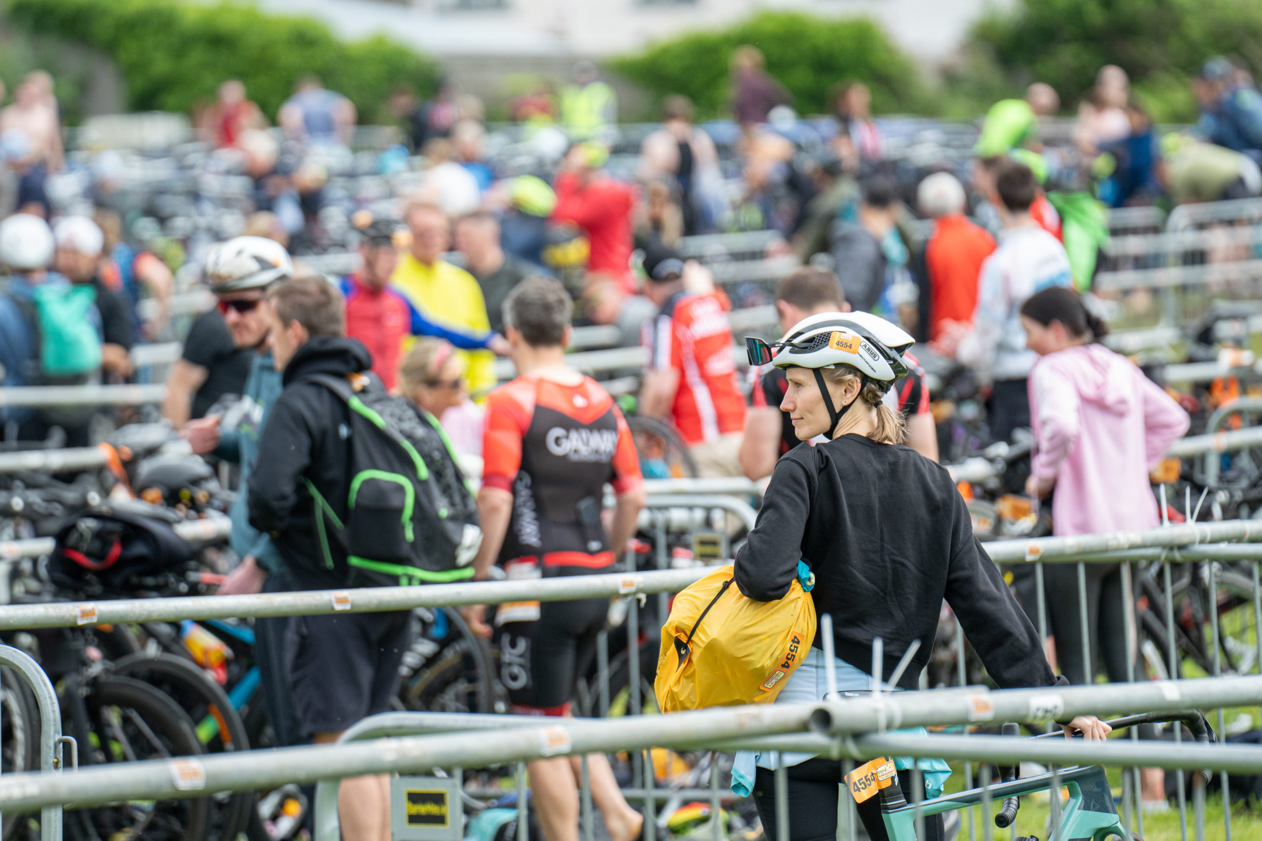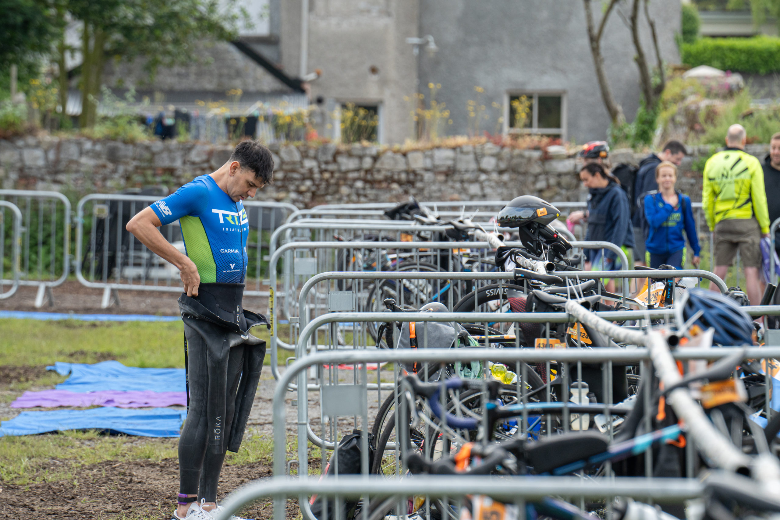 The cycle consisted of a 40 km lap through the south of Athy. The majority of the course was on wide, closed roads, with the remaining sections covering a more technical area close to Kilkea Castle and Castledermot. Paul Carroll took the lead in the Men’s race, with a bike time of 00:56:16. In the Women’s race, Becky Woods from Piranha took the lead and completed the bike in 01:03:27.
