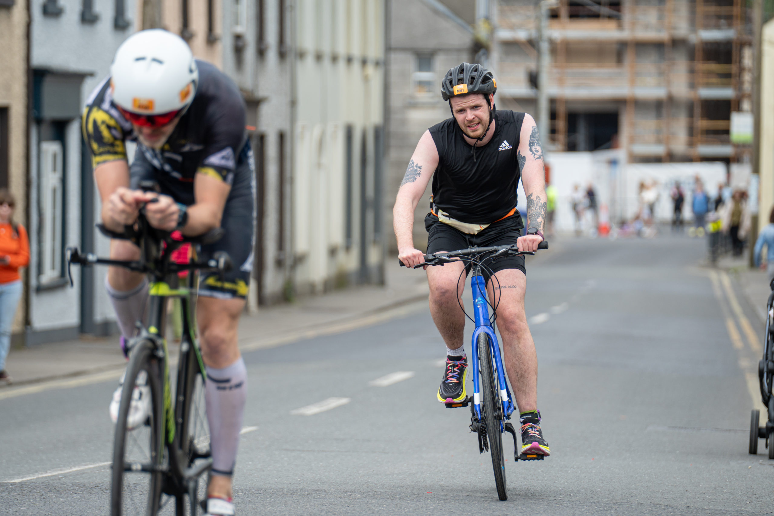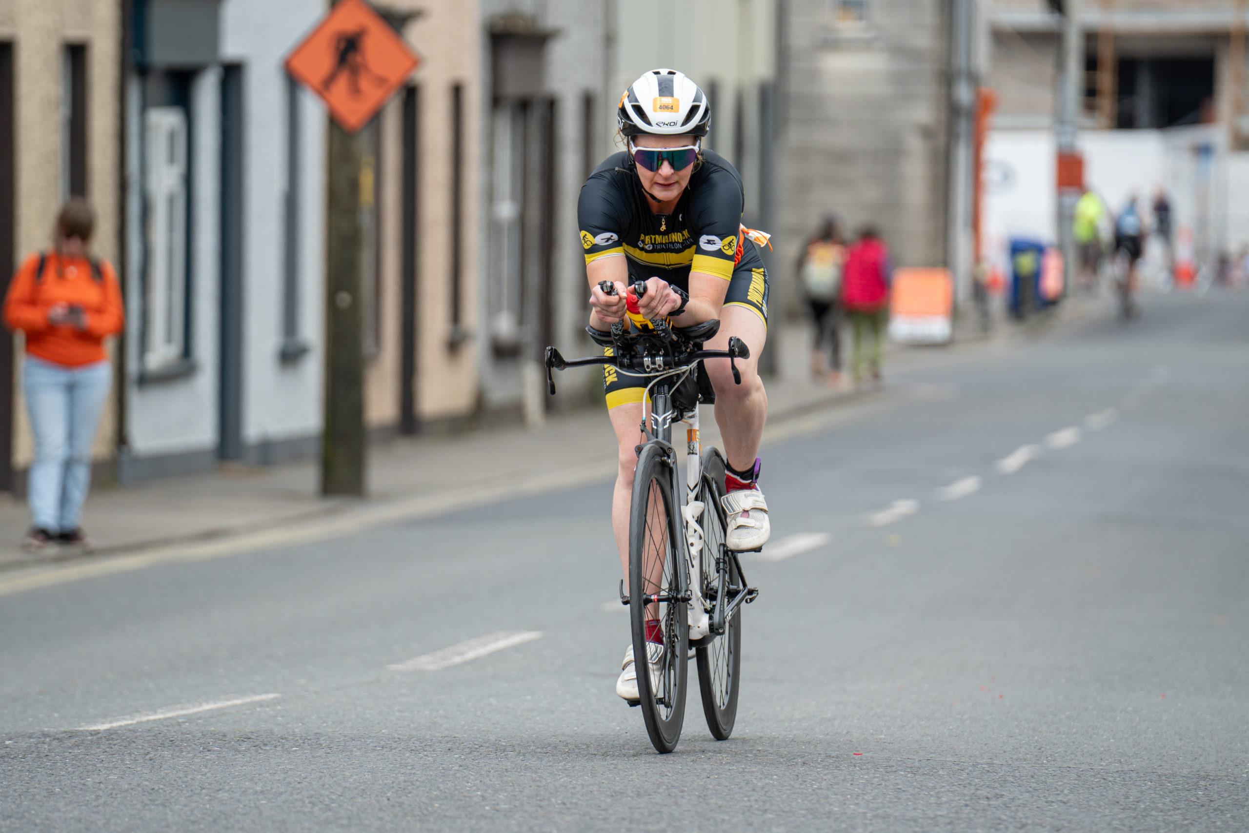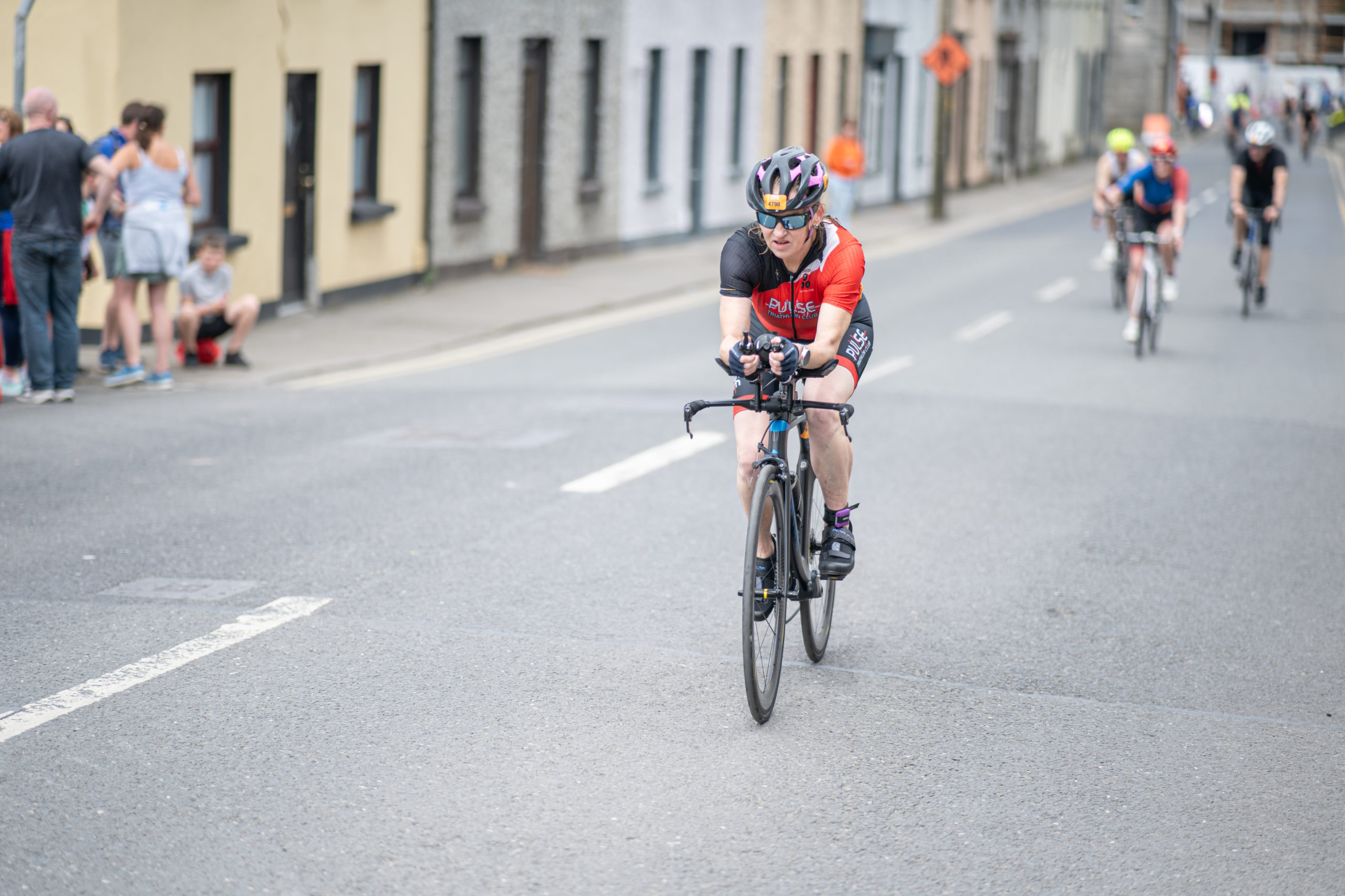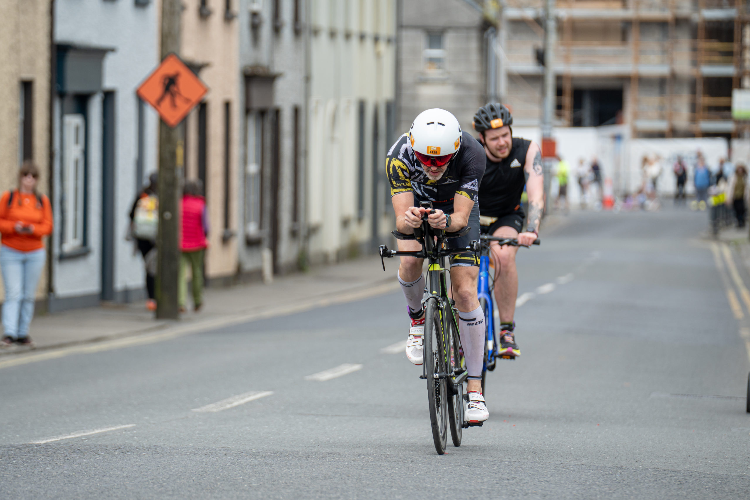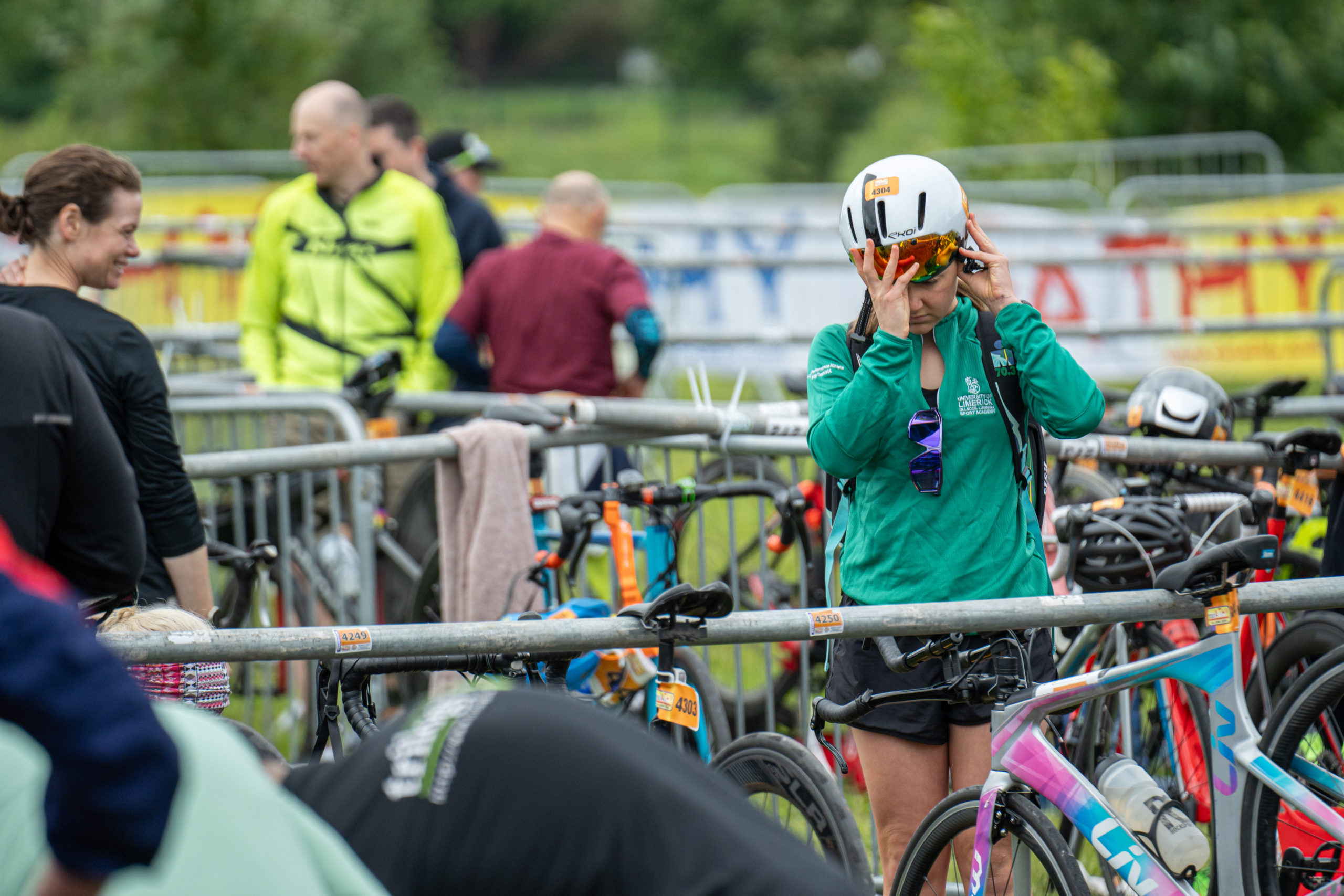 The cycle consisted of a 40 km lap through the south of Athy. The majority of the course was on wide, closed roads, with the remaining sections covering a more technical area close to Kilkea Castle and Castledermot. Paul Carroll took the lead in the Men’s race, with a bike time of 00:56:16. In the Women’s race, Becky Woods from Piranha took the lead and completed the bike in 01:03:27.