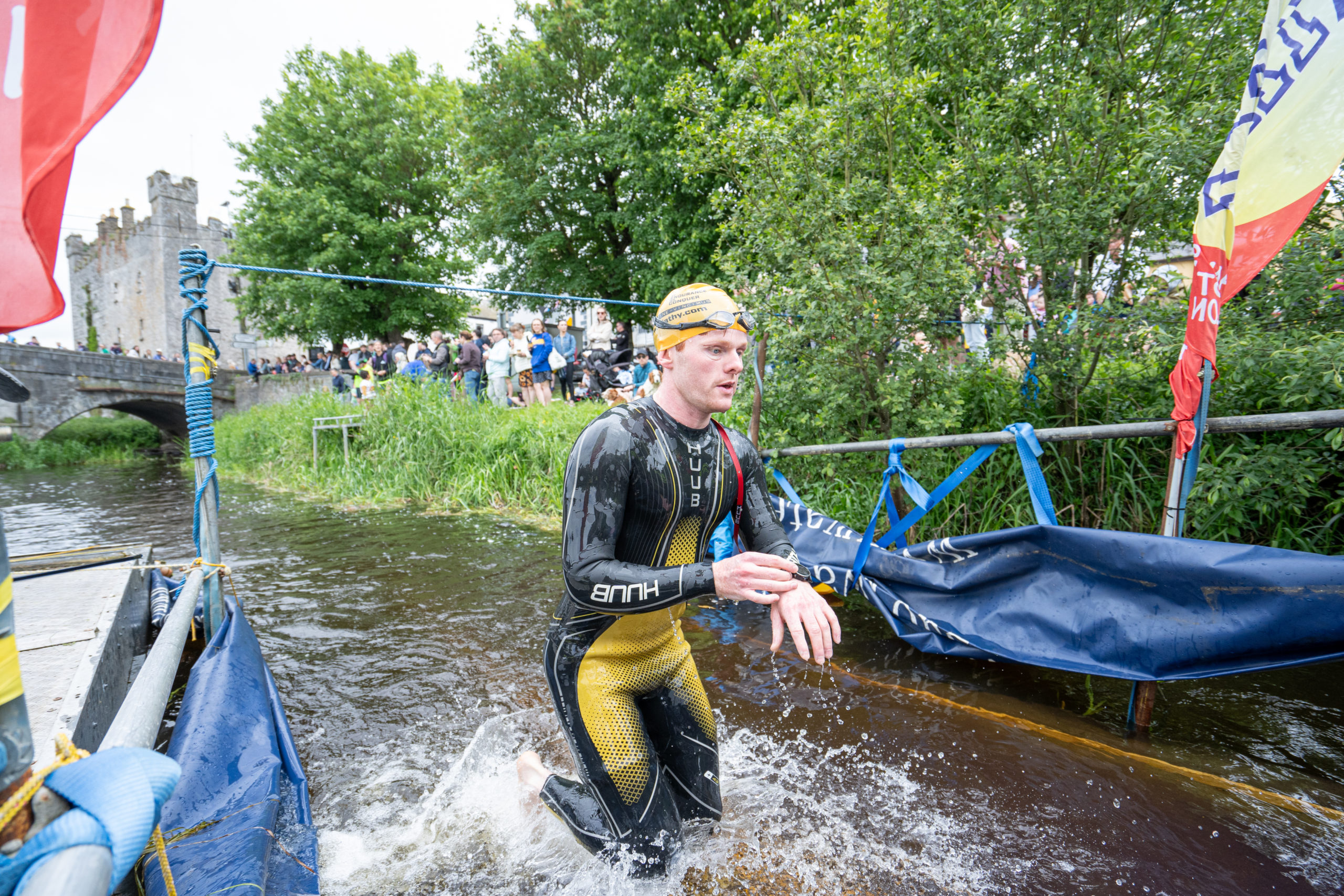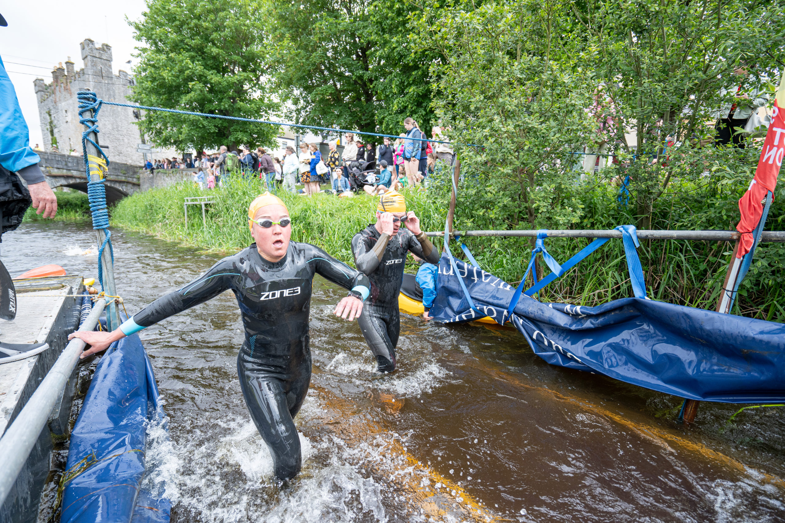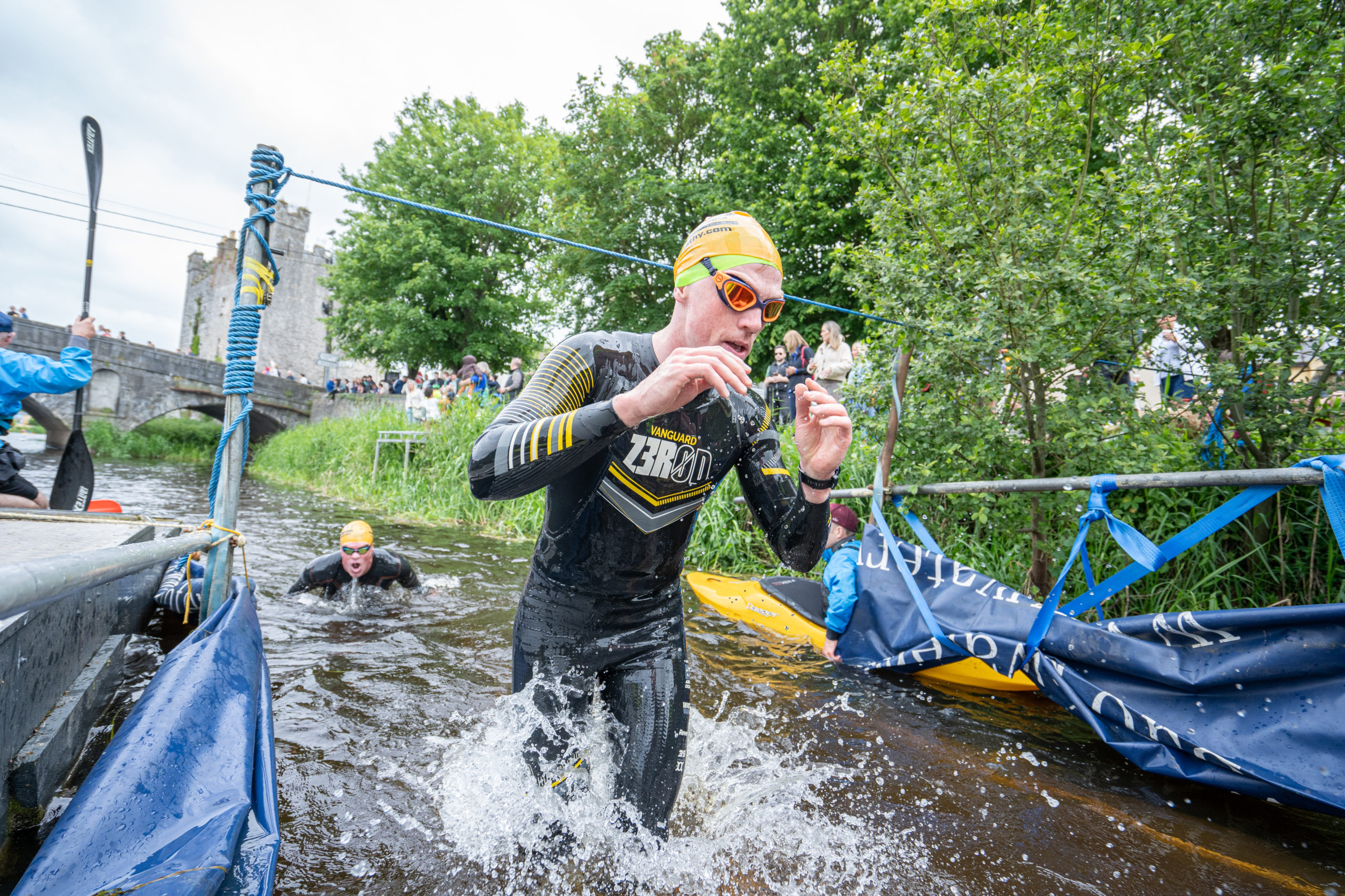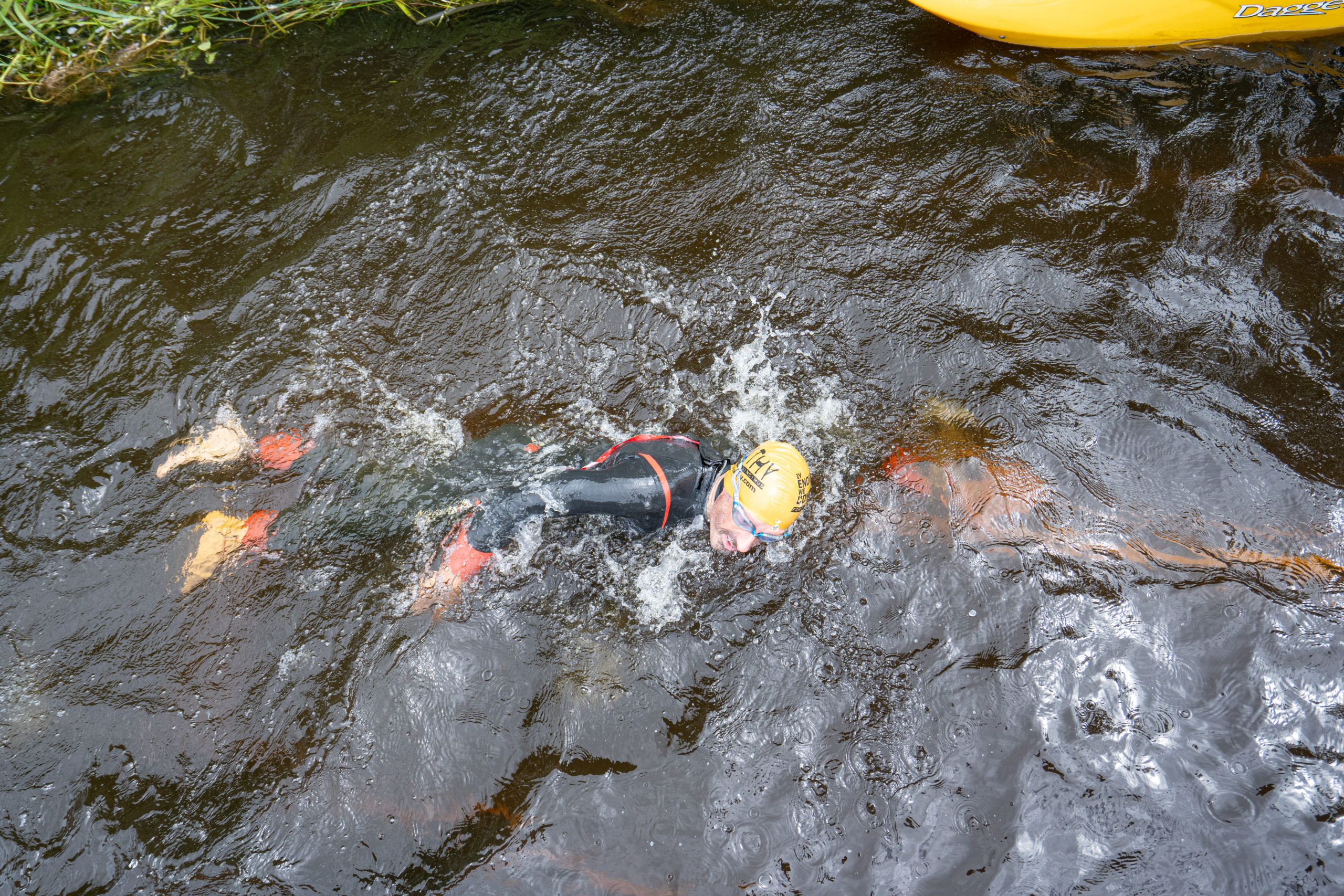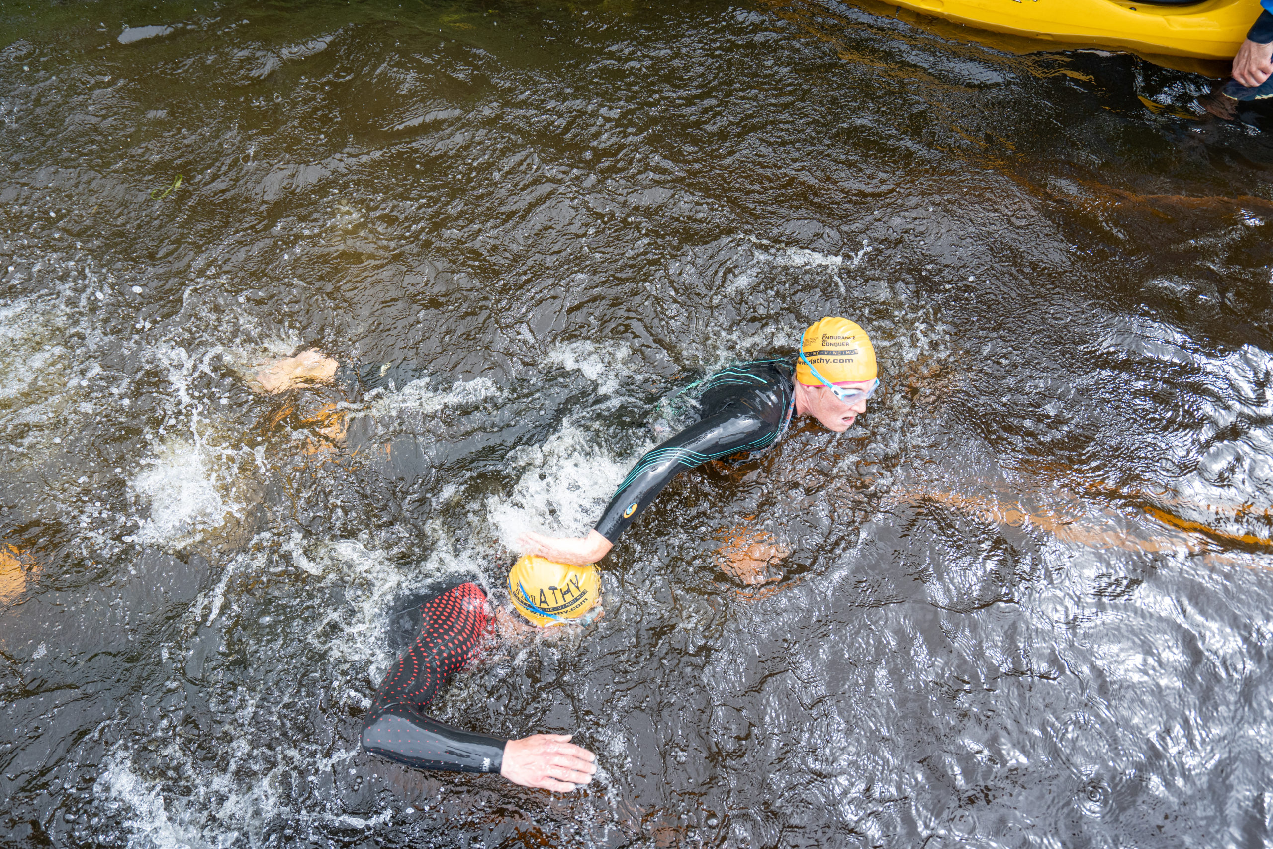 The race kicked off with a rolling start as the athletes entered the River Barrow in Athy. The initial 600 m was upstream against the current before the athletes took a single u-turn to swim the final 900 m downstream. In the Men’s race, Cory Fines completed the fastest swim in a time of 00:20:01. In the Women’s race, Esther Bayon had the leading time of 00:22:26.