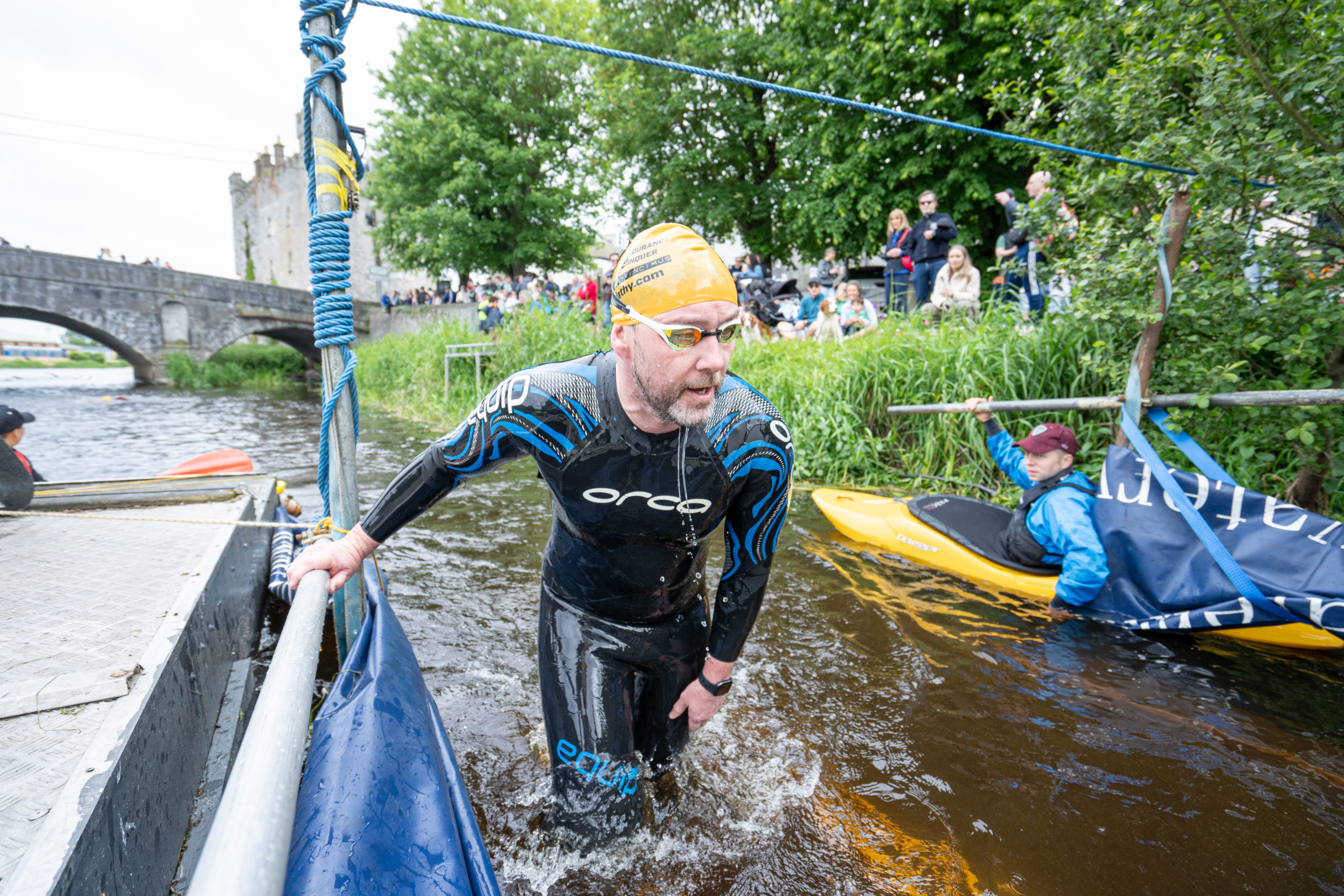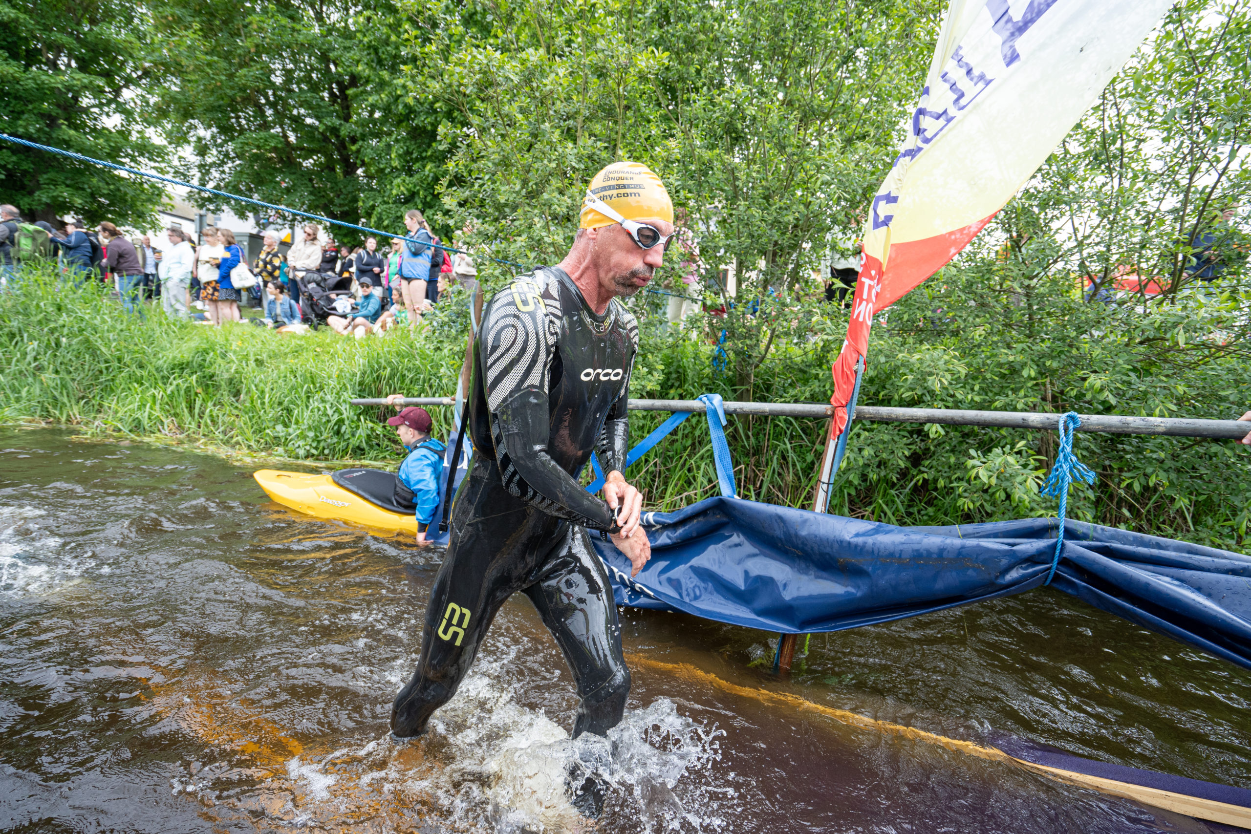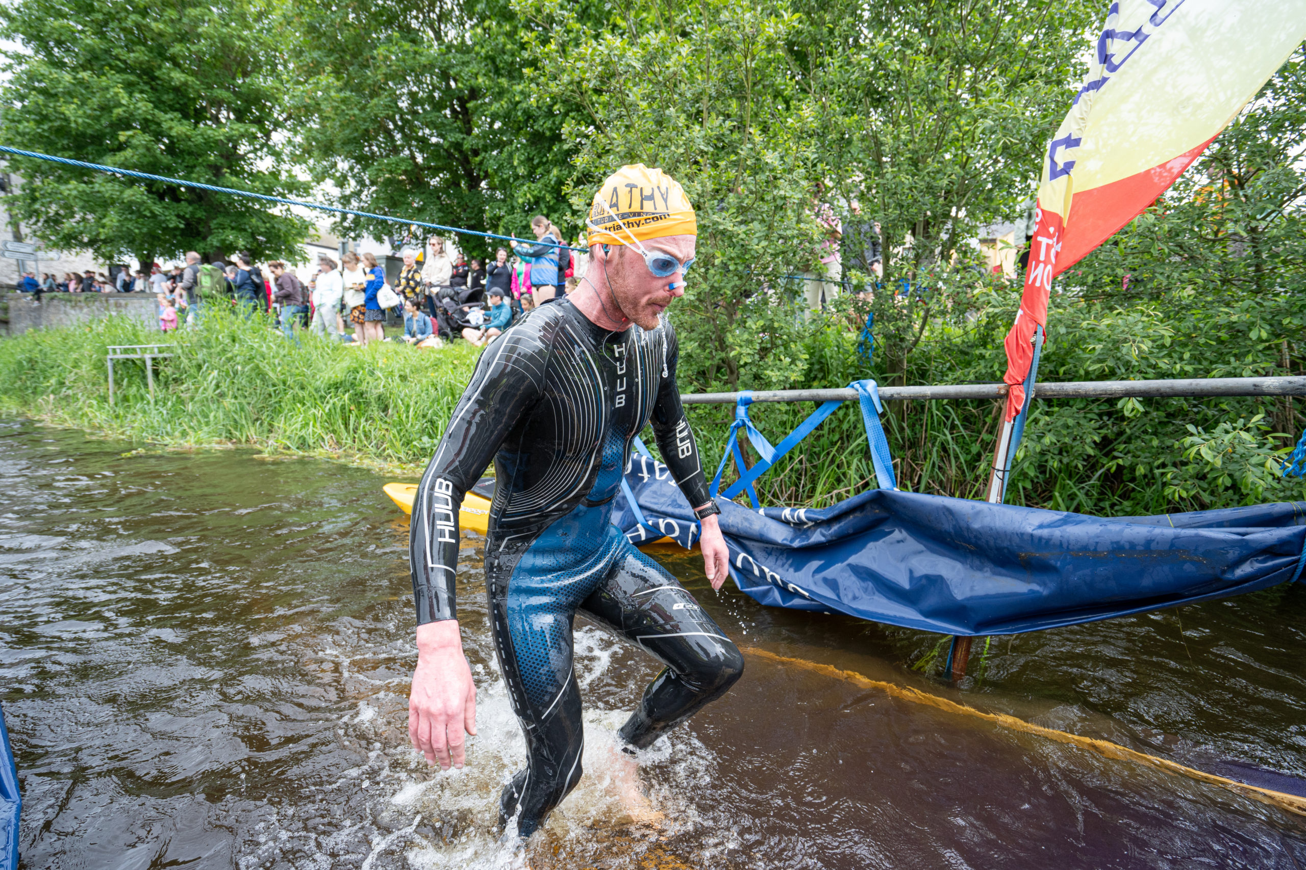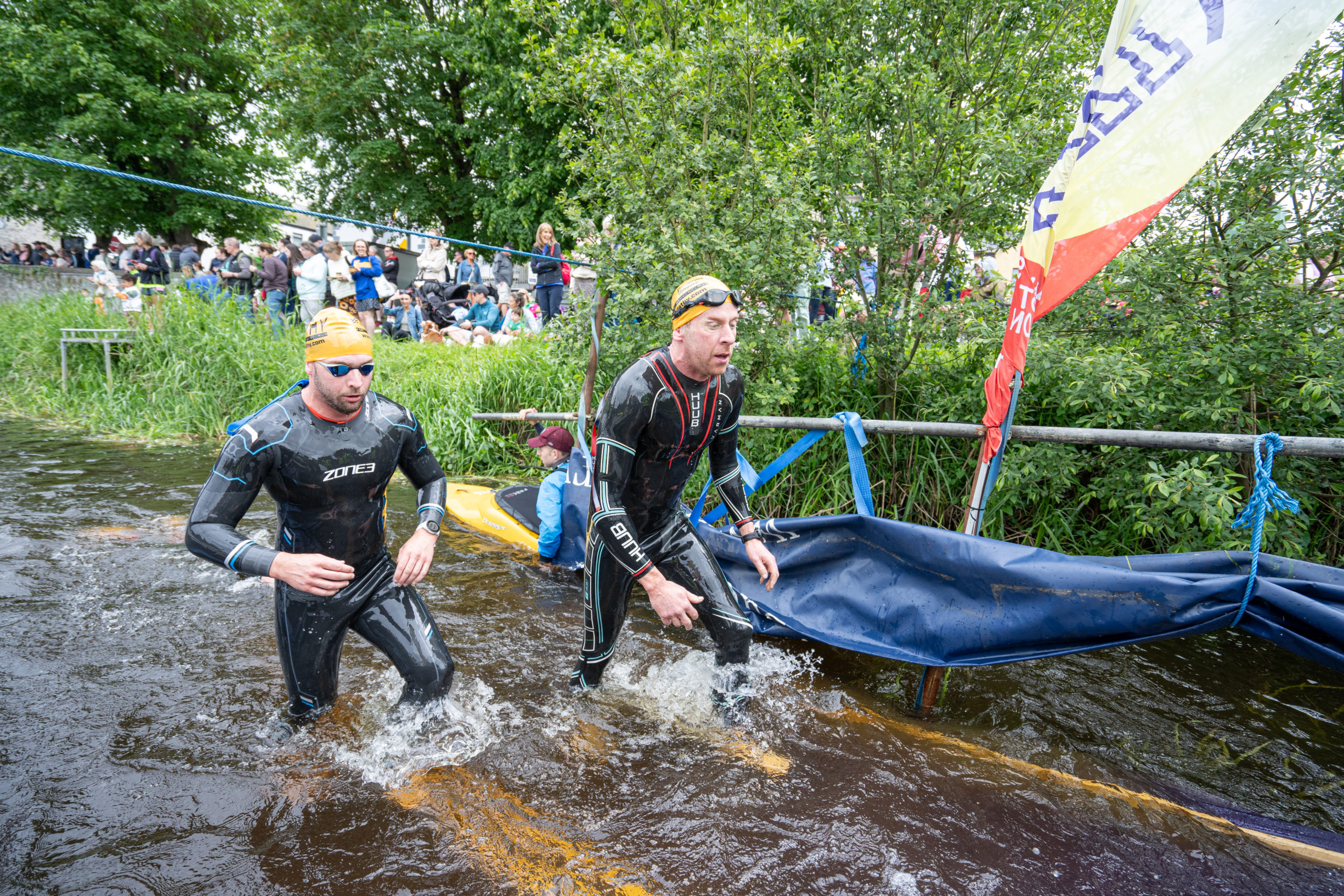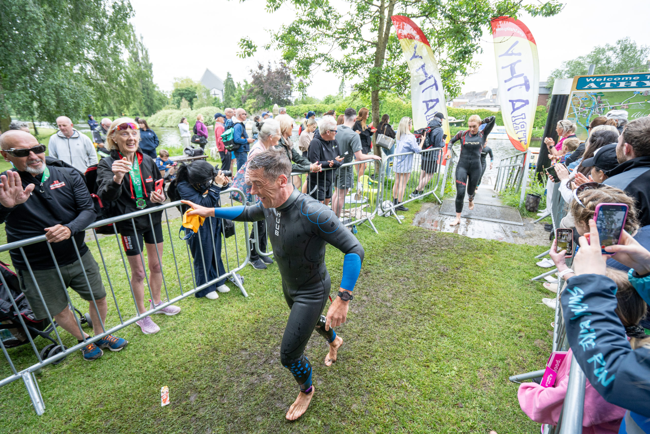 The race kicked off with a rolling start as the athletes entered the River Barrow in Athy. The initial 600 m was upstream against the current before the athletes took a single u-turn to swim the final 900 m downstream. In the Men’s race, Cory Fines completed the fastest swim in a time of 00:20:01. In the Women’s race, Esther Bayon had the leading time of 00:22:26.