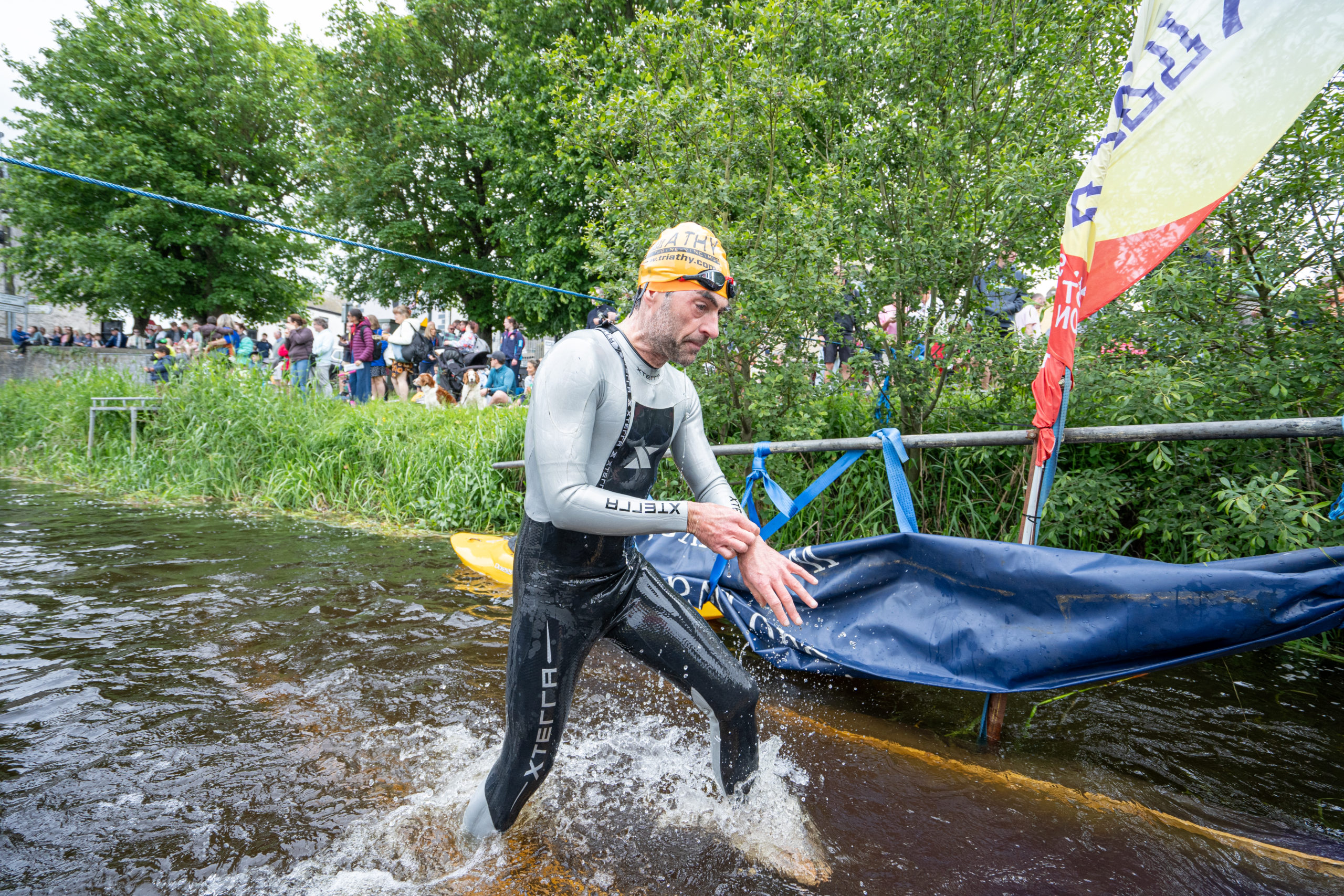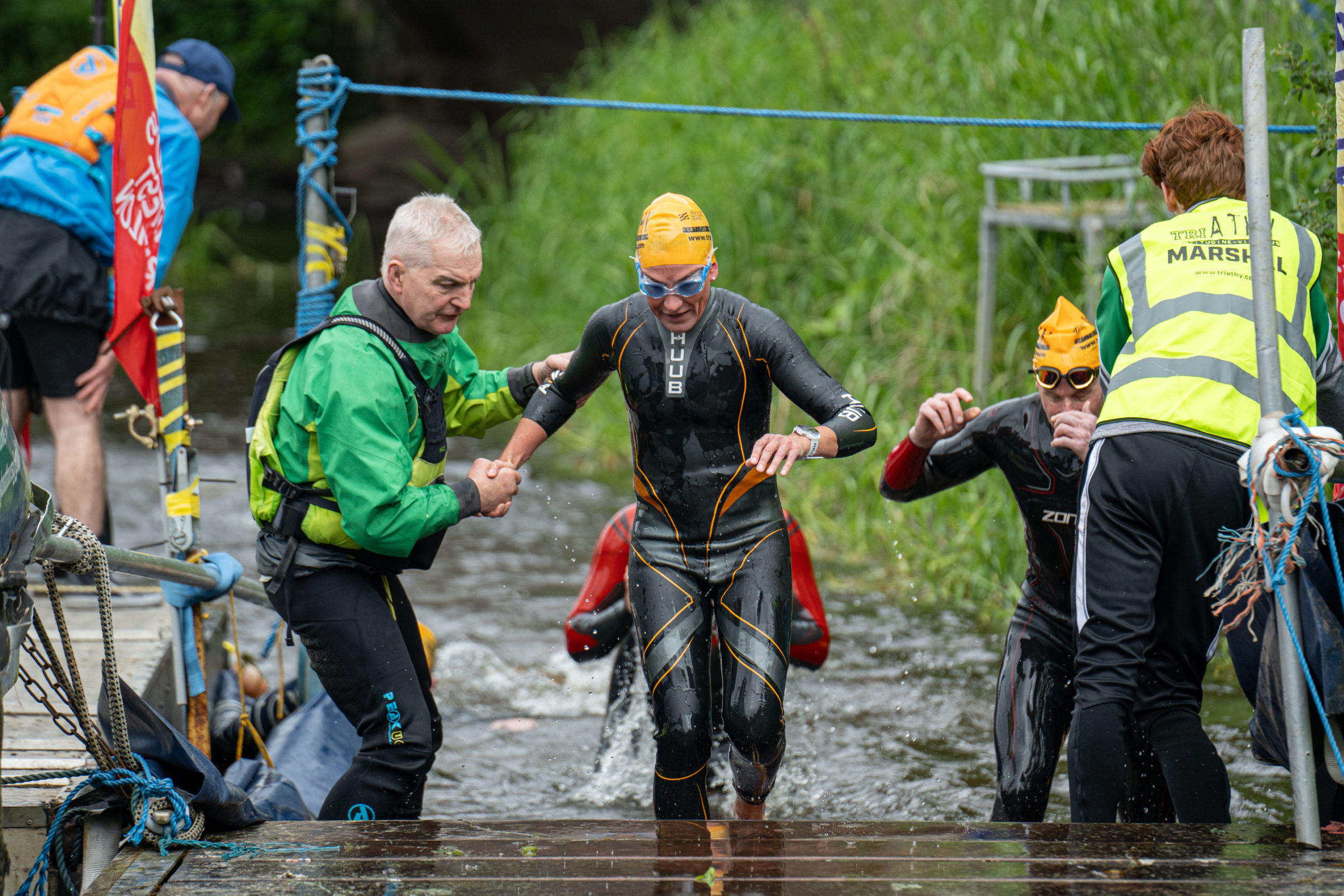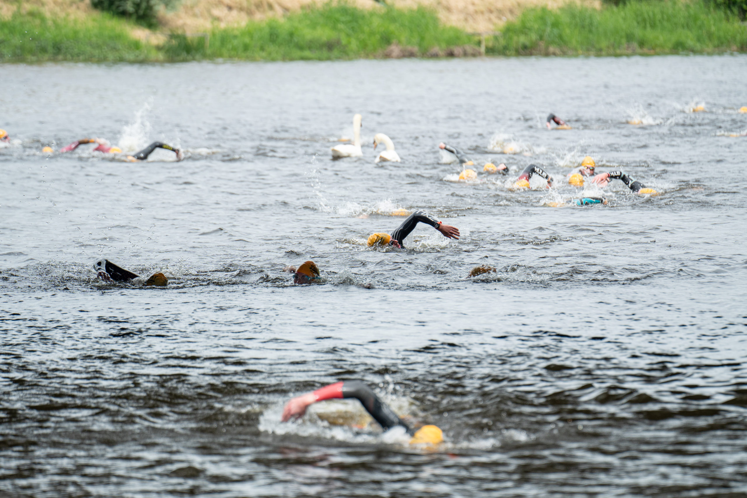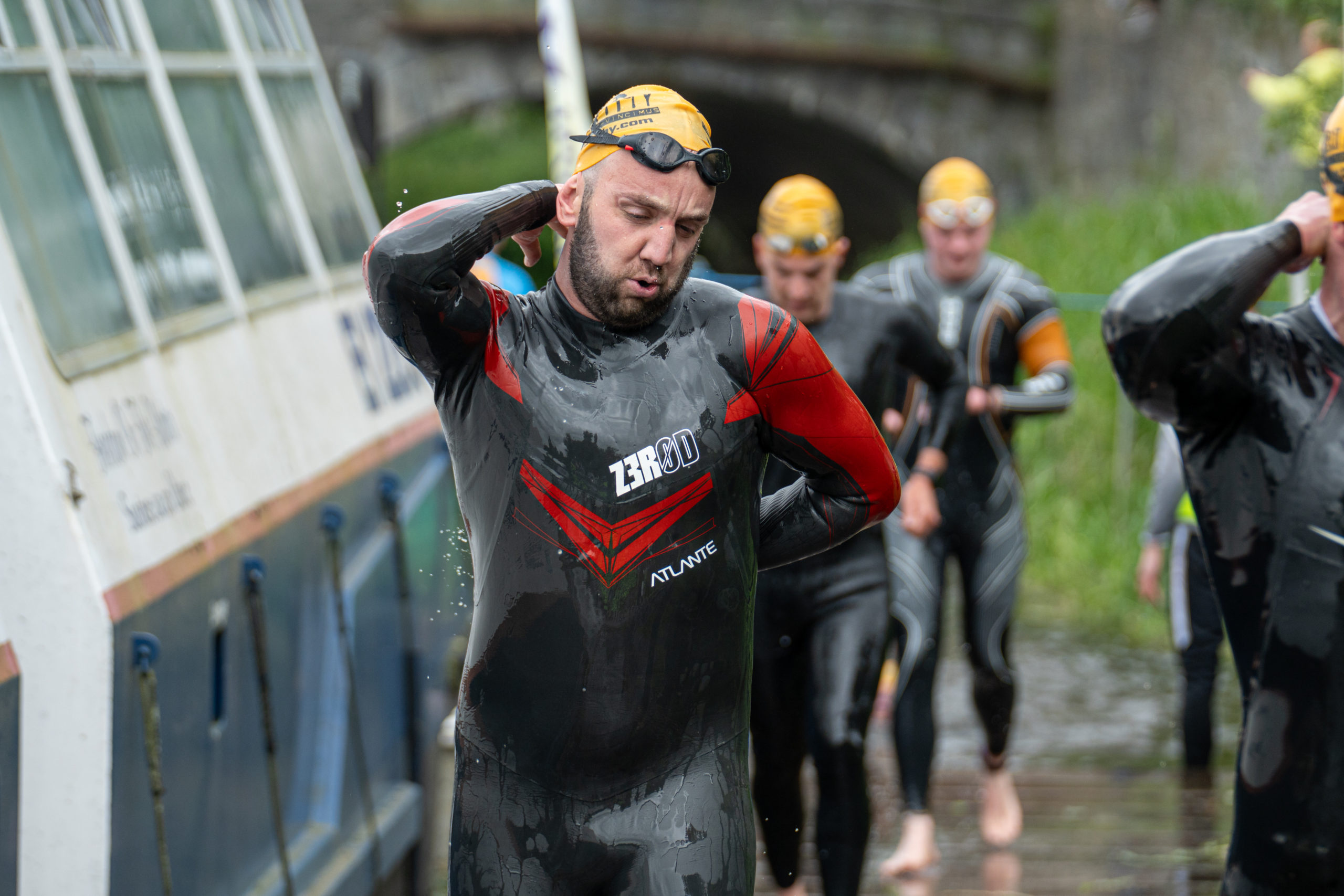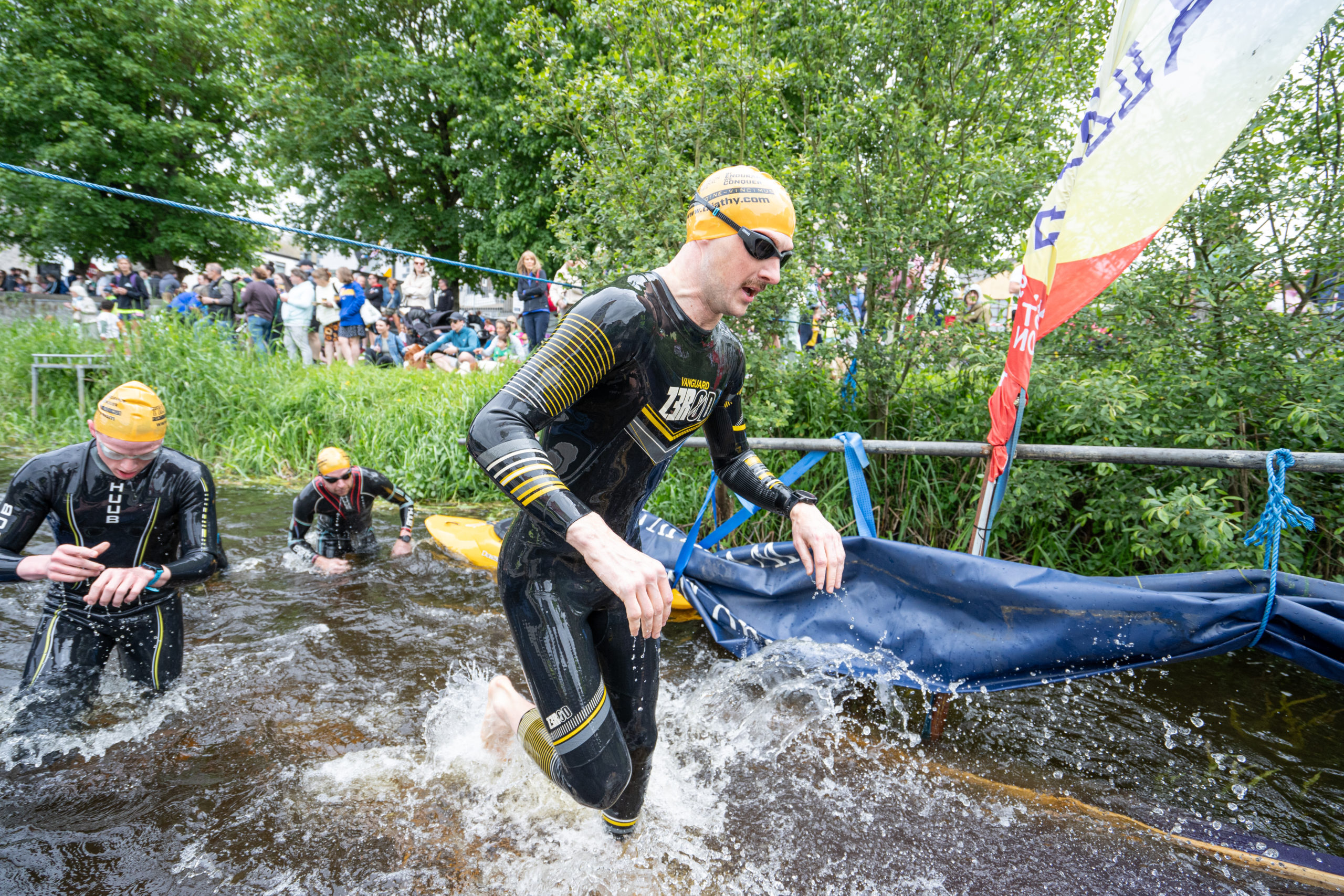 The race kicked off with a rolling start as the athletes entered the River Barrow in Athy. The initial 600 m was upstream against the current before the athletes took a single u-turn to swim the final 900 m downstream. In the Men’s race, Cory Fines completed the fastest swim in a time of 00:20:01. In the Women’s race, Esther Bayon had the leading time of 00:22:26.