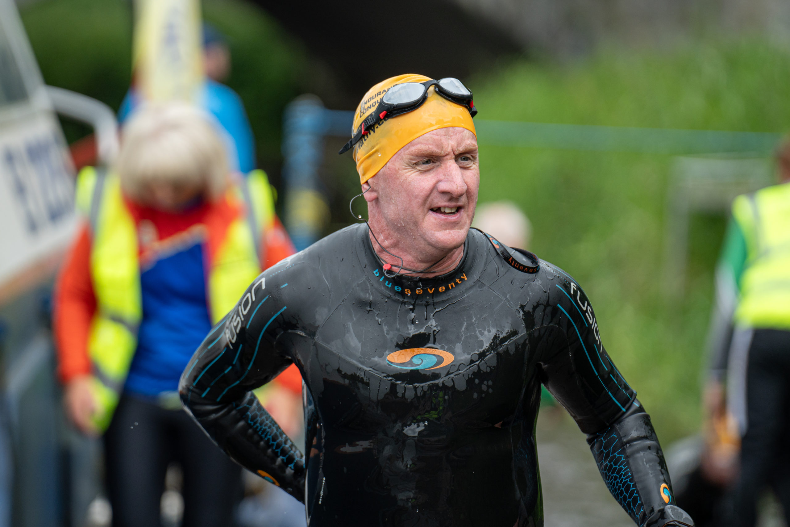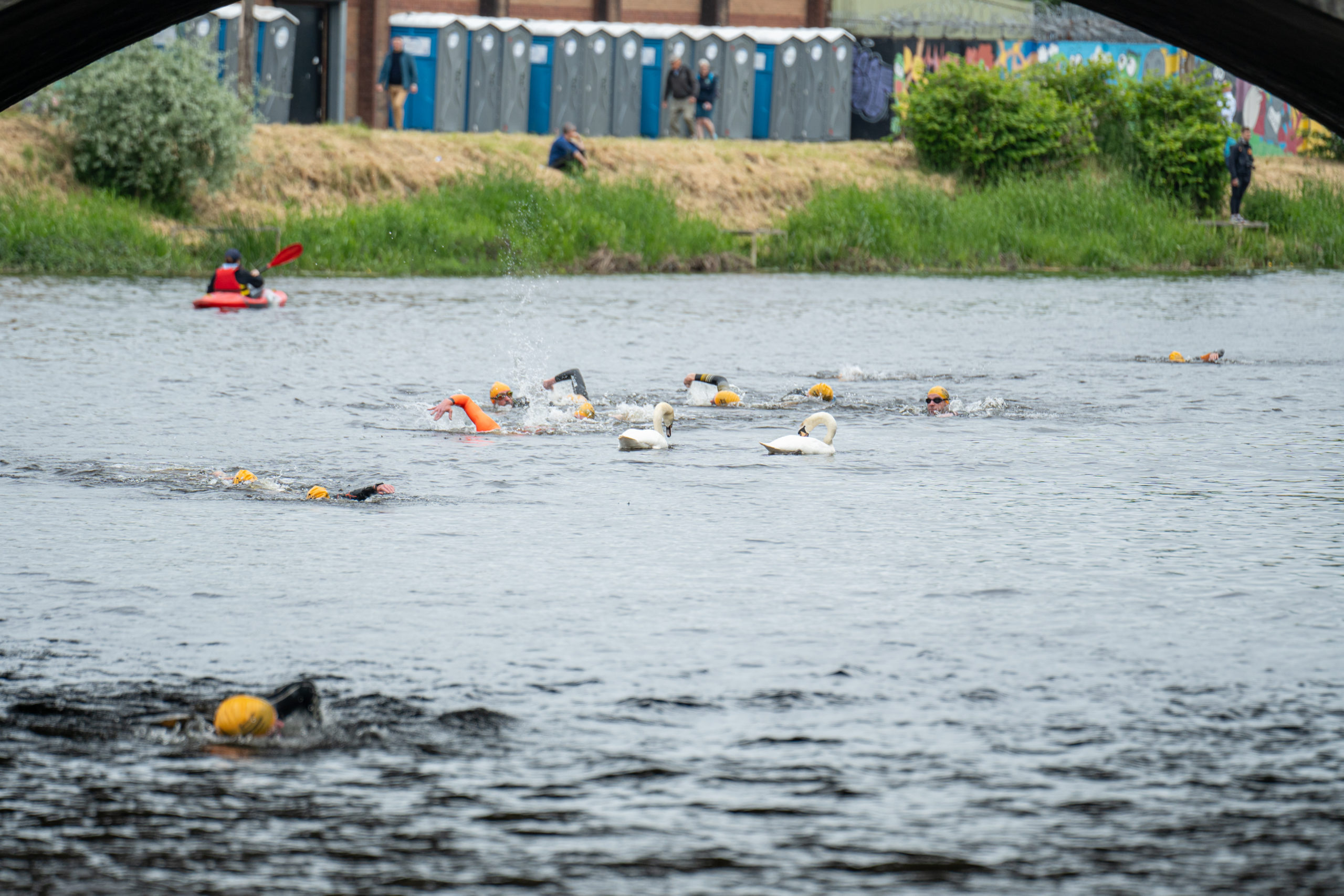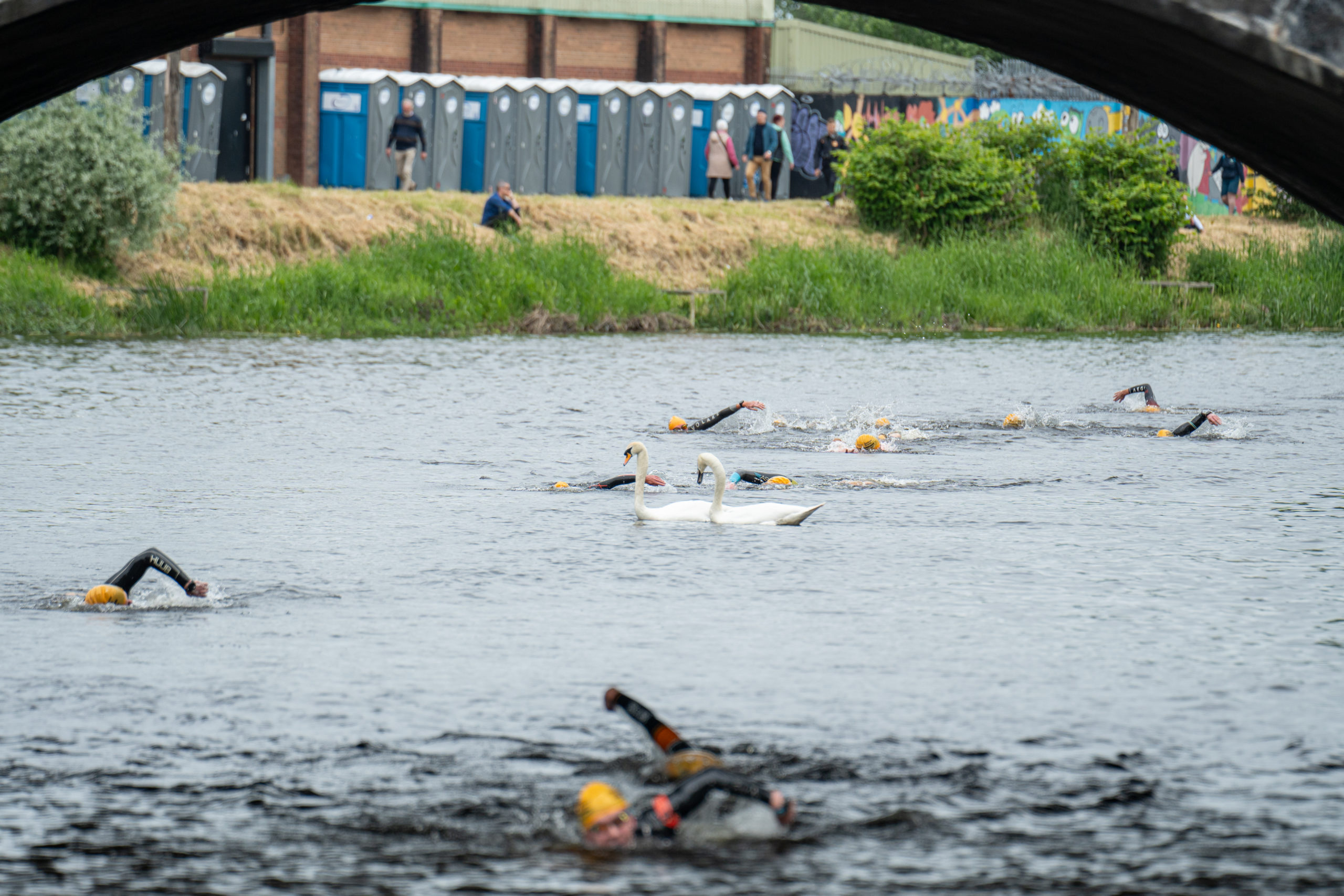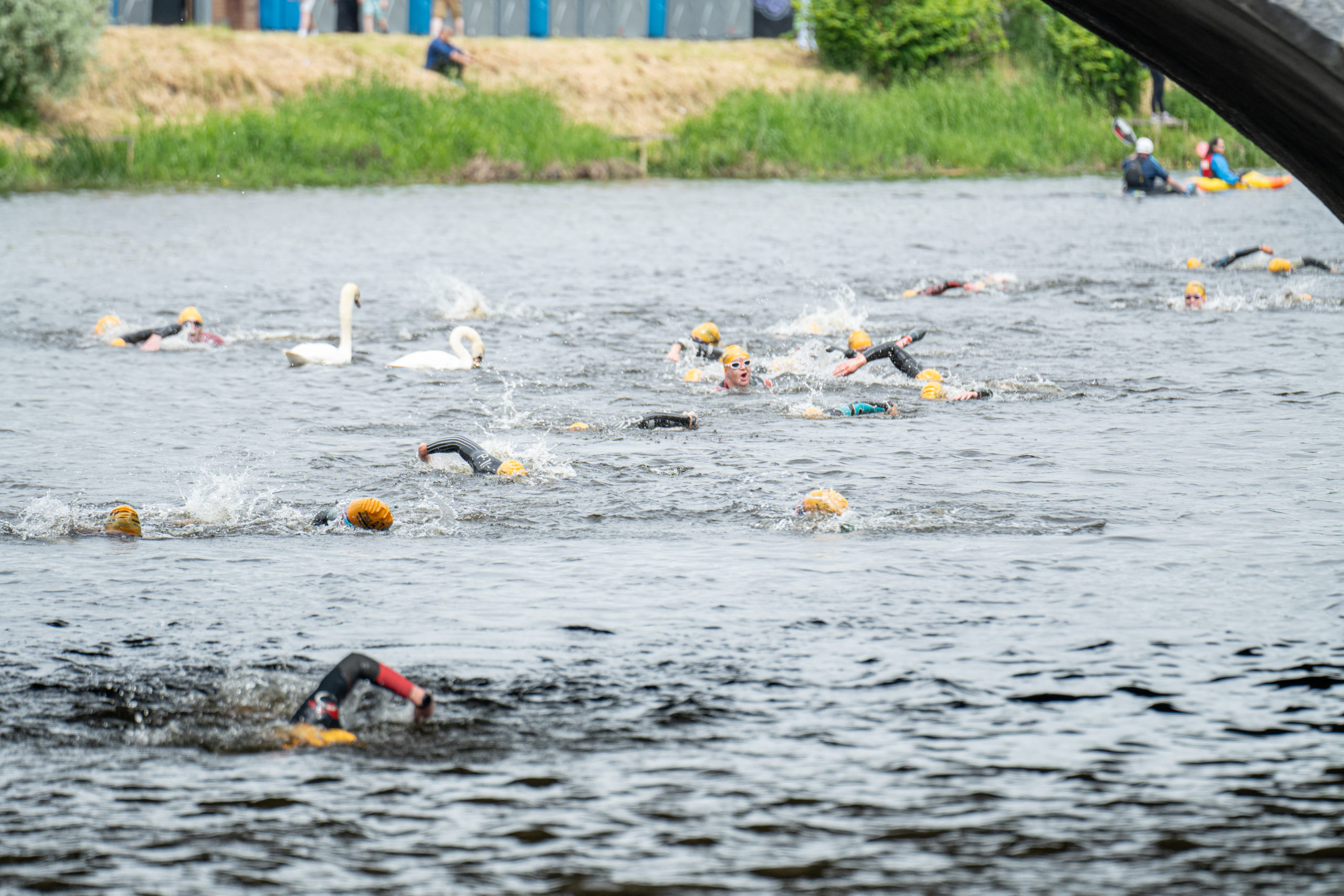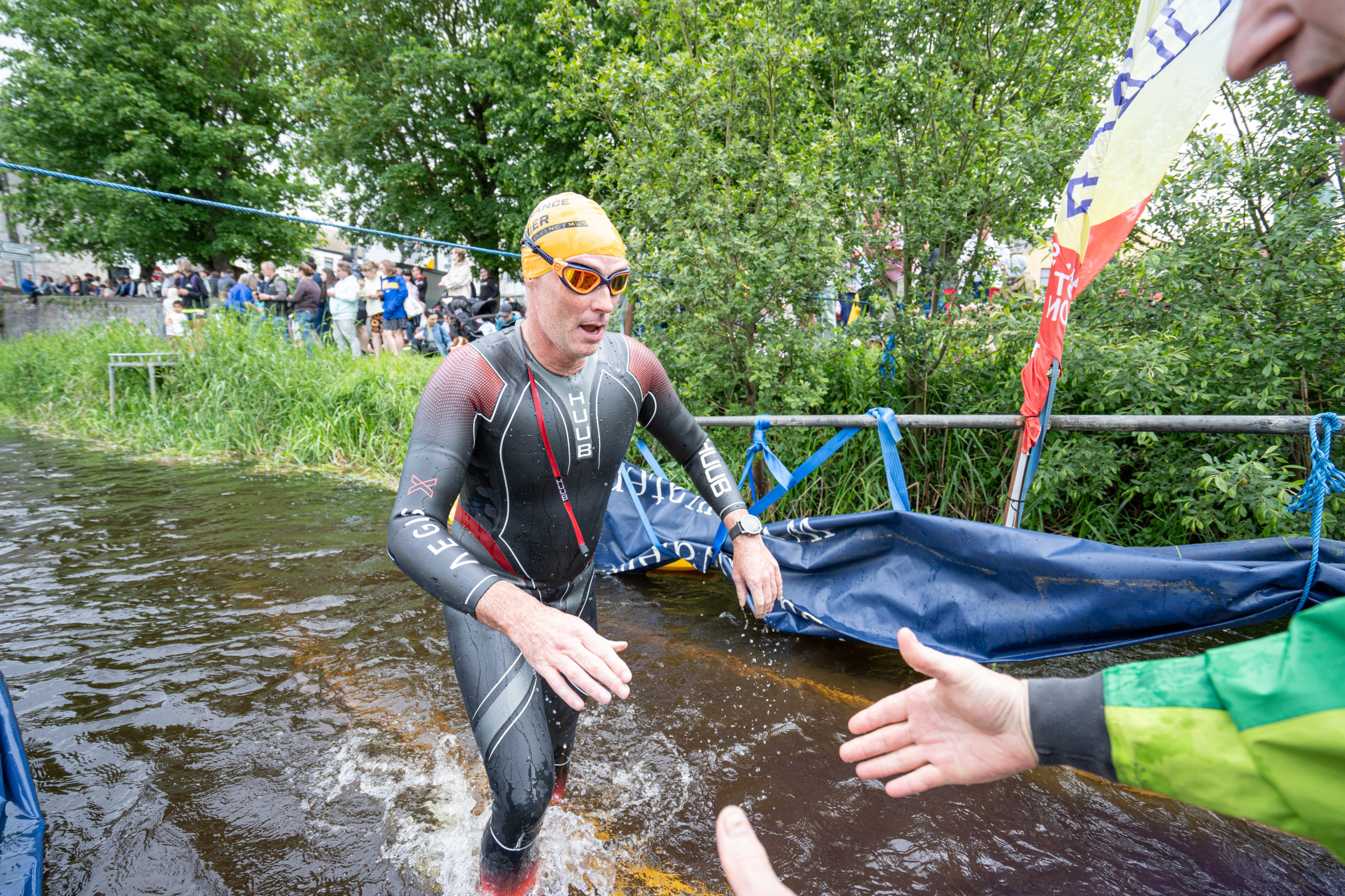 The race kicked off with a rolling start as the athletes entered the River Barrow in Athy. The initial 600 m was upstream against the current before the athletes took a single u-turn to swim the final 900 m downstream. In the Men’s race, Cory Fines completed the fastest swim in a time of 00:20:01. In the Women’s race, Esther Bayon had the leading time of 00:22:26.