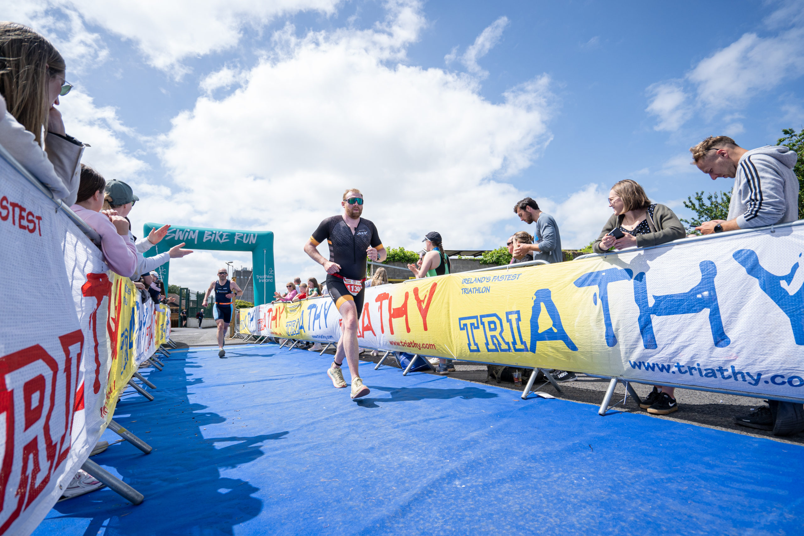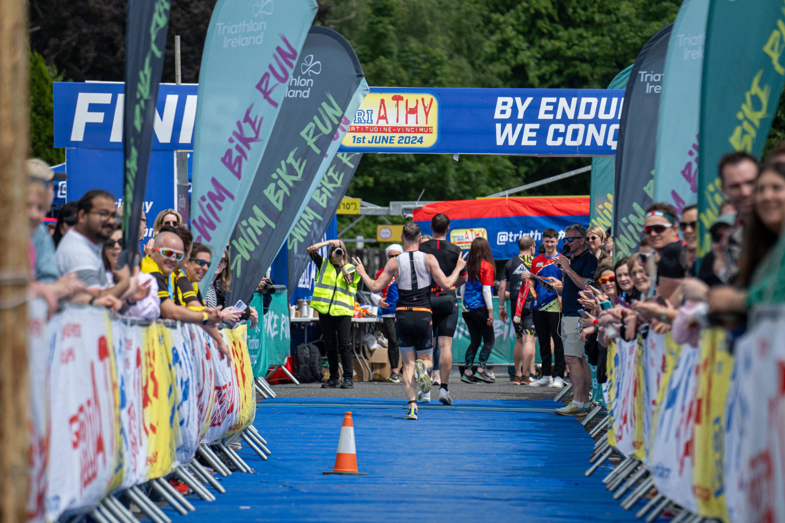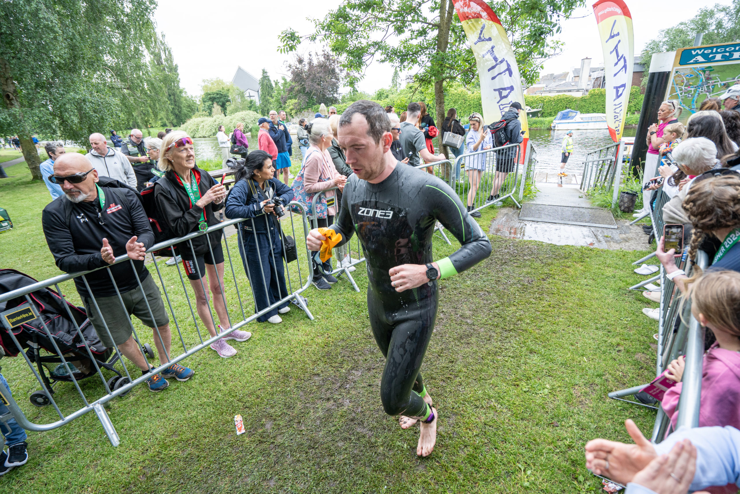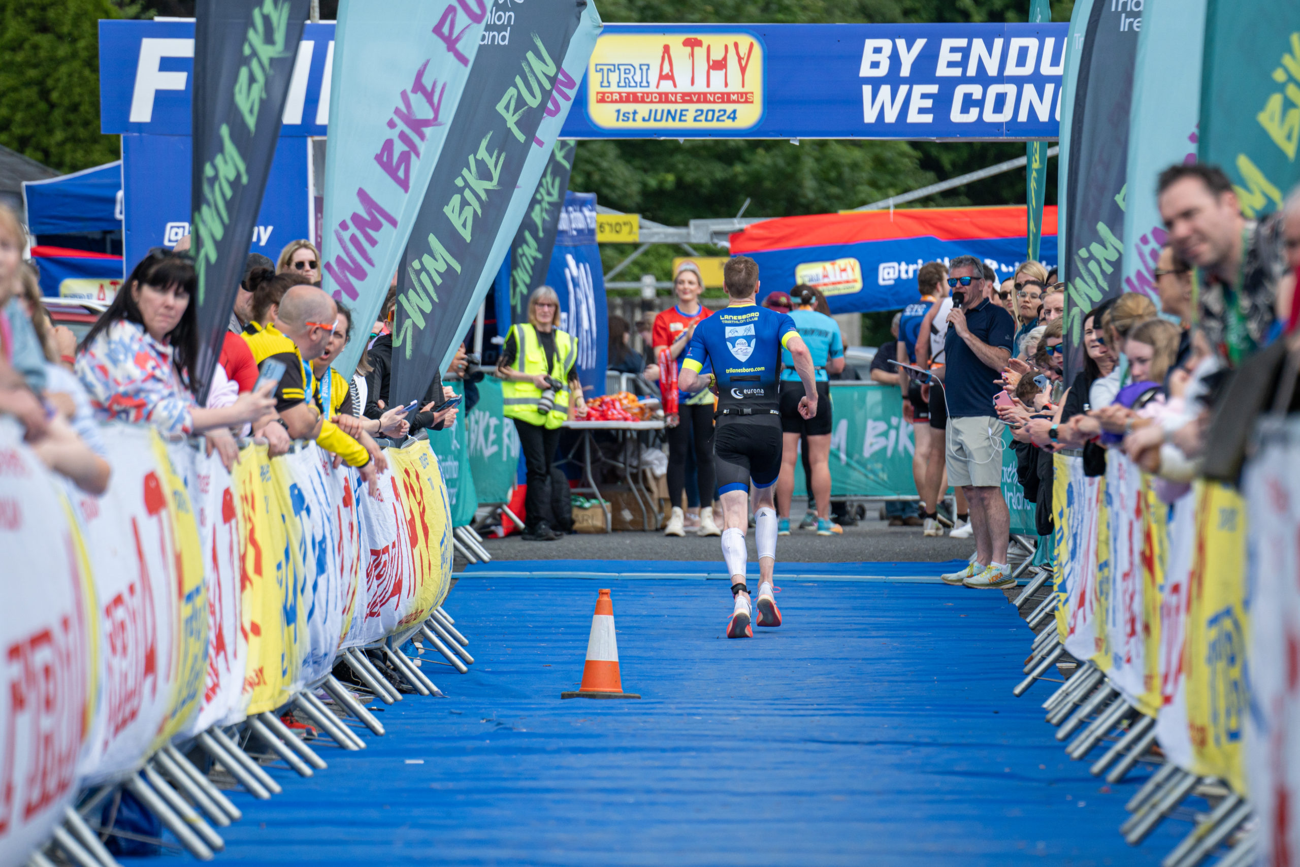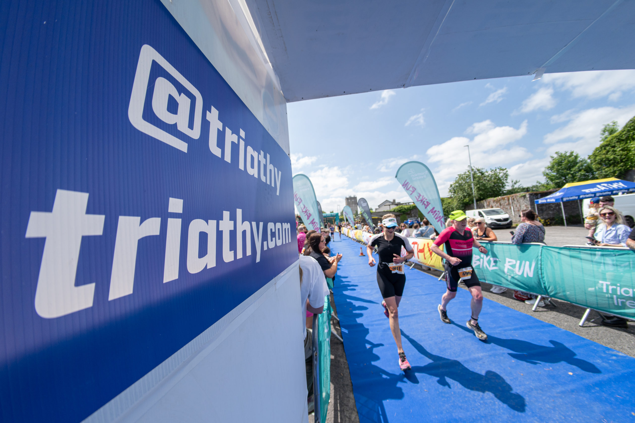 The run followed a new course for the 2024 race. The course now consisted of 2 laps of a circuit to the south of Athy town. On the 2nd lap, athletes crossed the River Barrow over the “Horse Bridge” to finish by Athy Community Library. In the Men’s race, Conal Cremen of Belpark Triathlon Club completed the fastest run, in a time of 00:34:22. However, Carroll maintained his lead and was the first man over the line, with an overall time of 02:01:06. In the Women’s race, Woods maintained her lead and completed the run in 00:37:37, with an overall race time of 02:08:35.