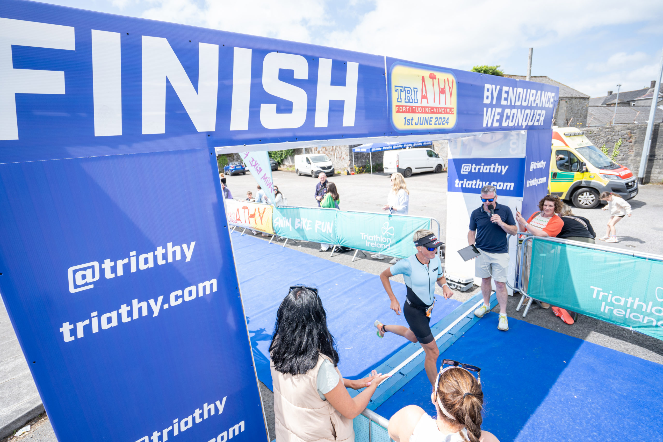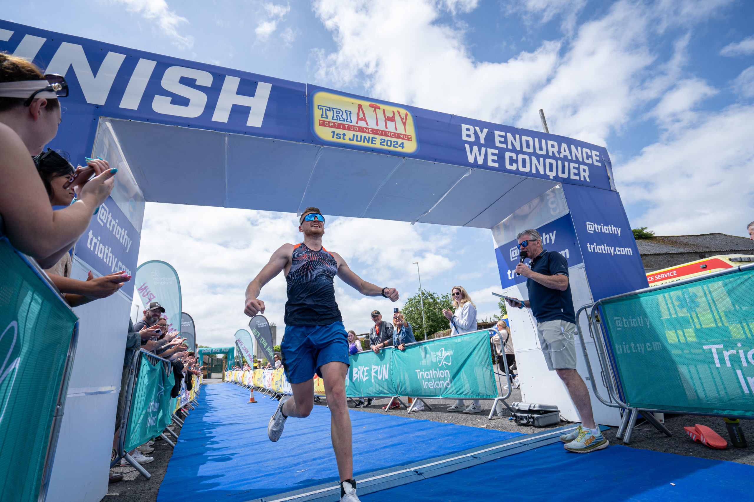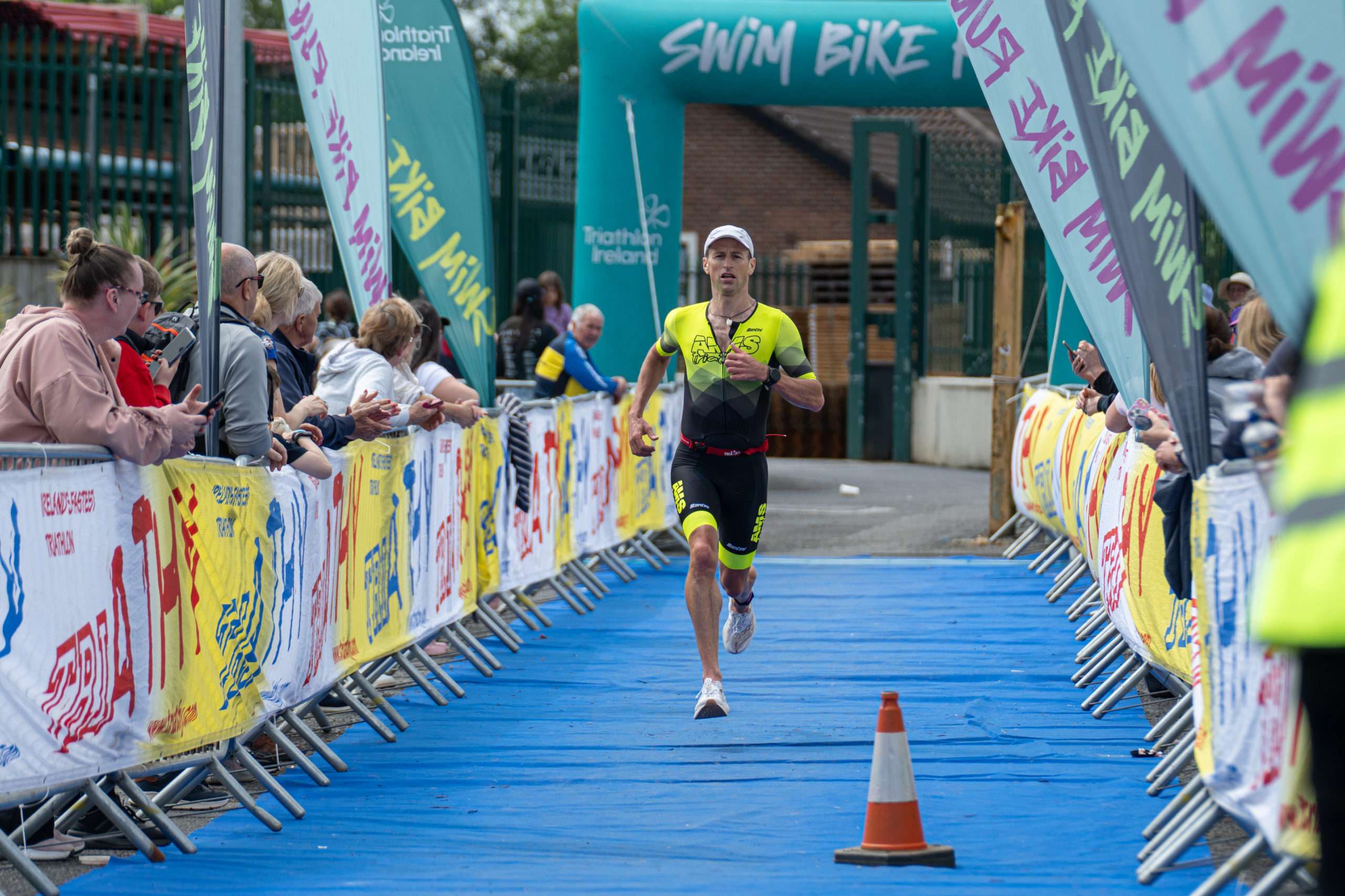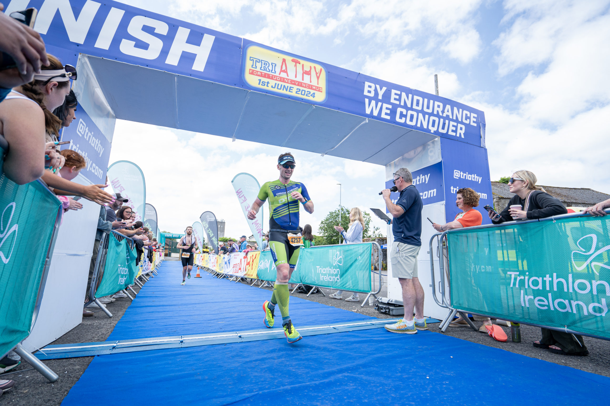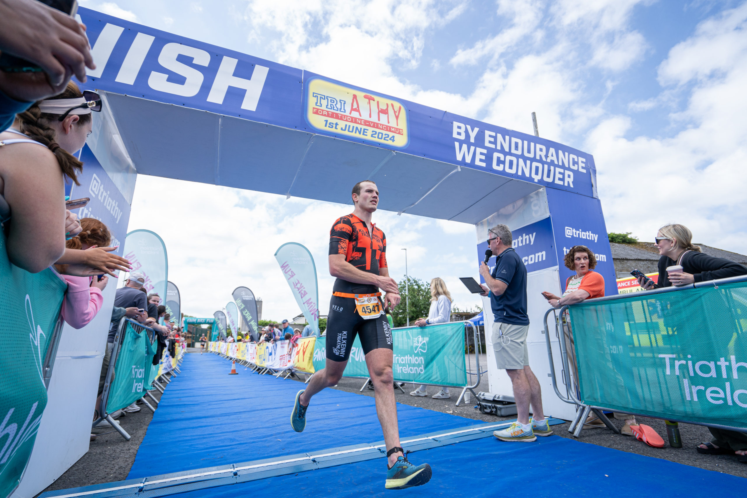 The run followed a new course for the 2024 race. The course now consisted of 2 laps of a circuit to the south of Athy town. On the 2nd lap, athletes crossed the River Barrow over the “Horse Bridge” to finish by Athy Community Library. In the Men’s race, Conal Cremen of Belpark Triathlon Club completed the fastest run, in a time of 00:34:22. However, Carroll maintained his lead and was the first man over the line, with an overall time of 02:01:06. In the Women’s race, Woods maintained her lead and completed the run in 00:37:37, with an overall race time of 02:08:35.