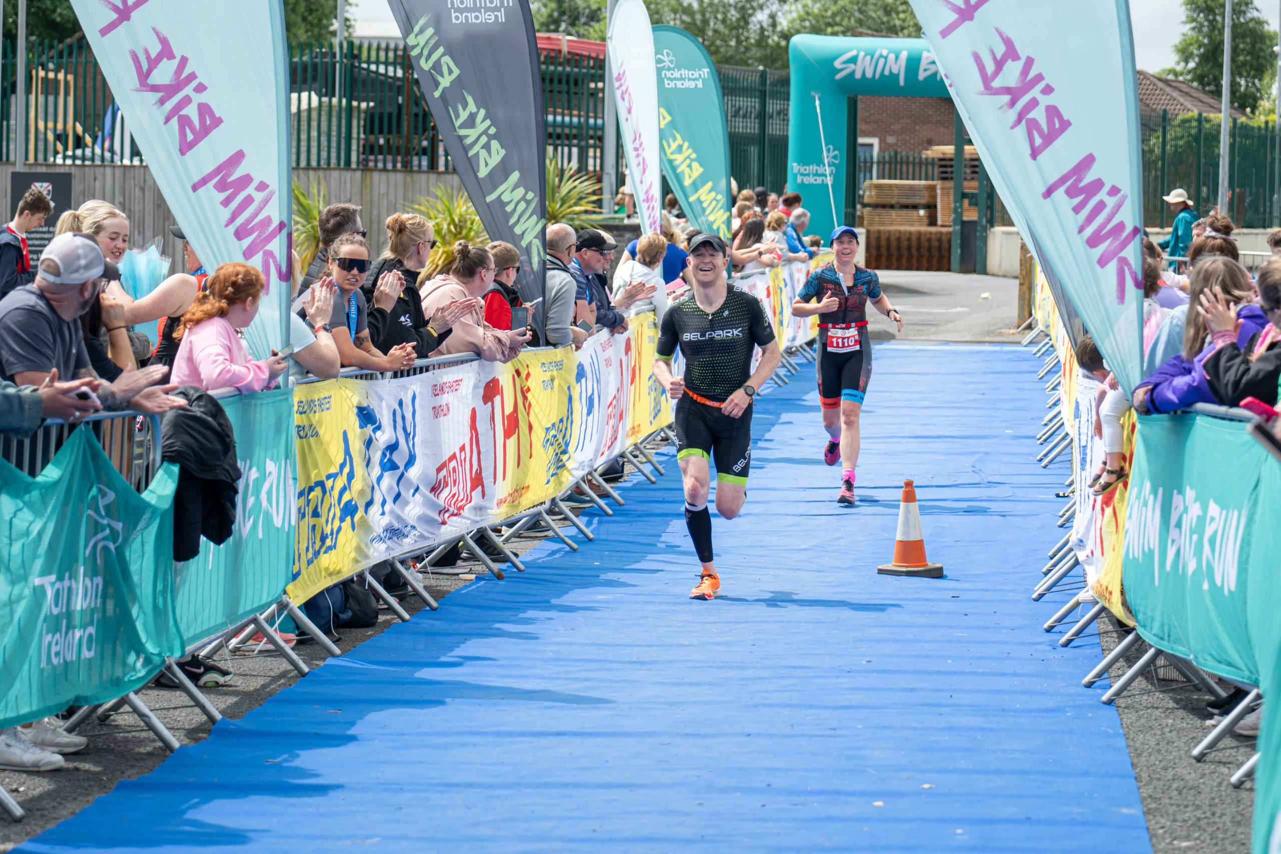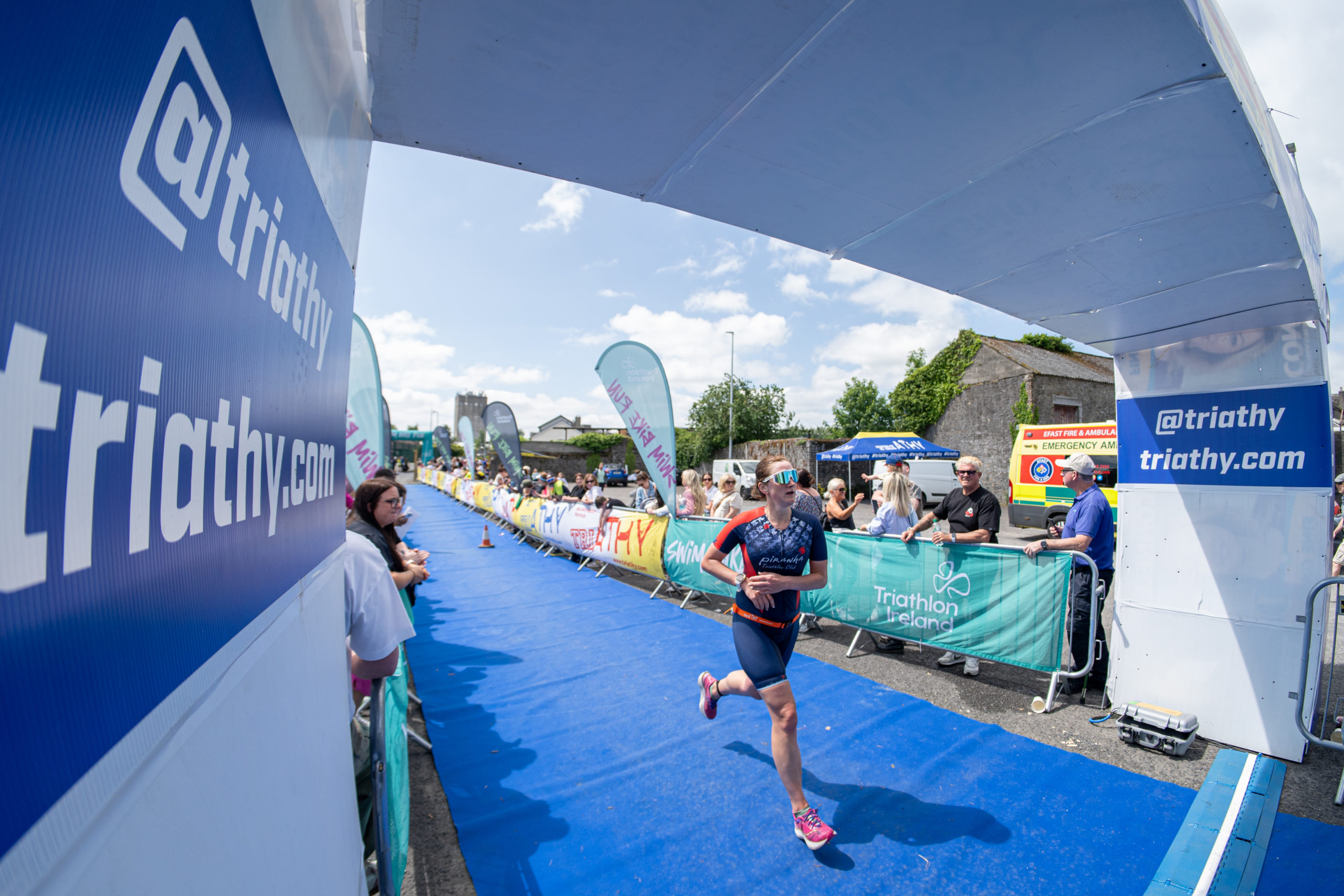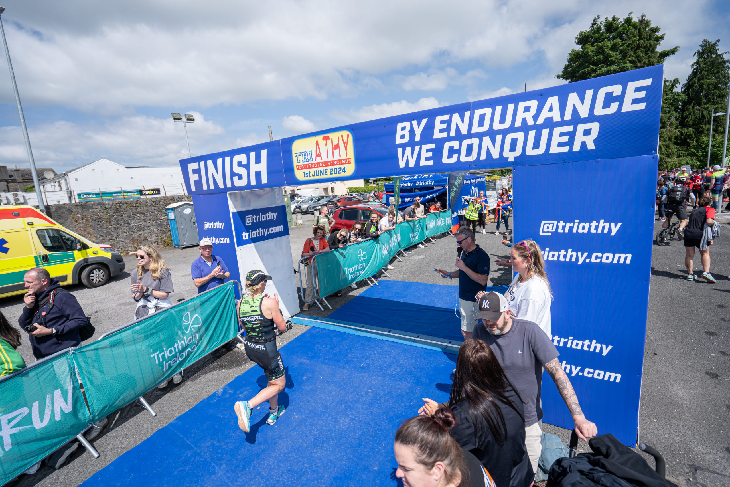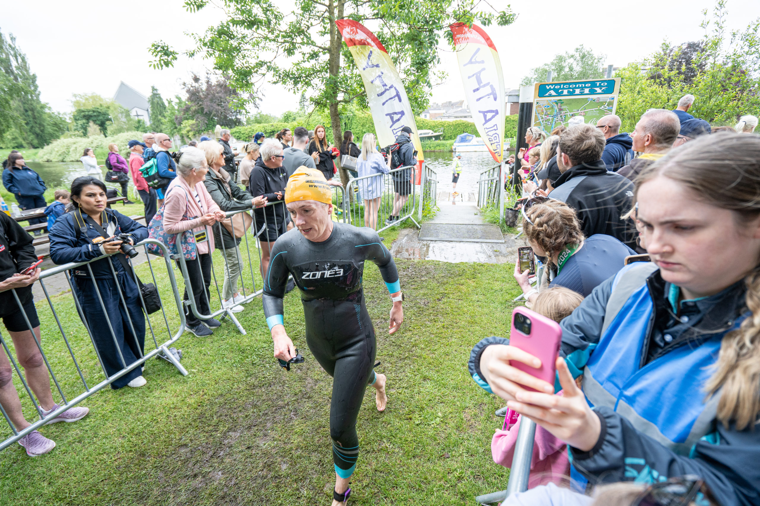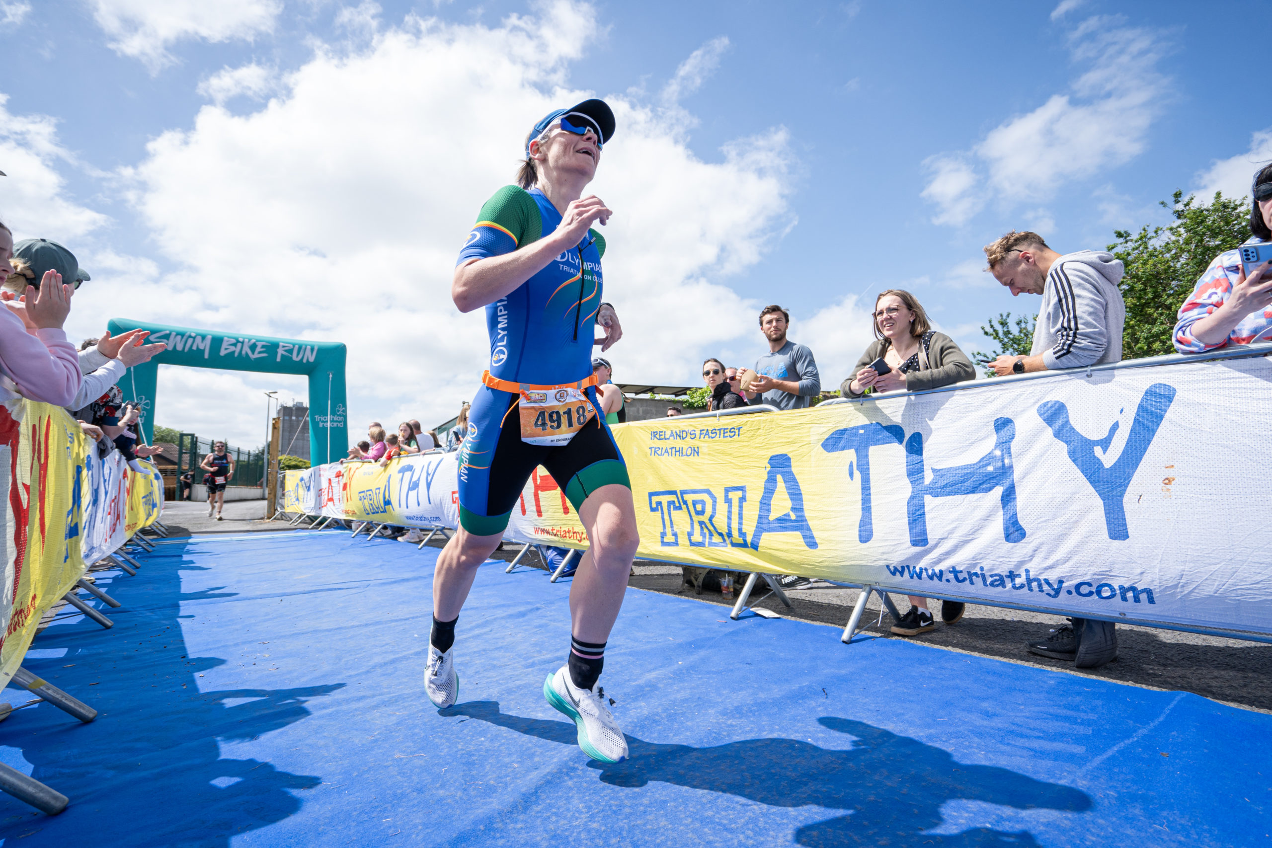 The run followed a new course for the 2024 race. The course now consisted of 2 laps of a circuit to the south of Athy town. On the 2nd lap, athletes crossed the River Barrow over the “Horse Bridge” to finish by Athy Community Library. In the Men’s race, Conal Cremen of Belpark Triathlon Club completed the fastest run, in a time of 00:34:22. However, Carroll maintained his lead and was the first man over the line, with an overall time of 02:01:06. In the Women’s race, Woods maintained her lead and completed the run in 00:37:37, with an overall race time of 02:08:35.
