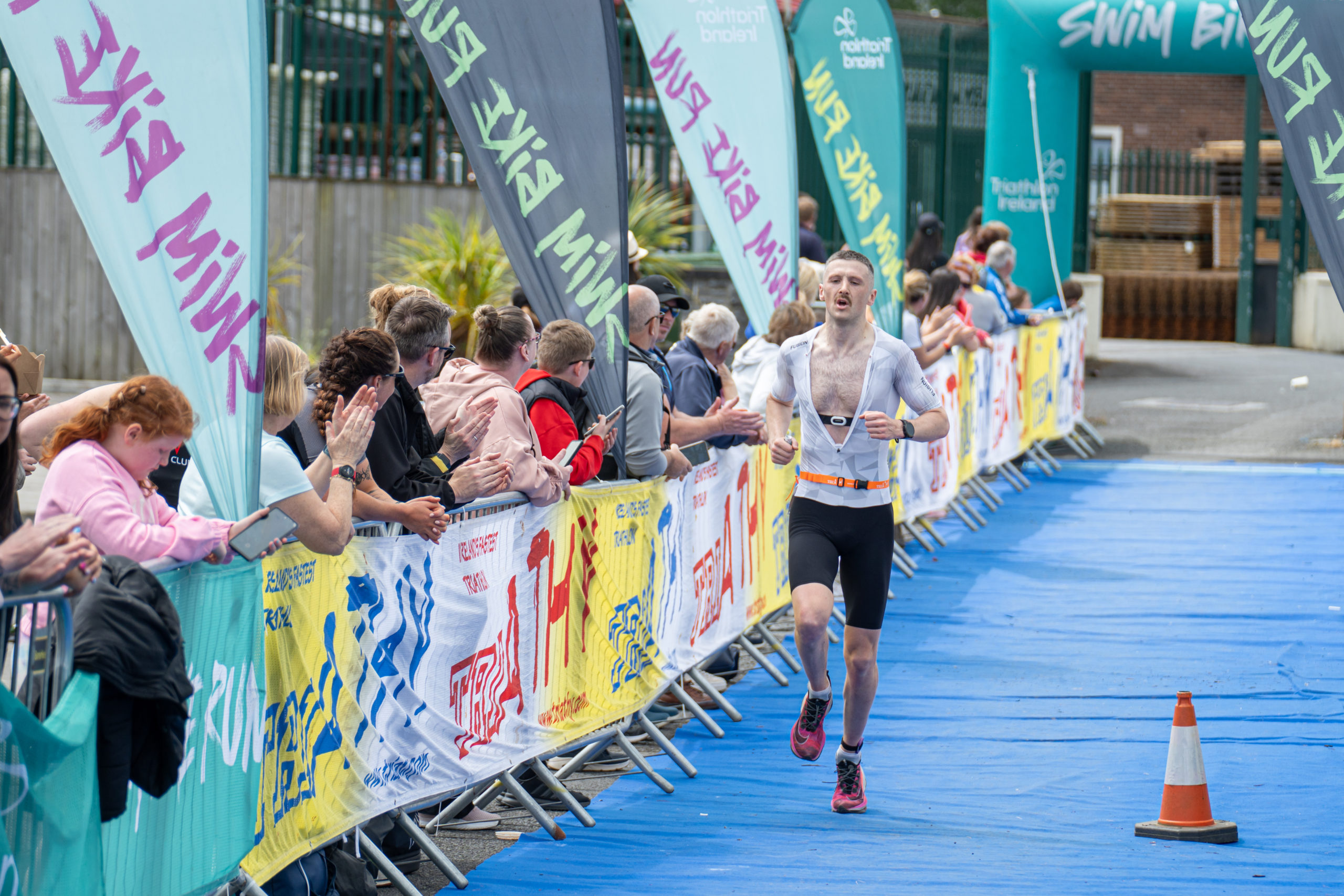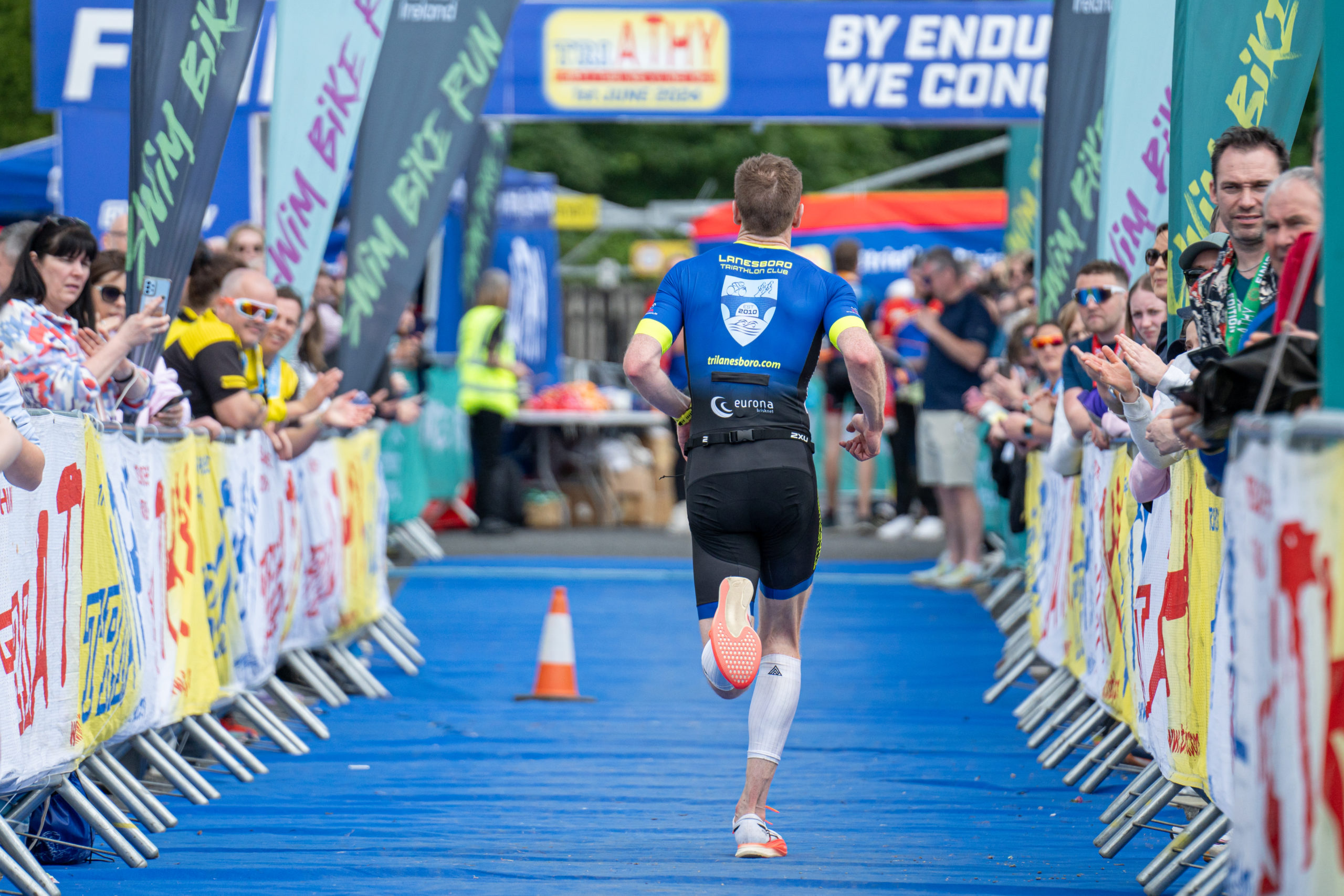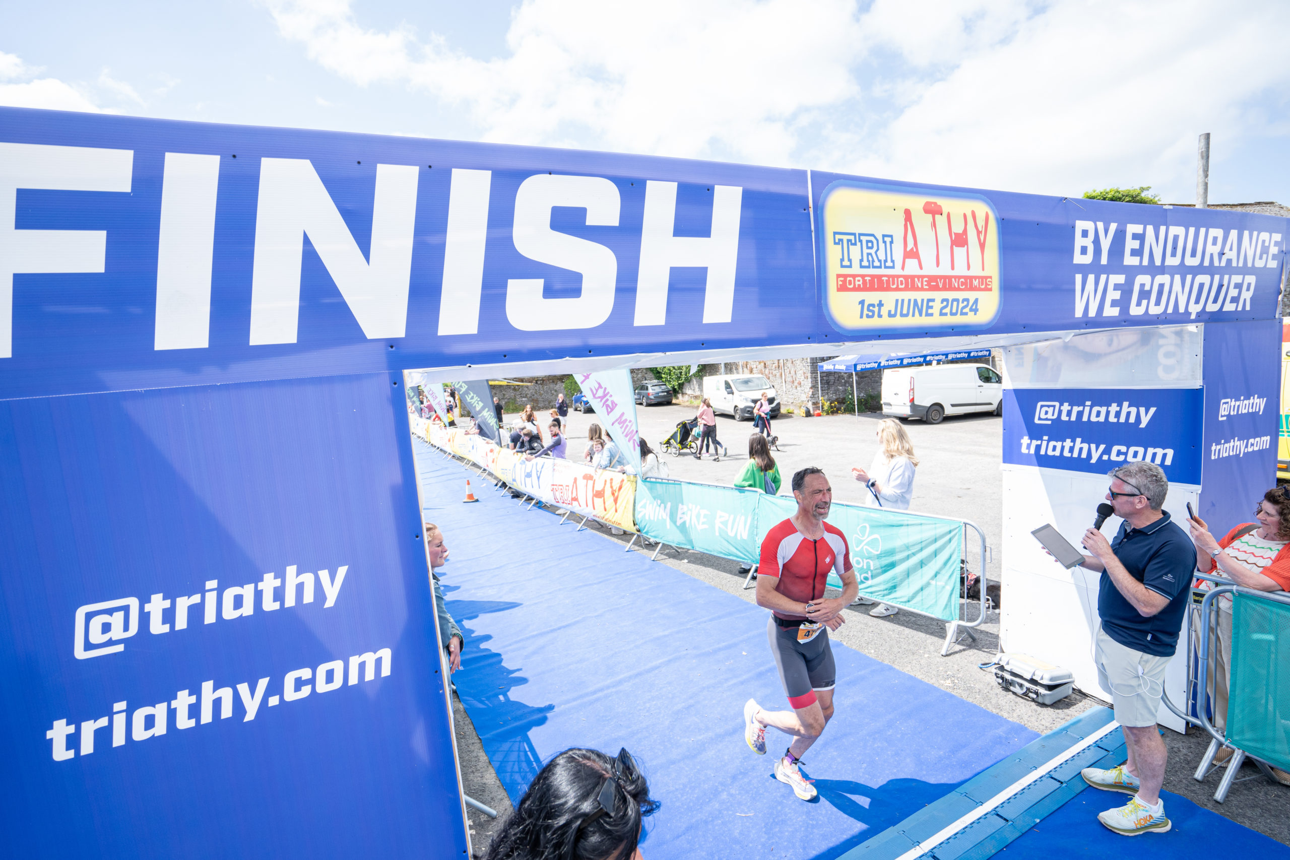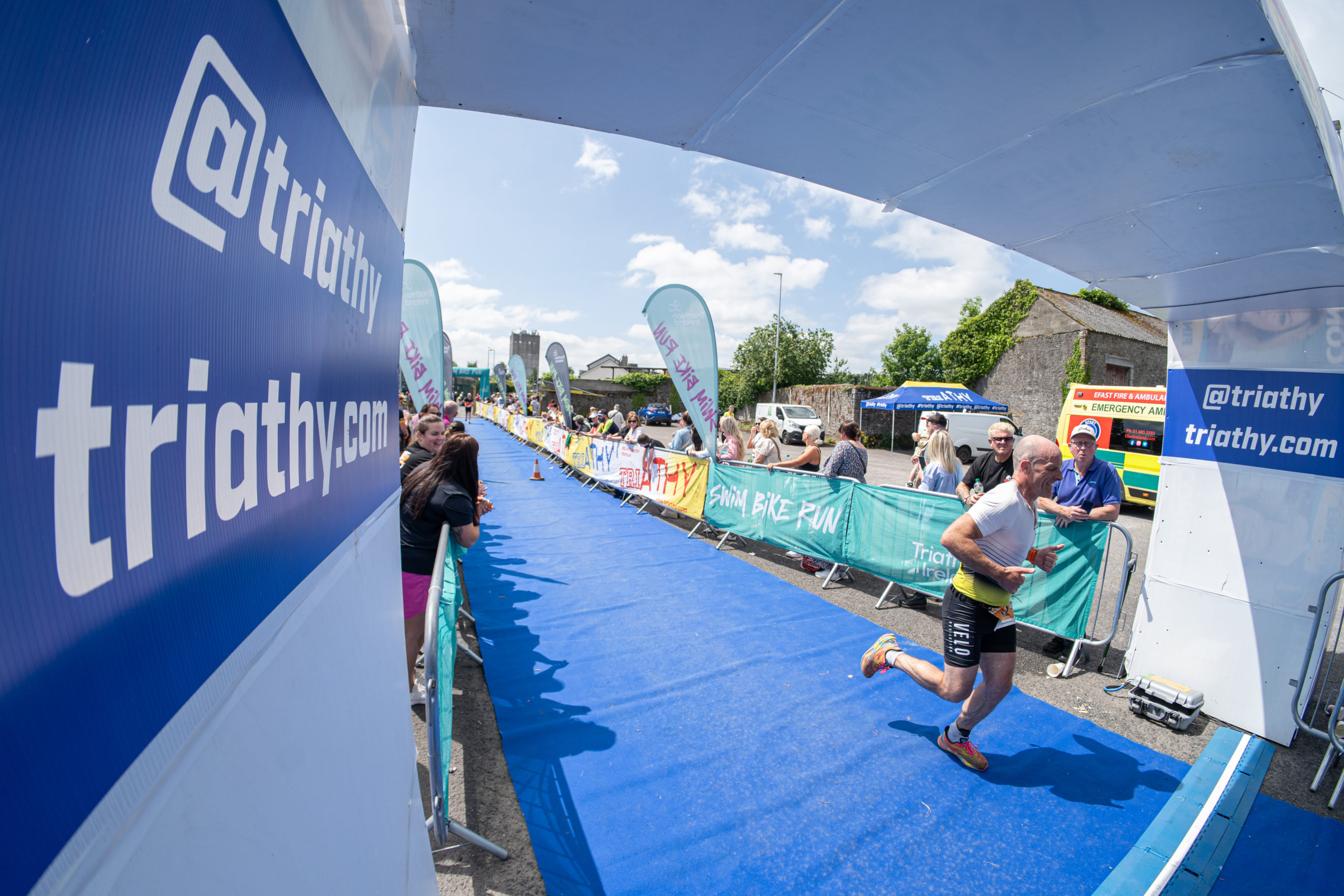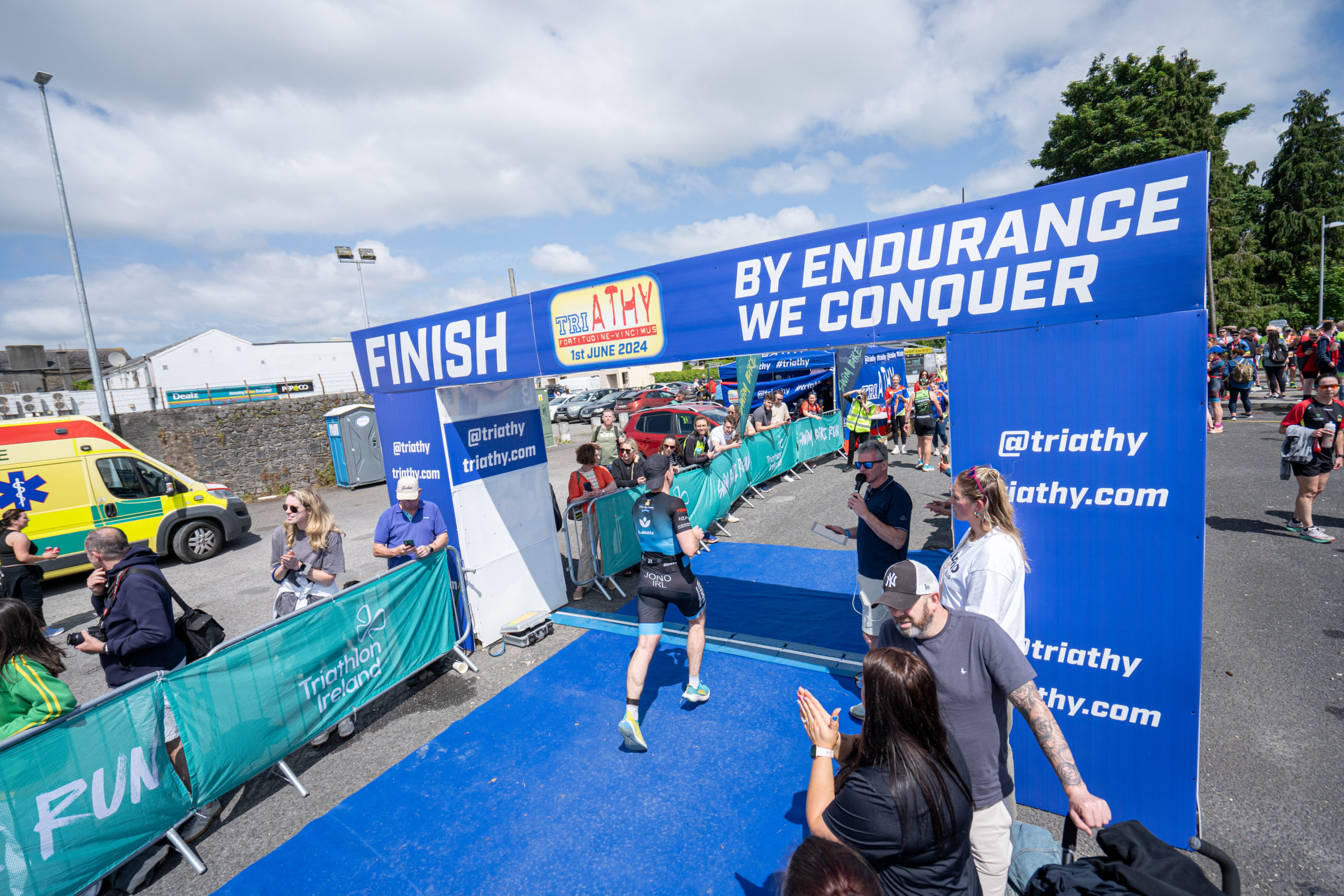The run followed a new course for the 2024 race. The course now consisted of 2 laps of a circuit to the south of Athy town. On the 2nd lap, athletes crossed the River Barrow over the “Horse Bridge” to finish by Athy Community Library. In the Men’s race, Conal Cremen of Belpark Triathlon Club completed the fastest run, in a time of 00:34:22. However, Carroll maintained his lead and was the first man over the line, with an overall time of 02:01:06. In the Women’s race, Woods maintained her lead and completed the run in 00:37:37, with an overall race time of 02:08:35.