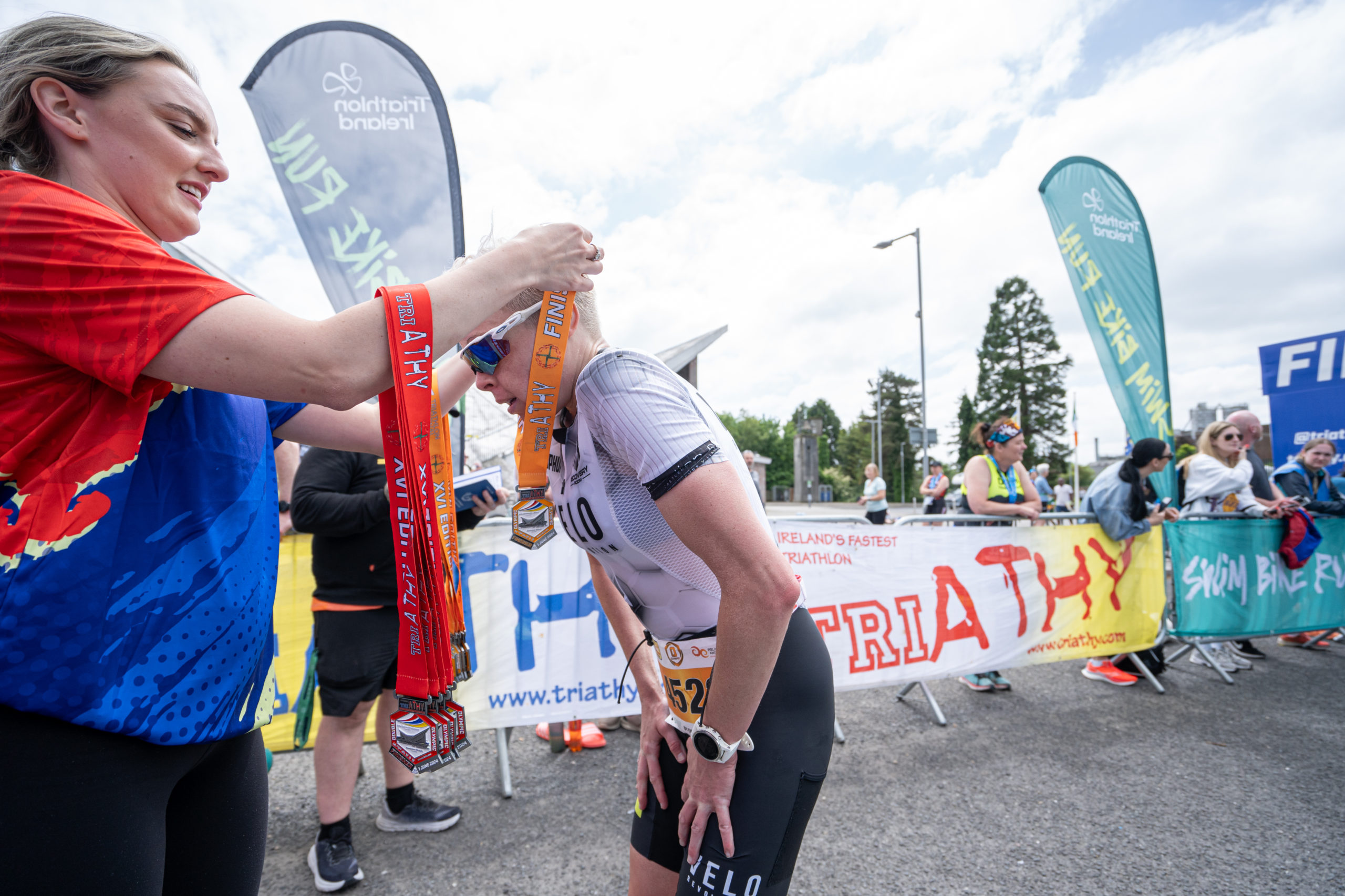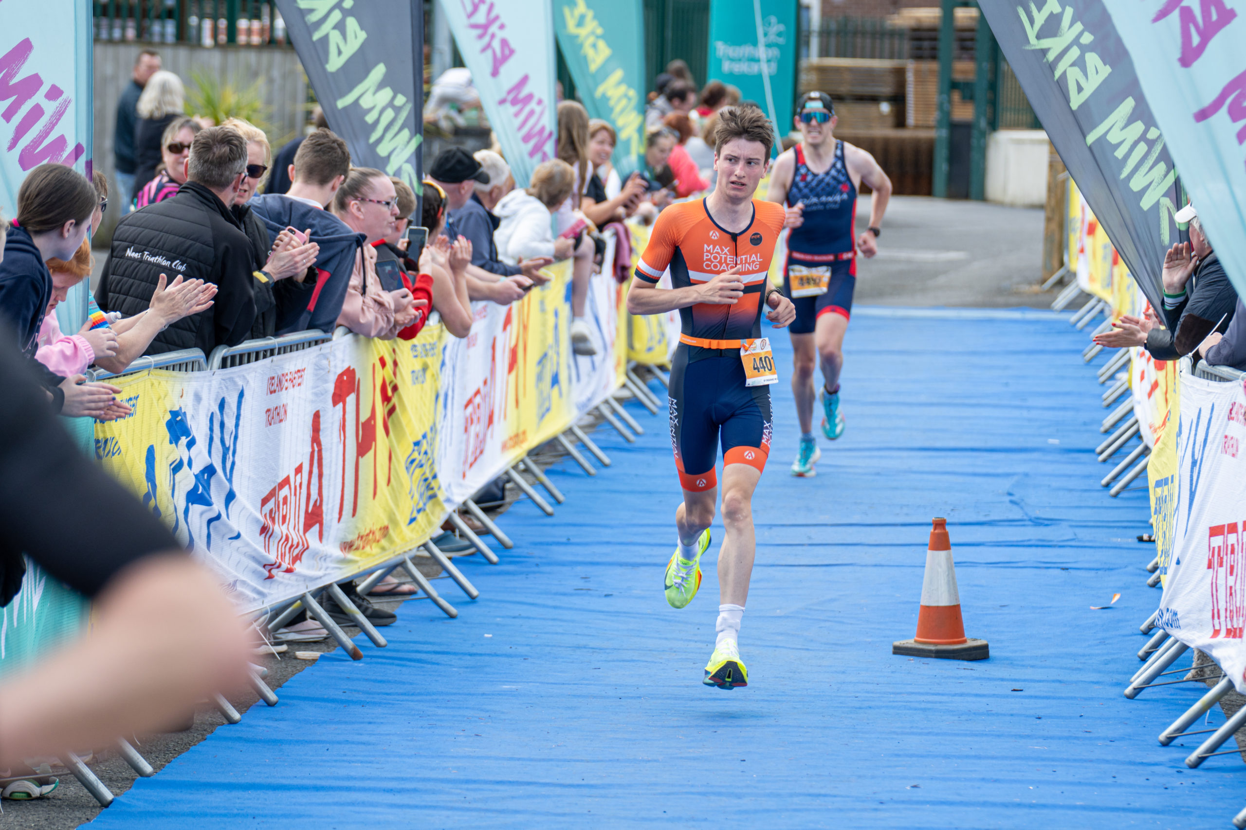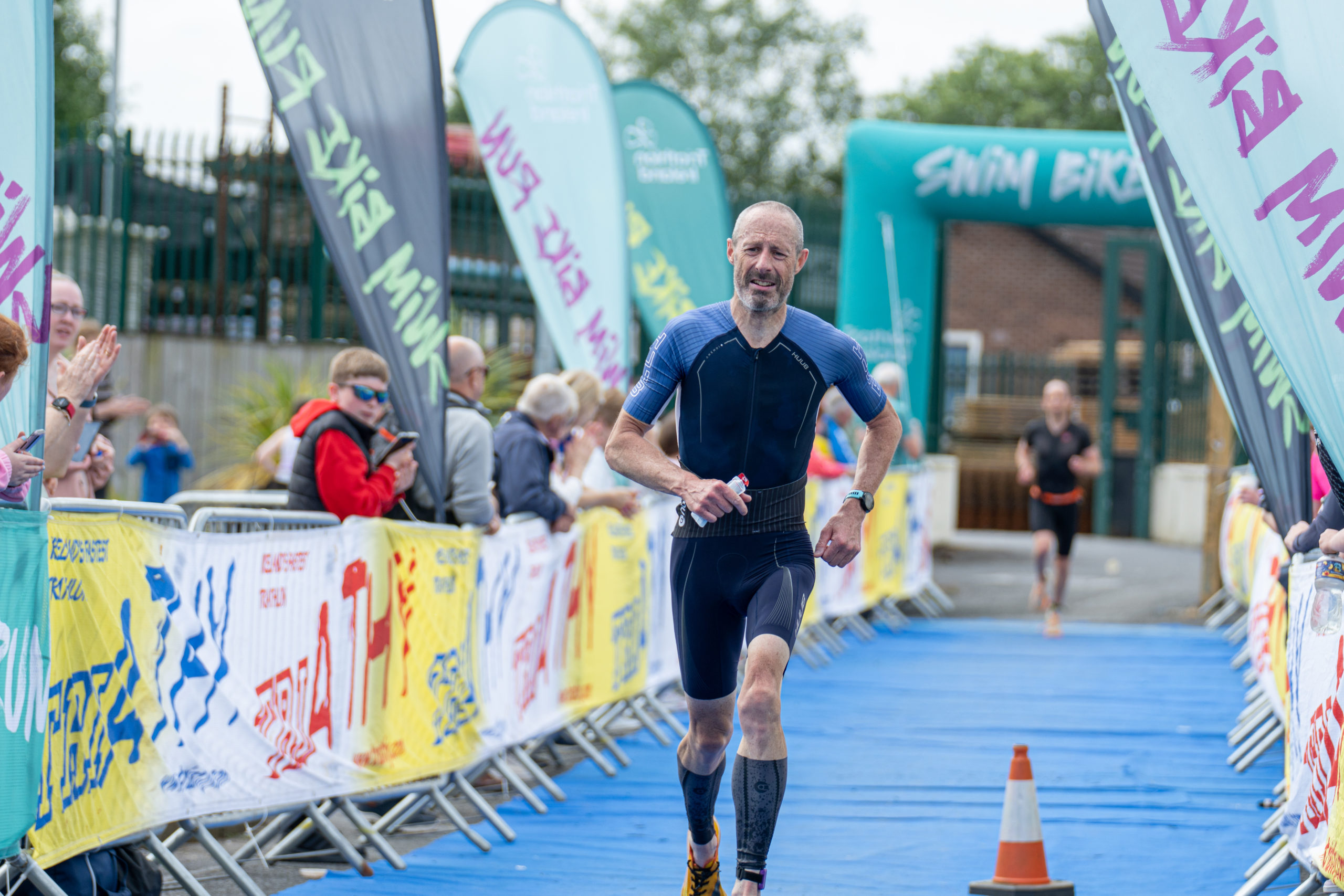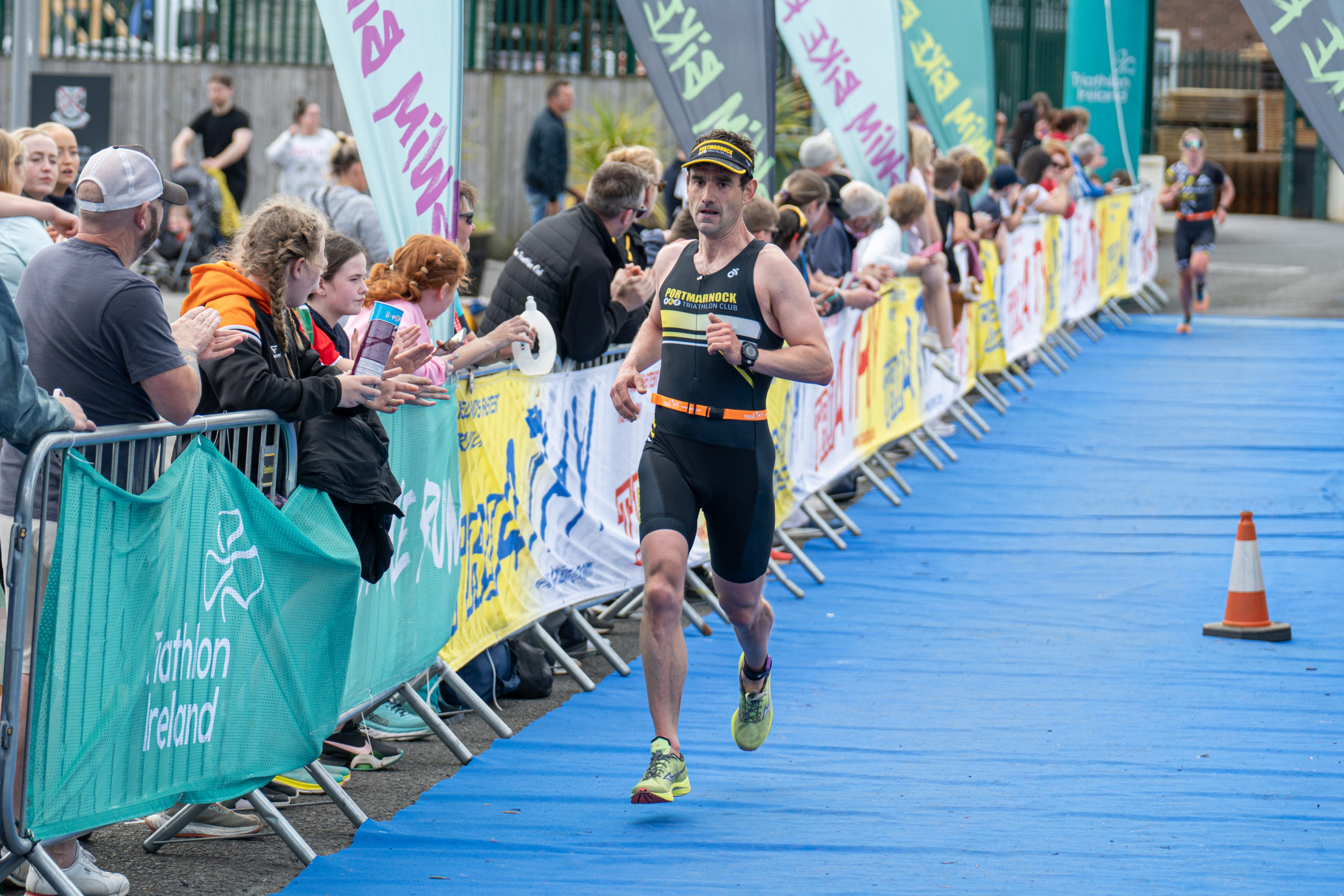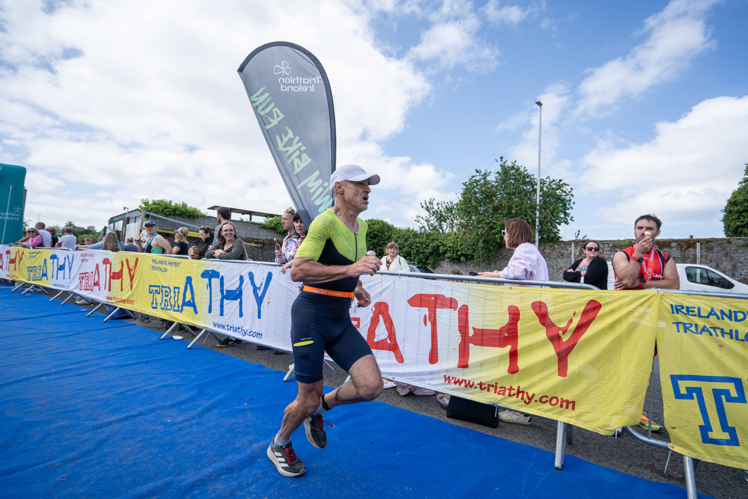 The run followed a new course for the 2024 race. The course now consisted of 2 laps of a circuit to the south of Athy town. On the 2nd lap, athletes crossed the River Barrow over the “Horse Bridge” to finish by Athy Community Library. In the Men’s race, Conal Cremen of Belpark Triathlon Club completed the fastest run, in a time of 00:34:22. However, Carroll maintained his lead and was the first man over the line, with an overall time of 02:01:06. In the Women’s race, Woods maintained her lead and completed the run in 00:37:37, with an overall race time of 02:08:35.
