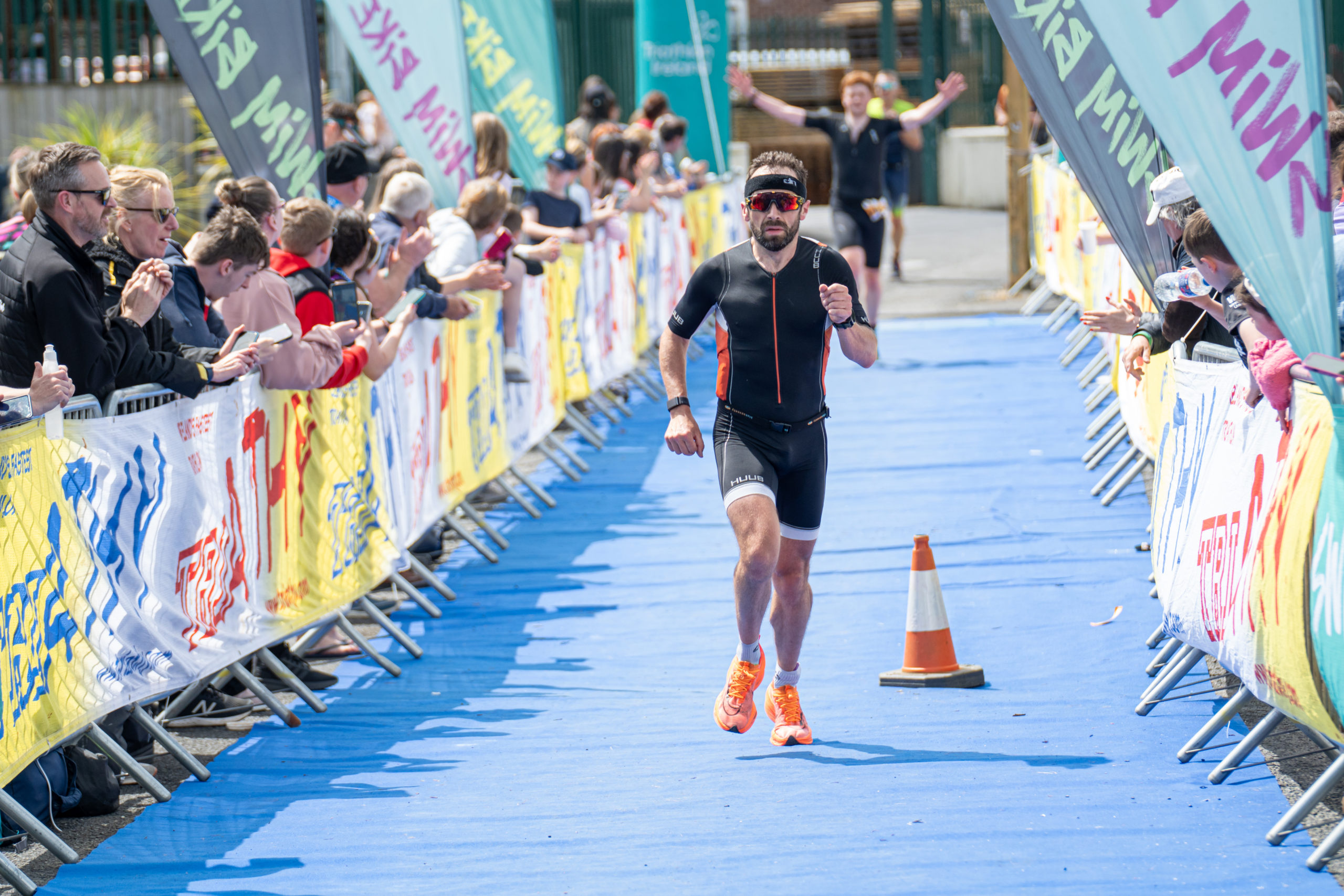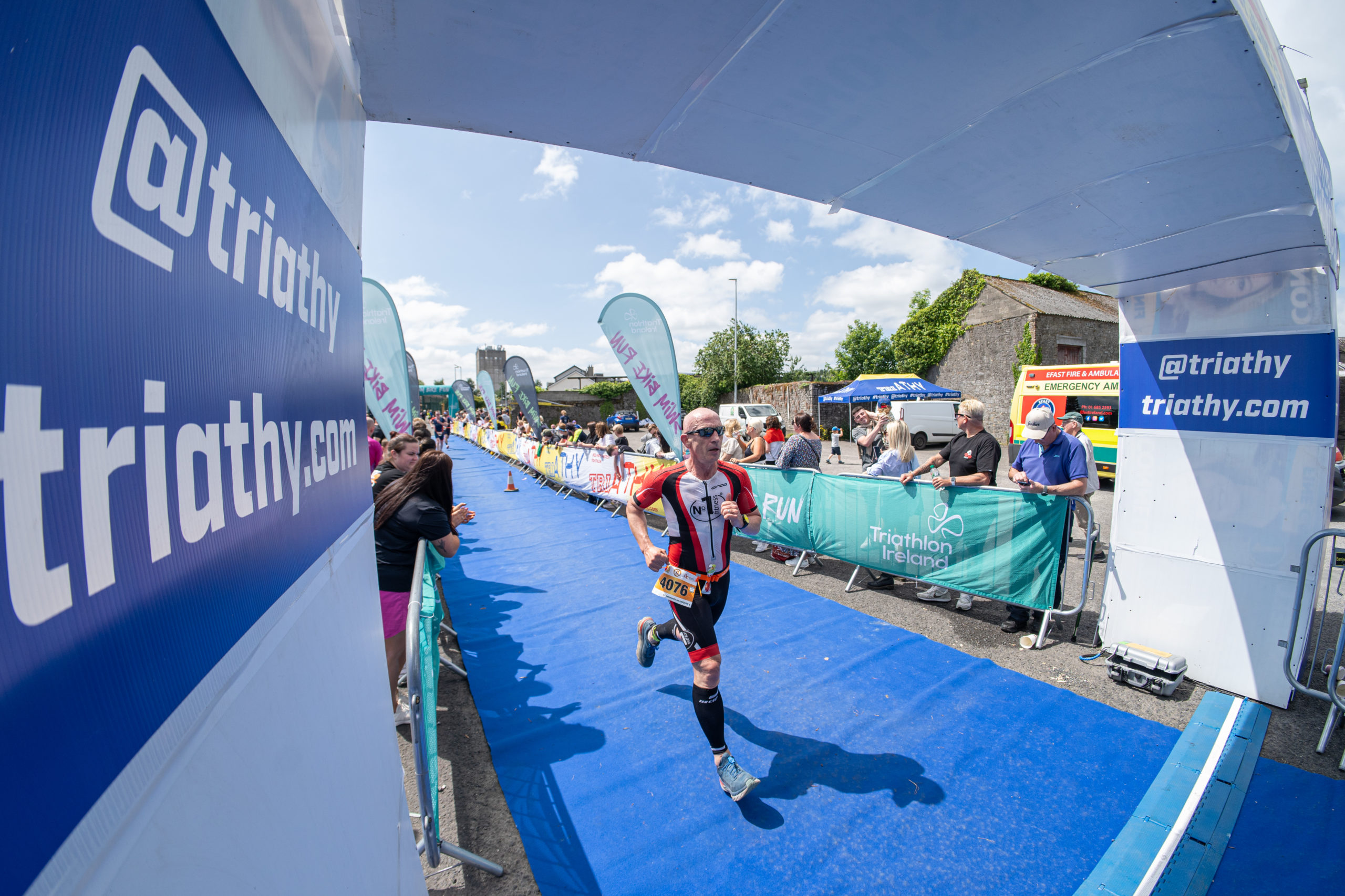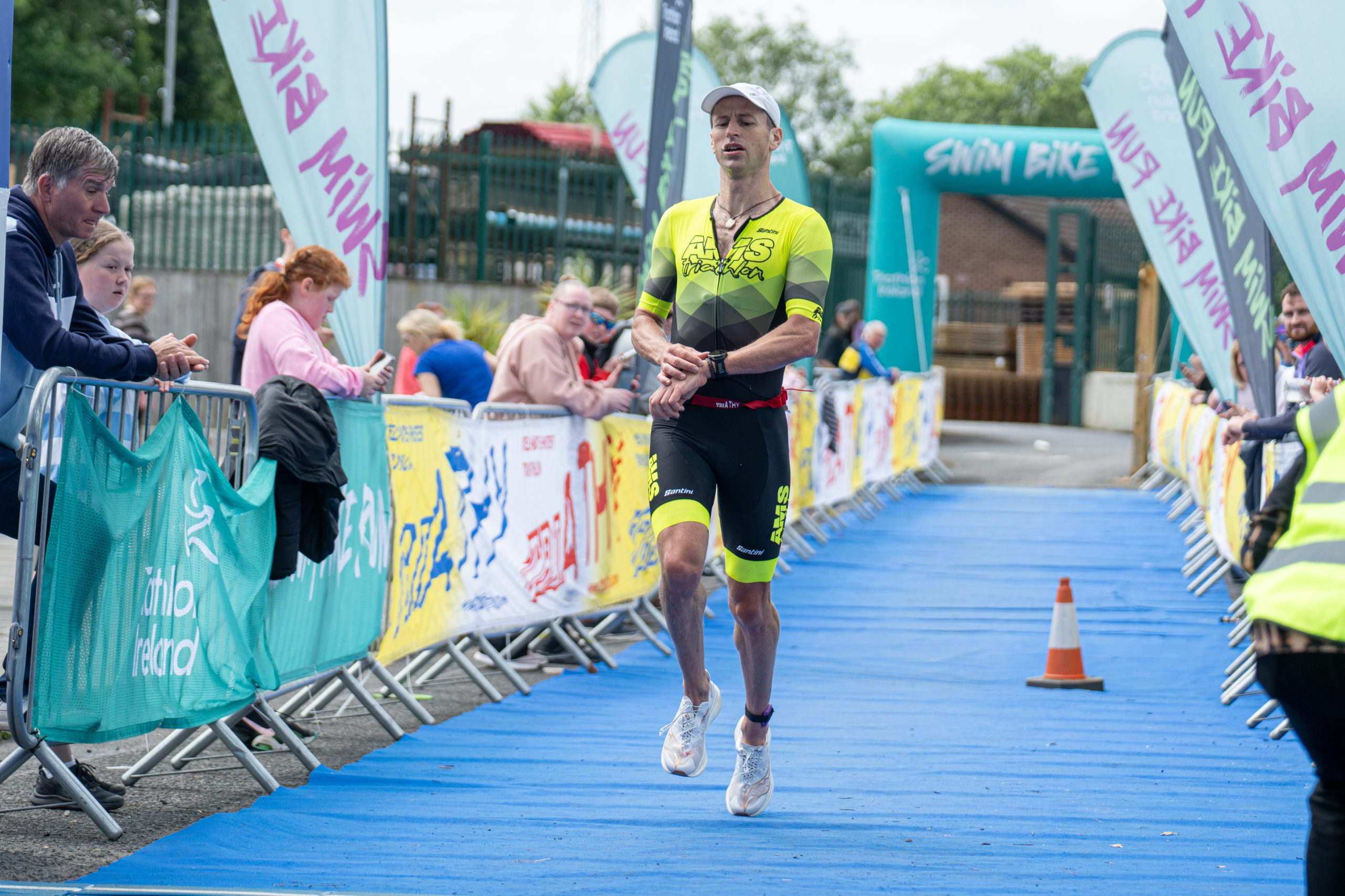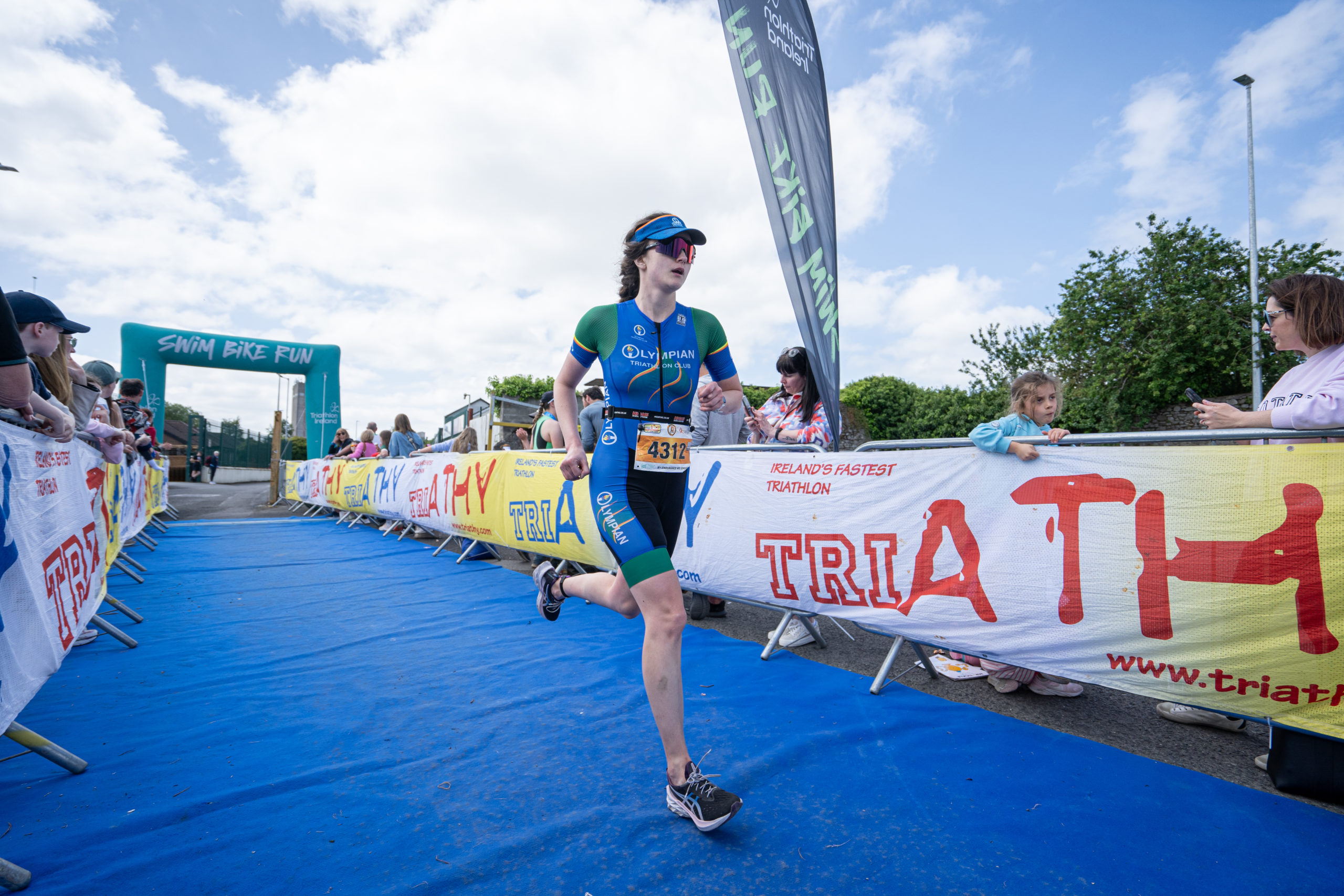 The run followed a new course for the 2024 race. The course now consisted of 2 laps of a circuit to the south of Athy town. On the 2nd lap, athletes crossed the River Barrow over the “Horse Bridge” to finish by Athy Community Library. In the Men’s race, Conal Cremen of Belpark Triathlon Club completed the fastest run, in a time of 00:34:22. However, Carroll maintained his lead and was the first man over the line, with an overall time of 02:01:06. In the Women’s race, Woods maintained her lead and completed the run in 00:37:37, with an overall race time of 02:08:35.