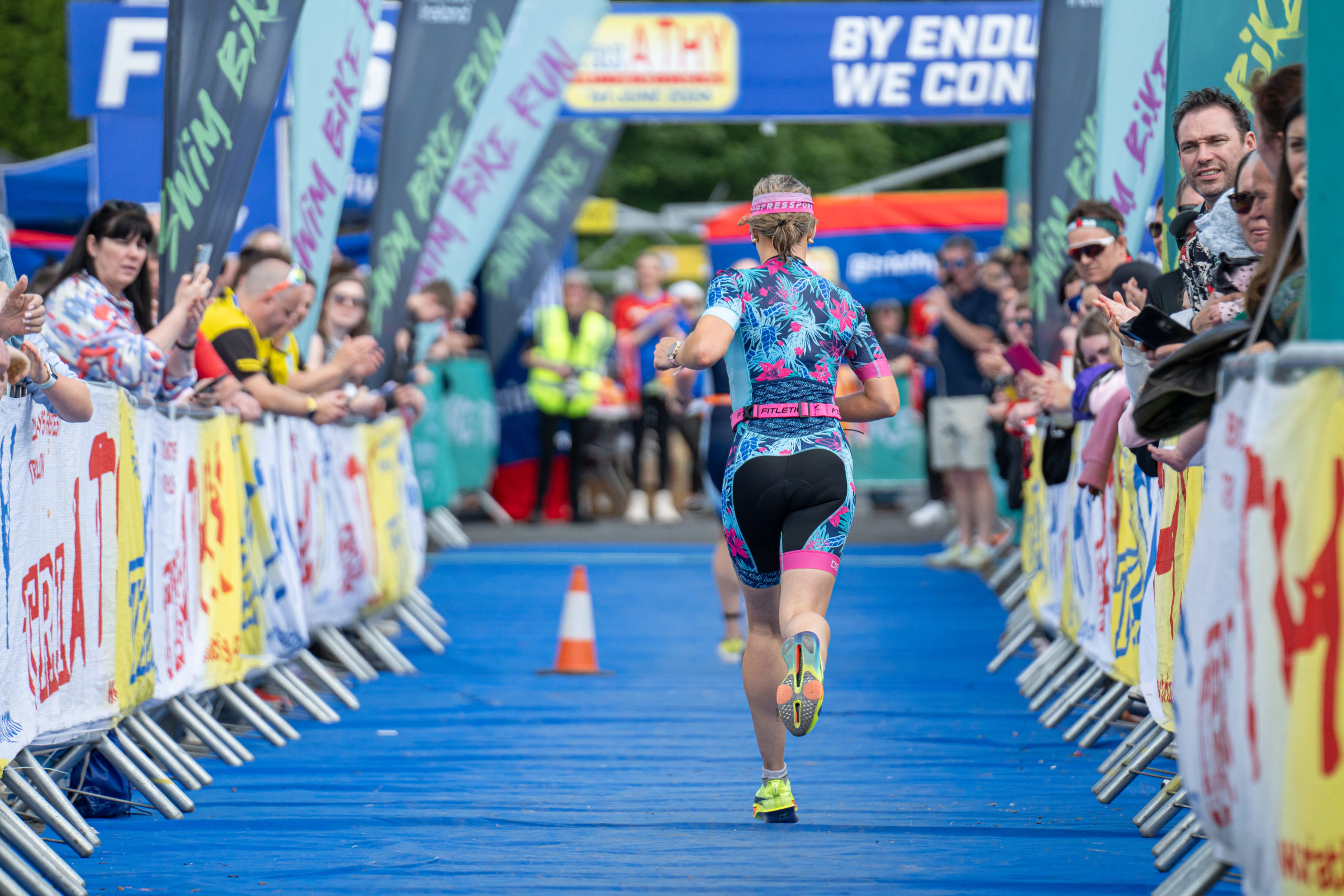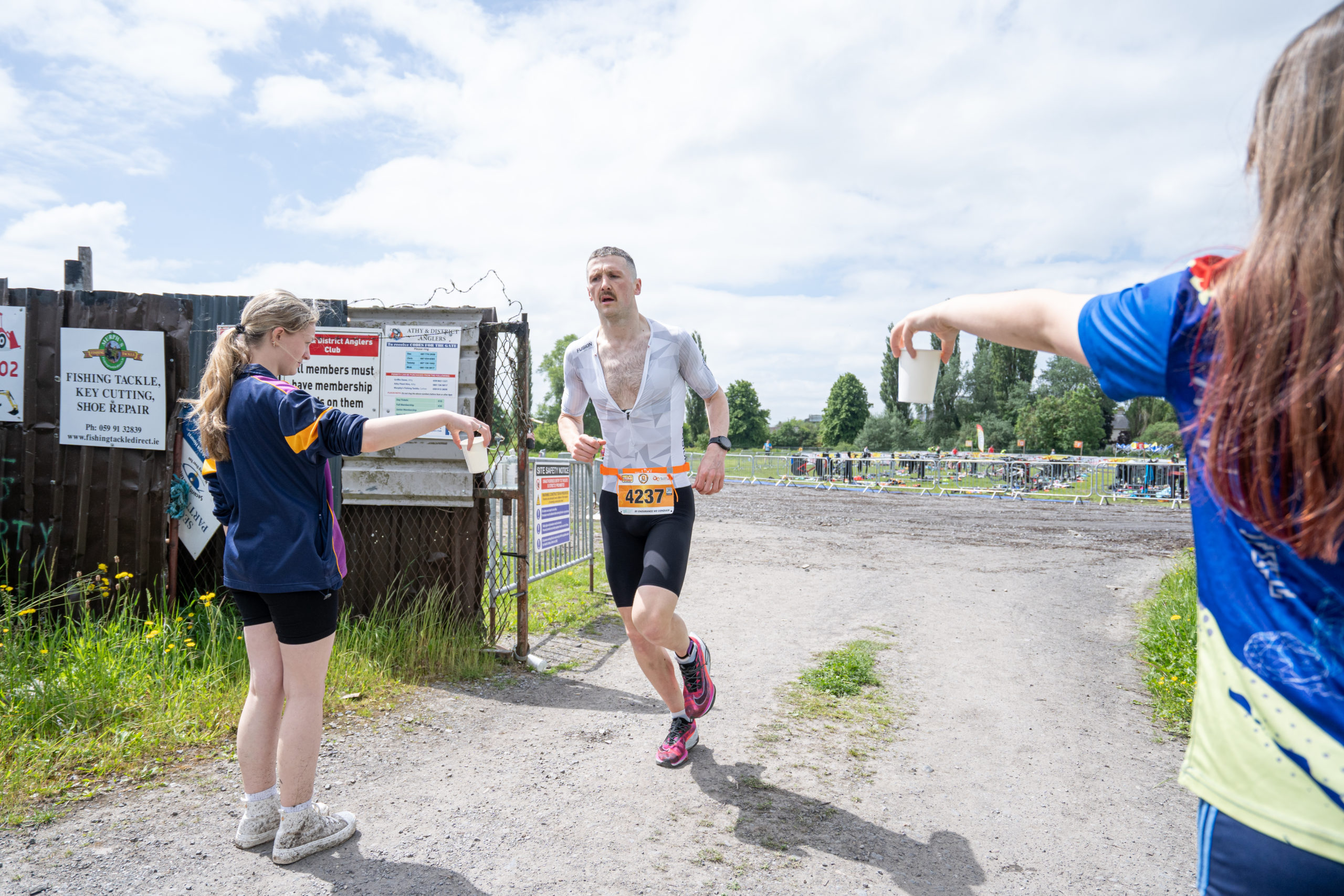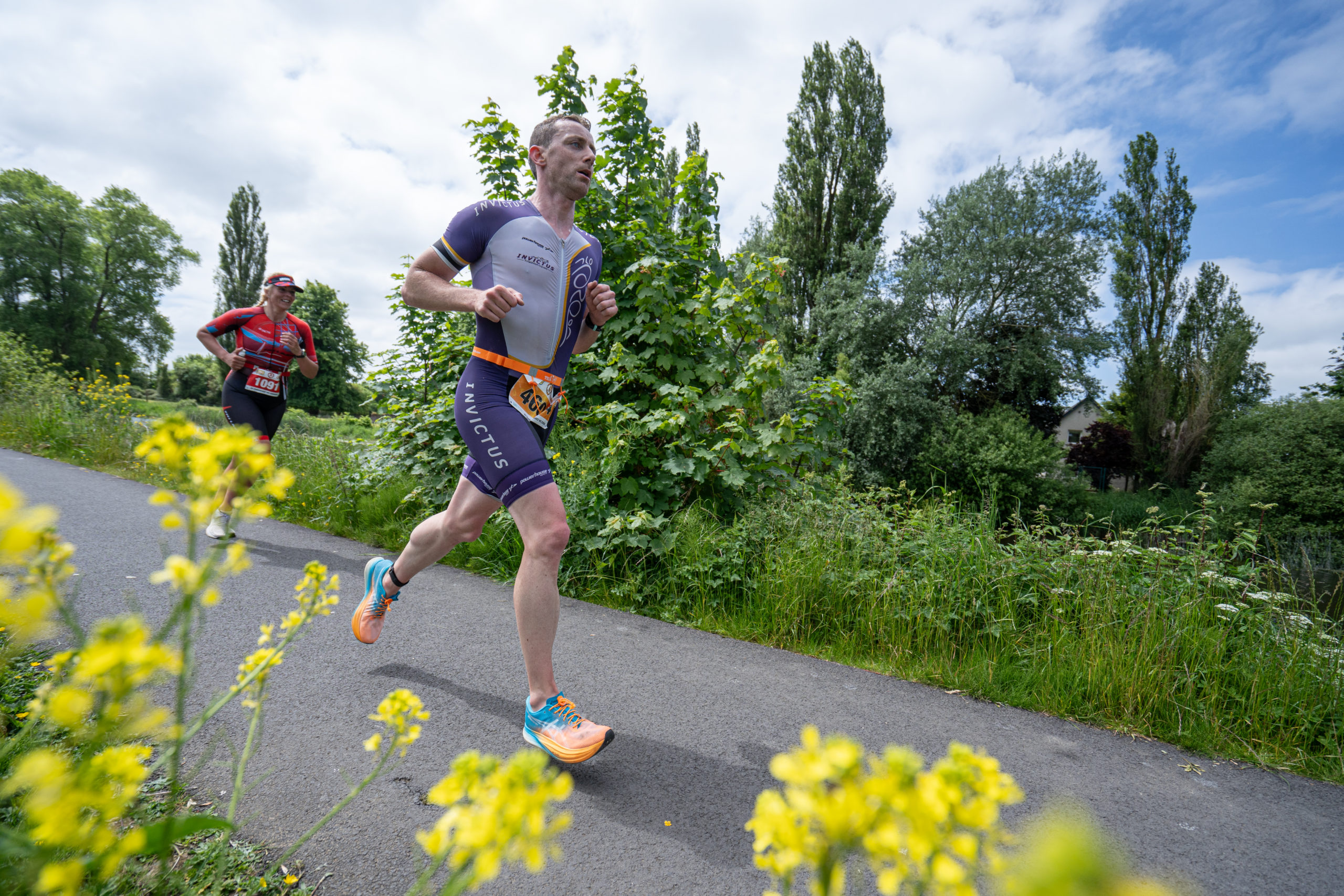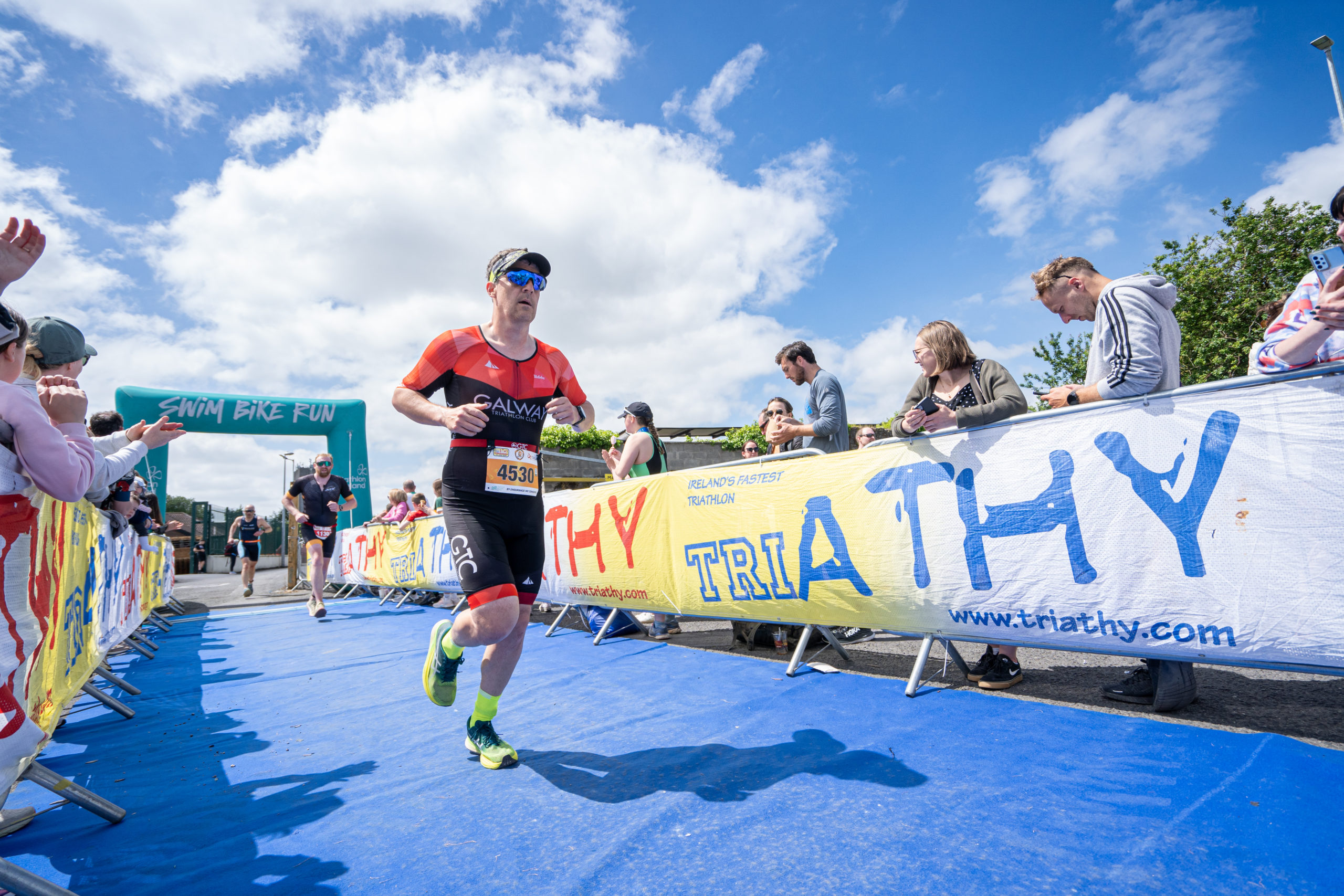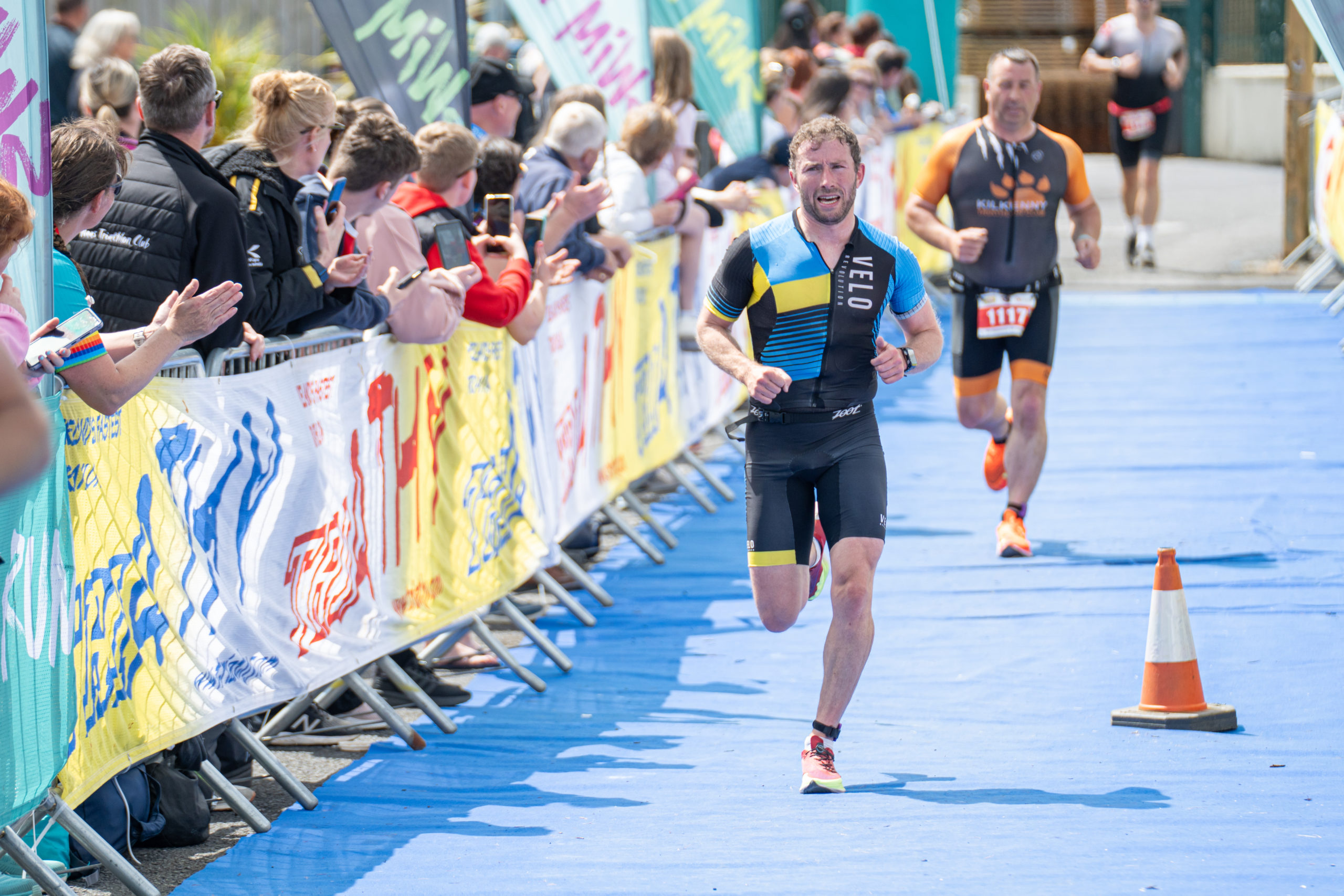 The run followed a new course for the 2024 race. The course now consisted of 2 laps of a circuit to the south of Athy town. On the 2nd lap, athletes crossed the River Barrow over the “Horse Bridge” to finish by Athy Community Library. In the Men’s race, Conal Cremen of Belpark Triathlon Club completed the fastest run, in a time of 00:34:22. However, Carroll maintained his lead and was the first man over the line, with an overall time of 02:01:06. In the Women’s race, Woods maintained her lead and completed the run in 00:37:37, with an overall race time of 02:08:35.