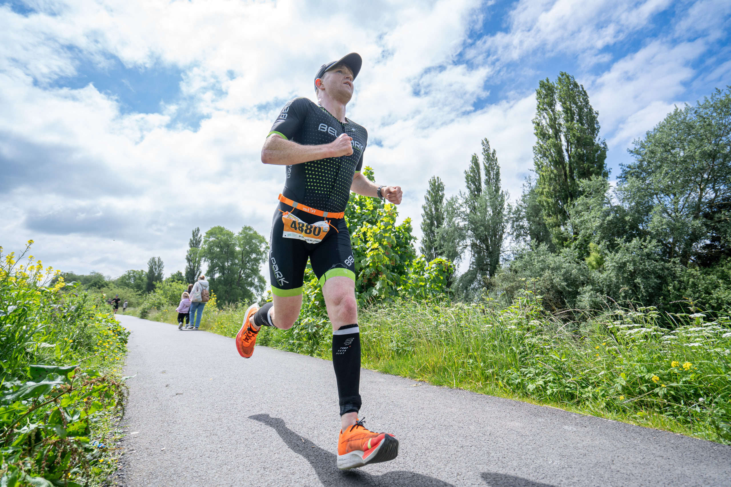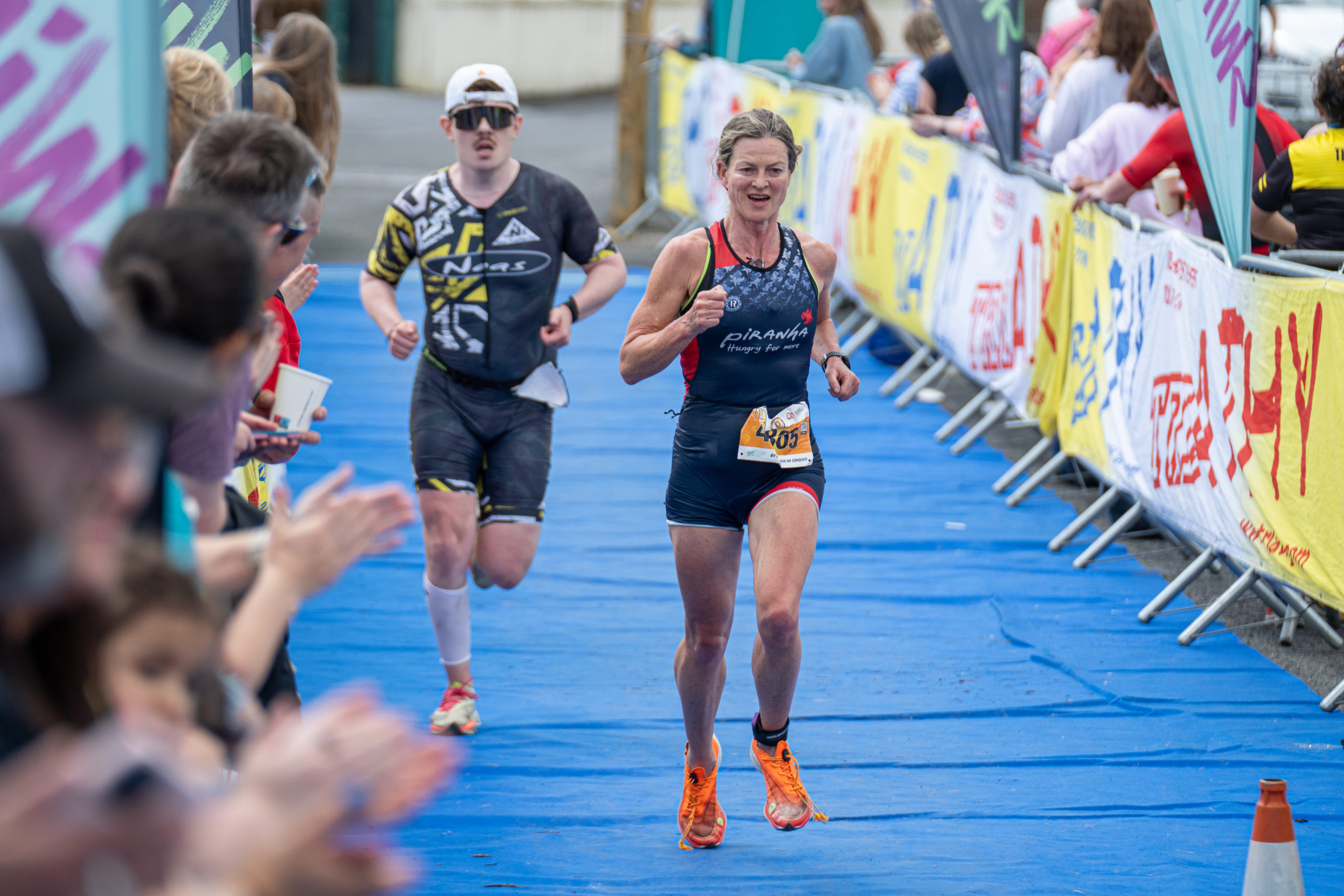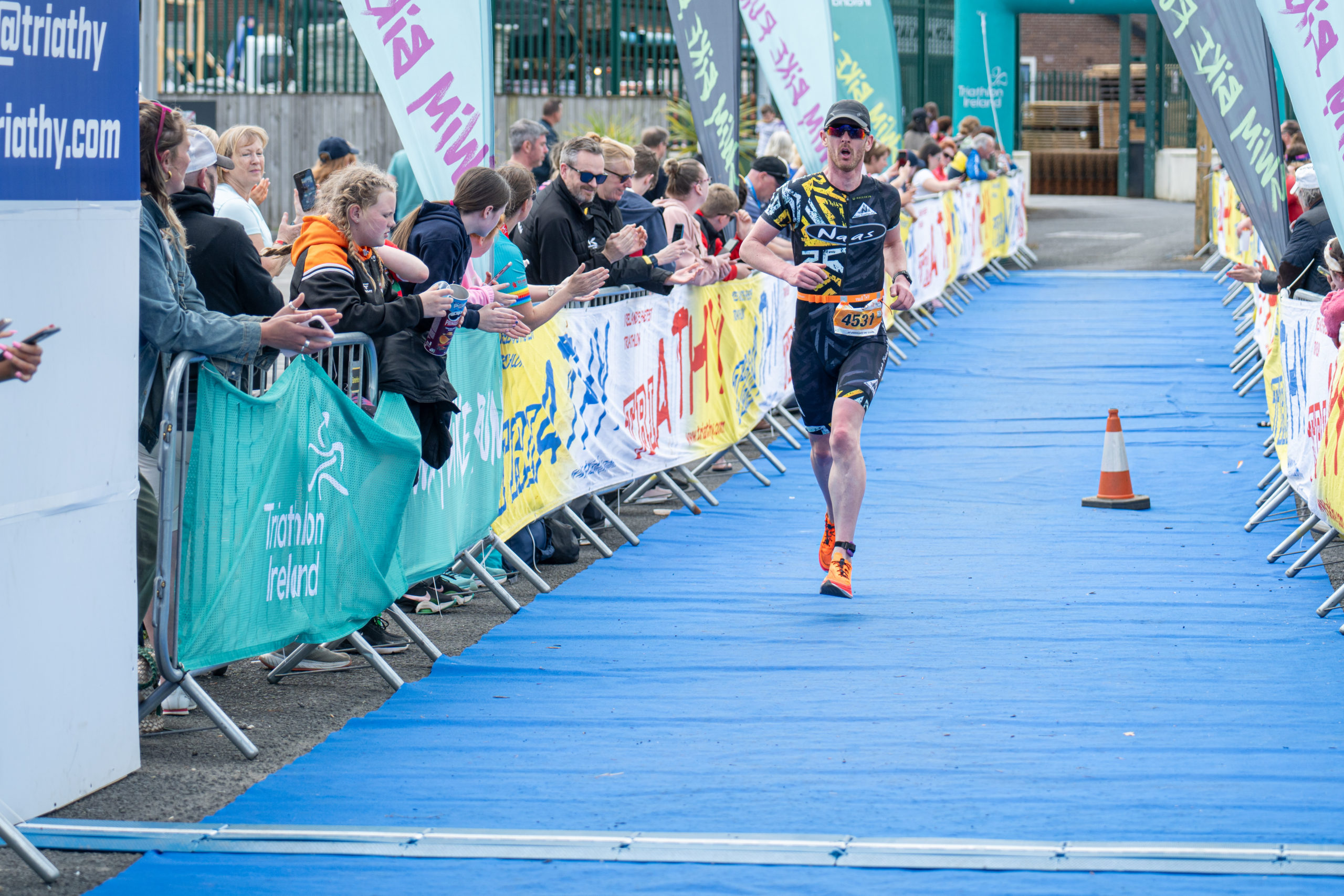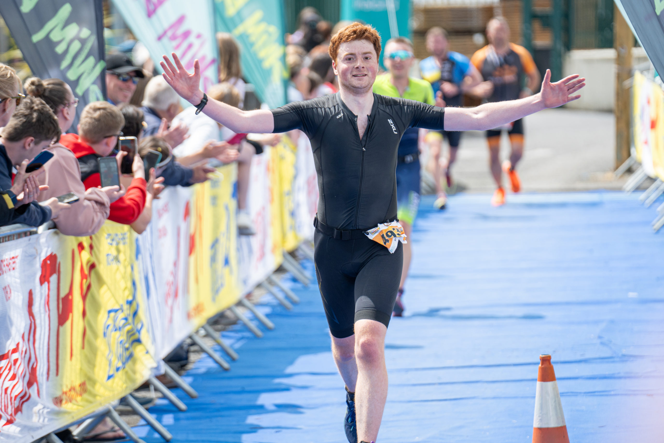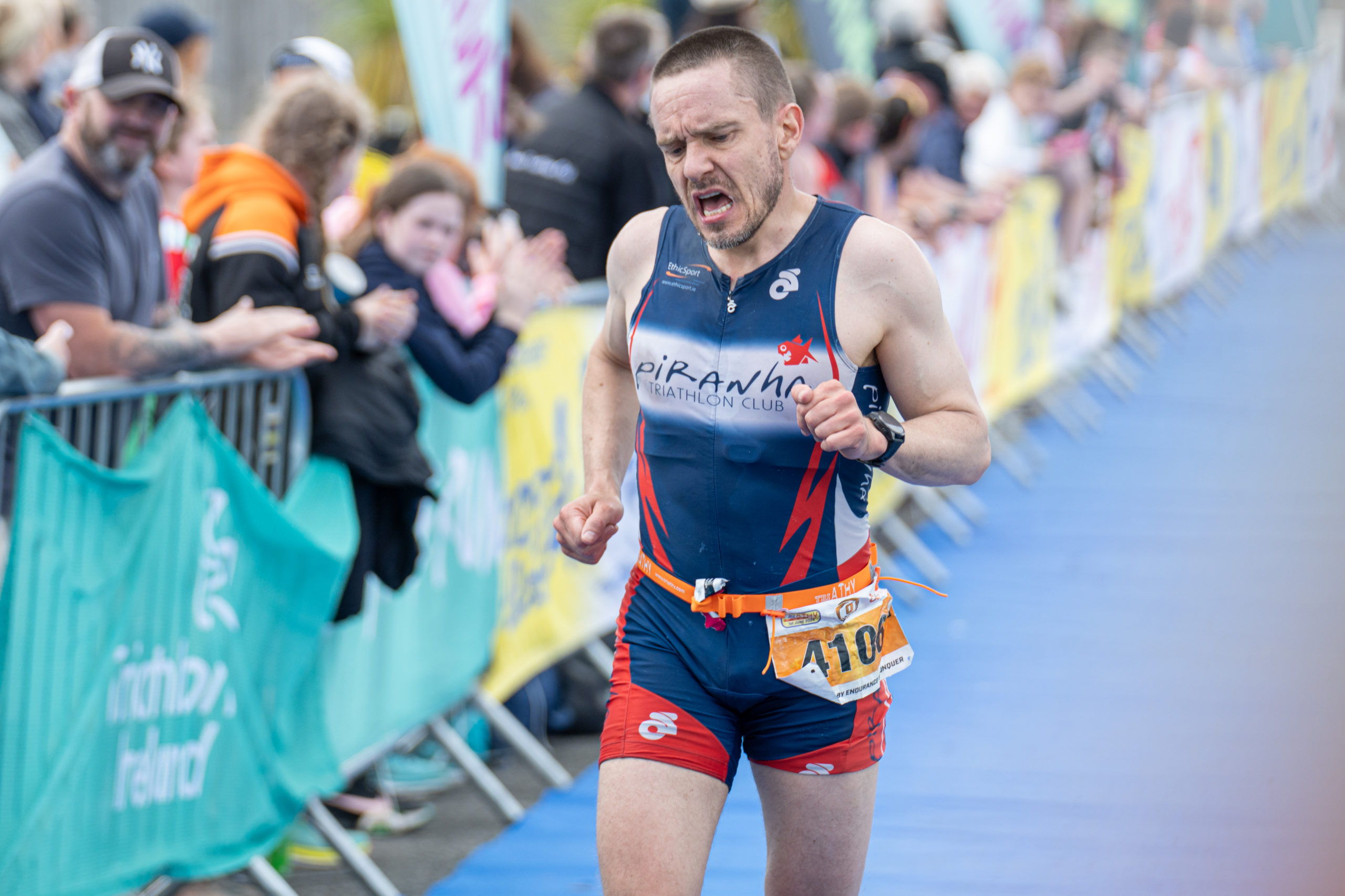 The run followed a new course for the 2024 race. The course now consisted of 2 laps of a circuit to the south of Athy town. On the 2nd lap, athletes crossed the River Barrow over the “Horse Bridge” to finish by Athy Community Library. In the Men’s race, Conal Cremen of Belpark Triathlon Club completed the fastest run, in a time of 00:34:22. However, Carroll maintained his lead and was the first man over the line, with an overall time of 02:01:06. In the Women’s race, Woods maintained her lead and completed the run in 00:37:37, with an overall race time of 02:08:35.