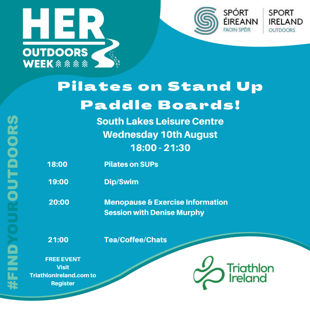 On Wednesday, 10th of August, Triathlon Ireland will be hosting a Pilates on Stand Up Paddle Boards session, followed by a session on Menopause and Exercise with Coach Developer and TI Development Officer Denise Murphy.