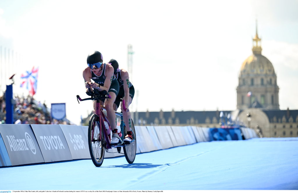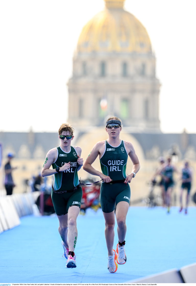 Team Ireland were strongly represented in the Para Triathlon with Cassie Cava competing in the women’s PTS4 category, while Chloe MacCombe guided by Catherine Sands and Judith MacCombe guided by Eimear Nicholls competed in the PTVI women’s race. All focus were on the Seine with the start line pontoon launching the para triathletes into a battle against the city’s elements and the world’s top competitors. The Pont Alexandre III bridge marked the final, decisive stretch toward the finish line.