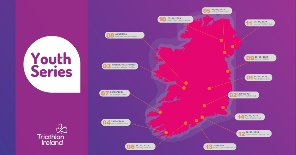 The Youth Series takes in 14 of Ireland’s best triathlons, duathlons and aquathlons for 12-17 year olds.