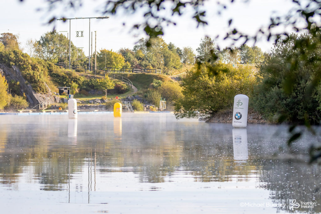 The swim will take place in the waters of Ballyhass Lakes. Athletes will enter the lake via the pontoon on the Northern side of the large lake and will swim East where they will loop around the buoys and follow the course. Swimming West with the sun on your back onto the “beach landing” there will be marshals in place to see you out of the water.