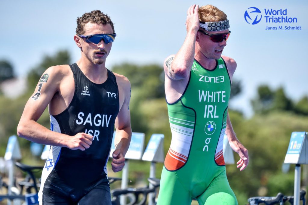White was in a chase pack early on the bike but didn’t manage to make contact with the large lead group.